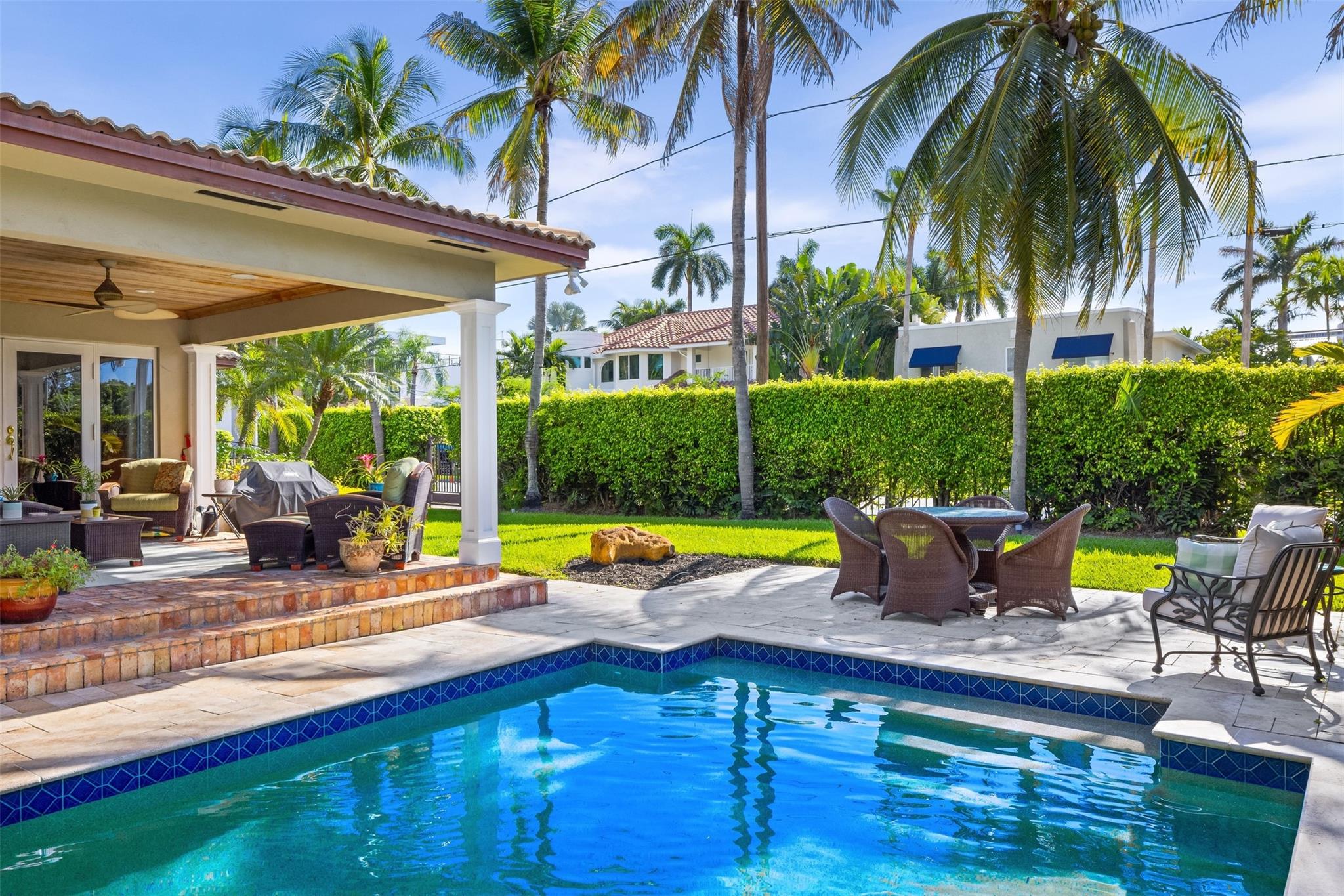 Now introducing 359 Poinciana Drive! This stunning residence is located in the coveted Idlewyld community, just steps away from the iconic Las Olas Blvd. This 3-bed, 3.5-bath home is on an 8,625SF lot w lots of greenery. Meticulously remodeled, it features a chef's kitchen, wood floors, high-impact windows & a beautiful yard/pool area. Step outside into your private, lush oasis and find a covered veranda and sitting area with a wood ceiling overlooking the pool, ideal for unwinding in the Florida sunshine. Situated on a corner lot, the home also features an entry gate for privacy with pavers. Location, location, location! Located within walking distance to Fort Lauderdale Beach, fine dining, shopping and everything else FTL has to offer. The perfect retreat for South Florida living!