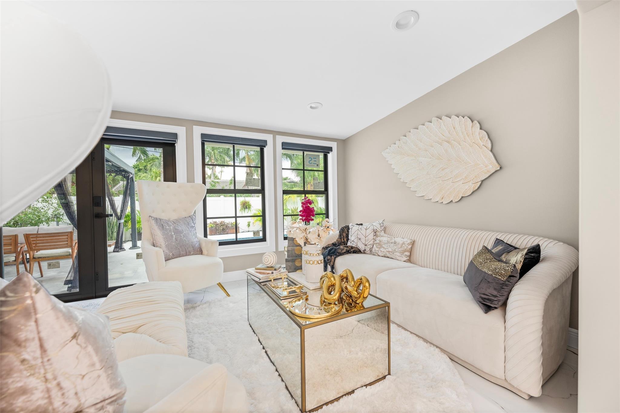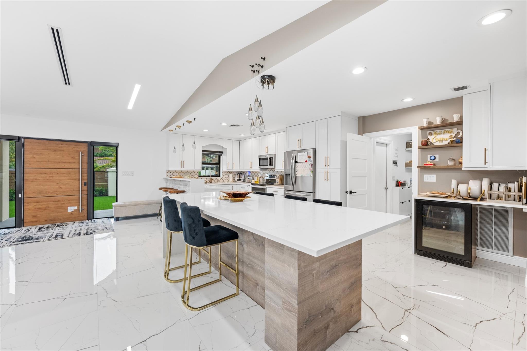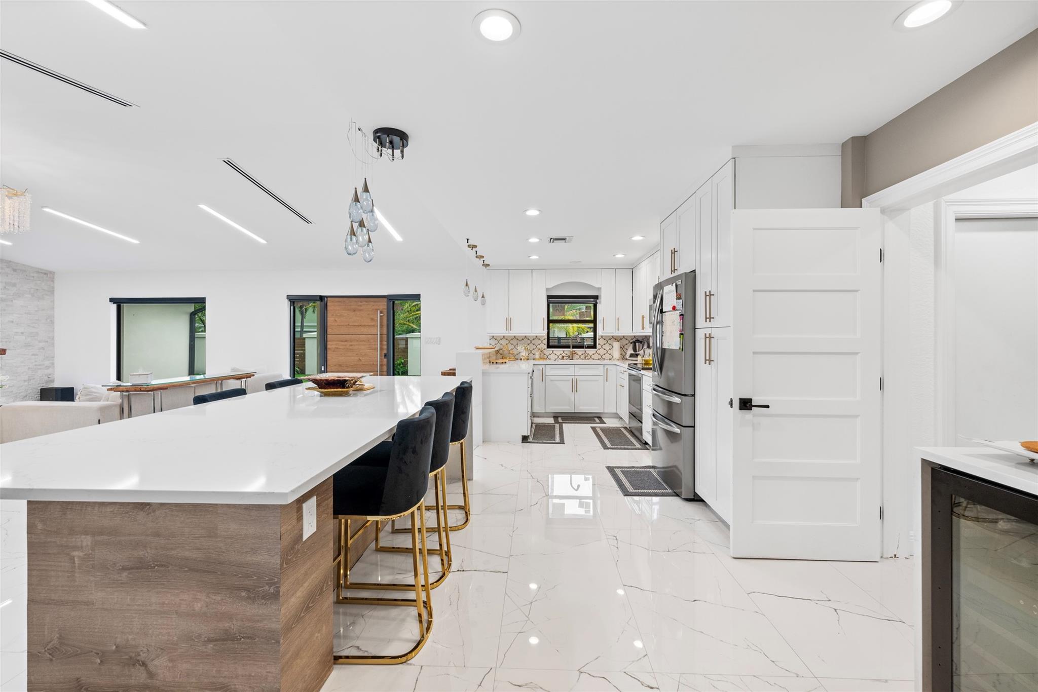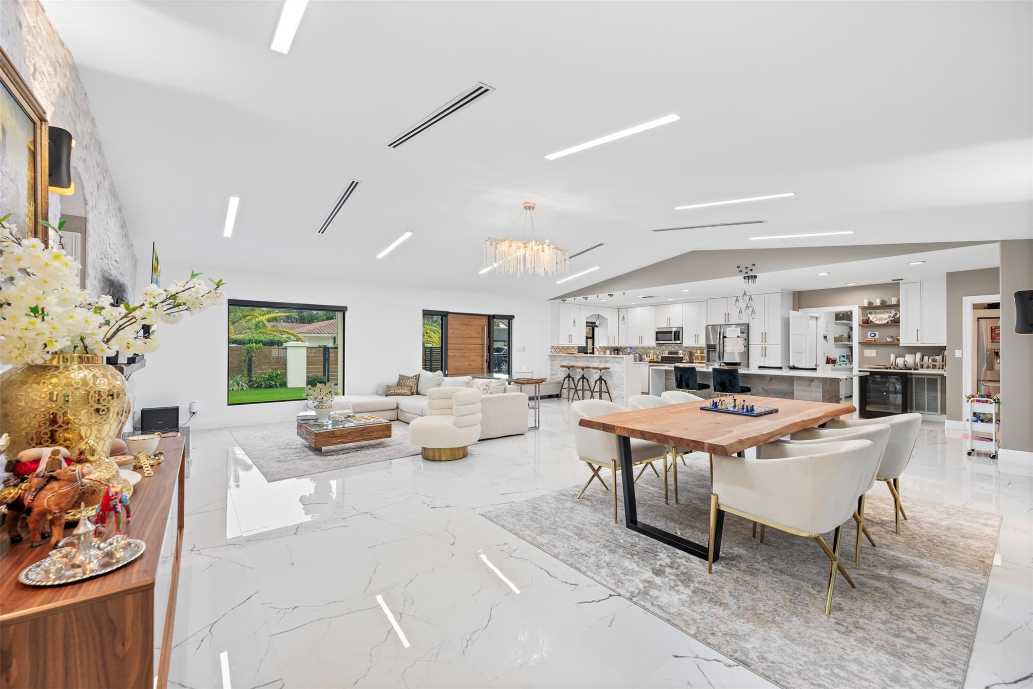 The epitome of elegance in this 4/3 with a 2-car+ garage in Coral Ridges Bayview School District. Over 3,000 SF perfectly manicured. Modern style and functionally with its sleek finishes, open living spaces and private gated entrance for ultimate seclusion. Renovated inside and outside w. vaulted ceiling, PVC fencing, impact windows & doors finished in 2024, aluminum roof, pool, pergolas and more. Gourmet kitchen with center dining island, separate formal dining, large walk-in pantry, Huge laundry room, linear air ducts, modern fixtures, and appliances. Amazing outdoor covered living space, pool bathroom and shower, fire pit. perfect for relaxation, entertaining and parties. Under 1 mile to Fort Lauderdale Beach, less than a mile to Oakland Park shops and restaurants and Galleria Mall.