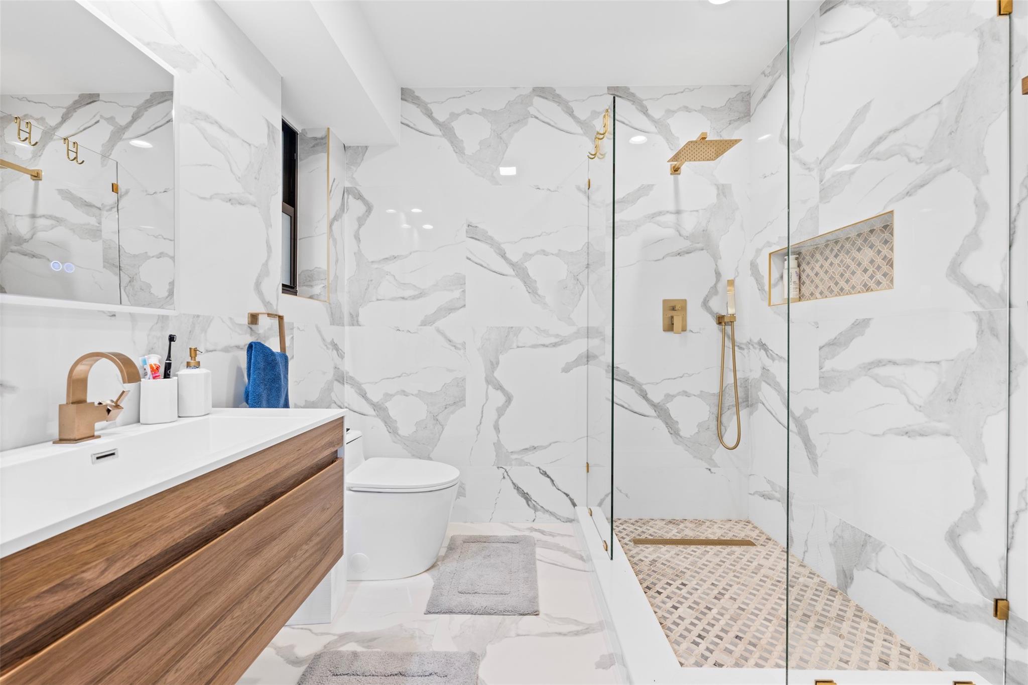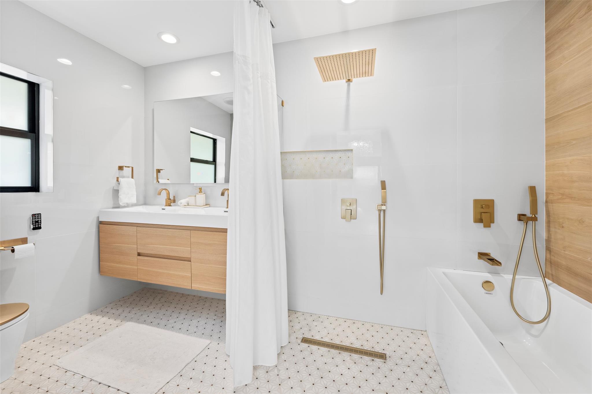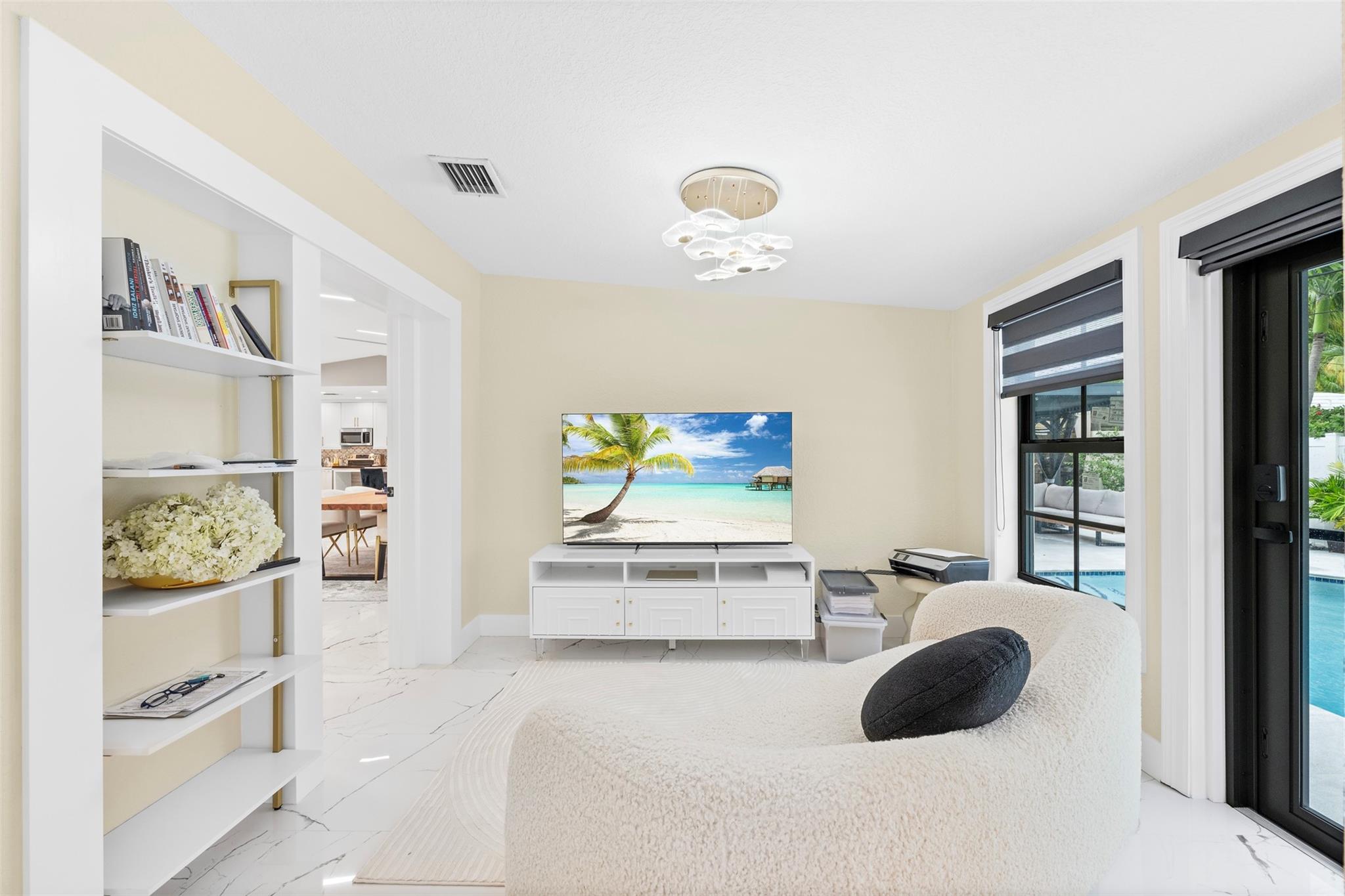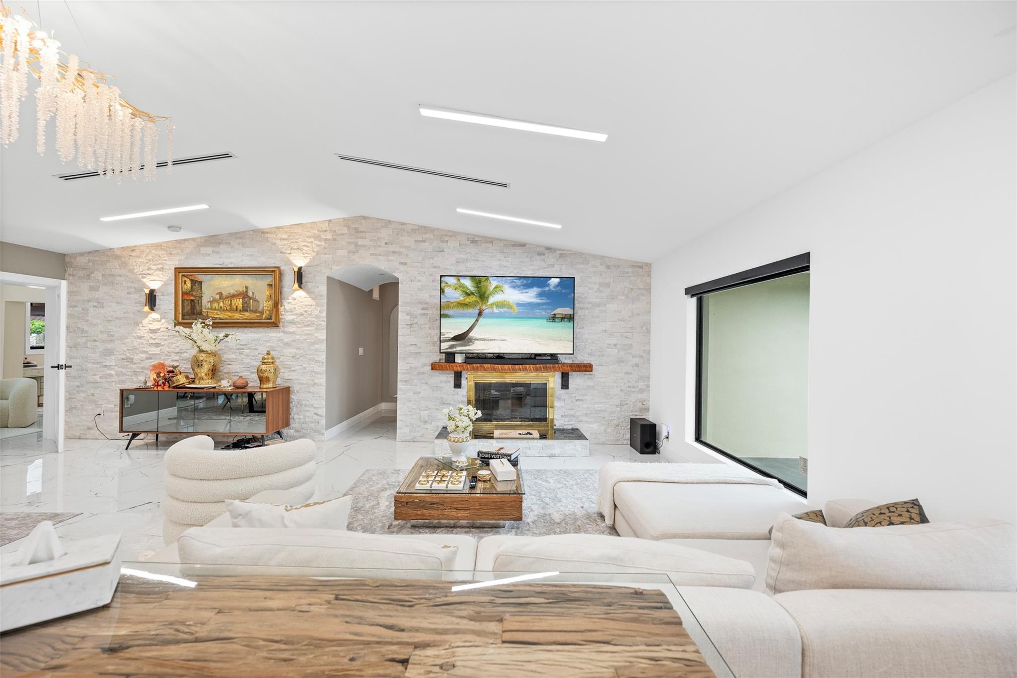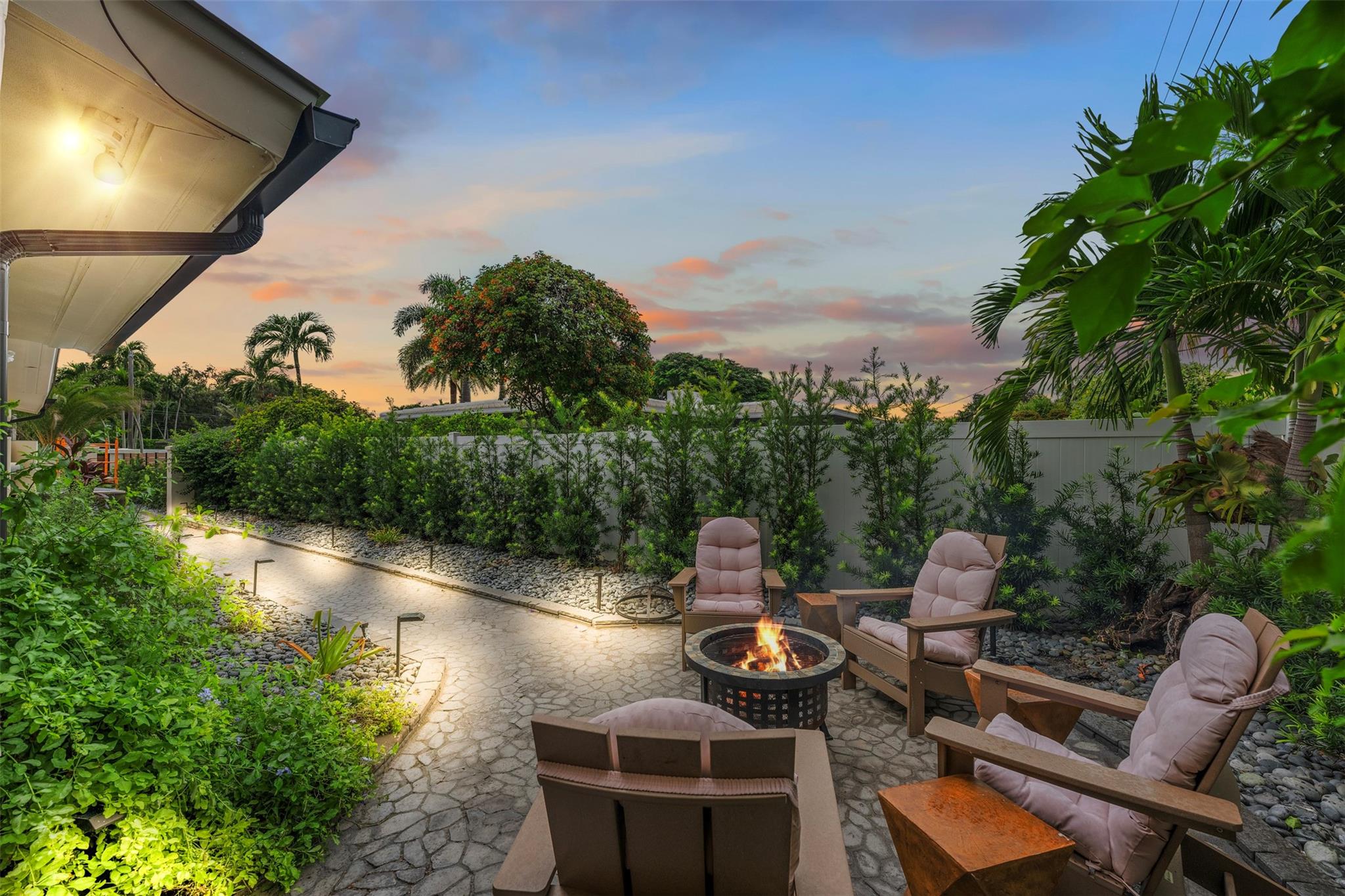 The epitome of elegance in this 4/3 with a 2-car+ garage in Coral Ridges Bayview School District. Over 3,000 SF perfectly manicured. Modern style and functionally with its sleek finishes, open living spaces and private gated entrance for ultimate seclusion. Renovated inside and outside w. vaulted ceiling, PVC fencing, impact windows & doors finished in 2024, aluminum roof, pool, pergolas and more. Gourmet kitchen with center dining island, separate formal dining, large walk-in pantry, Huge laundry room, linear air ducts, modern fixtures, and appliances. Amazing outdoor covered living space, pool bathroom and shower, fire pit. perfect for relaxation, entertaining and parties. Under 1 mile to Fort Lauderdale Beach, less than a mile to Oakland Park shops and restaurants and Galleria Mall.