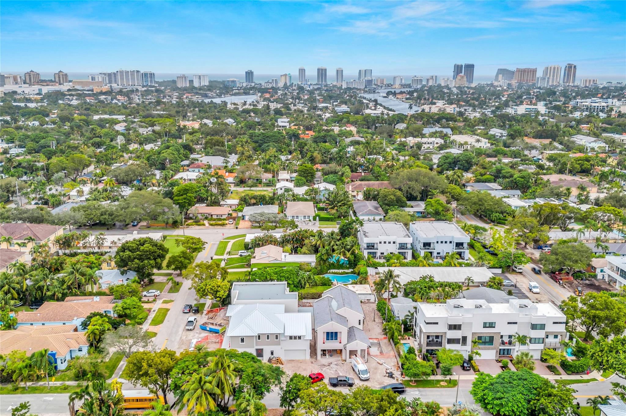 Exceptionally designed four bedroom semi-detached house in the leafy Victoria Park neighborhood. This two story home encompasses approximately 3,634 square feet of air conditioned space with three bedrooms and baths upstairs and s full bedroom suite on the main floor. Enter through an inviting porch to a high ceilinged living room. Walls of glass open to a huge south-facing yard and long pool with a sun-deck. A large balcony connecting bedrooms 2 & 3 is perfect for morning coffee or an evening relaxation. Holiday Park, tennis, pickleball, skate track, football fields, the Florida Panthers' Iceeplex and several dining and entertainment venues are within a couple of blocks. Five grocery stores are within a mile. The beach is under two miles away. Completion is expected by February 2025.