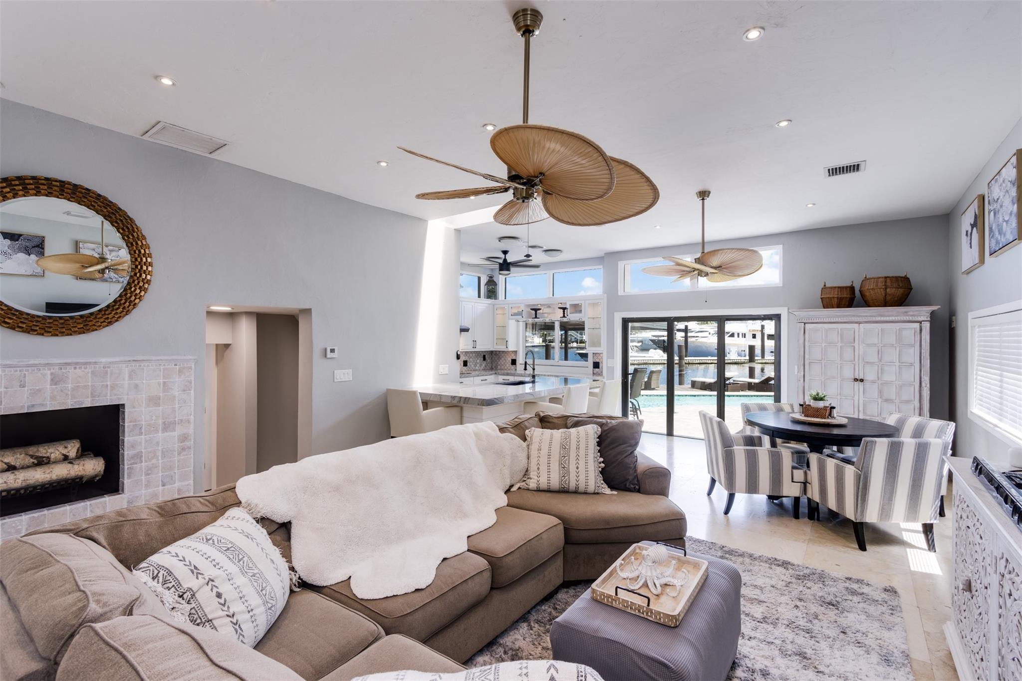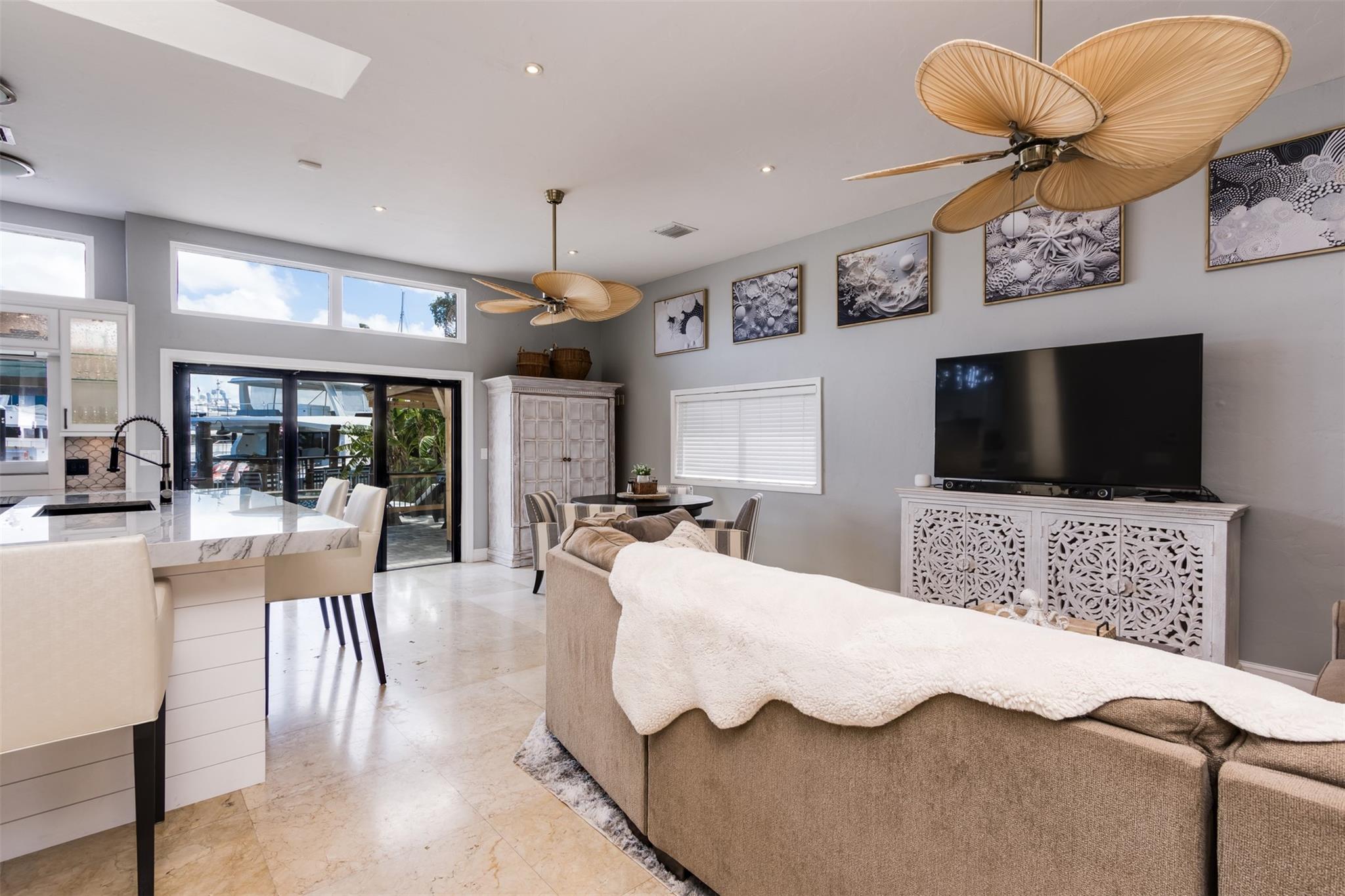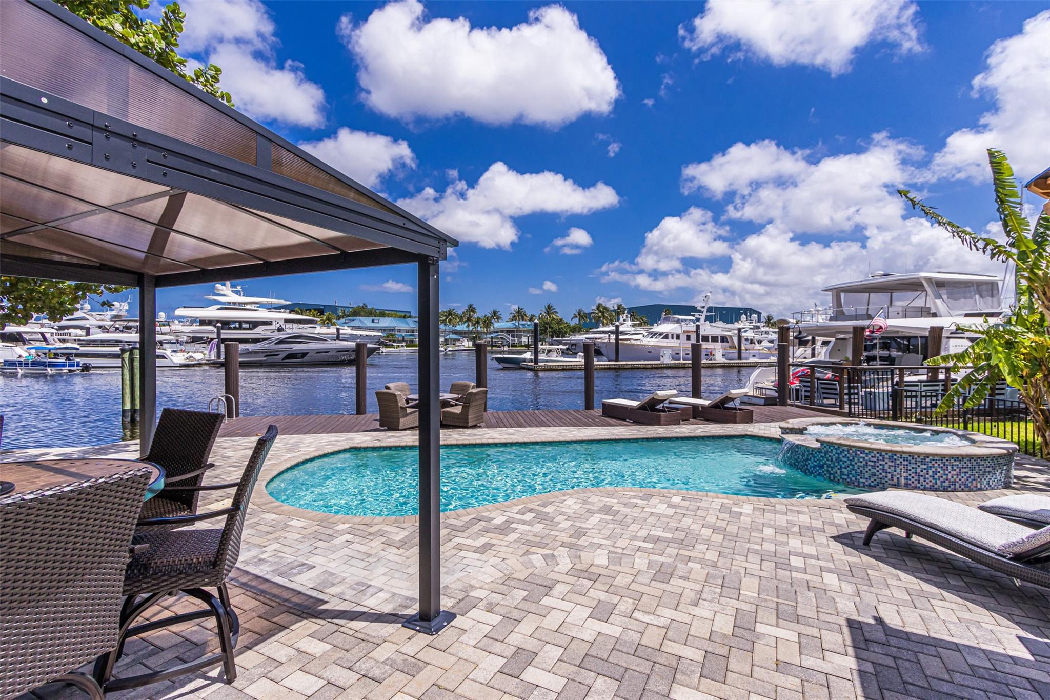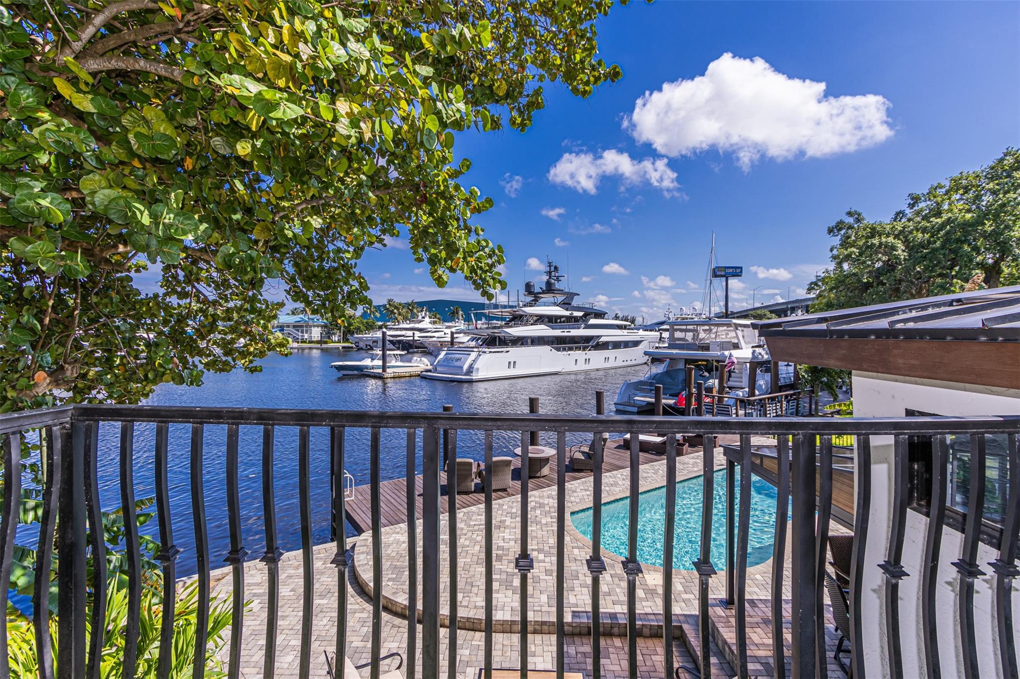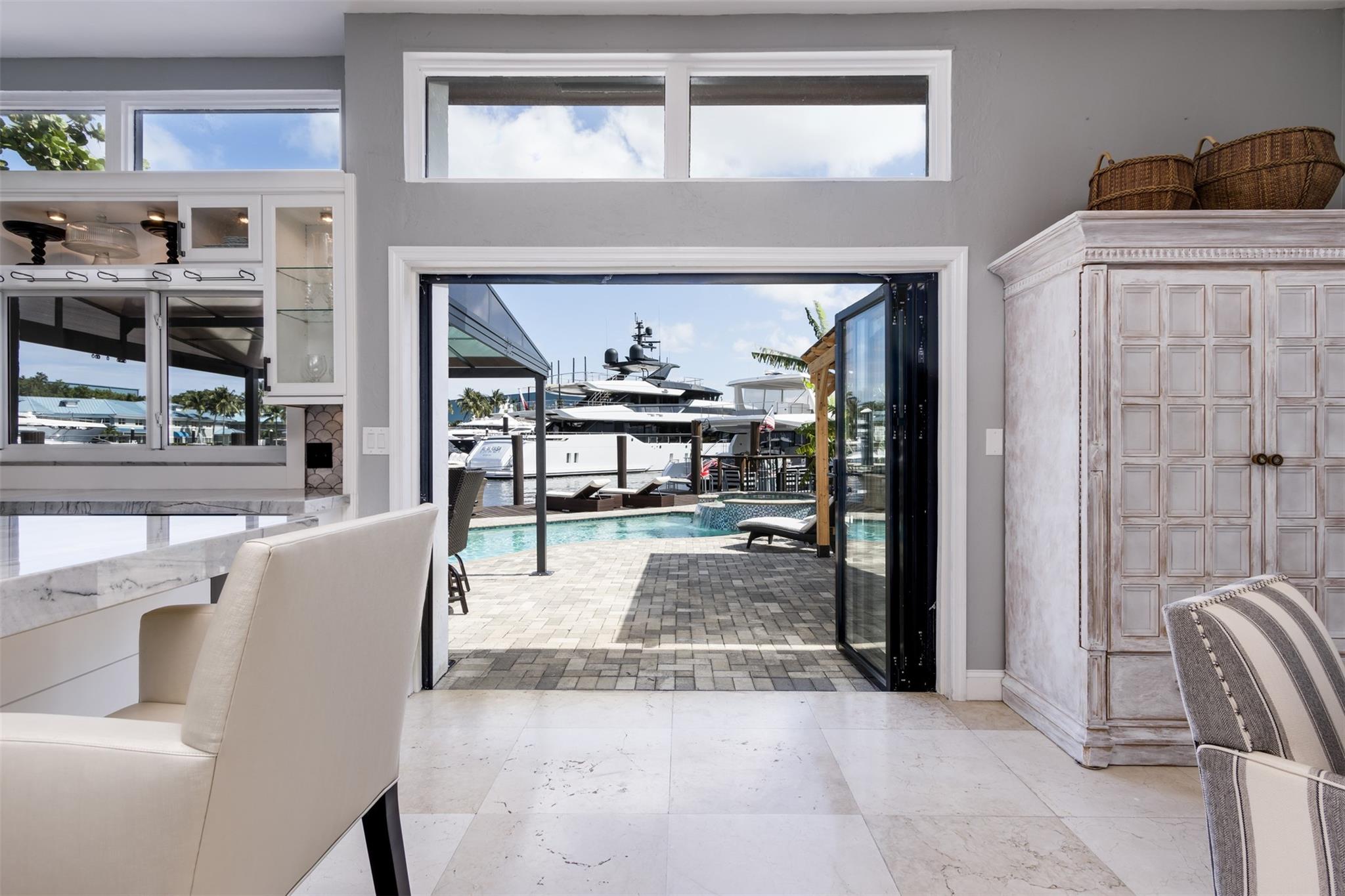 **SEE WALKING TOUR**Amazing views! New River, across from the Marina w/daily yacht parade. 70 ft waterfront, no fixed bridges, wide turning basin, hurricane safe/evac area for yachts. Modern home has 4 bedrooms, 4.5 baths, separate office, in-law suite, 2 laundry rooms, 2-car garage. 2 of the bedrooms are en-suite. One bedroom/bath is an attached in-law suite with a kitchenette and living space, perfect for multi-generational living, teenagers, etc. Entertainer's dream home has a newly updated gourmet kitchen w/quartzite counters, an icemaker, and a beverage fridge. Heated pool/spa w/lights/jets operated by phone. Shady Banks is a popular neighborhood with Hortt Park, tennis courts, playgrounds, walking/exercise trails, etc. No mandatory HOA! Over 100k of recent upgrades to the home.