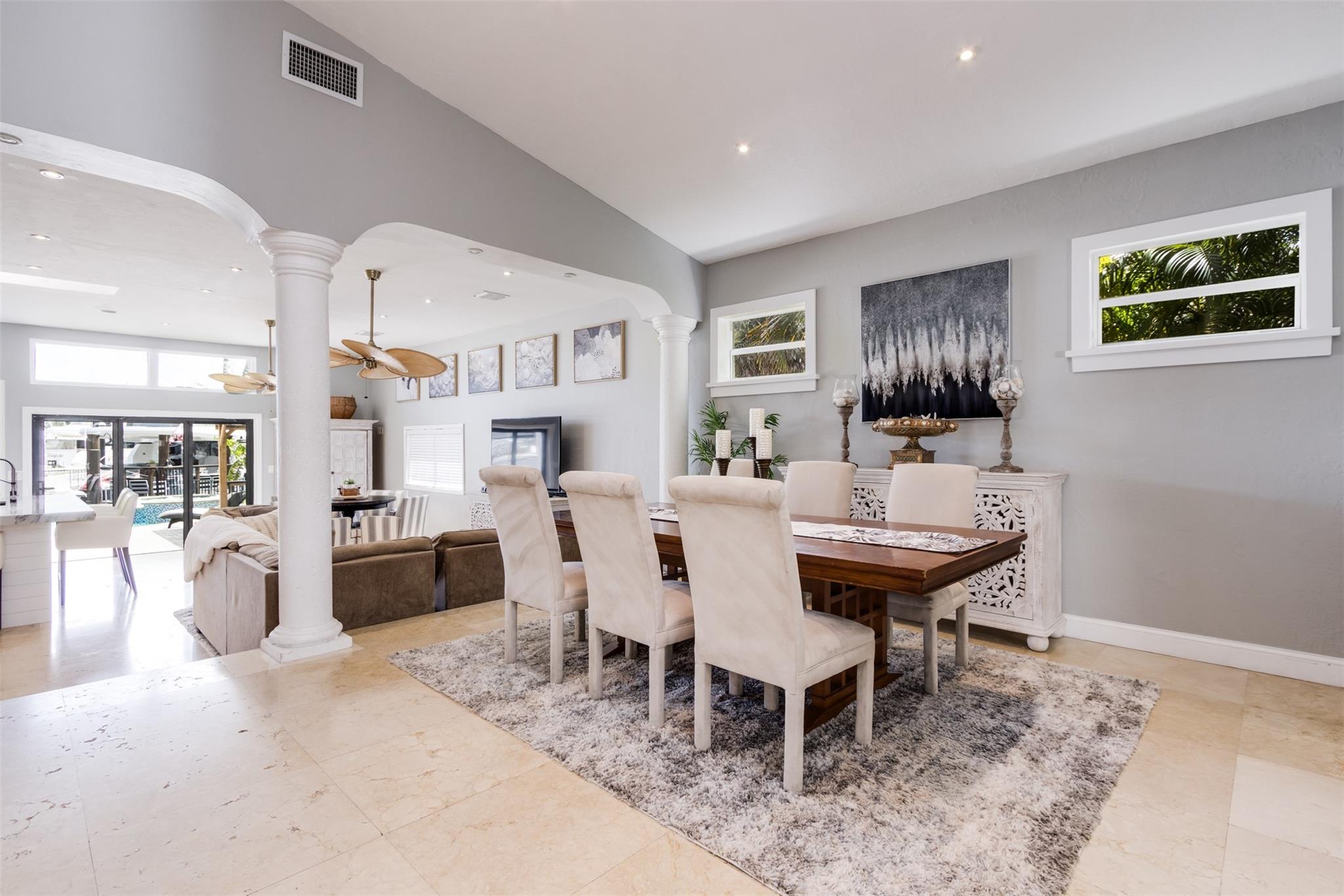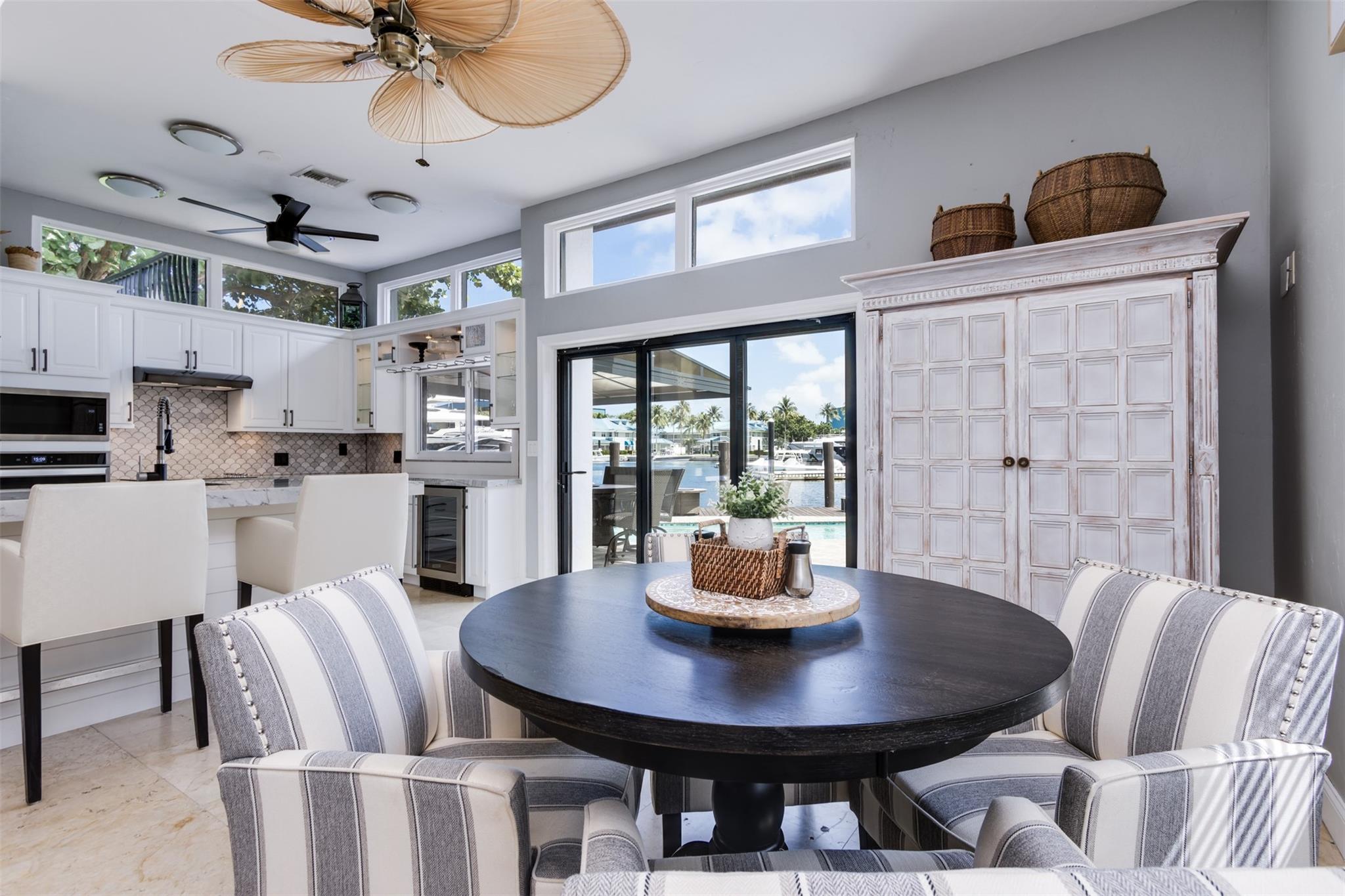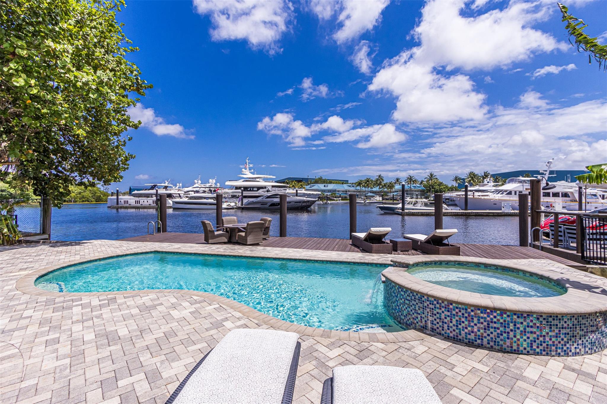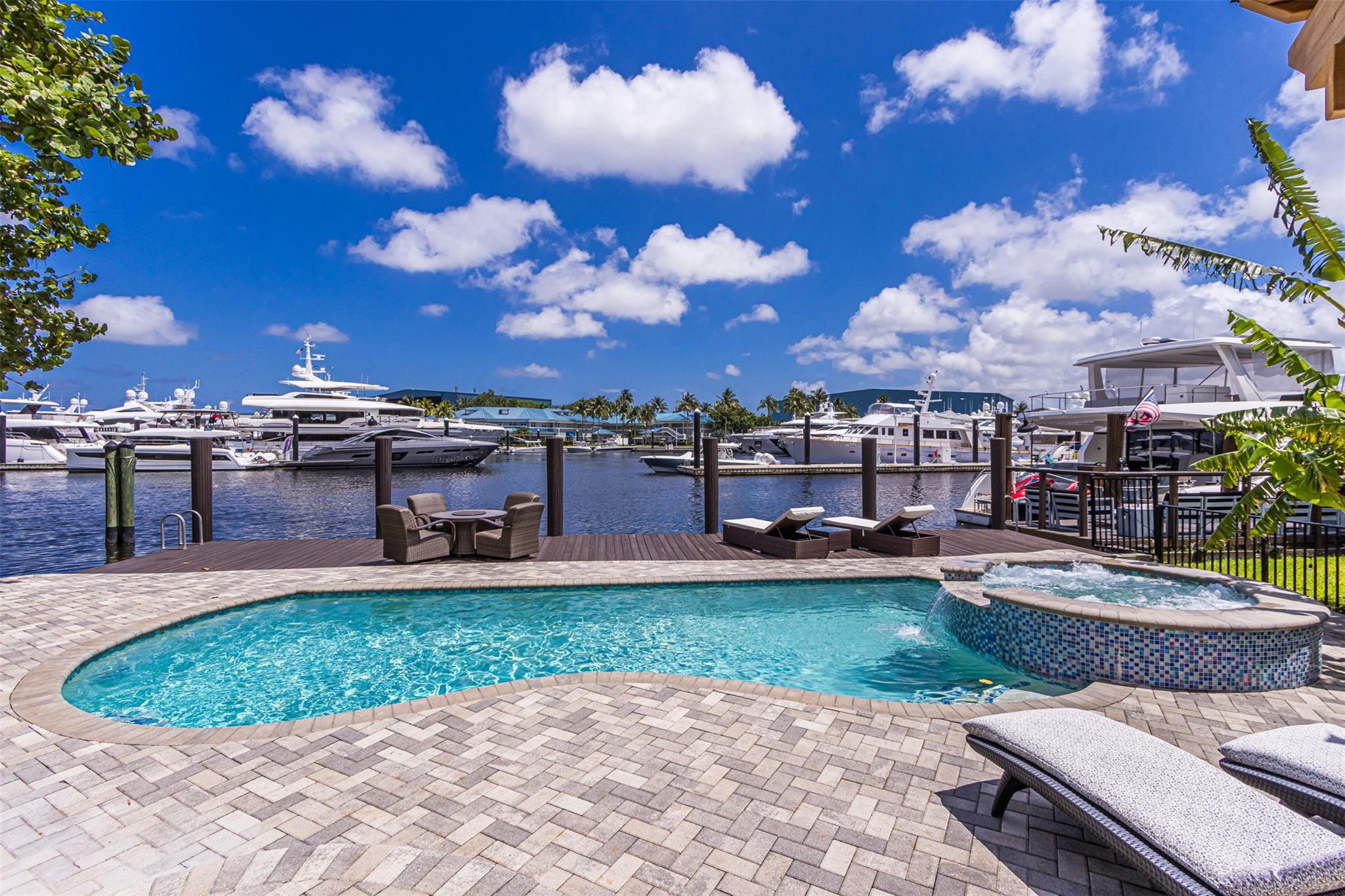 **SEE WALKING TOUR**Amazing views! New River, across from the Marina w/daily yacht parade. 70 ft waterfront, no fixed bridges, wide turning basin, hurricane safe/evac area for yachts. Modern home has 4 bedrooms, 4.5 baths, separate office, in-law suite, 2 laundry rooms, 2-car garage. 2 of the bedrooms are en-suite. One bedroom/bath is an attached in-law suite with a kitchenette and living space, perfect for multi-generational living, teenagers, etc. Entertainer's dream home has a newly updated gourmet kitchen w/quartzite counters, an icemaker, and a beverage fridge. Heated pool/spa w/lights/jets operated by phone. Shady Banks is a popular neighborhood with Hortt Park, tennis courts, playgrounds, walking/exercise trails, etc. No mandatory HOA! Over 100k of recent upgrades to the home.