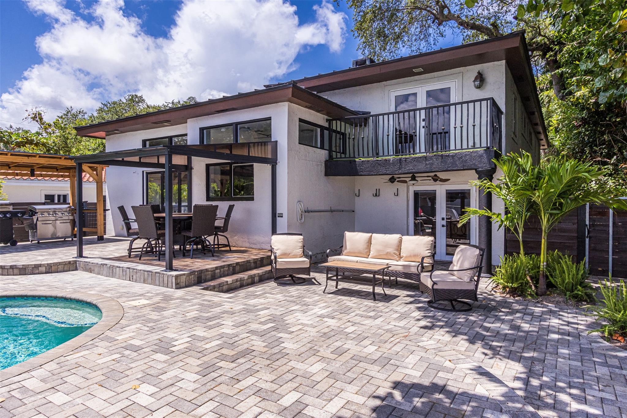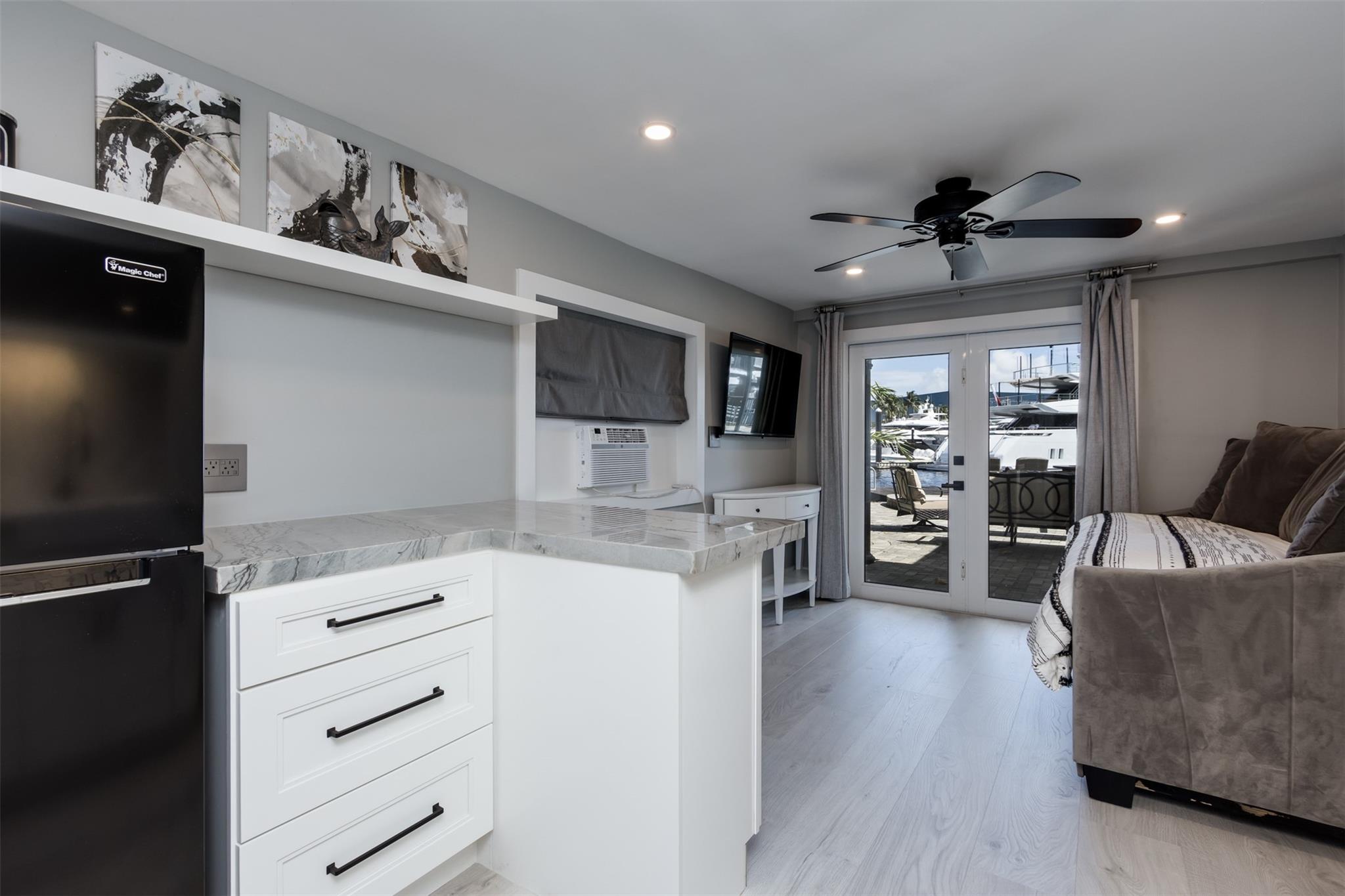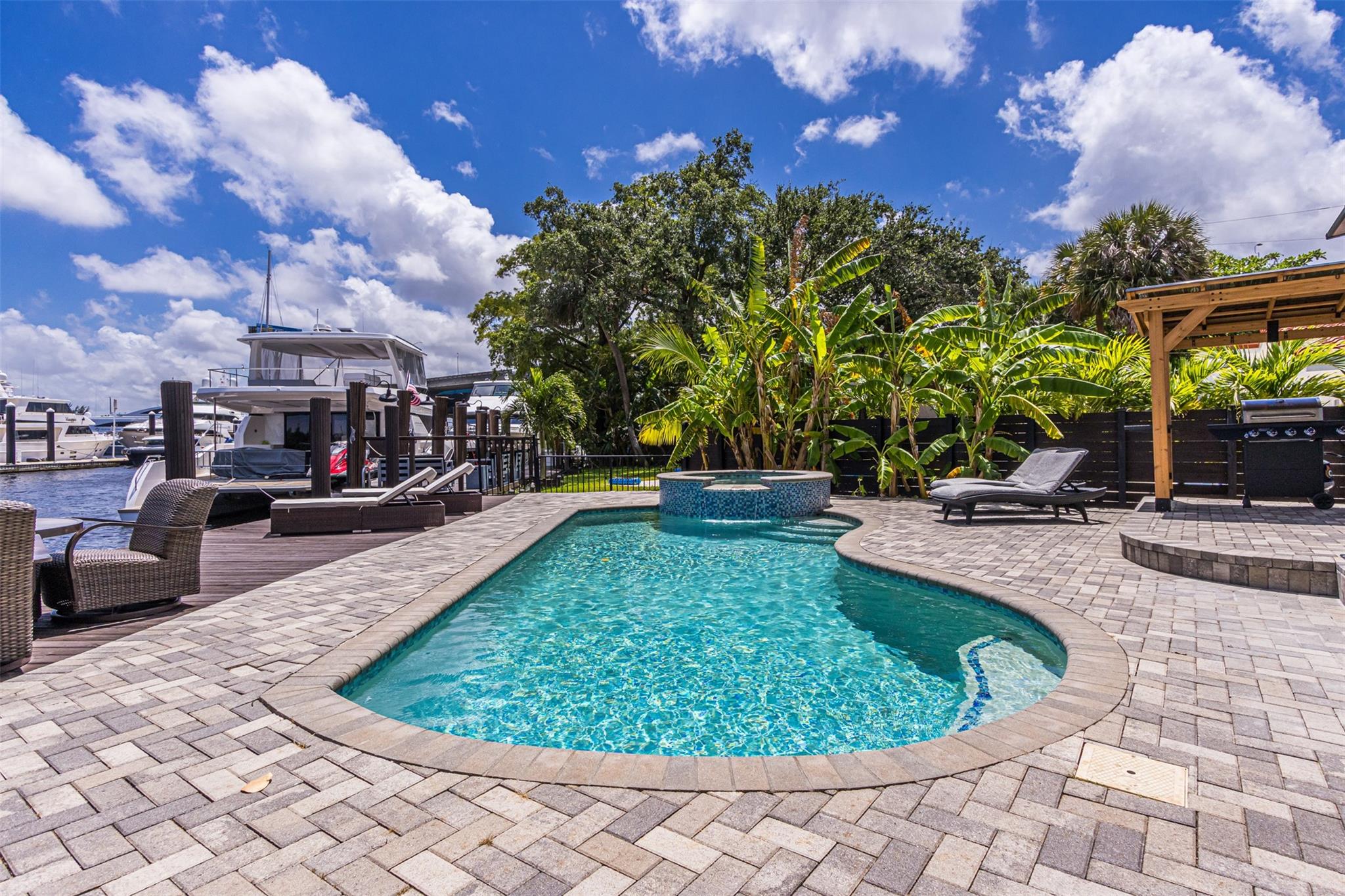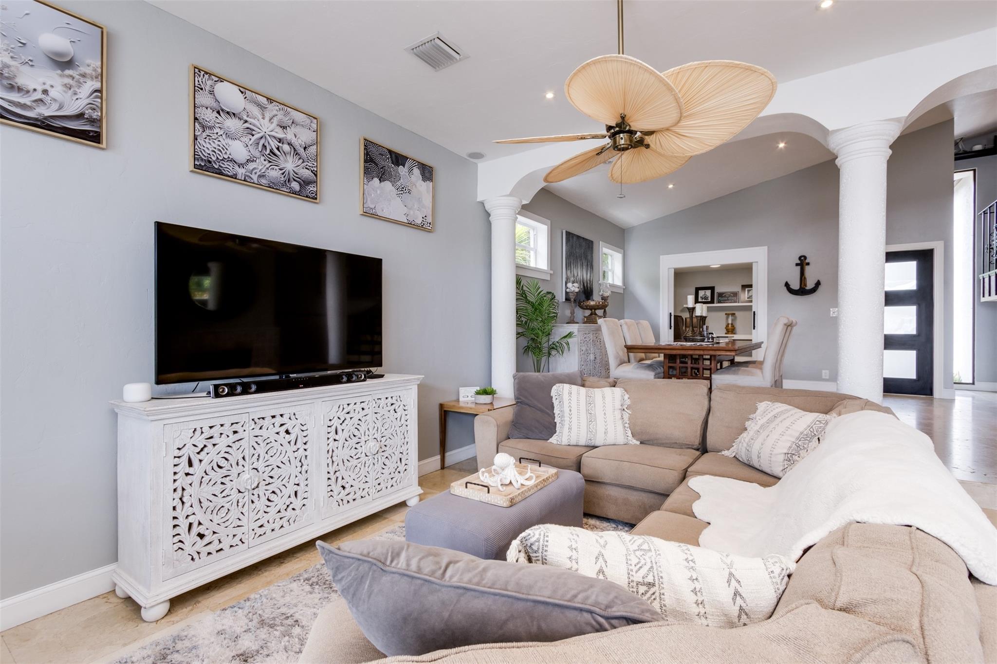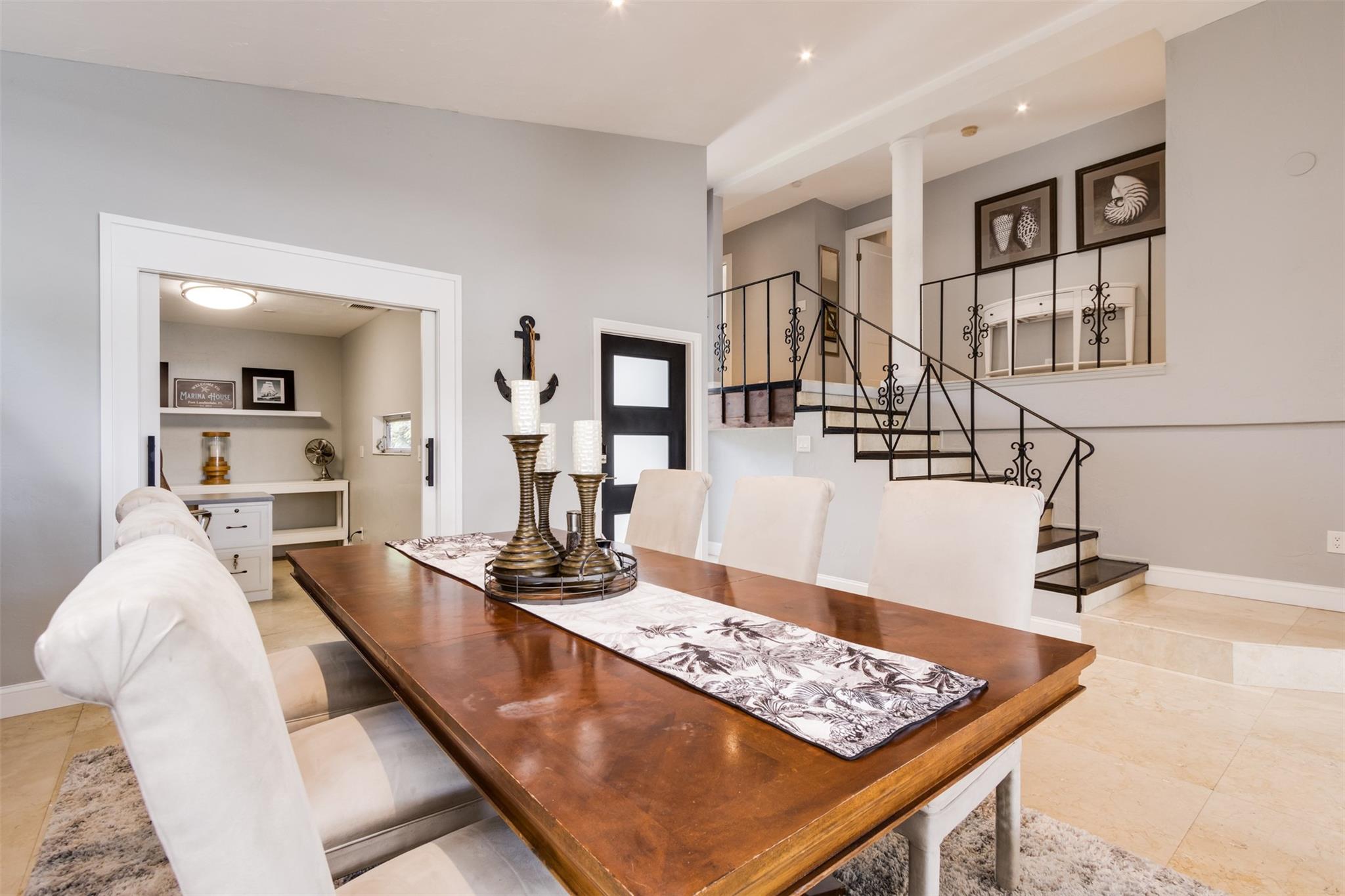 **SEE WALKING TOUR**Amazing views! New River, across from the Marina w/daily yacht parade. 70 ft waterfront, no fixed bridges, wide turning basin, hurricane safe/evac area for yachts. Modern home has 4 bedrooms, 4.5 baths, separate office, in-law suite, 2 laundry rooms, 2-car garage. 2 of the bedrooms are en-suite. One bedroom/bath is an attached in-law suite with a kitchenette and living space, perfect for multi-generational living, teenagers, etc. Entertainer's dream home has a newly updated gourmet kitchen w/quartzite counters, an icemaker, and a beverage fridge. Heated pool/spa w/lights/jets operated by phone. Shady Banks is a popular neighborhood with Hortt Park, tennis courts, playgrounds, walking/exercise trails, etc. No mandatory HOA! Over 100k of recent upgrades to the home.