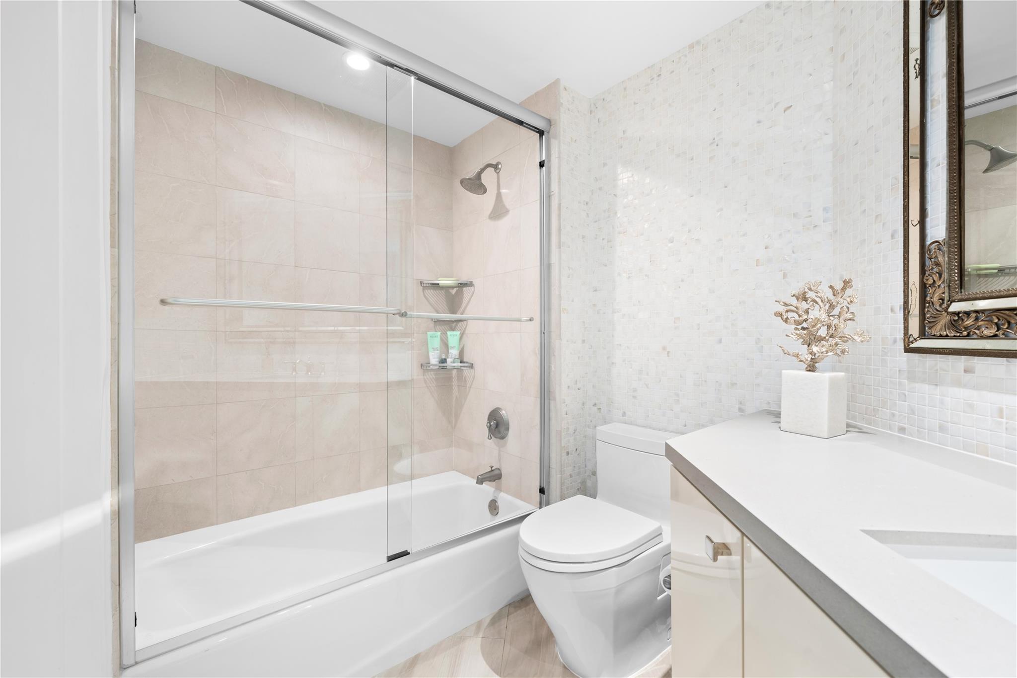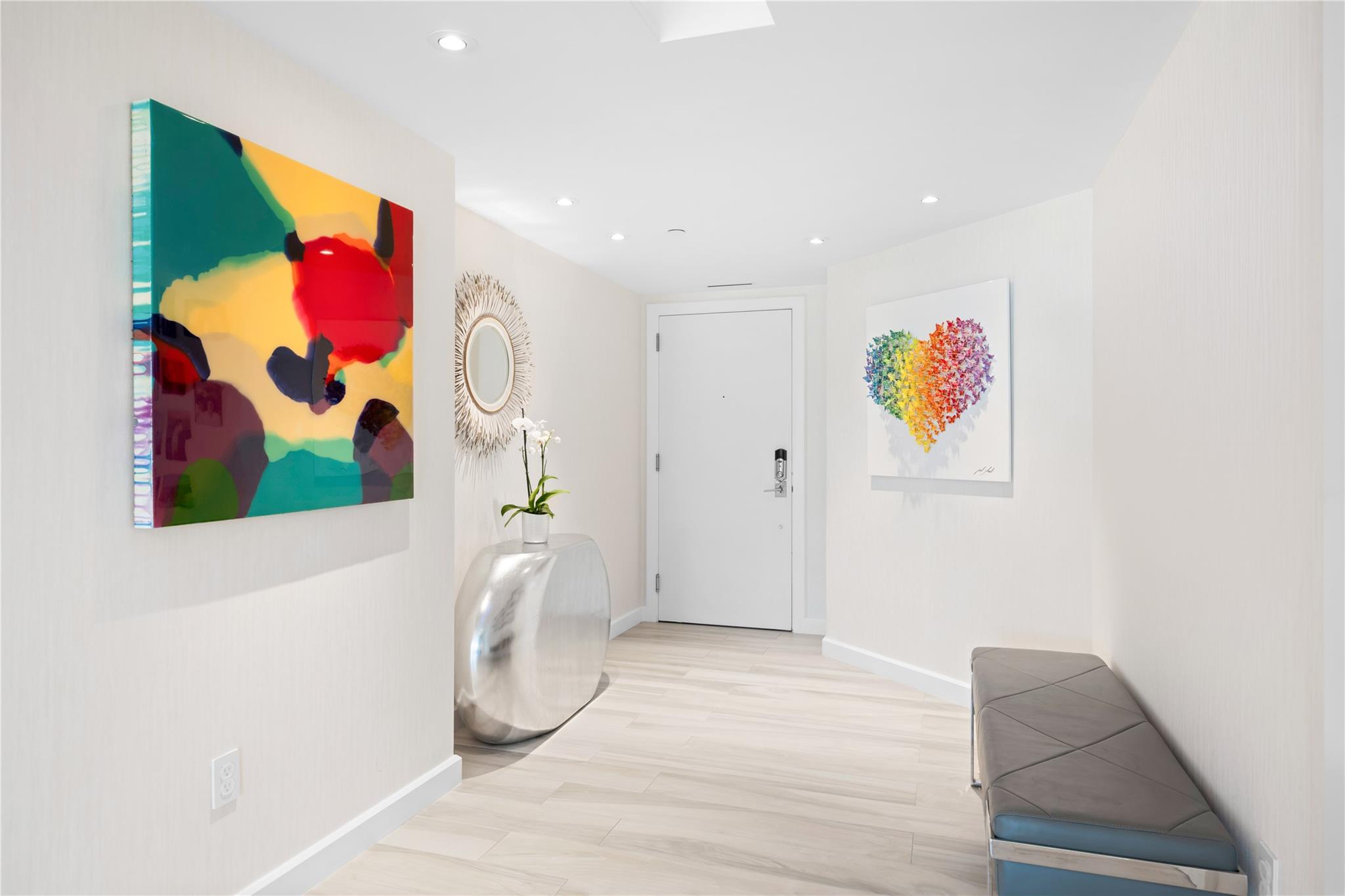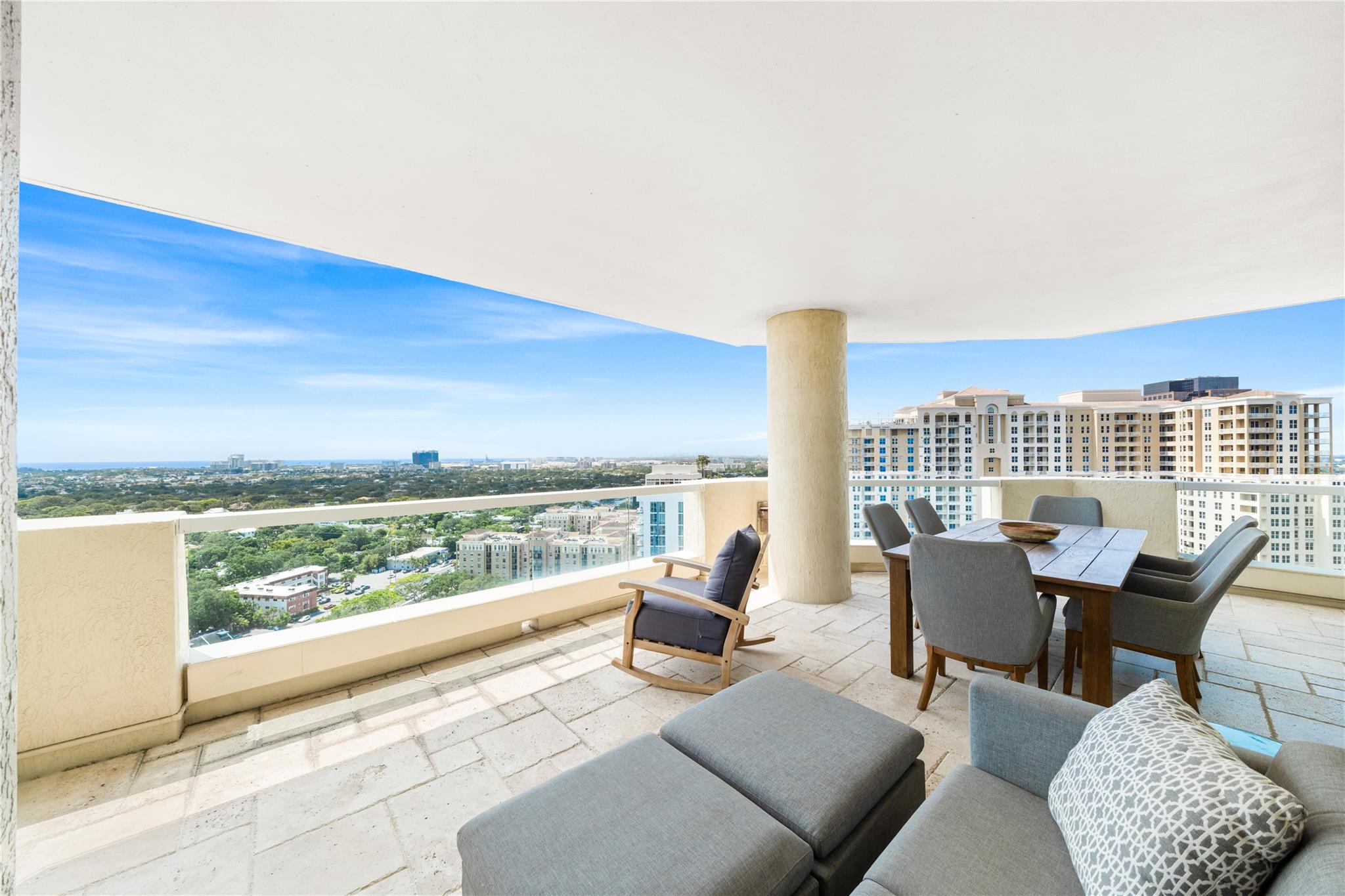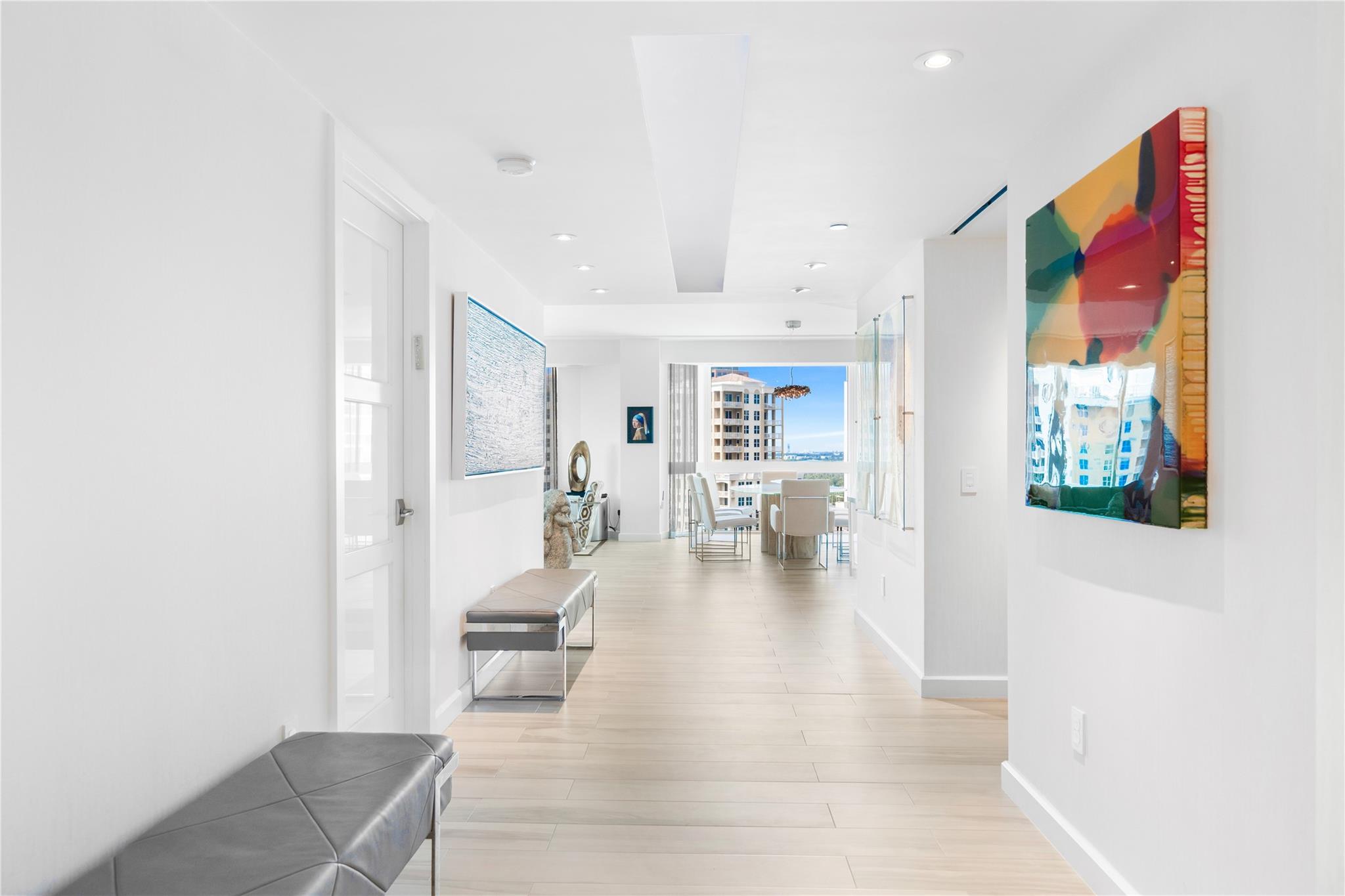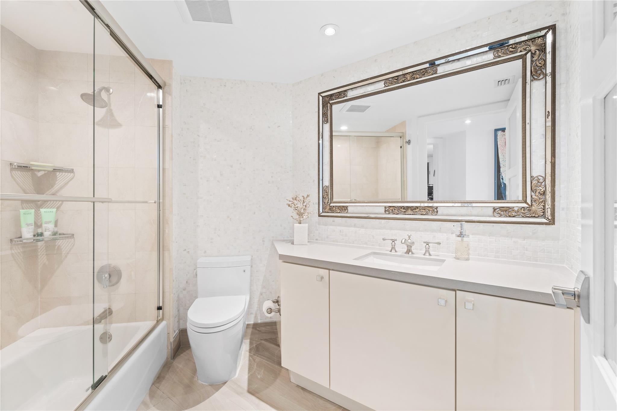 Dramatic ocean, intracoastal & river views! SE Corner Contemporary Residence created & delivered by award winning Causa Design firm! This complete renovation features a gallery like foyer w/ an illuminated custom ceiling, touch of a button smart home system, porcelain floors; leading into a spacious open living area w/ large covered terraces. Customized gourmet kitchen optimizes the space w/quartz stone countertops, expanded cabinetry, top-of-the-line appliances, full mosaic backsplash & Calcutta gold marble bar. The primary suite features a large walk-in closet, beautifully adorned bath w/ full walls of marble stone, soaking tub, Calcutta gold marble vanities & custom lighting. Guest bedrooms feature ensuite baths & city skyline terraces. 2 PARKING SPACES & LARGE STORAGE CAGE INCLUDED