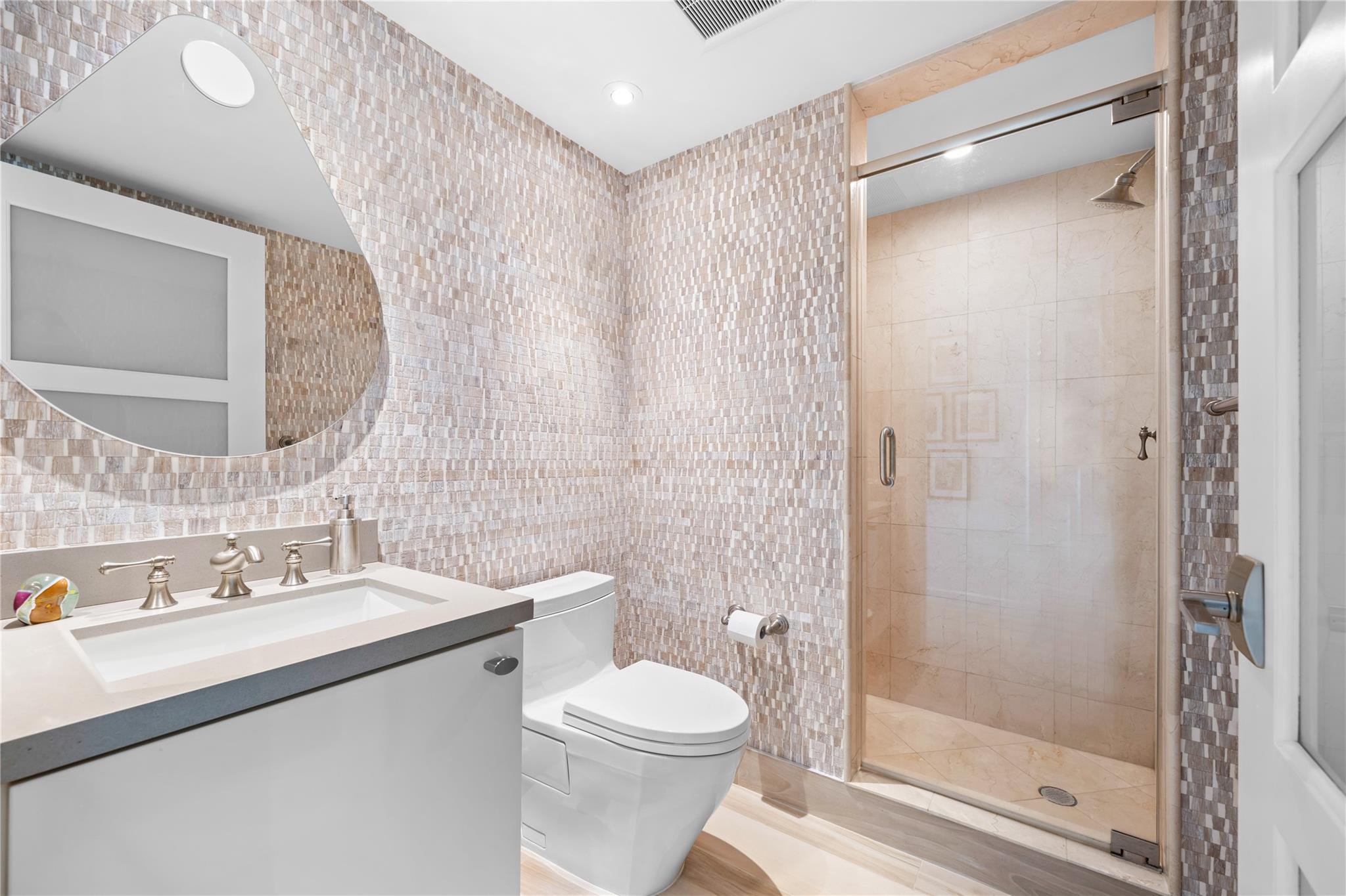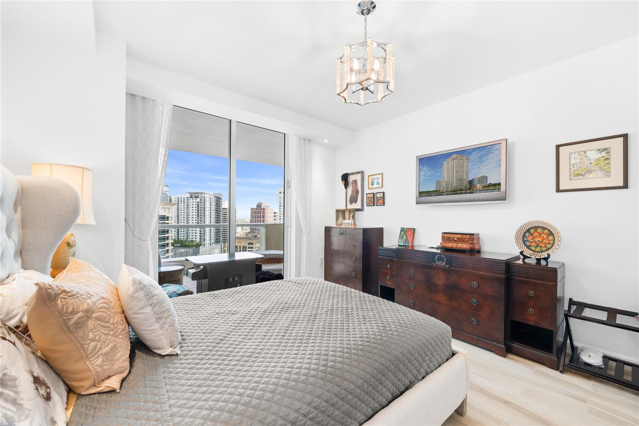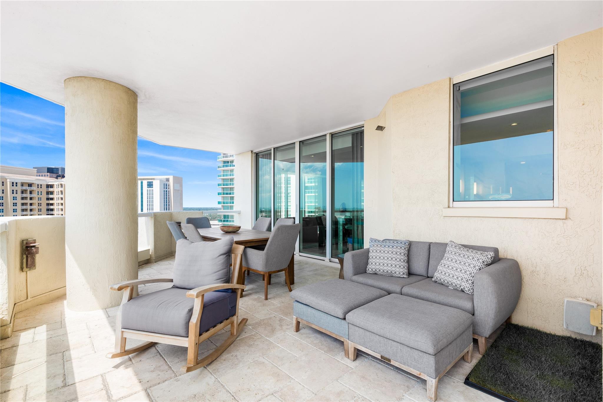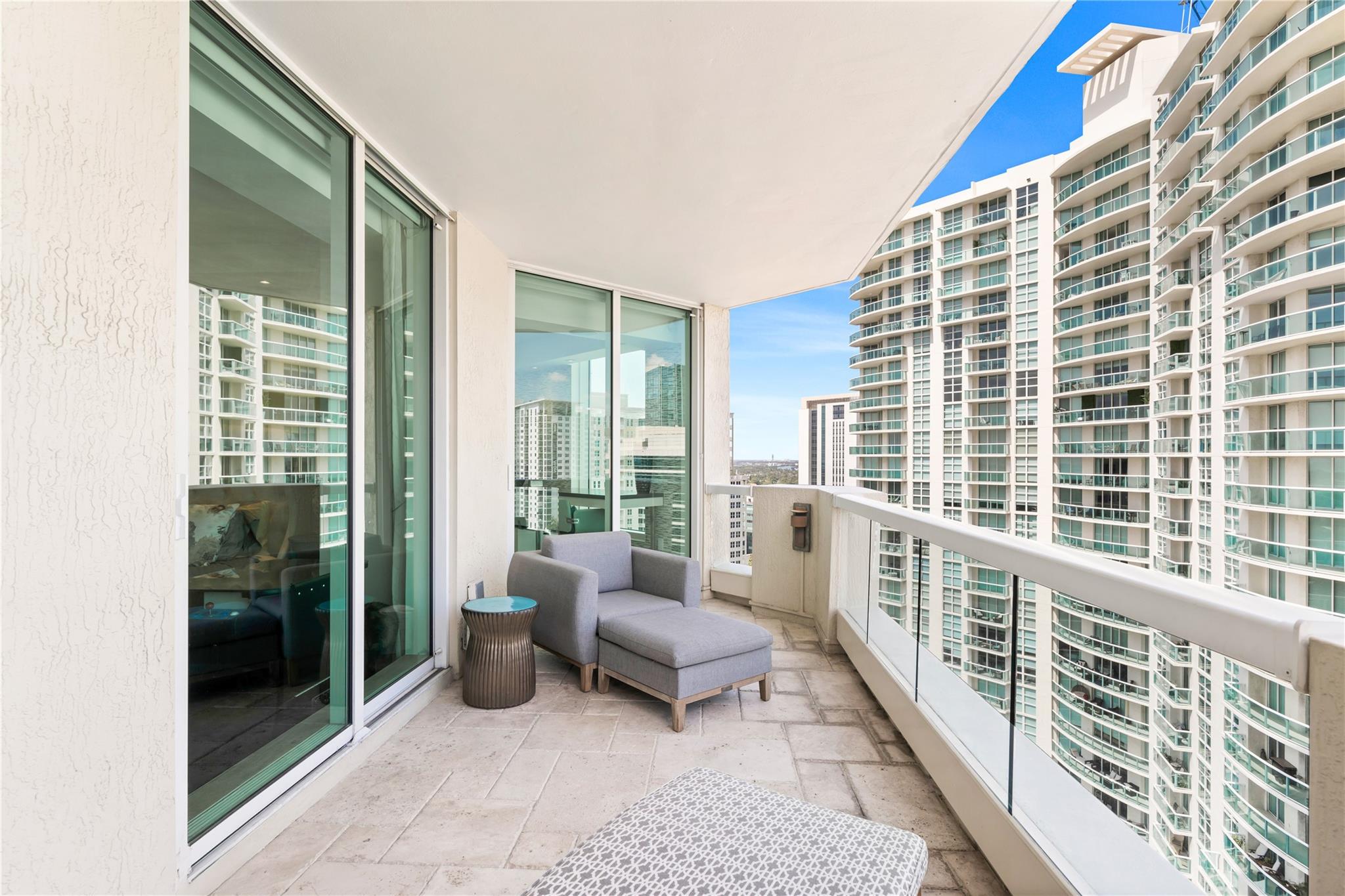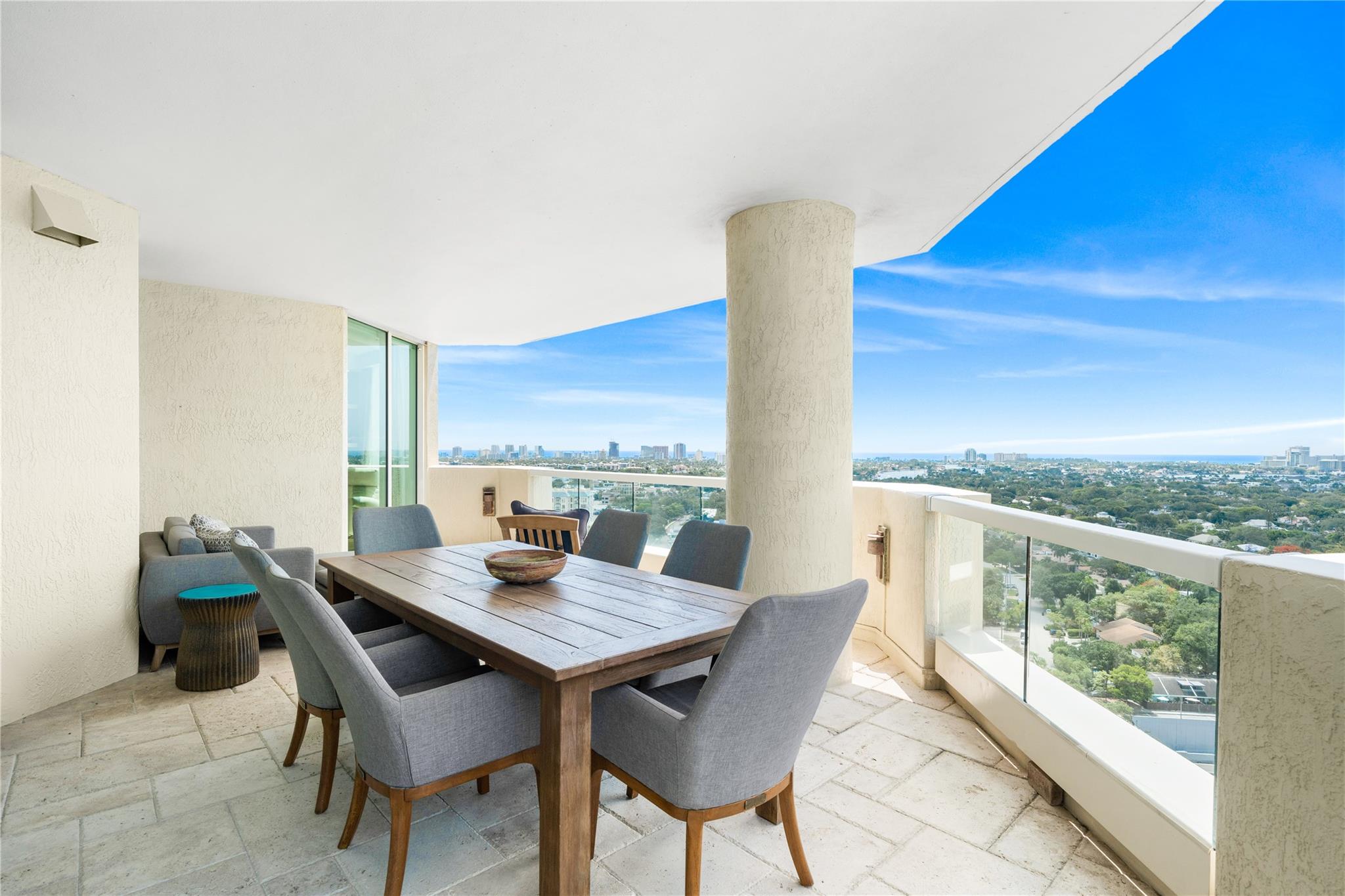 Dramatic ocean, intracoastal & river views! SE Corner Contemporary Residence created & delivered by award winning Causa Design firm! This complete renovation features a gallery like foyer w/ an illuminated custom ceiling, touch of a button smart home system, porcelain floors; leading into a spacious open living area w/ large covered terraces. Customized gourmet kitchen optimizes the space w/quartz stone countertops, expanded cabinetry, top-of-the-line appliances, full mosaic backsplash & Calcutta gold marble bar. The primary suite features a large walk-in closet, beautifully adorned bath w/ full walls of marble stone, soaking tub, Calcutta gold marble vanities & custom lighting. Guest bedrooms feature ensuite baths & city skyline terraces. 2 PARKING SPACES & LARGE STORAGE CAGE INCLUDED