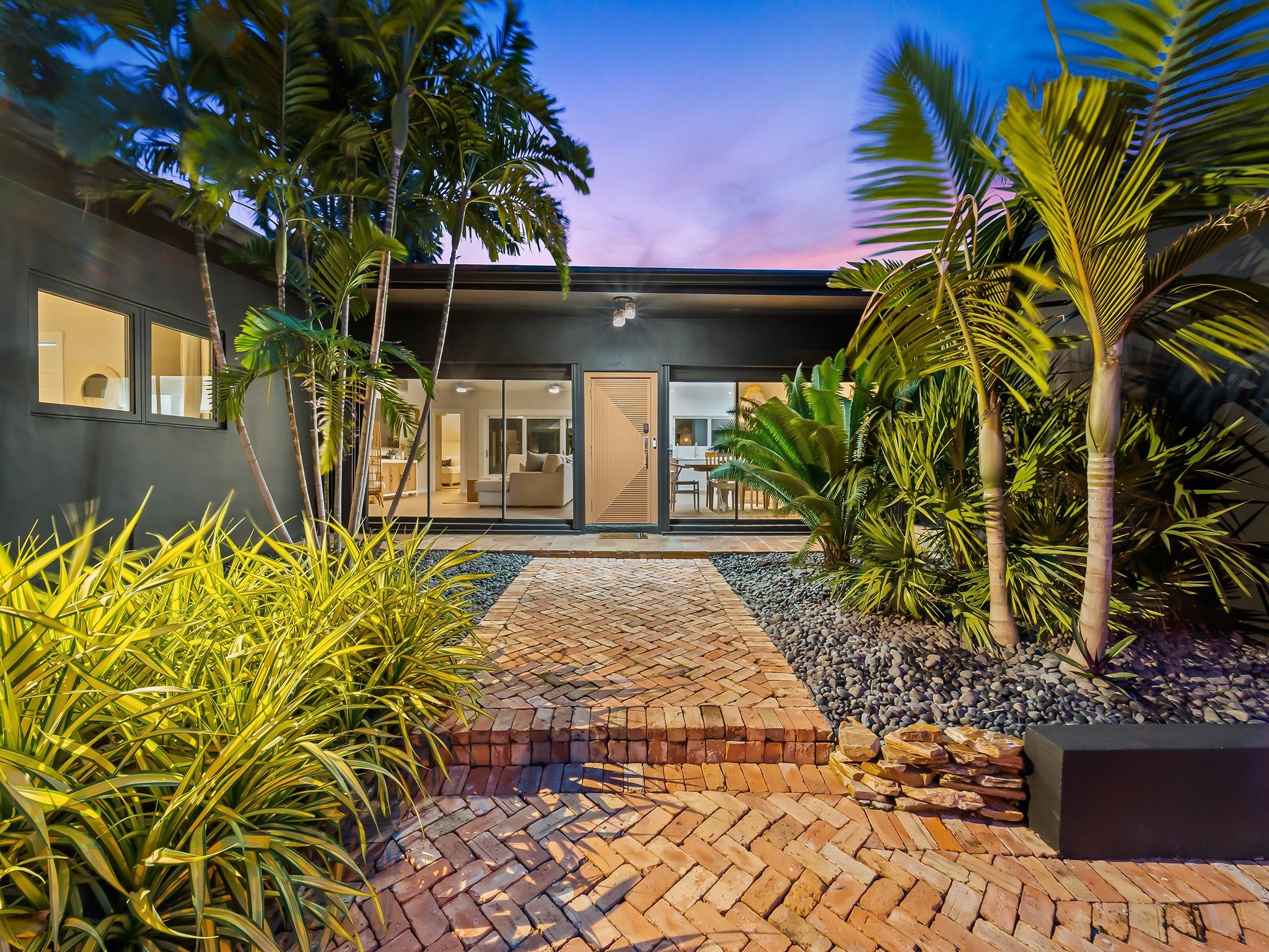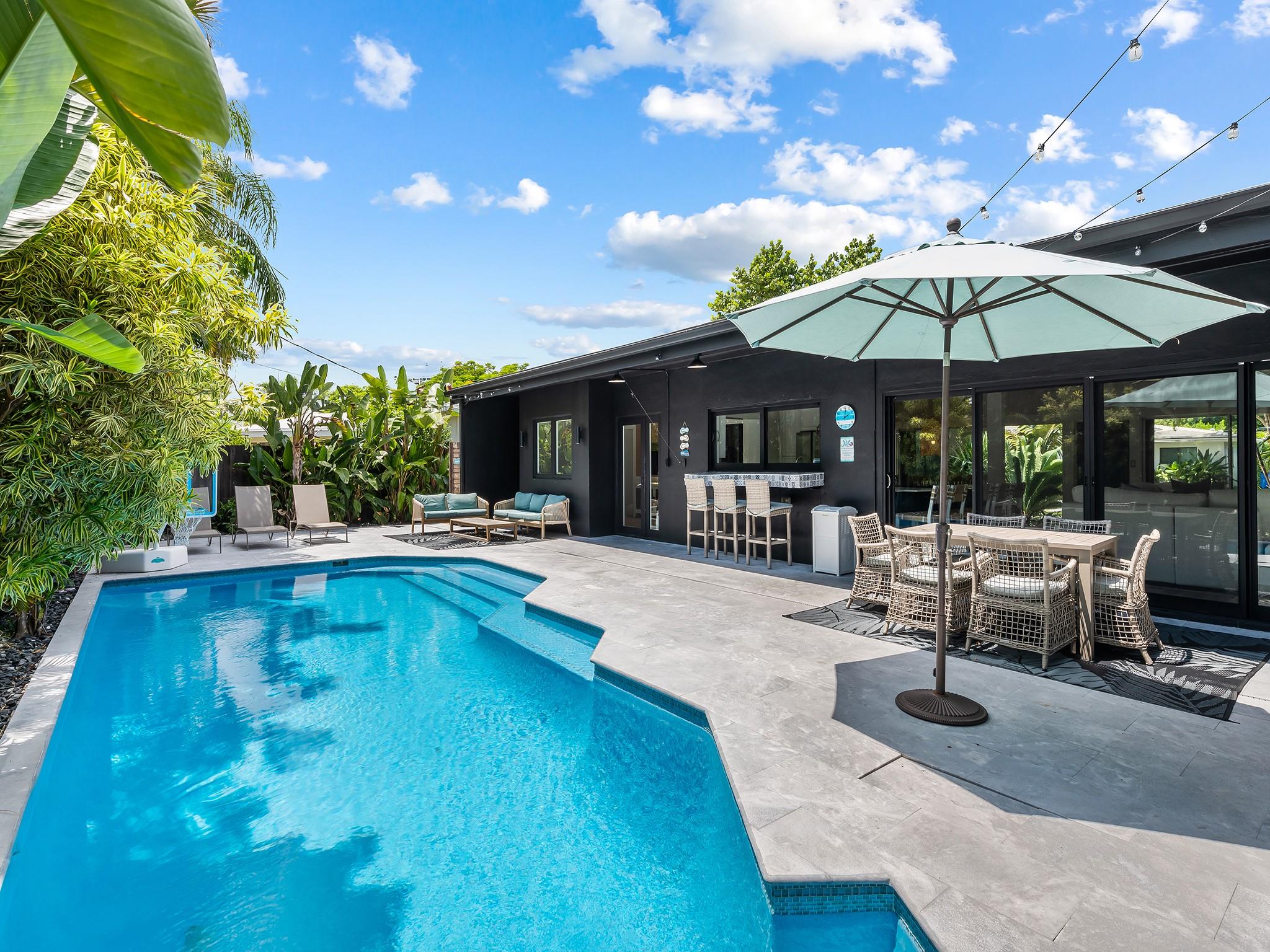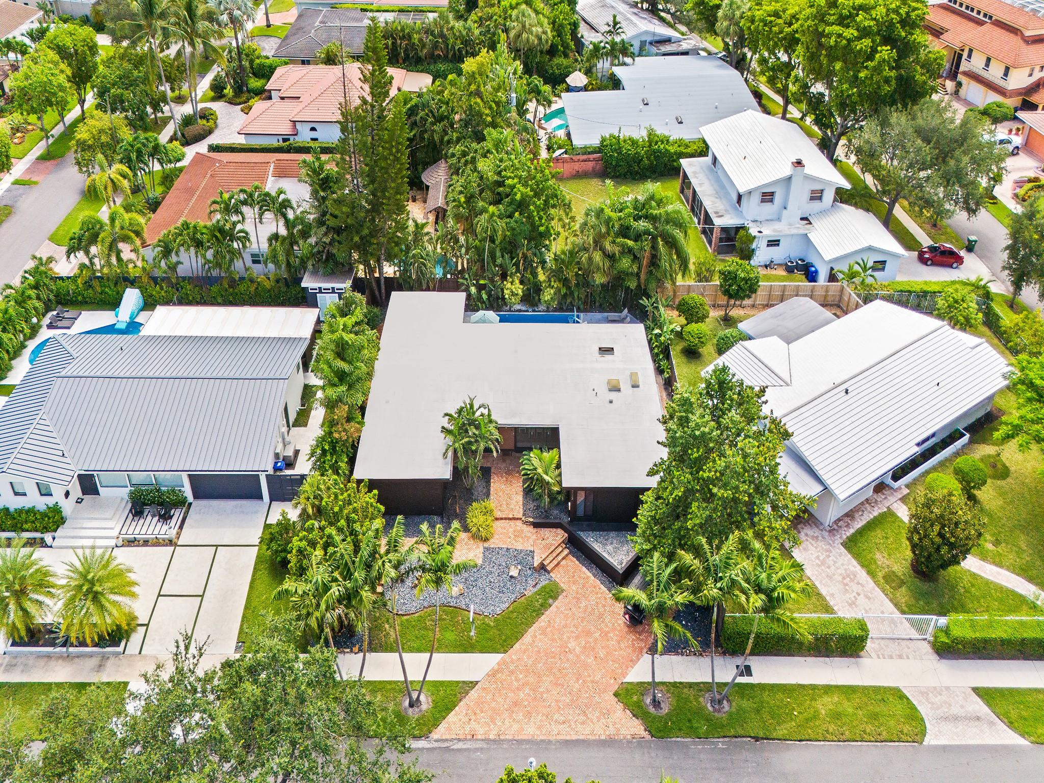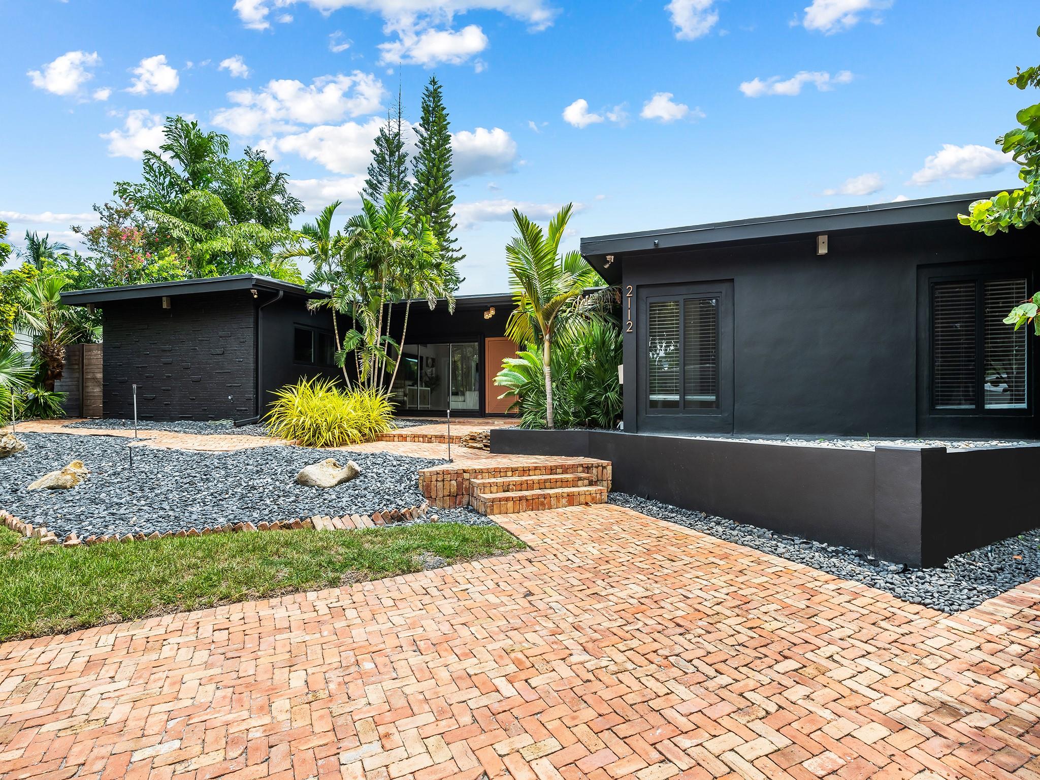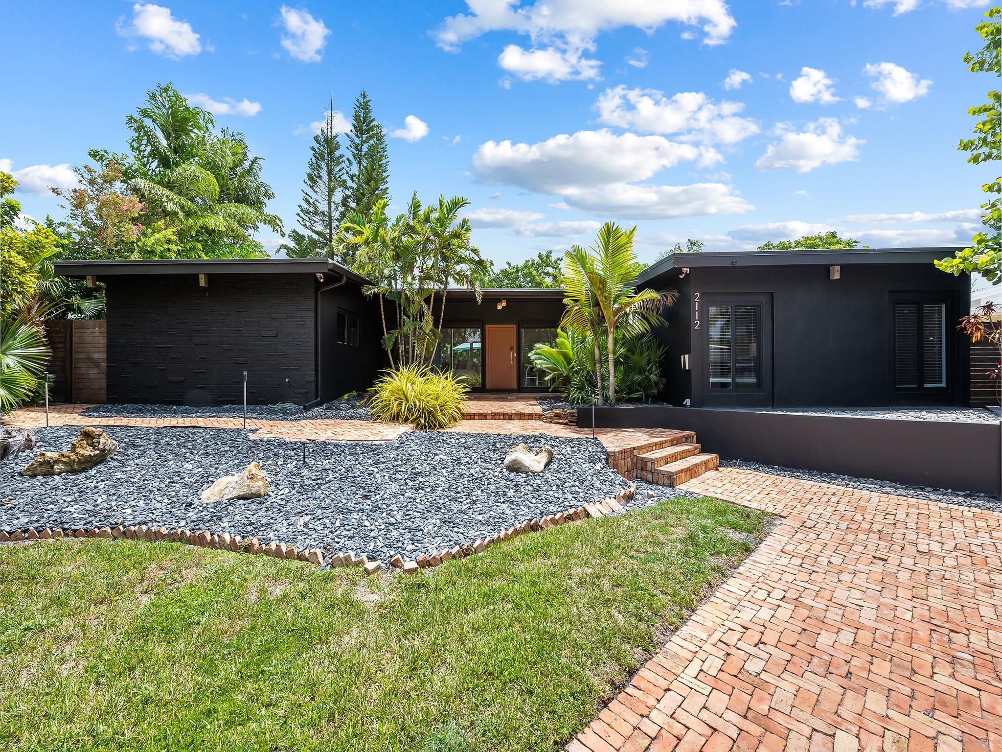 Contemporary architecture & Mid-Century ambiance define this S. Florida tropical oasis. Luminous open concept living spaces harmoniously blend multiple entertaining areas, accentuated with walls of glass, volume & vaulted ceilings & multiple sliding doorways that blend indoor & outdoor living spaces. Lush landscaping frames the oversized heated pool & patio area. The open kitchen outfitted with upgraded appliances overlooks the great room, dining room & intimate family room. The primary suite boasts pool side access, a large walk-in closet & lavish bathrm. The spacious Jr. suite offers expansive closets & private bathroom. Currently operated as a short-term rental property. Walking distance to the beach & mins. to restaurants & shopping. Sq. Ft. from BCPA.