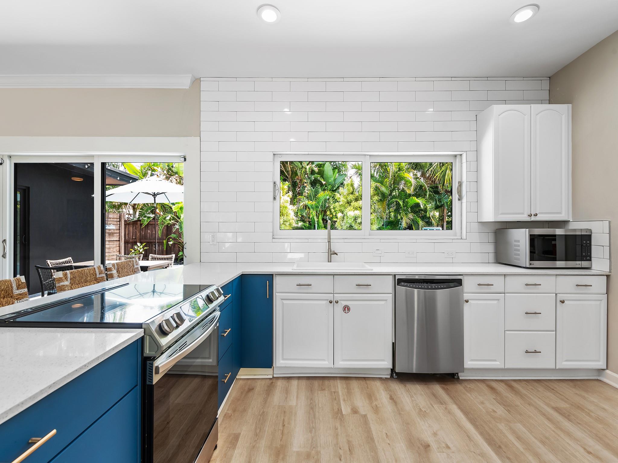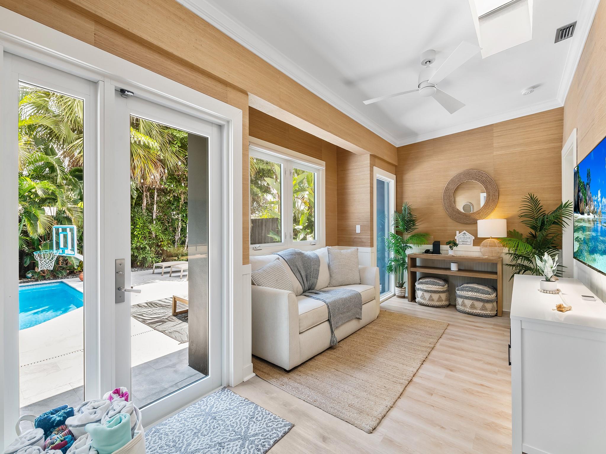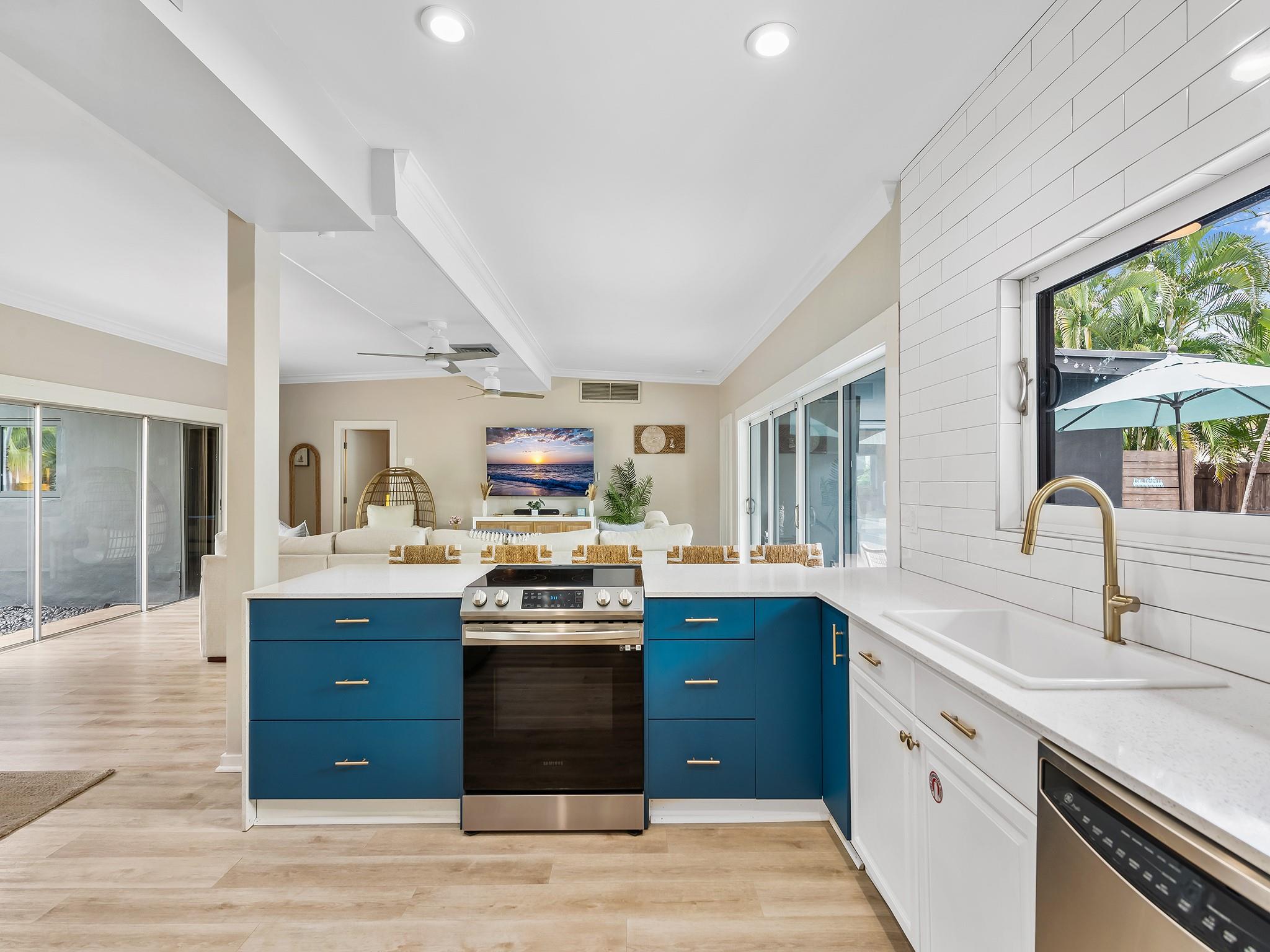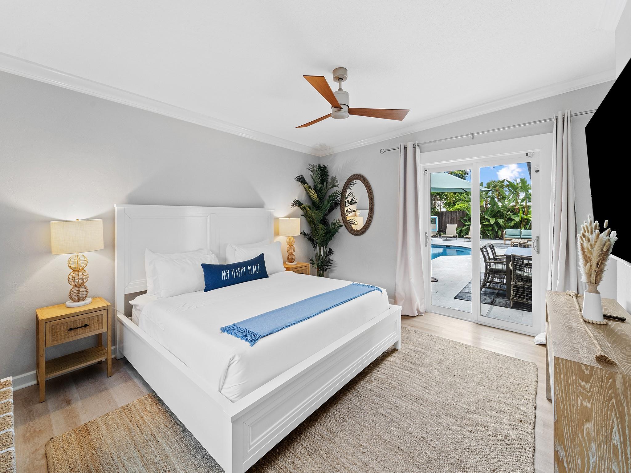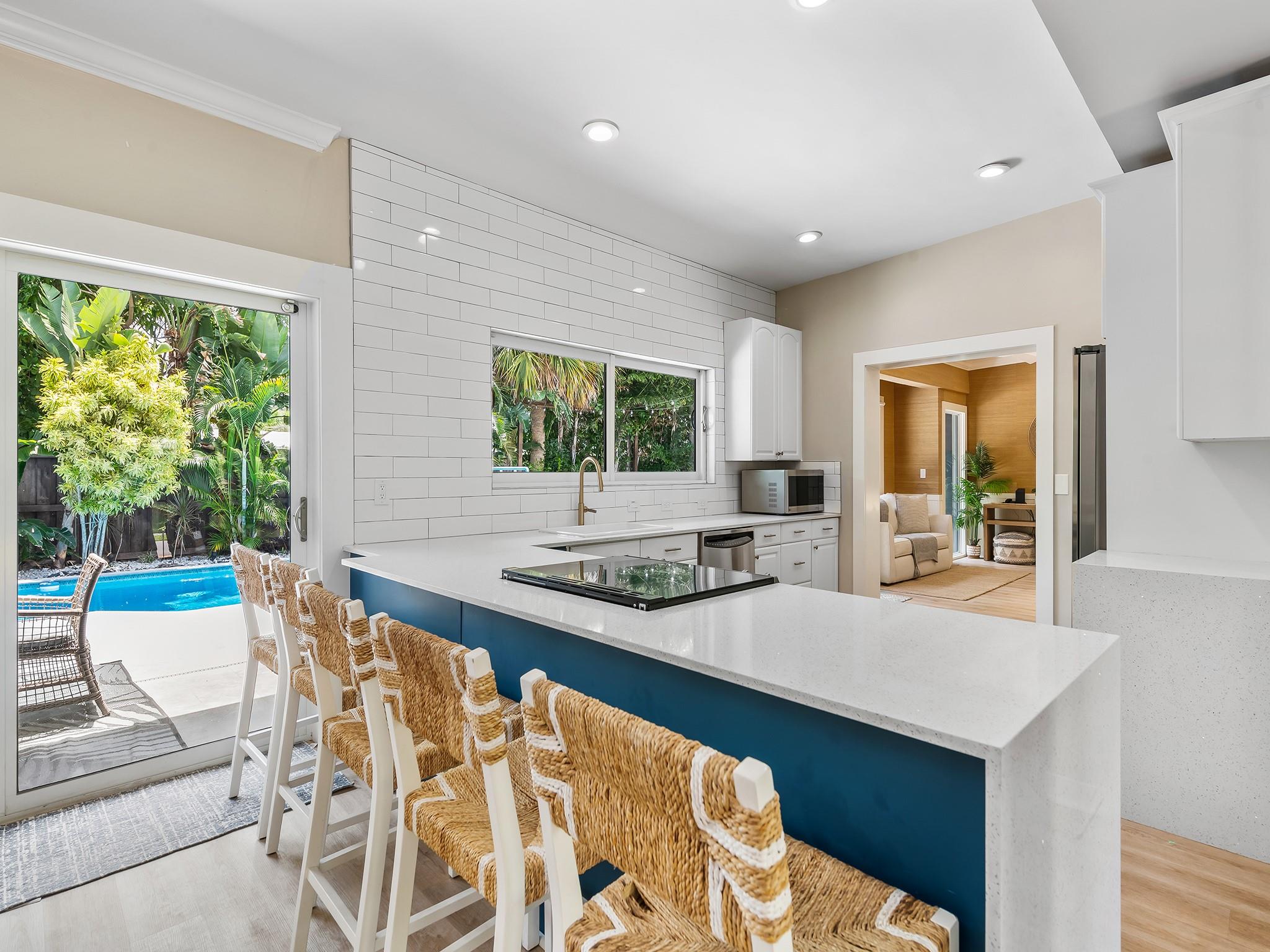 Contemporary architecture & Mid-Century ambiance define this S. Florida tropical oasis. Luminous open concept living spaces harmoniously blend multiple entertaining areas, accentuated with walls of glass, volume & vaulted ceilings & multiple sliding doorways that blend indoor & outdoor living spaces. Lush landscaping frames the oversized heated pool & patio area. The open kitchen outfitted with upgraded appliances overlooks the great room, dining room & intimate family room. The primary suite boasts pool side access, a large walk-in closet & lavish bathrm. The spacious Jr. suite offers expansive closets & private bathroom. Currently operated as a short-term rental property. Walking distance to the beach & mins. to restaurants & shopping. Sq. Ft. from BCPA.