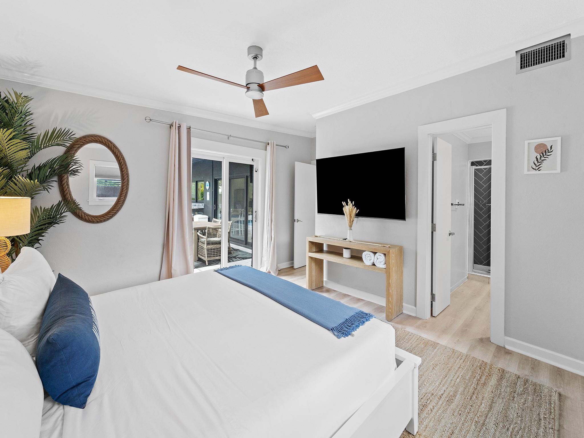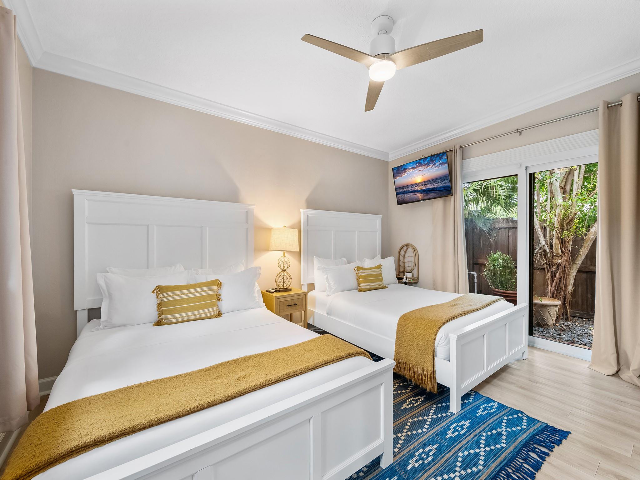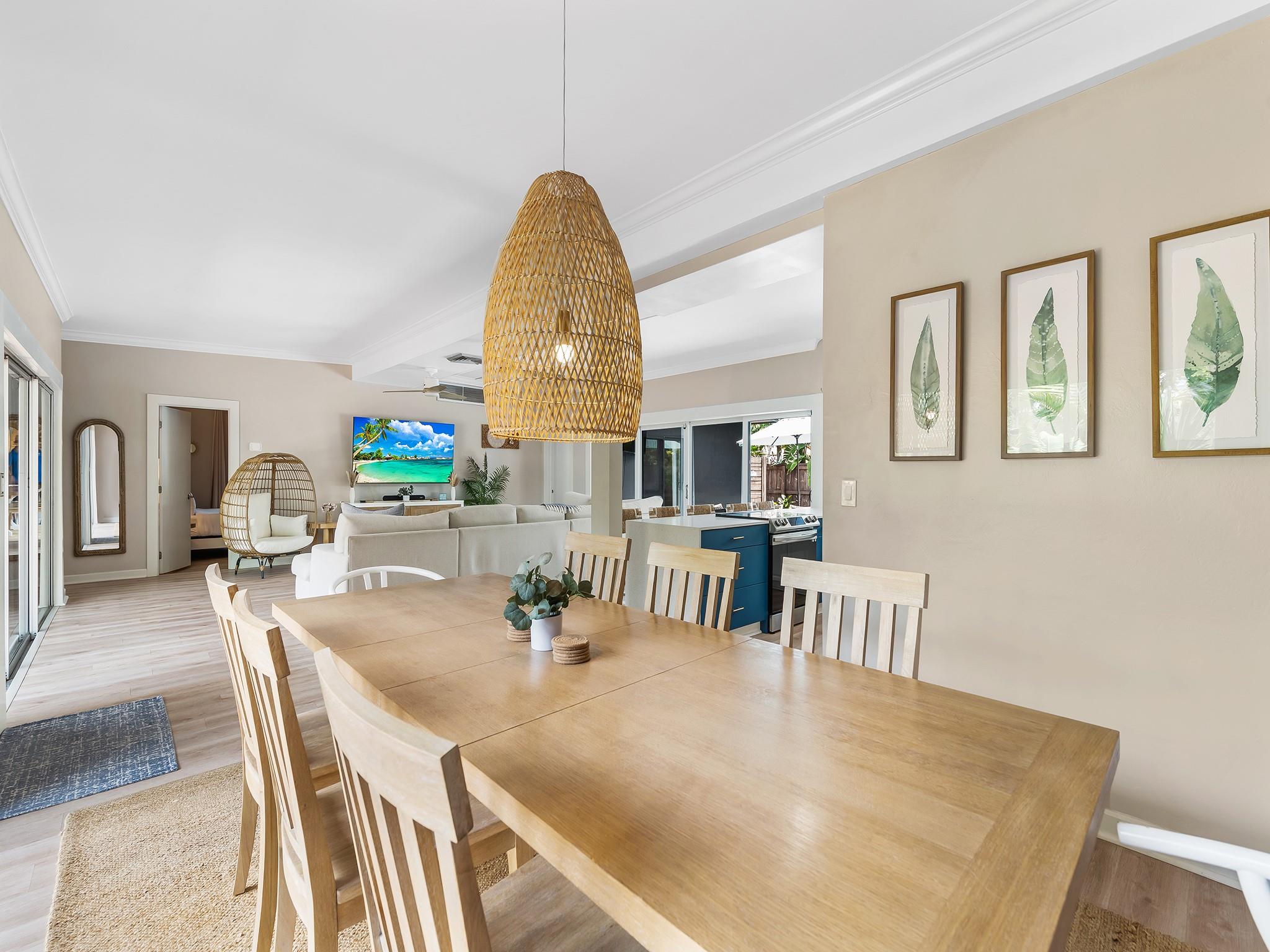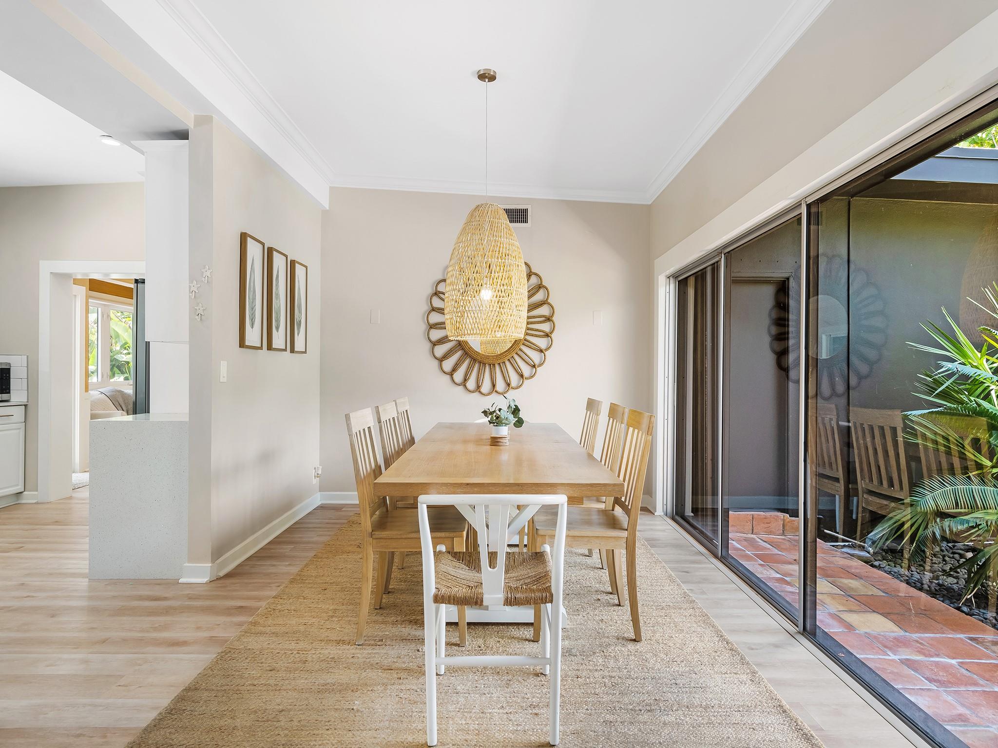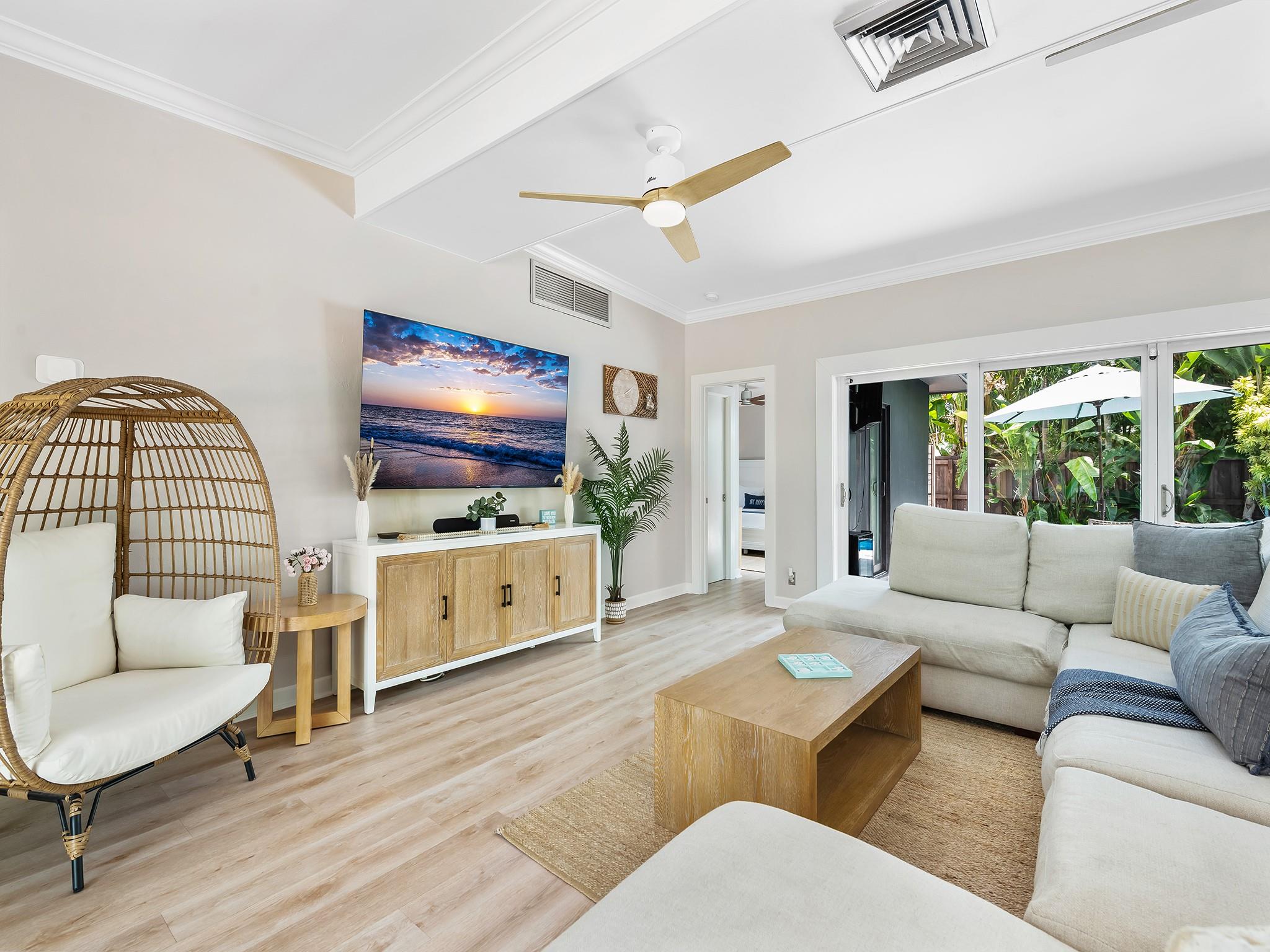 Contemporary architecture & Mid-Century ambiance define this S. Florida tropical oasis. Luminous open concept living spaces harmoniously blend multiple entertaining areas, accentuated with walls of glass, volume & vaulted ceilings & multiple sliding doorways that blend indoor & outdoor living spaces. Lush landscaping frames the oversized heated pool & patio area. The open kitchen outfitted with upgraded appliances overlooks the great room, dining room & intimate family room. The primary suite boasts pool side access, a large walk-in closet & lavish bathrm. The spacious Jr. suite offers expansive closets & private bathroom. Currently operated as a short-term rental property. Walking distance to the beach & mins. to restaurants & shopping. Sq. Ft. from BCPA.