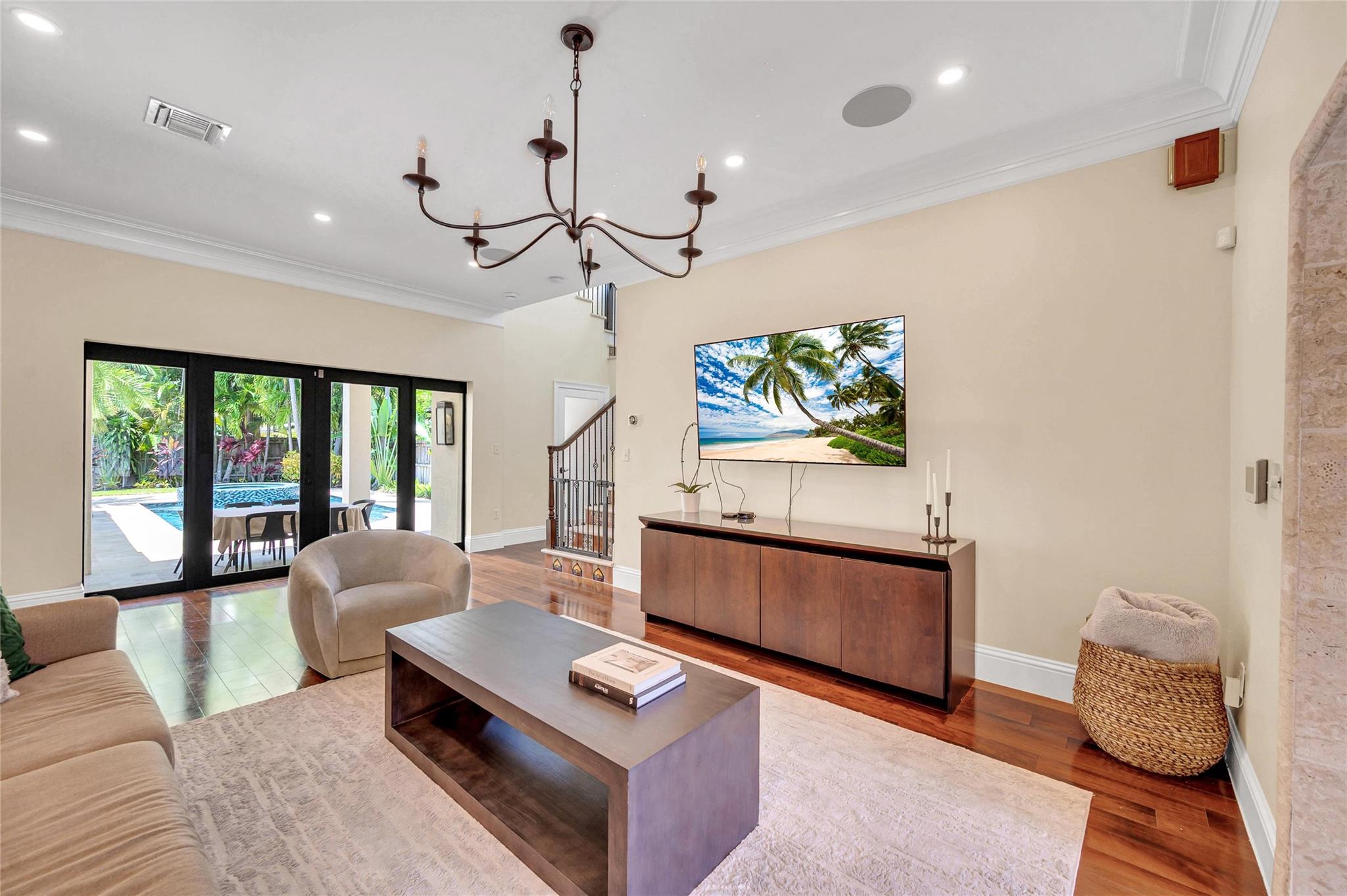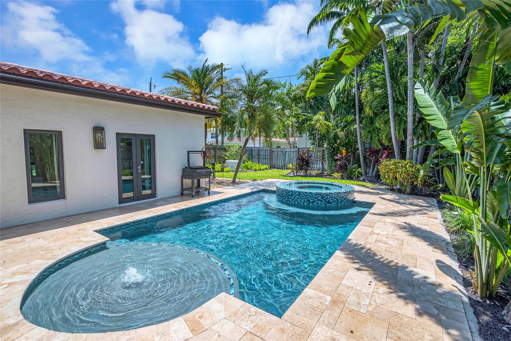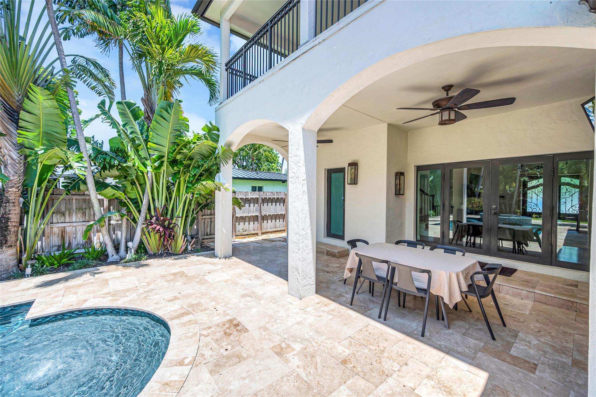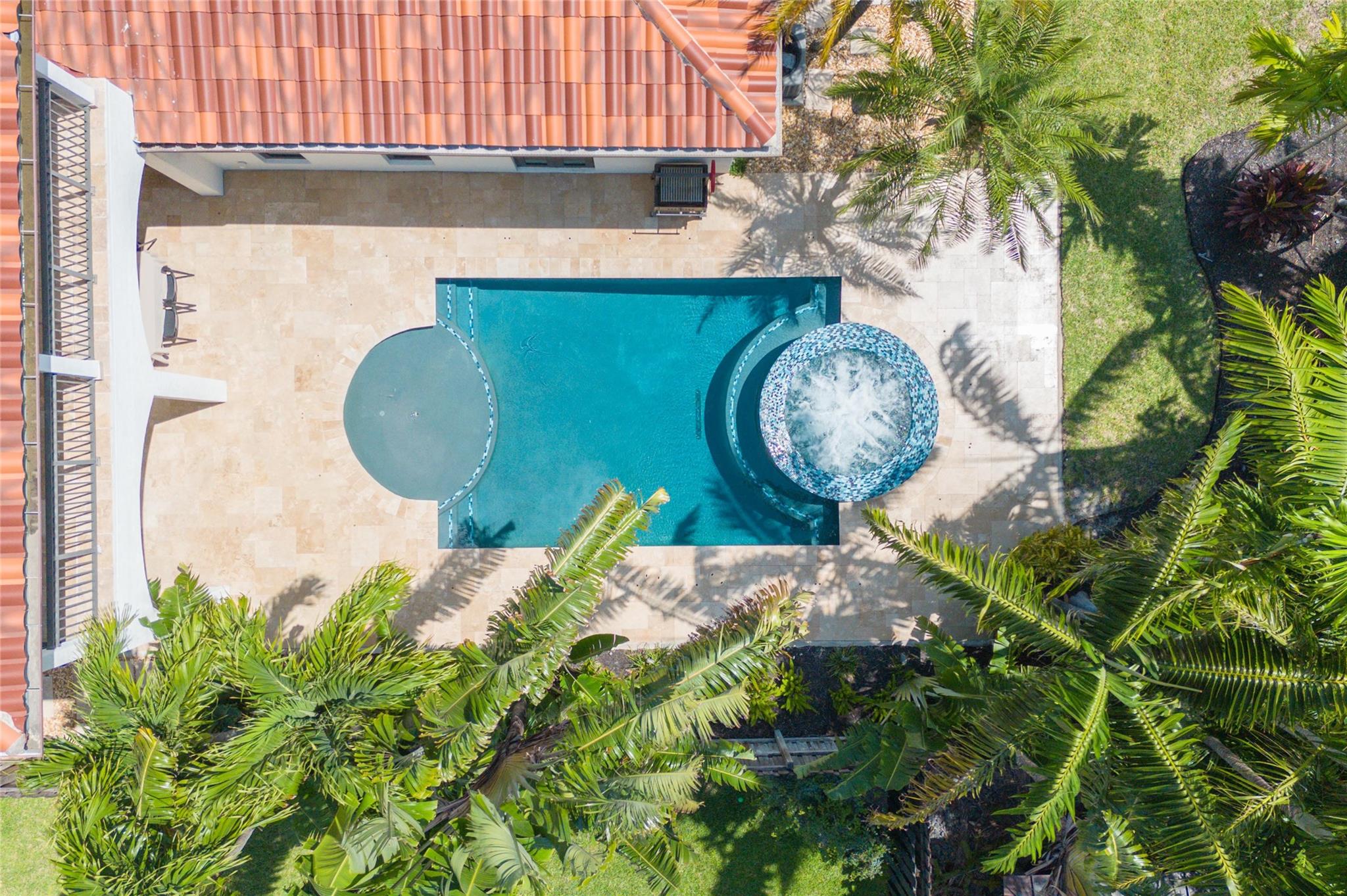 On one of Victoria Park's prettiest streets, this expanded and renovated home offers three bedrooms, a loft den, and an office. A welcoming porch leads to a bright great room with high ceilings, recessed lighting, and an open dining/kitchen area. Walls of impact-rated glass reveal a roofed terrace and a stunning pool with a sun shelf and waterfall spa. The main floor includes a large office/den and a VIP suite with yard access. The kitchen boasts top-tier appliances: WOLF gas range, SubZero fridge, wine chiller, and microwave. Upstairs, a loft opens to a wide terrace. The primary suite features a custom wardrobe, steam shower, and jetted tub. A spacious third bedroom and laundry complete this level.