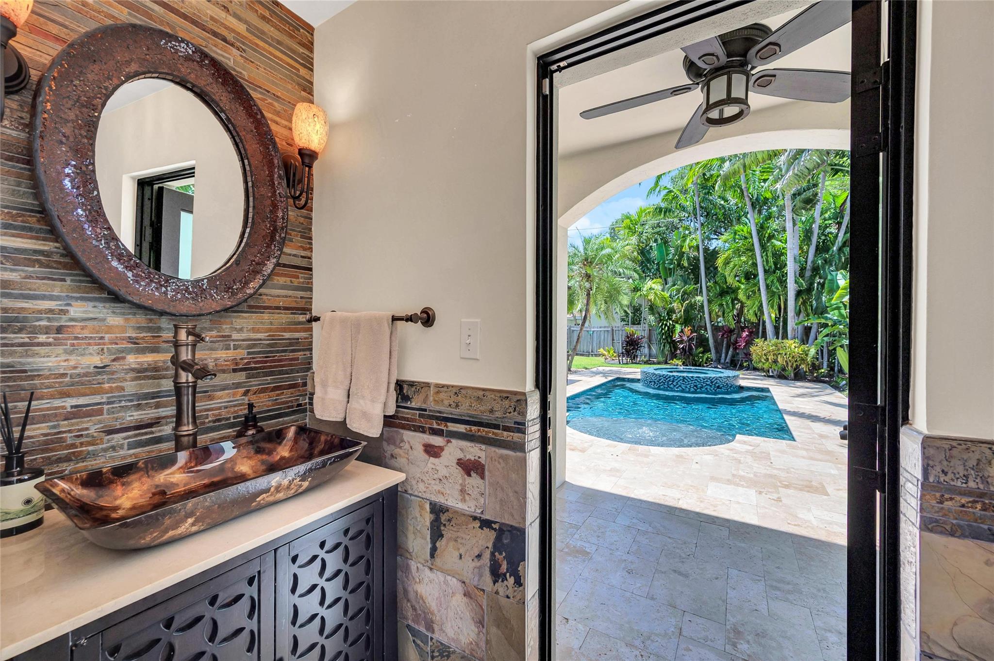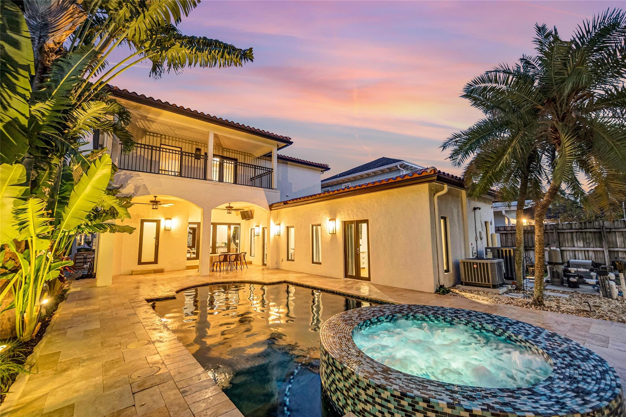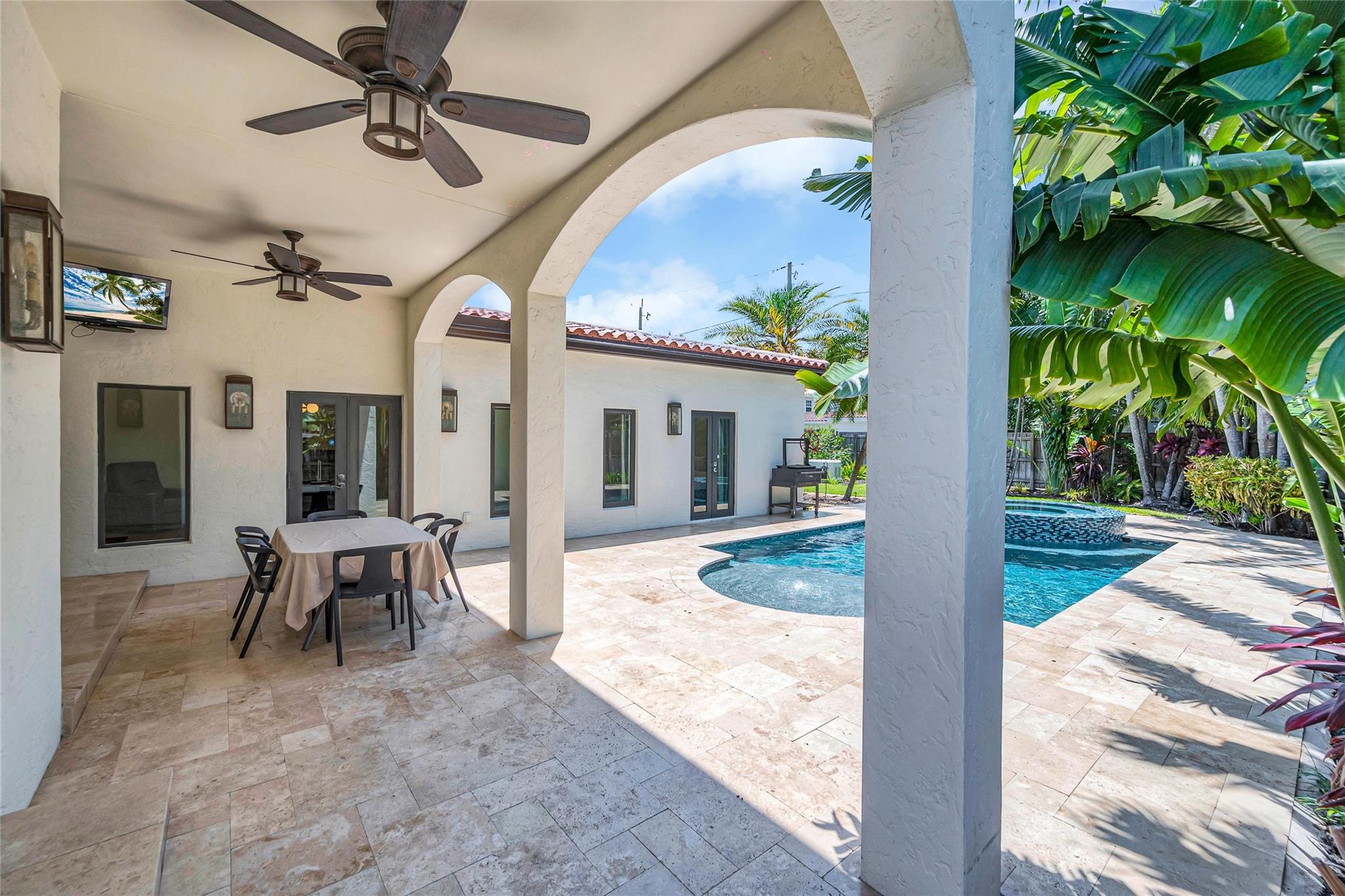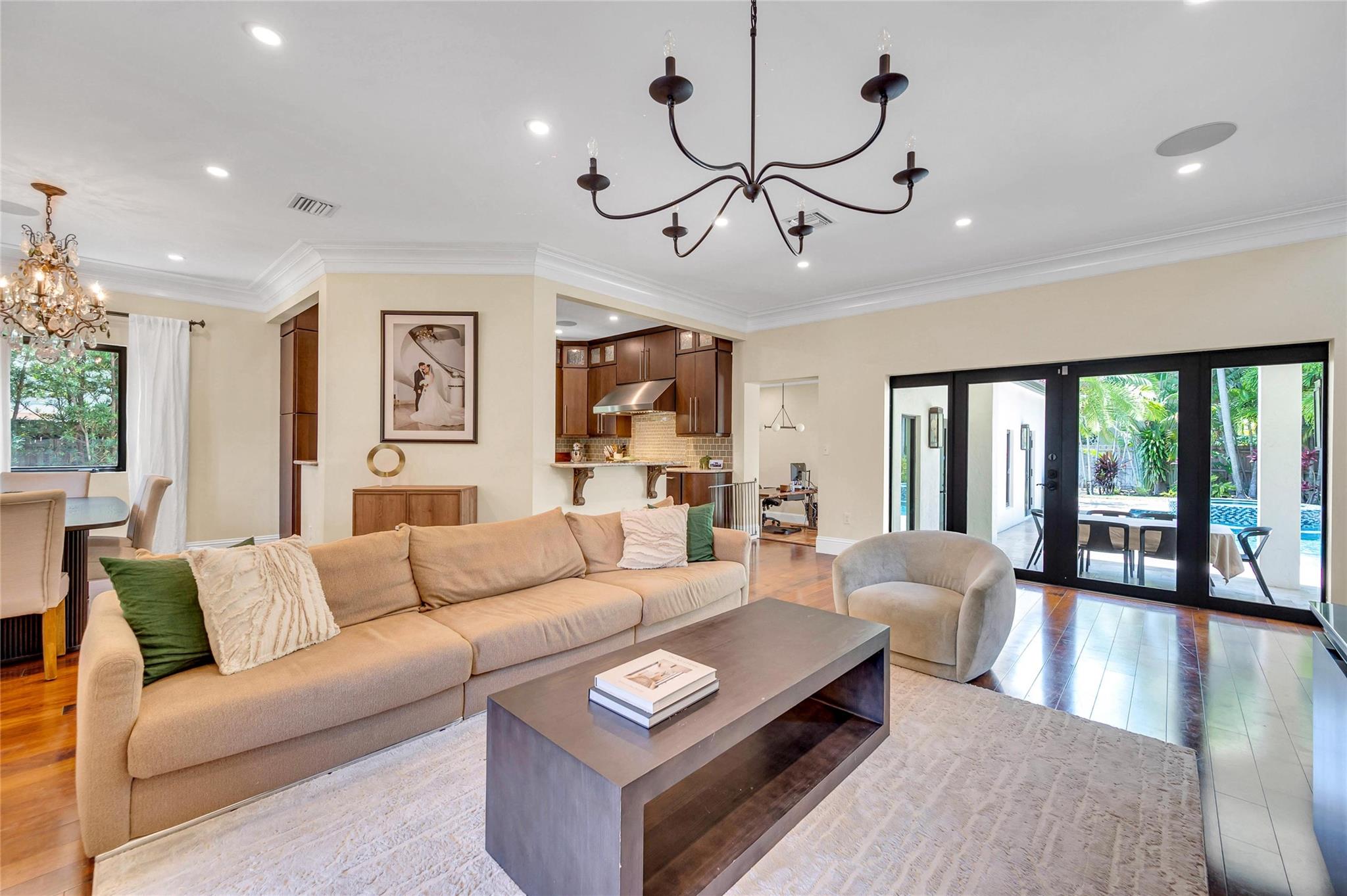 On one of Victoria Park's prettiest streets, this expanded and renovated home offers three bedrooms, a loft den, and an office. A welcoming porch leads to a bright great room with high ceilings, recessed lighting, and an open dining/kitchen area. Walls of impact-rated glass reveal a roofed terrace and a stunning pool with a sun shelf and waterfall spa. The main floor includes a large office/den and a VIP suite with yard access. The kitchen boasts top-tier appliances: WOLF gas range, SubZero fridge, wine chiller, and microwave. Upstairs, a loft opens to a wide terrace. The primary suite features a custom wardrobe, steam shower, and jetted tub. A spacious third bedroom and laundry complete this level.