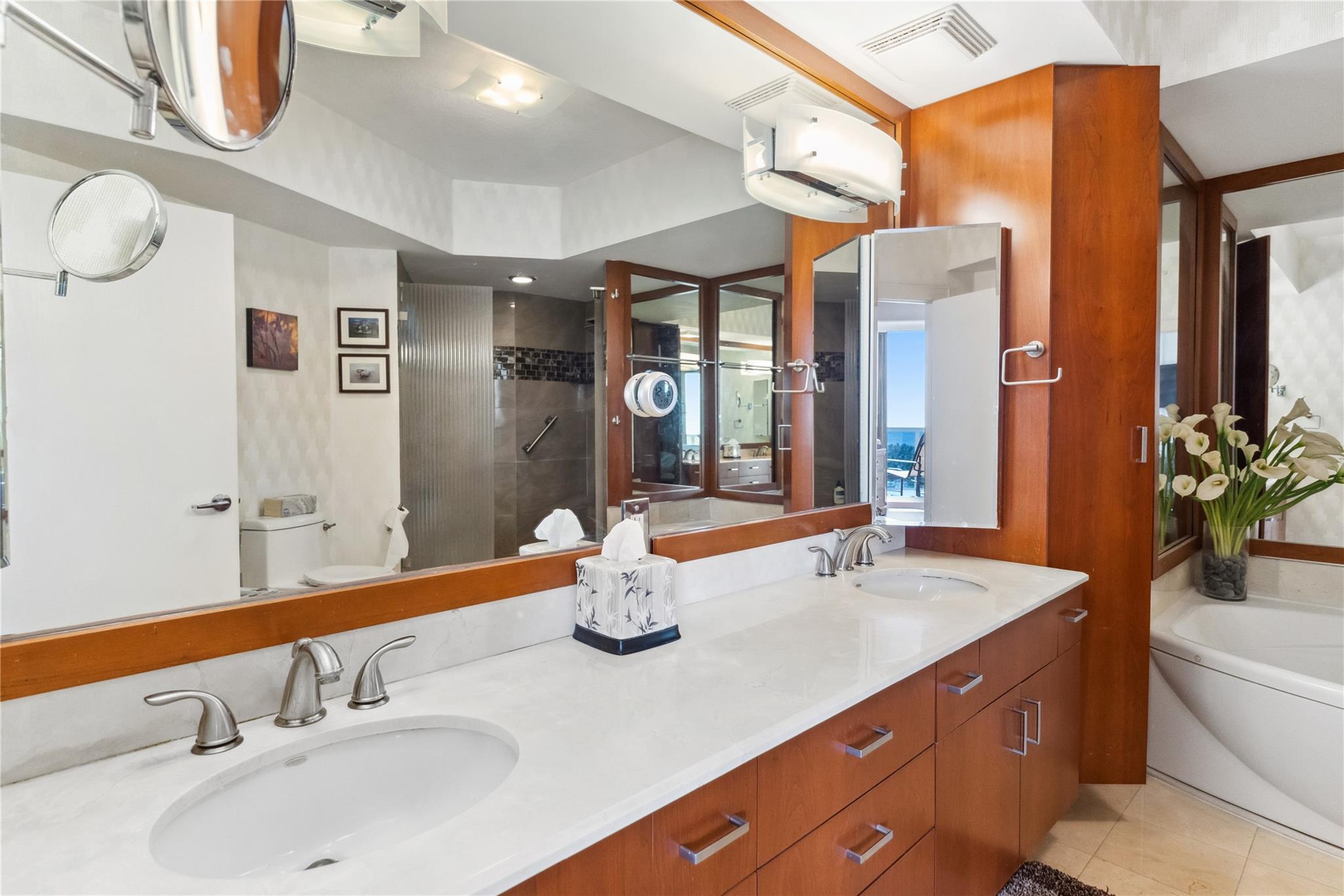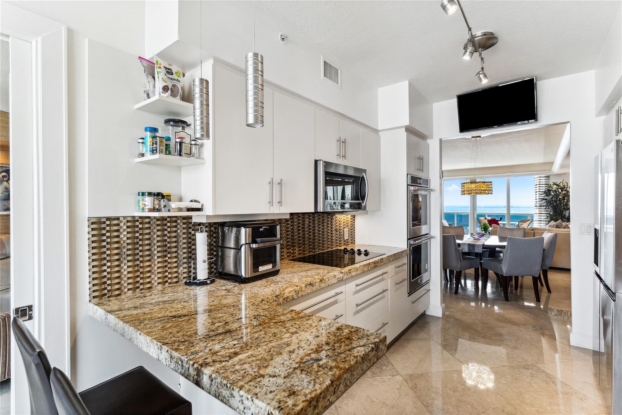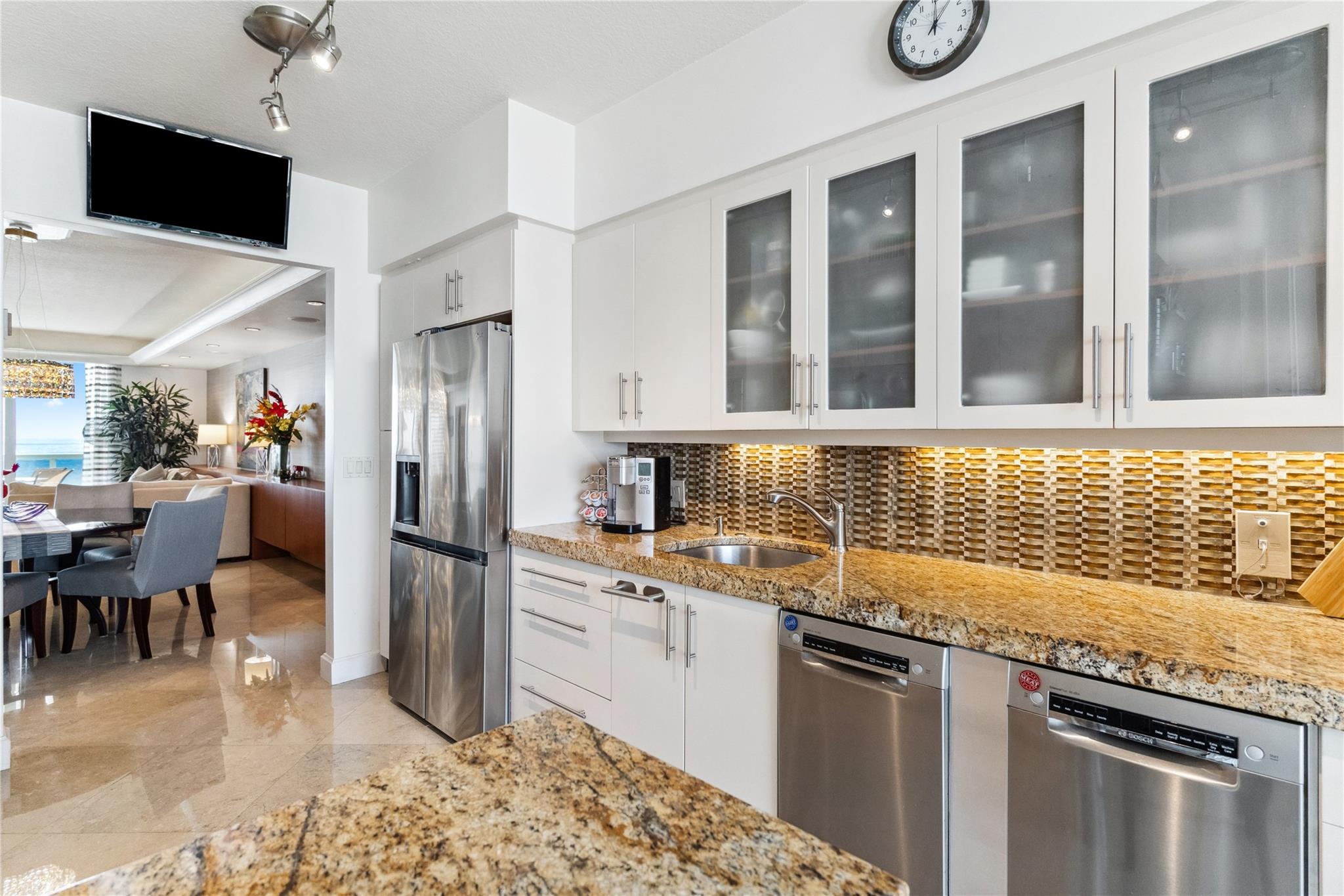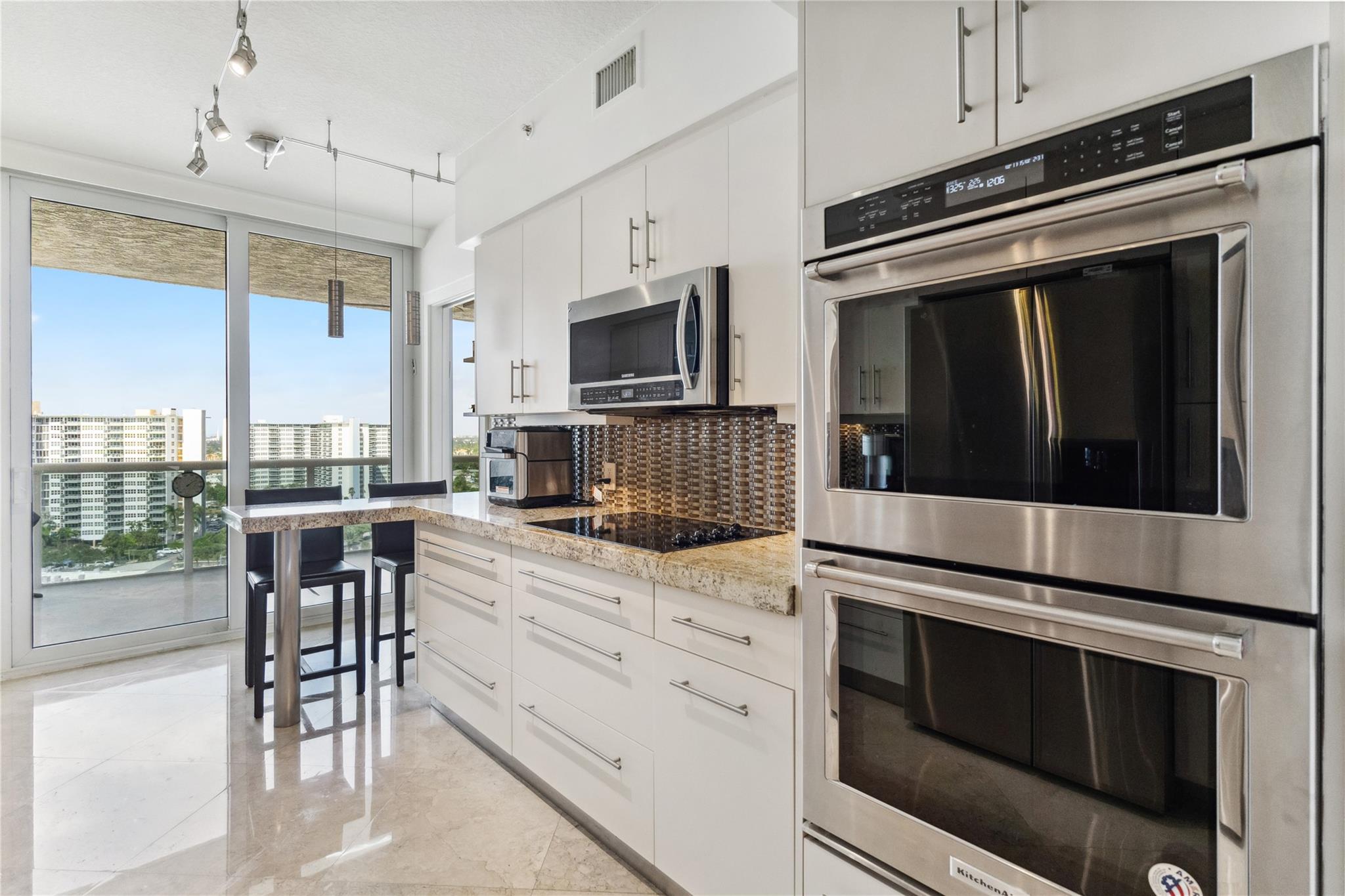 SUNNY SOUTHEAST EXPOSURE.. Sophisticated furnished model..move right in ! TWO TERRACES. Marble floors. HURRICANE IMPACT WINDOWS. Updated kitchen w dual (Kosher) dishwashers. Second bedroom is a den with sliding enclosure. 3rd bedroom has built in wall bed. SELF PARKING SPACE in garage PLUS valet guest parking. RESORT-like living with poolside restaurant , concierge, valet, 2 pools, 2 spas, 2 tennis courts, private beach pavilion with attendant, cabanas, tikis and BBQ area. 2 pets, any size , ok. EASY TO SEE