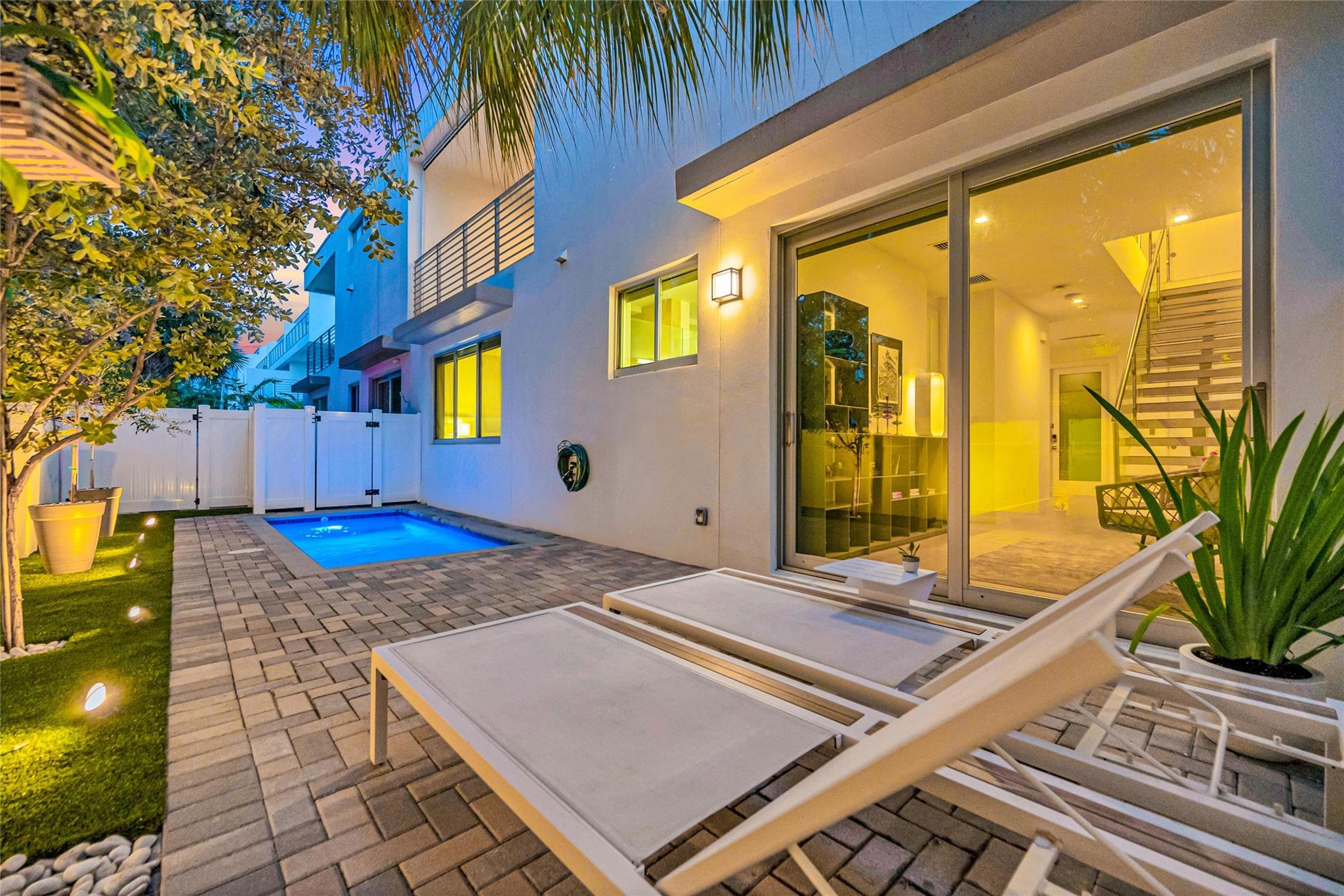Favorably situated just a few blocks north of desirable Las Olas, this stunning, newly developed townhome offers a peaceful and refined living experience. Featuring two spacious primary bedrooms with walk-in closets and dual sinks, this three-bedroom, three-and-a-half-bathroom residence ensures luxurious living. Enjoy quiet mornings on the screened-in patio or take a refreshing dip in your private pool. Abundant natural light floods the home through stackable sliding doors, enhancing elegant interiors with raised ceilings. The unit includes ample living space for a home office and has a private elevator for convenience. It is also equipped with advanced air purification and water filtration systems, ensuring a healthy and comfortable environment and is offered fully furnished as an option.
