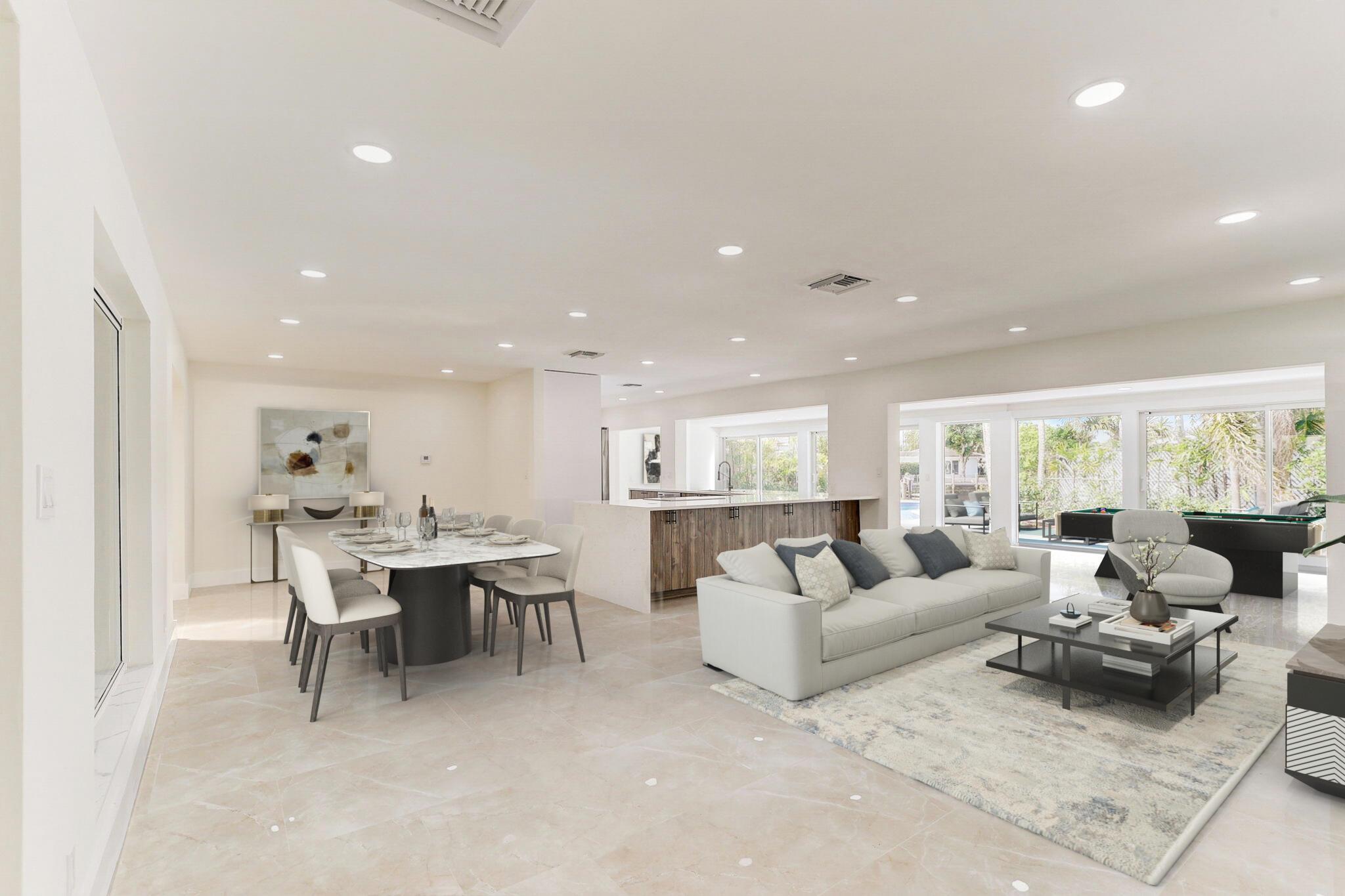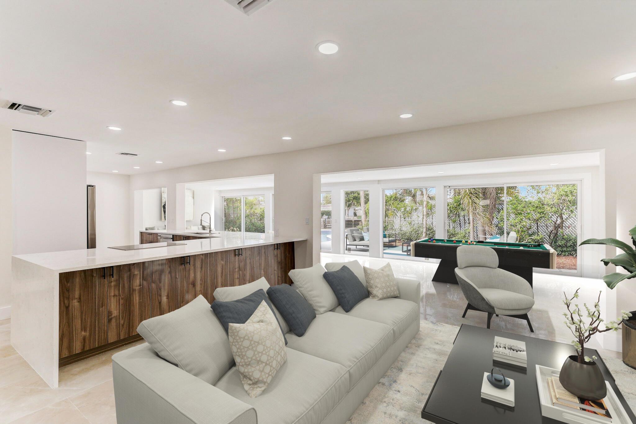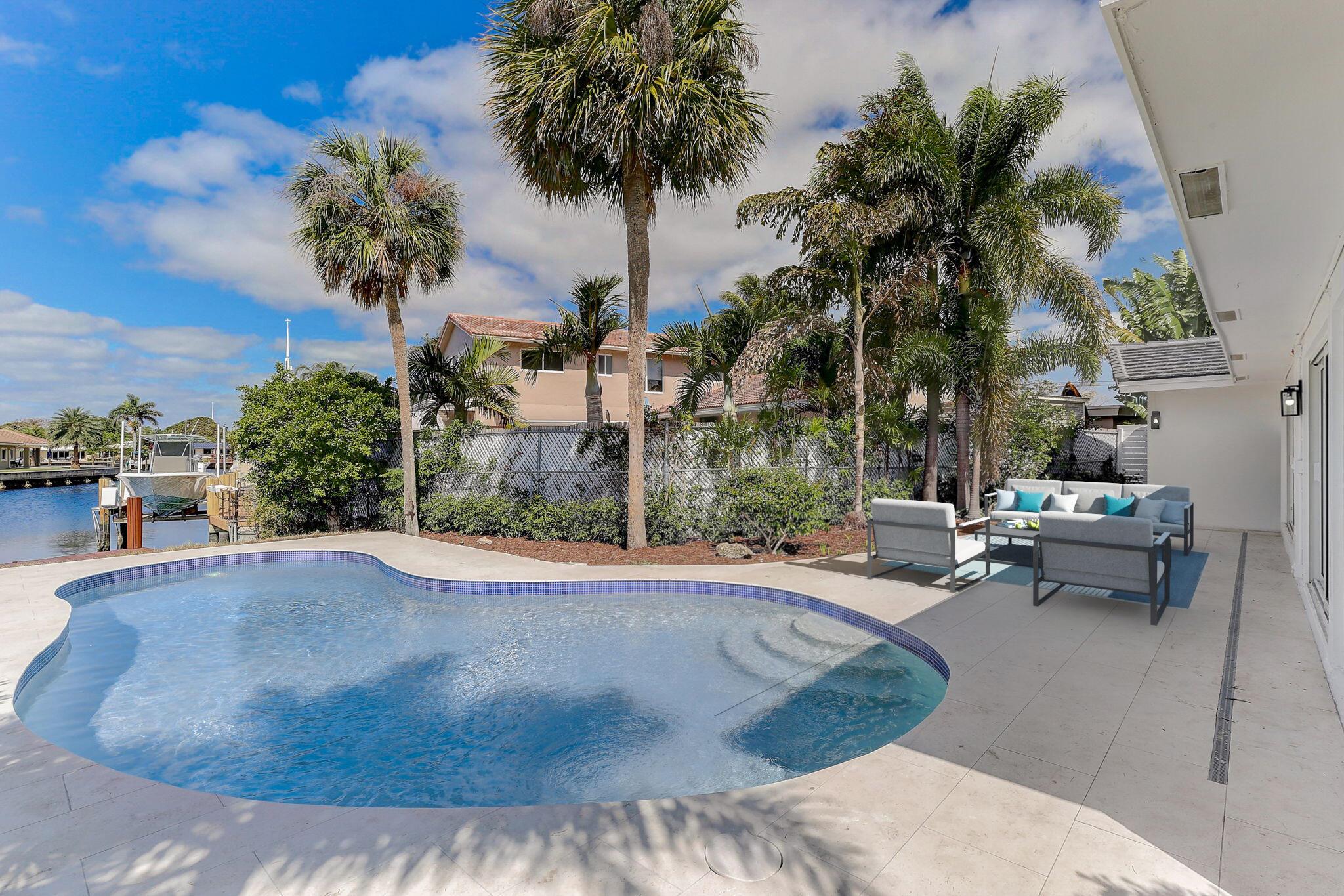 Welcome to 5591 Northeast 29th Avenue, a modern and completely remodeled waterfront oasis in the heart of Fort Lauderdale. This stunning home offers 3 bedrooms, 2 bathrooms, plus a den and 2349 square feet of living space, all thoughtfully designed for contemporary living. Situated on an oversized corner lot spanning 11,409 square feet, with 30 feet of water frontage, this property boasts a private dock, perfect for enjoying the breathtaking waterfront views. Some of the wonderful features include a 2023 flat tile roof and impact windows and doors throughout. Whether you're relaxing in the spacious interior or entertaining on the private dock, this home offers the perfect blend of luxury and tranquility. Don't miss the opportunity to make this waterfront retreat your own.