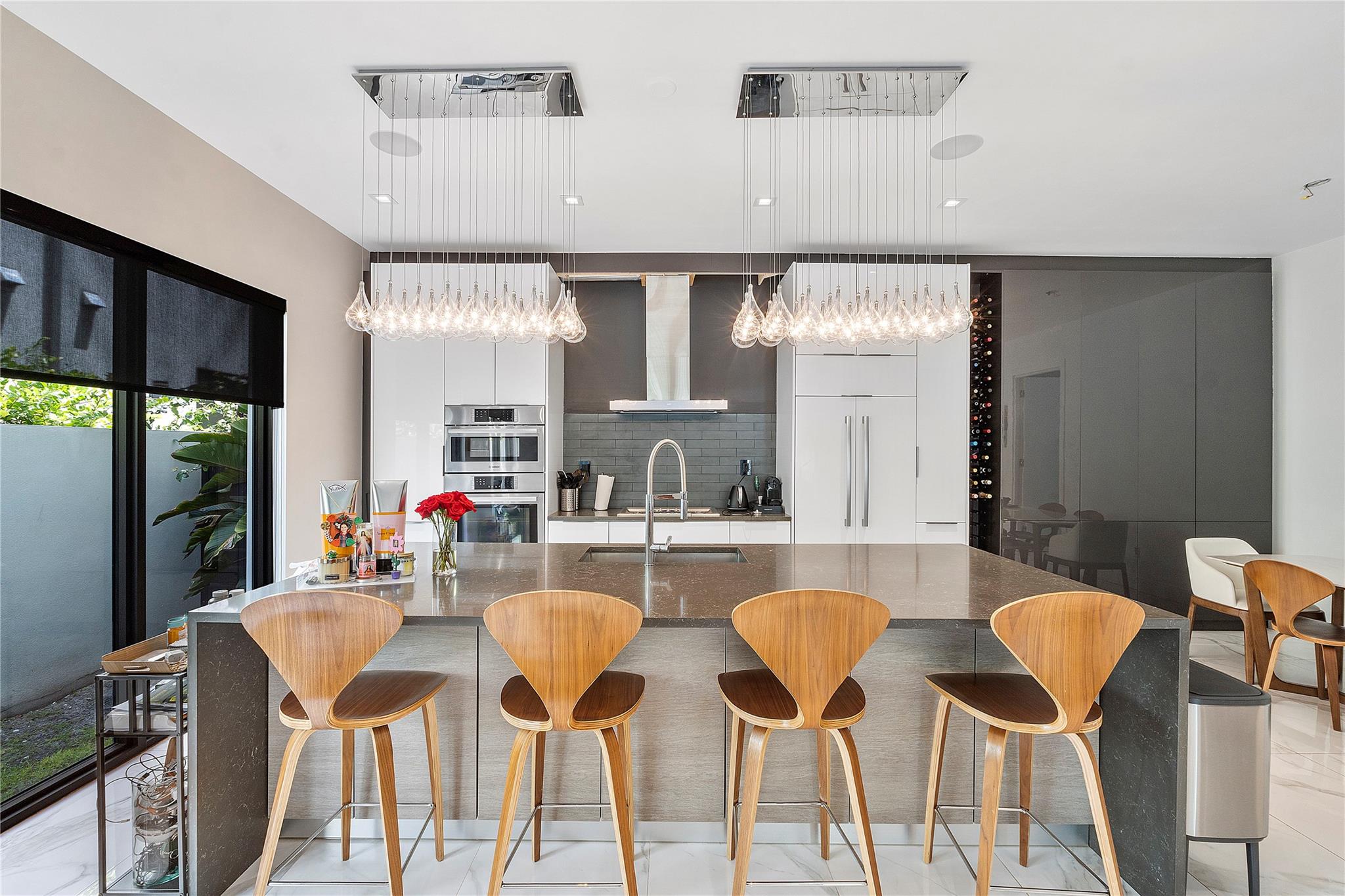 Discover modern luxury in this Colee Hammock townhome boasting top-of-the-line finishes throughout. Enjoy soaring 10-foot ceilings and the convenience of natural gas for both your water heater and dryer. The kitchen is a chef's dream with sleek quartz countertops, high-end Bosch stainless steel appliances, and a gas cooktop. Versatile living spaces allow for customization with 5 bedrooms to suit your needs. Impeccable details include magnificent 8-foot solid core doors and stylish custom lighting. Experience the ultimate convenience of this fantastic location, just a short three-block stroll to the vibrant Las Olas Boulevard in historic Colee Hammock.