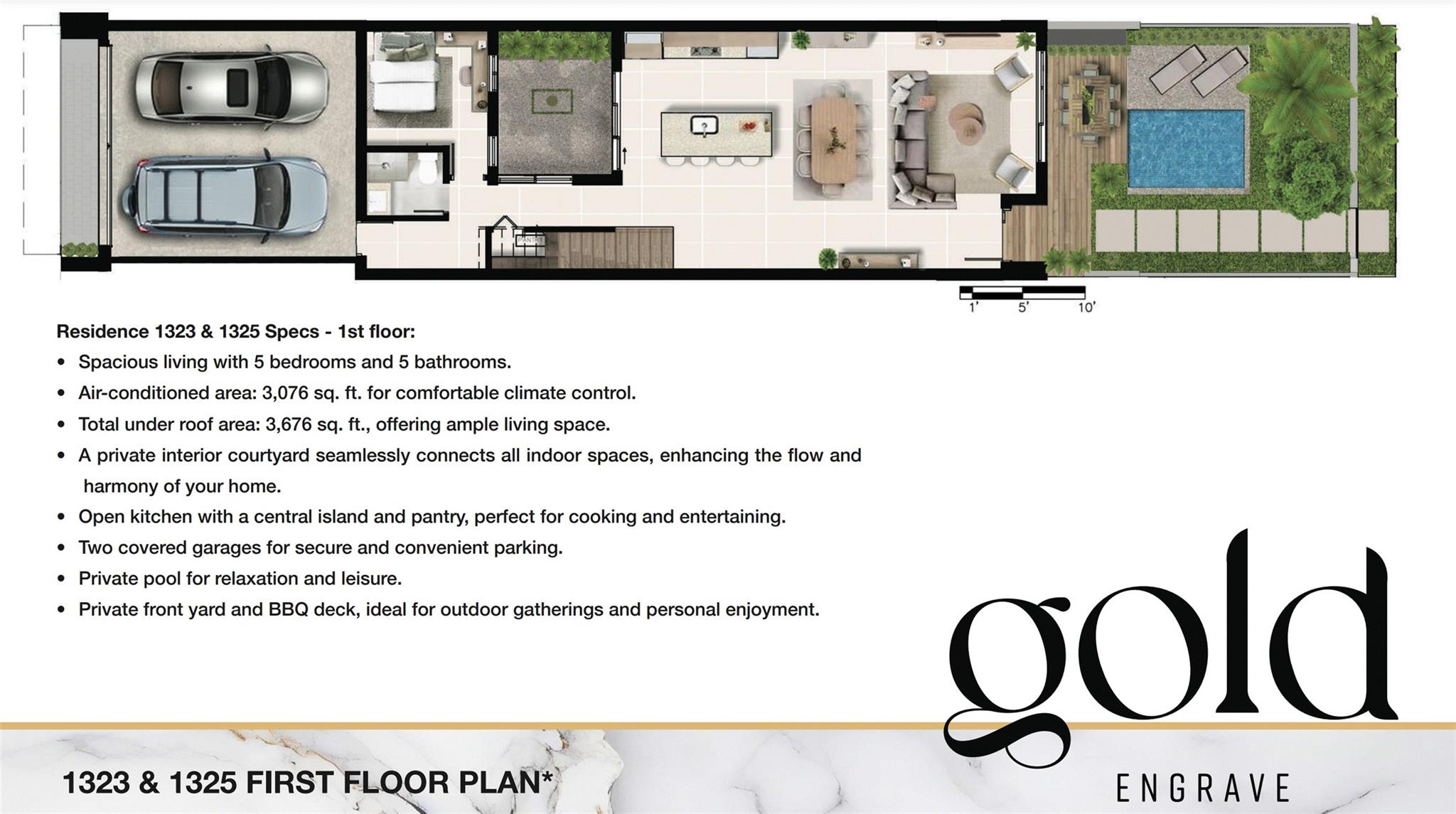 Be the first to purchase this beautifully designed modern fee simple townhome without the encumbrance of an HOA. Unit includes 5 bedrooms, 5 bathrooms, open living space, green space courtyard, two car garage, private pool, and convenient downtown location. The home features 5 outdoor spaces, your main living space on the ground floor, and an addition den/office/playroom on the 2nd story. The 4-home community driveway is privately gated and each units has private 2car garage. The third story offers a bedroom with a balcony, loft living space, and rooftop terrace. The first buyer to execute a reservation agreement at Gold Engrave will receive $10,000 seller credit at closing towards upgrades or closing costs!