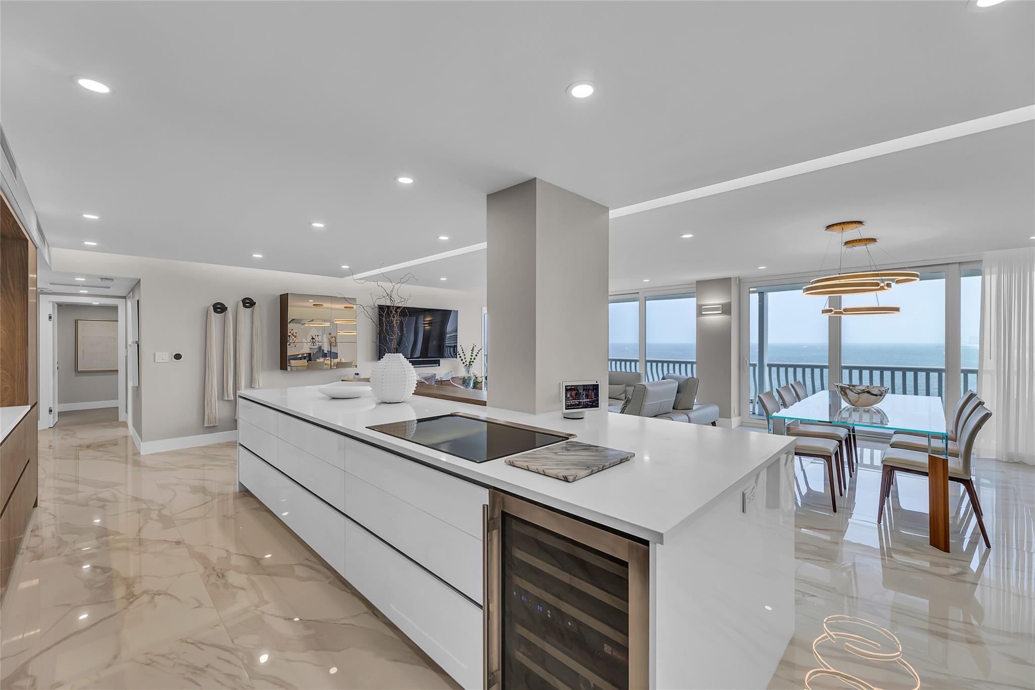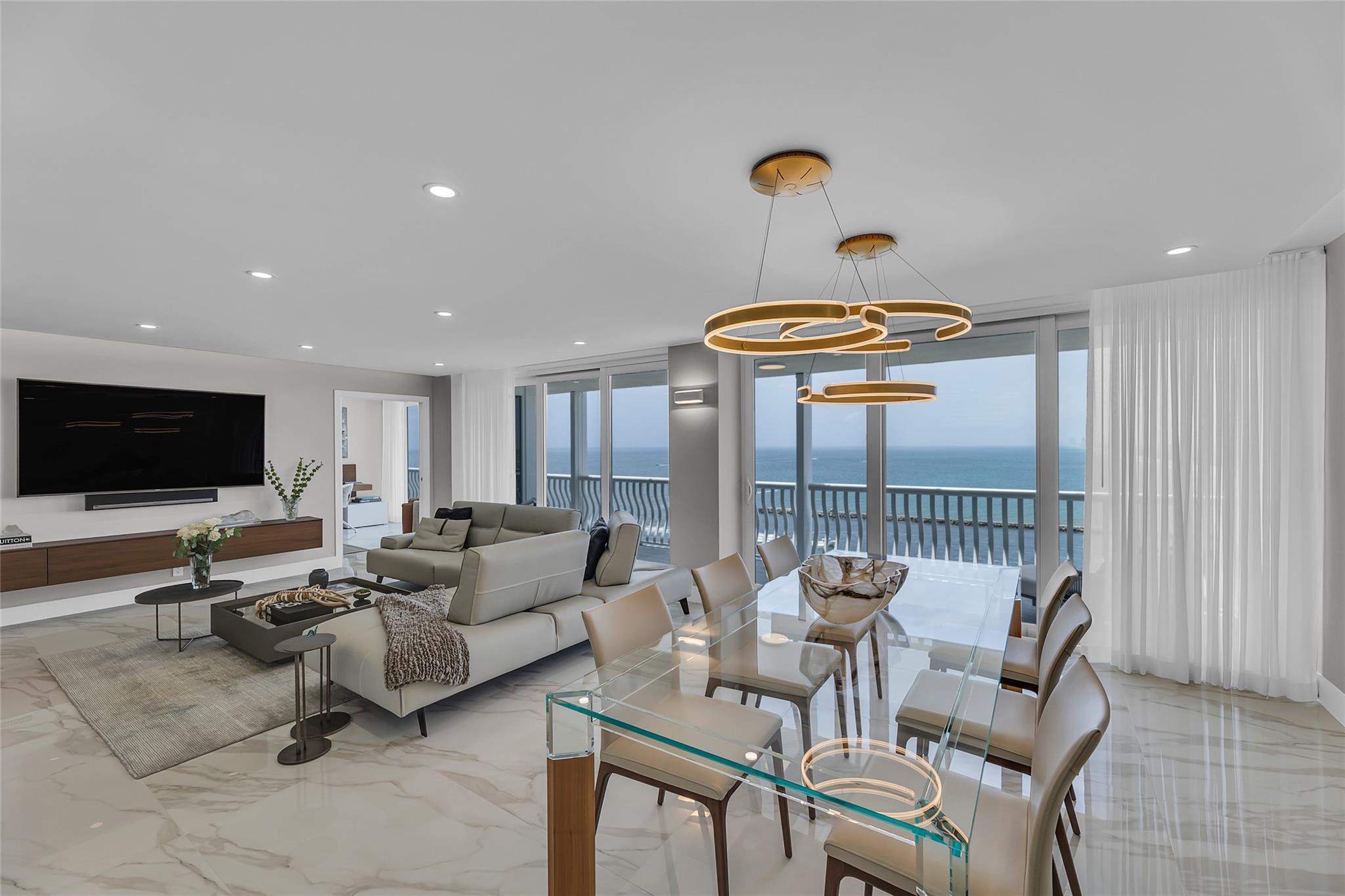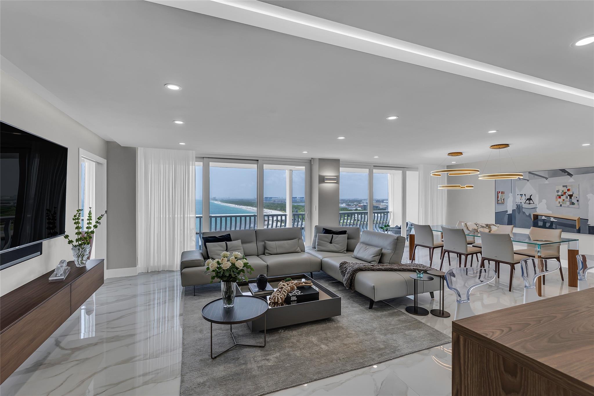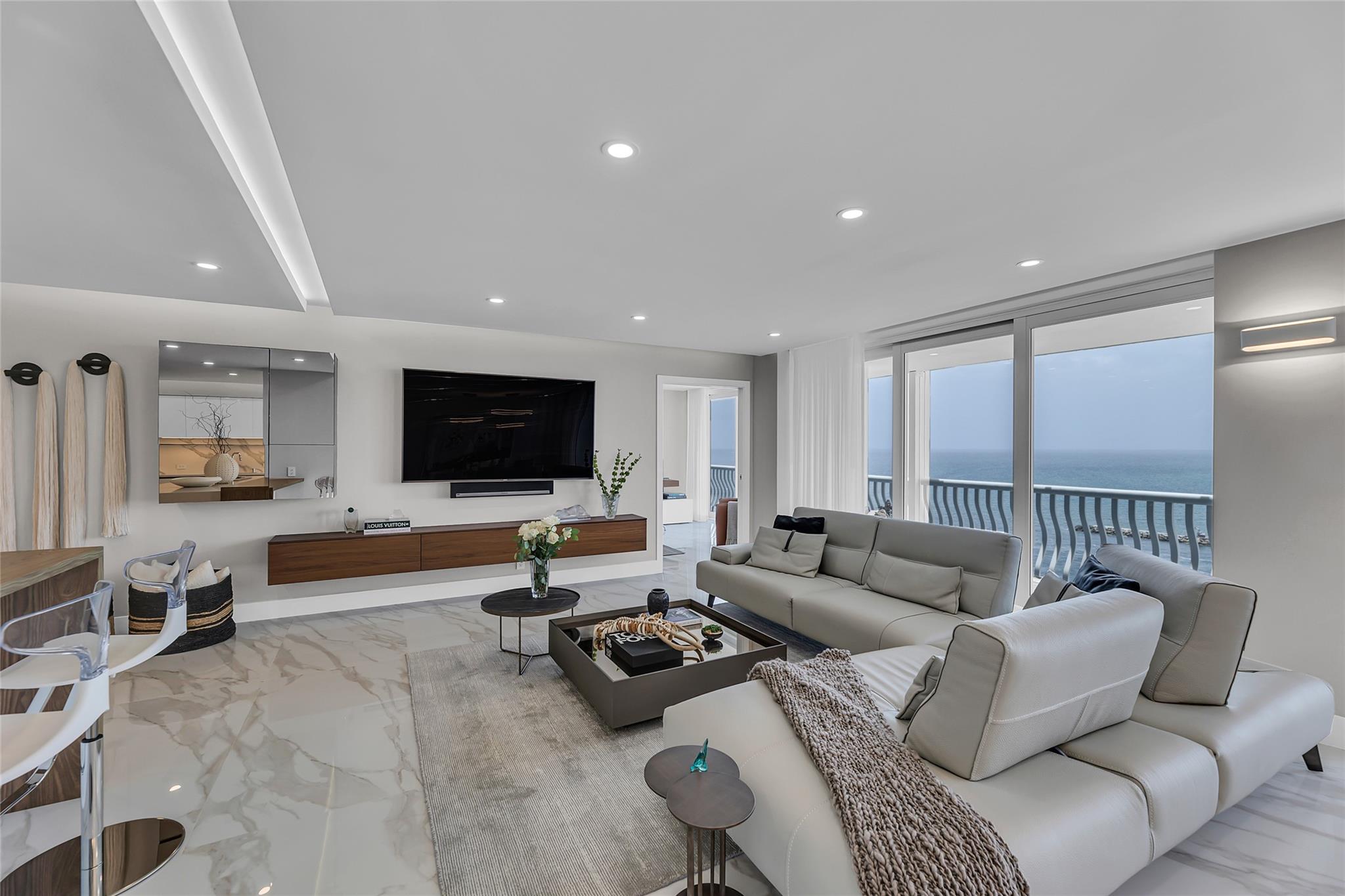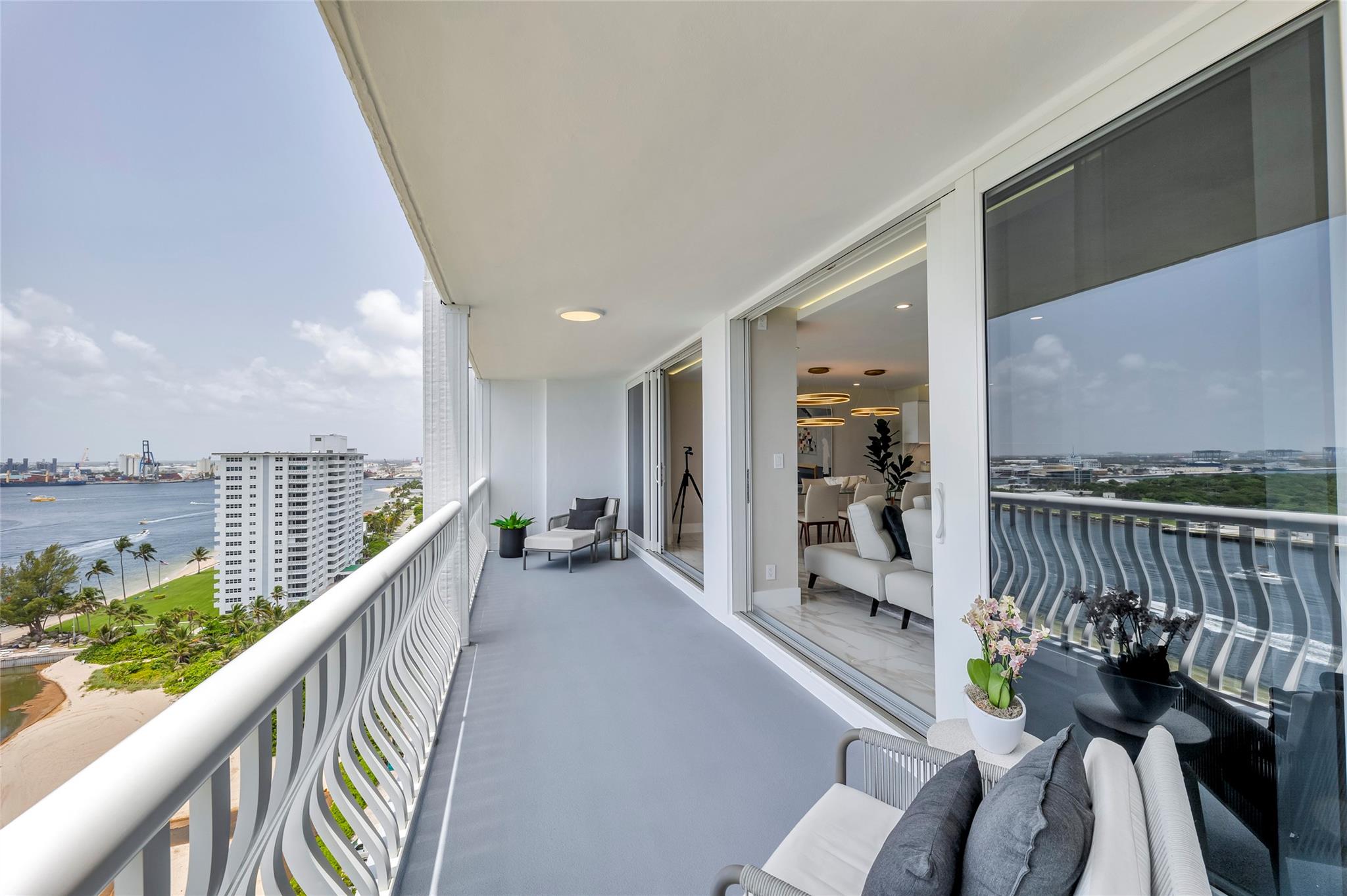 Newly Priced! Truly one of the most stunning remodeled units ever to be offered at the famed Point of Americas II. This spacious 2 Bed/2 Bath modern masterpiece boasts all the "must haves" for the discerning Buyer. A modern, spotless, sleek, white & bright abode that is a shining jewel box in the sky and the epitome of luxury living. The moment you enter the foyer you will be captivated & mesmerized by the attention to details on this complete to the stud wall renovation & not to mention the commanding jaw-dropping ocean & shoreline views that will take your breath away. Oversized imported porcelain tile flooring throughout, European styled open gourmet kitchen concept with top-of-the-line appliances, large spa inspired bathrooms, smart home technology & more. 2 garage spaces included.