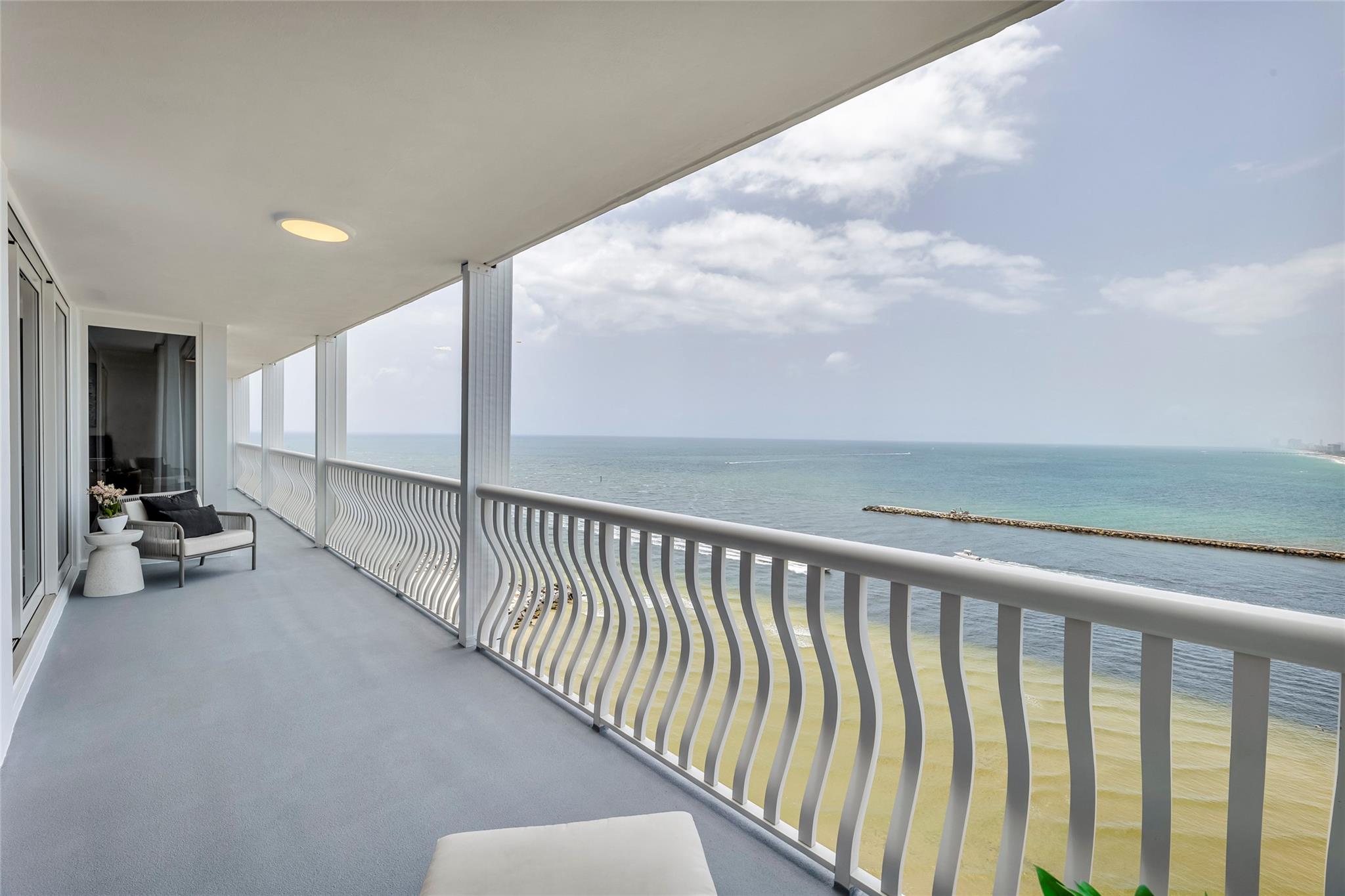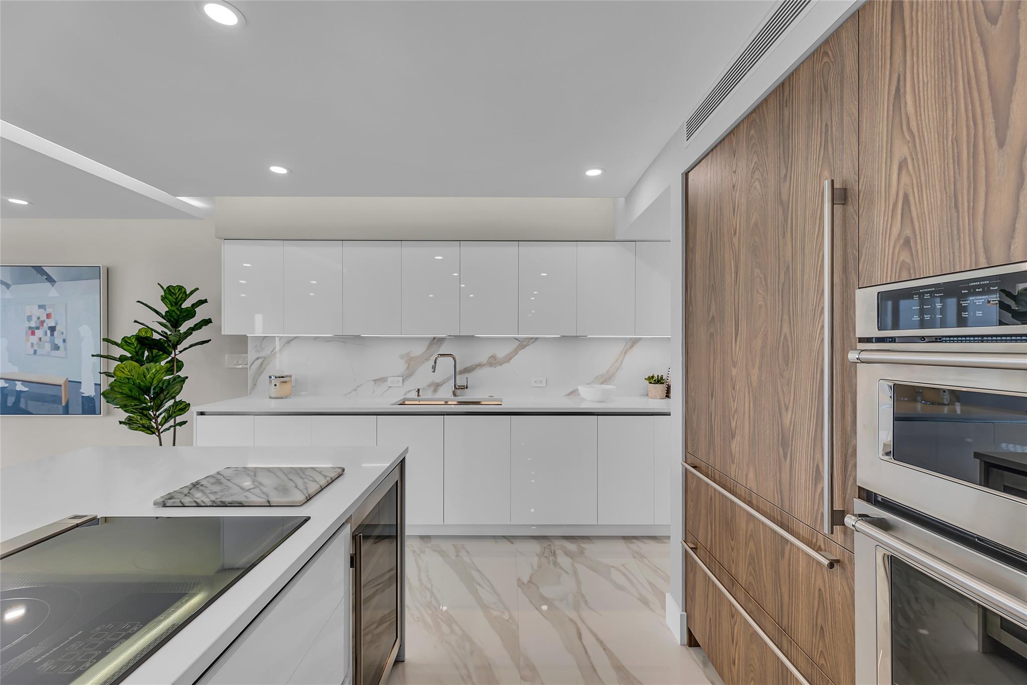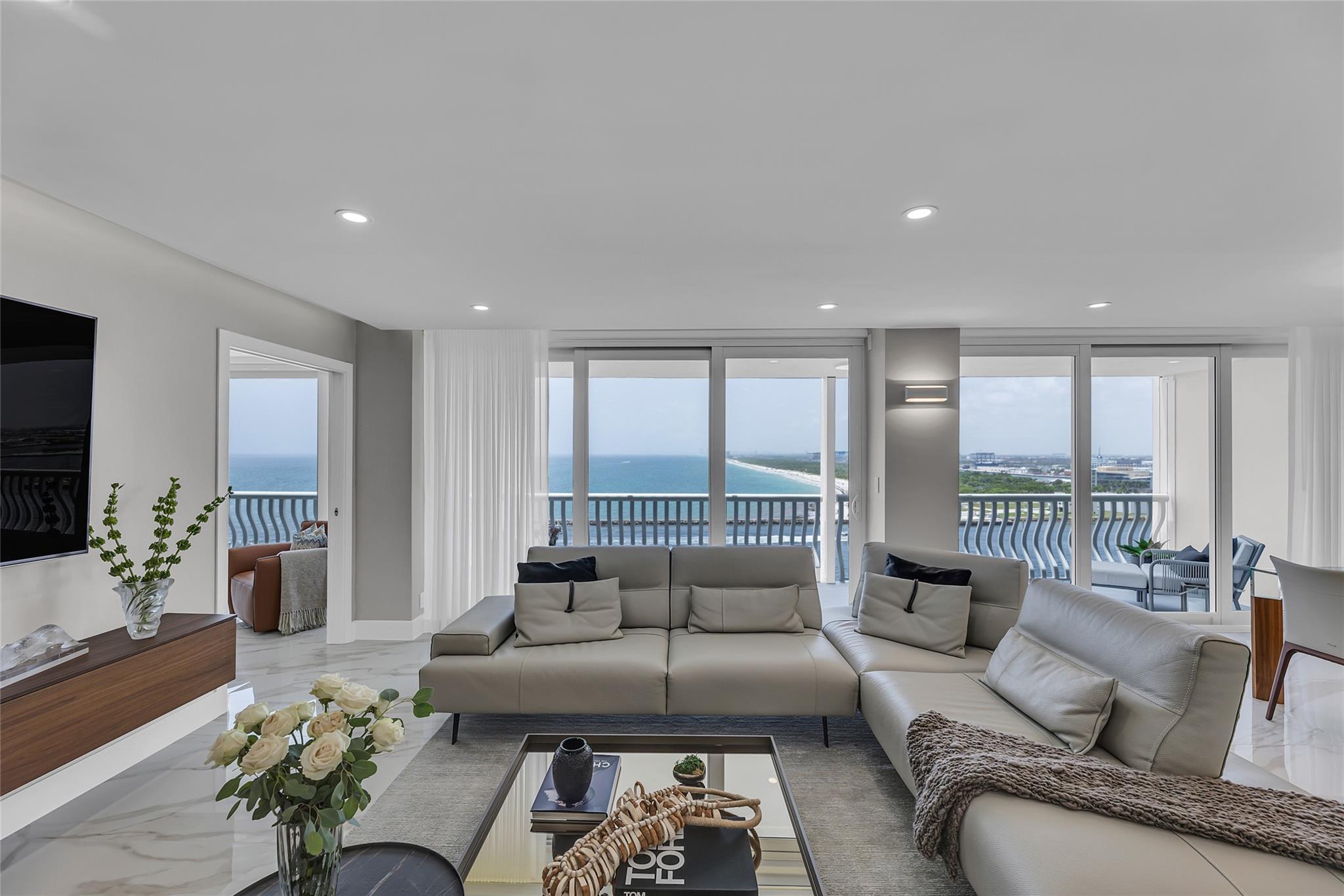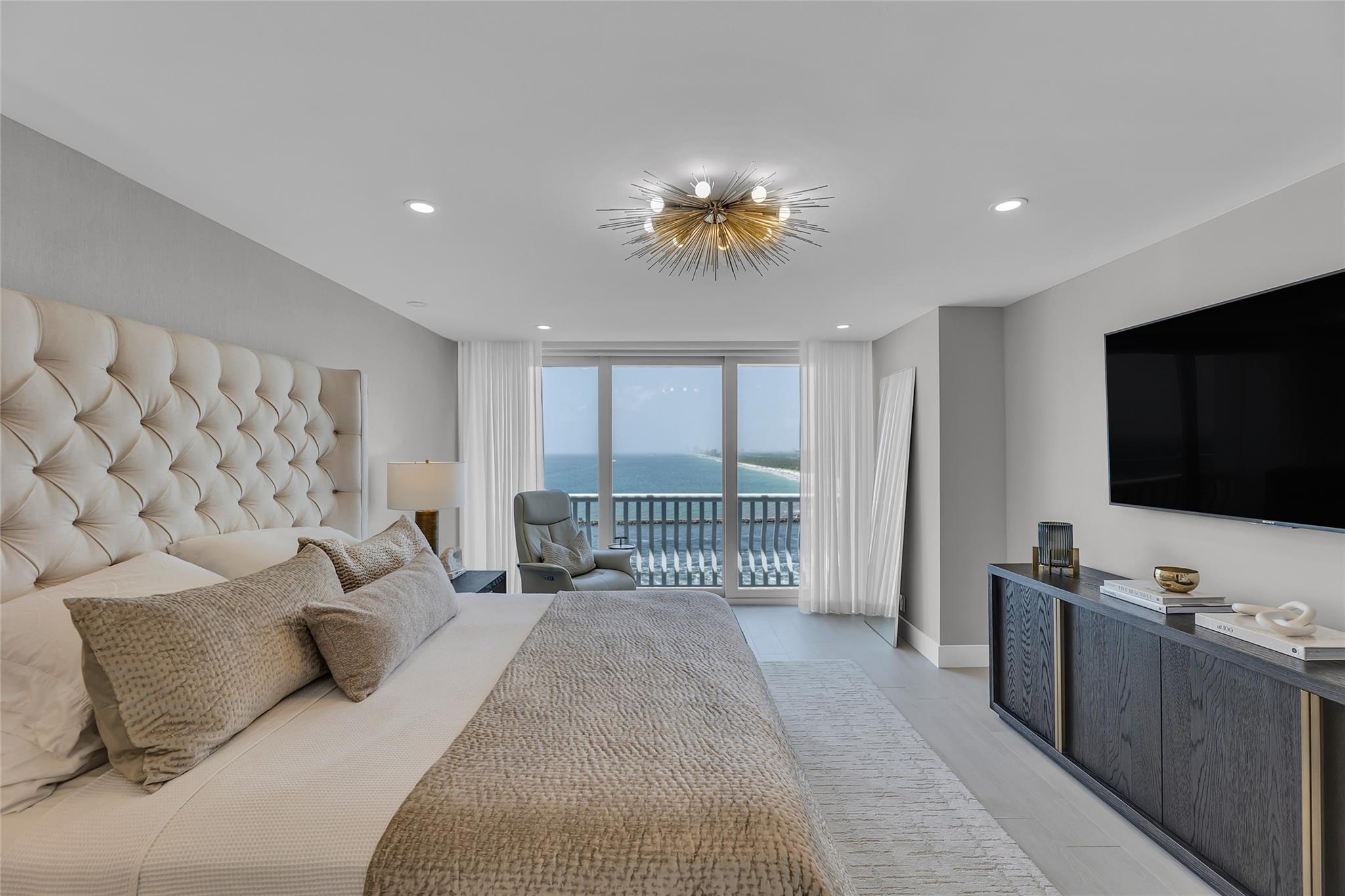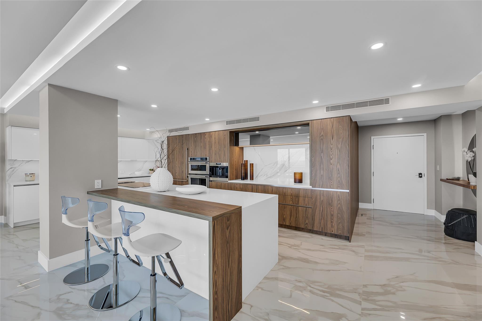 Newly Priced! Truly one of the most stunning remodeled units ever to be offered at the famed Point of Americas II. This spacious 2 Bed/2 Bath modern masterpiece boasts all the "must haves" for the discerning Buyer. A modern, spotless, sleek, white & bright abode that is a shining jewel box in the sky and the epitome of luxury living. The moment you enter the foyer you will be captivated & mesmerized by the attention to details on this complete to the stud wall renovation & not to mention the commanding jaw-dropping ocean & shoreline views that will take your breath away. Oversized imported porcelain tile flooring throughout, European styled open gourmet kitchen concept with top-of-the-line appliances, large spa inspired bathrooms, smart home technology & more. 2 garage spaces included.