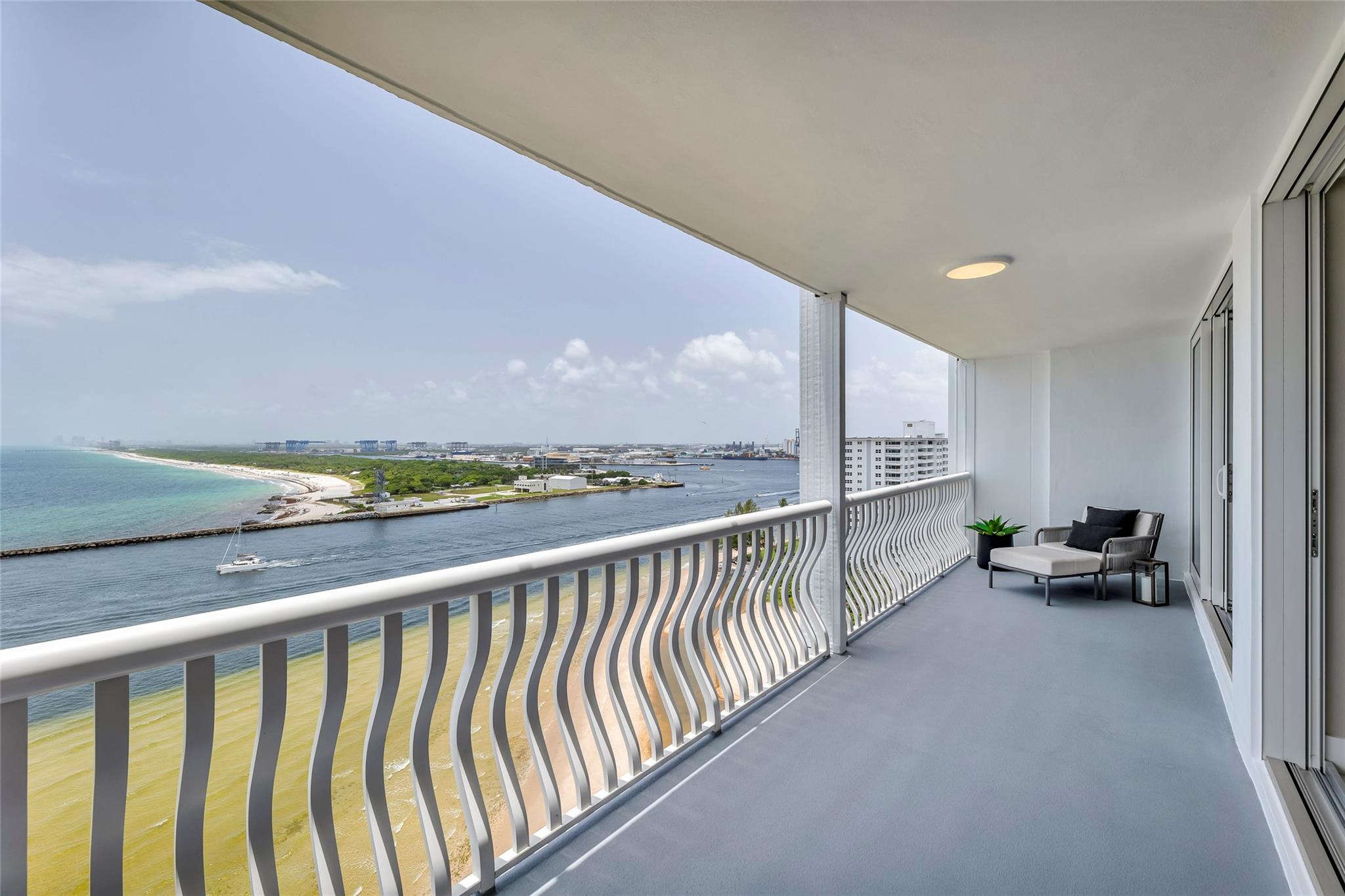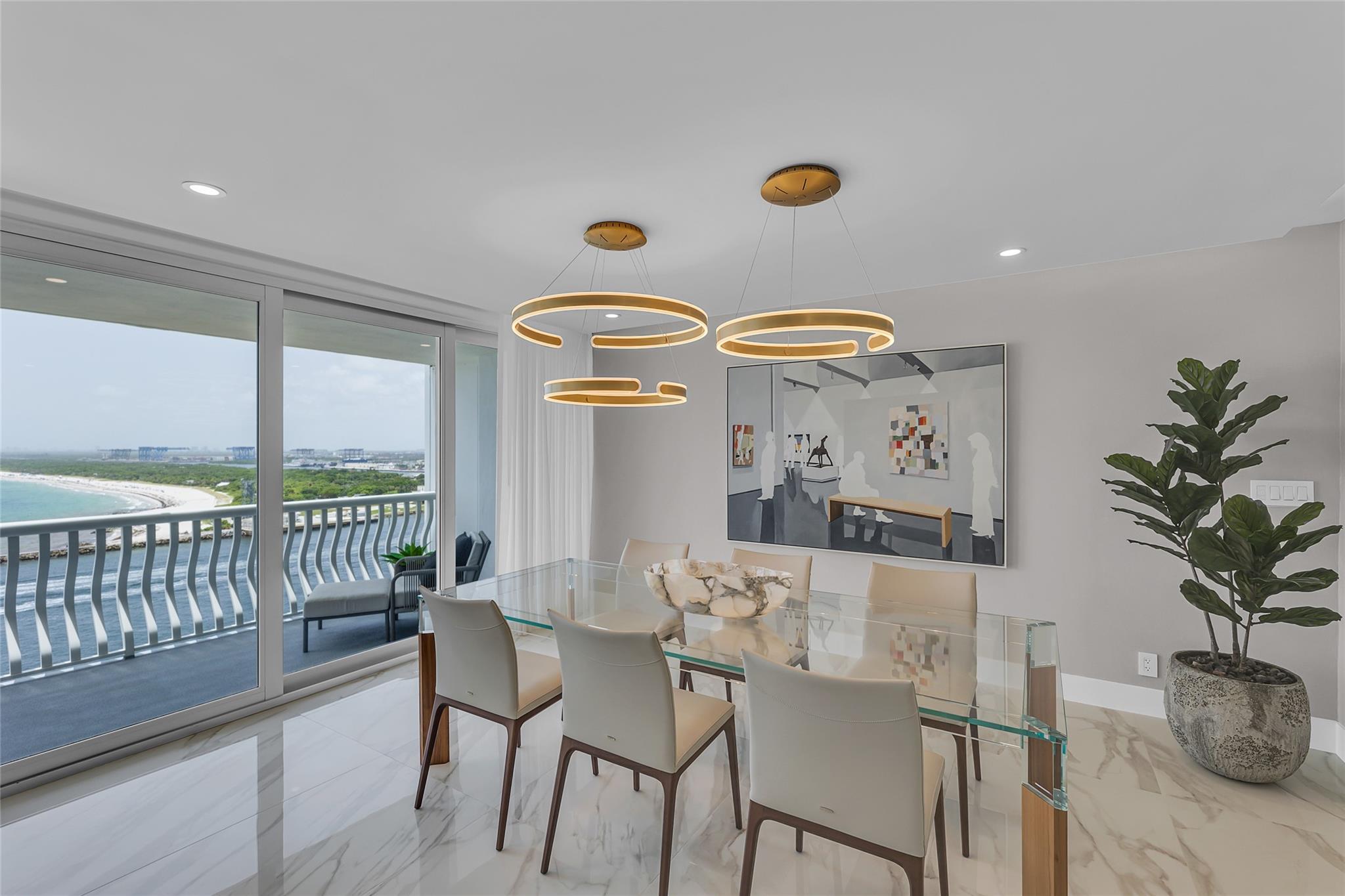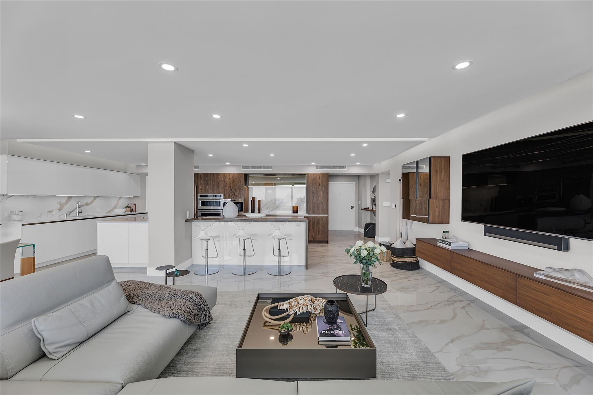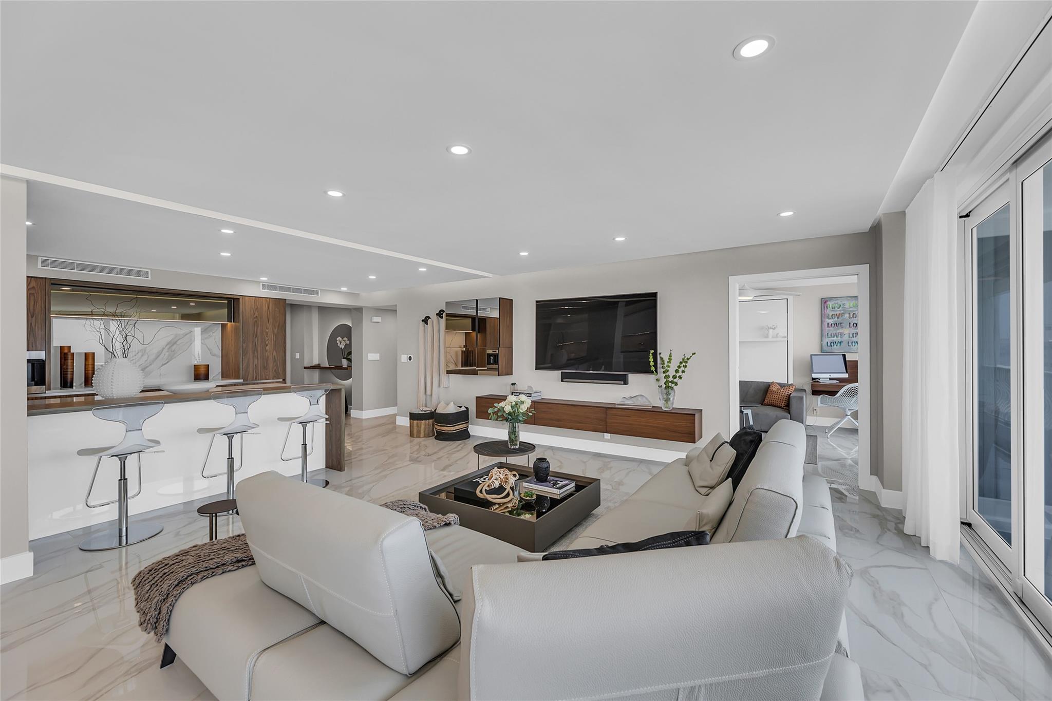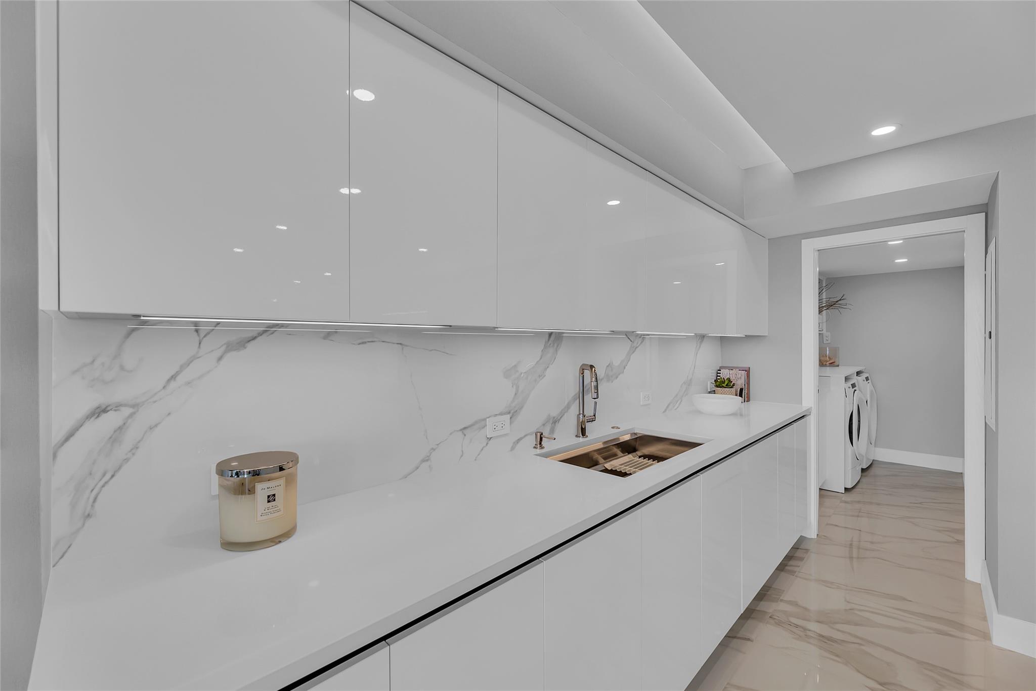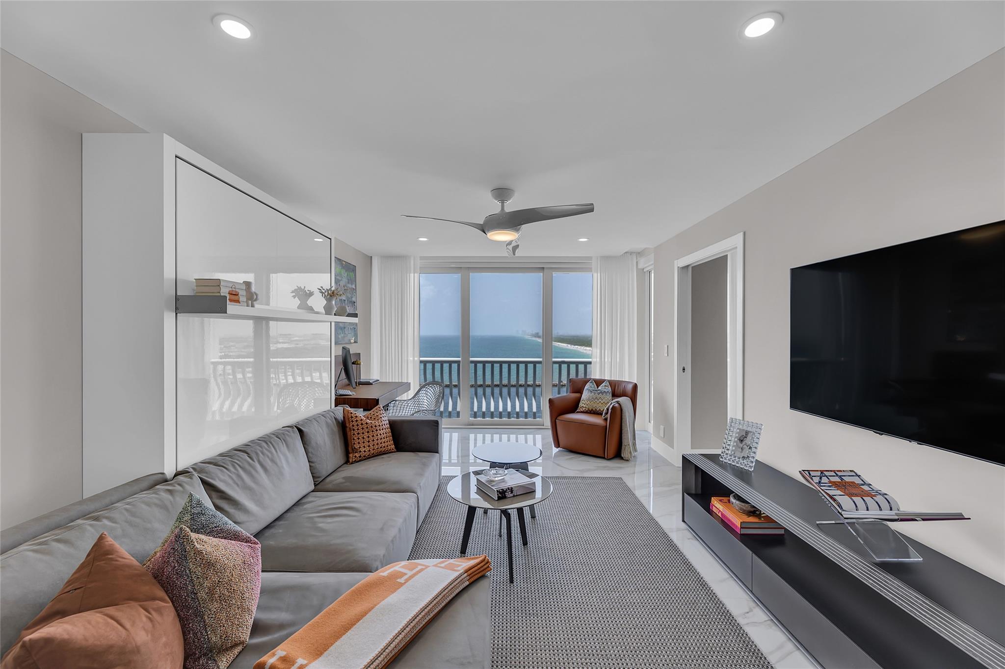 Newly Priced! Truly one of the most stunning remodeled units ever to be offered at the famed Point of Americas II. This spacious 2 Bed/2 Bath modern masterpiece boasts all the "must haves" for the discerning Buyer. A modern, spotless, sleek, white & bright abode that is a shining jewel box in the sky and the epitome of luxury living. The moment you enter the foyer you will be captivated & mesmerized by the attention to details on this complete to the stud wall renovation & not to mention the commanding jaw-dropping ocean & shoreline views that will take your breath away. Oversized imported porcelain tile flooring throughout, European styled open gourmet kitchen concept with top-of-the-line appliances, large spa inspired bathrooms, smart home technology & more. 2 garage spaces included.
