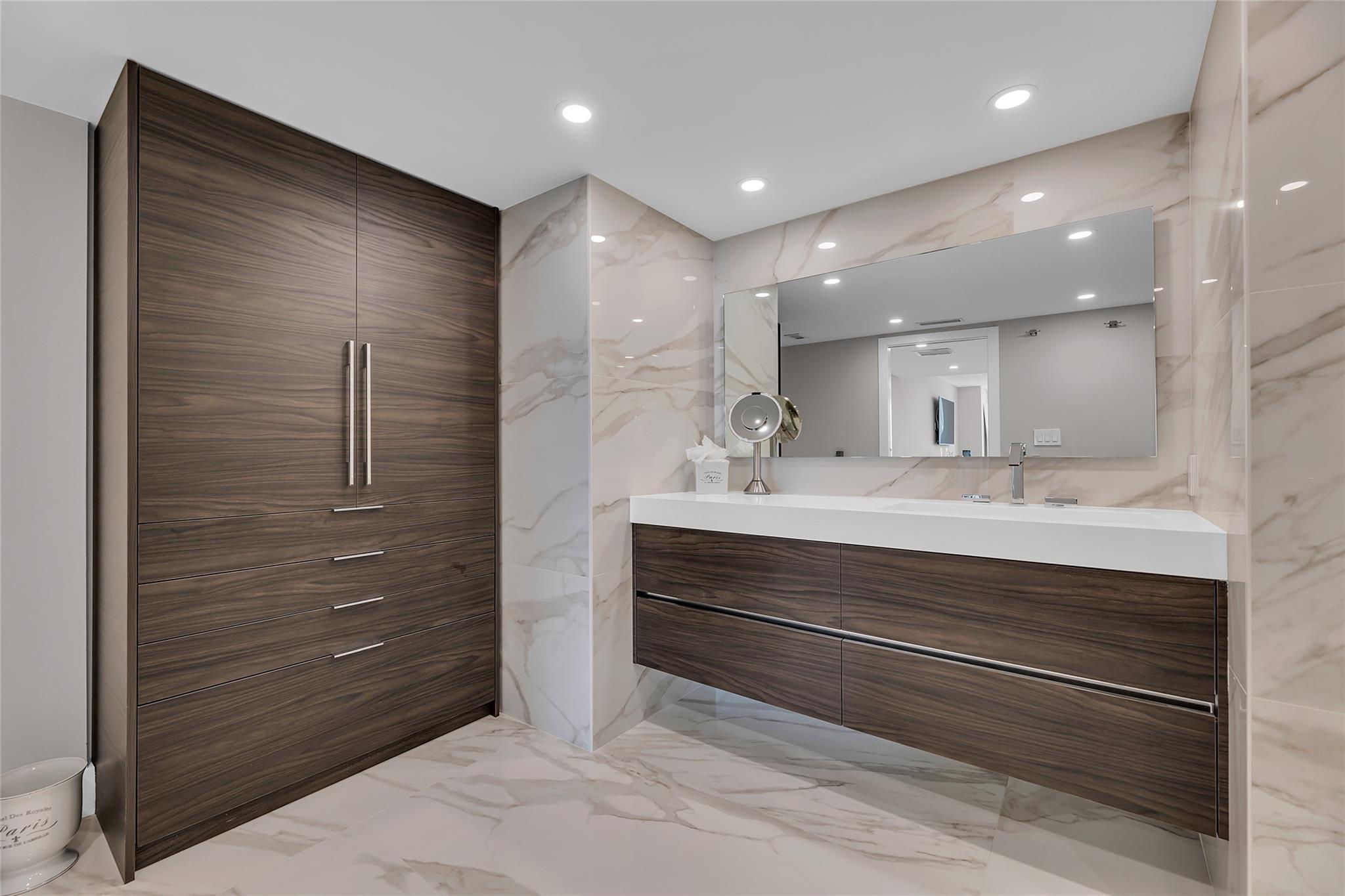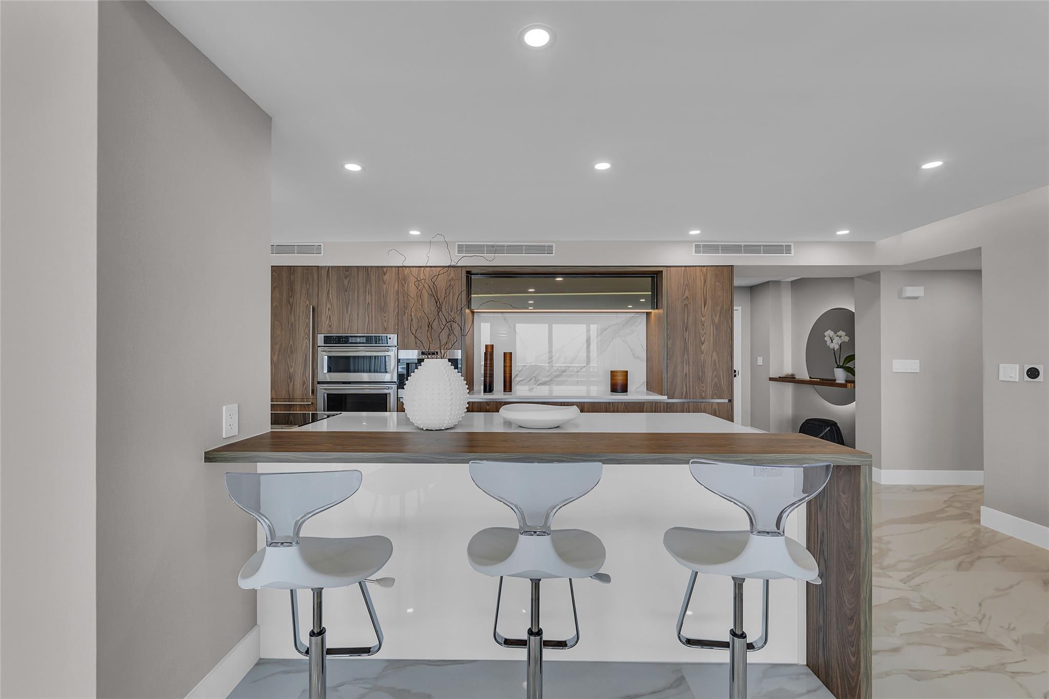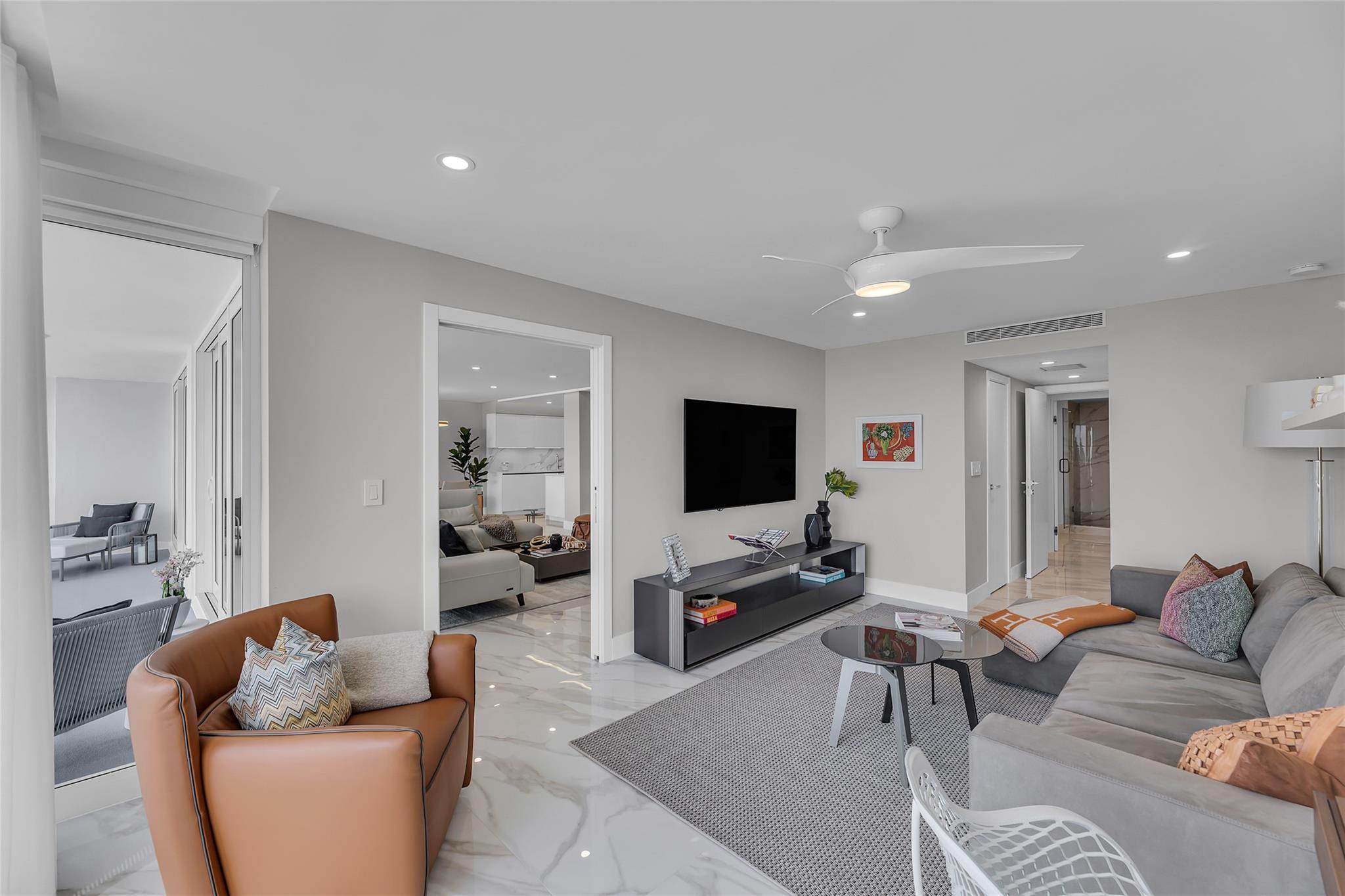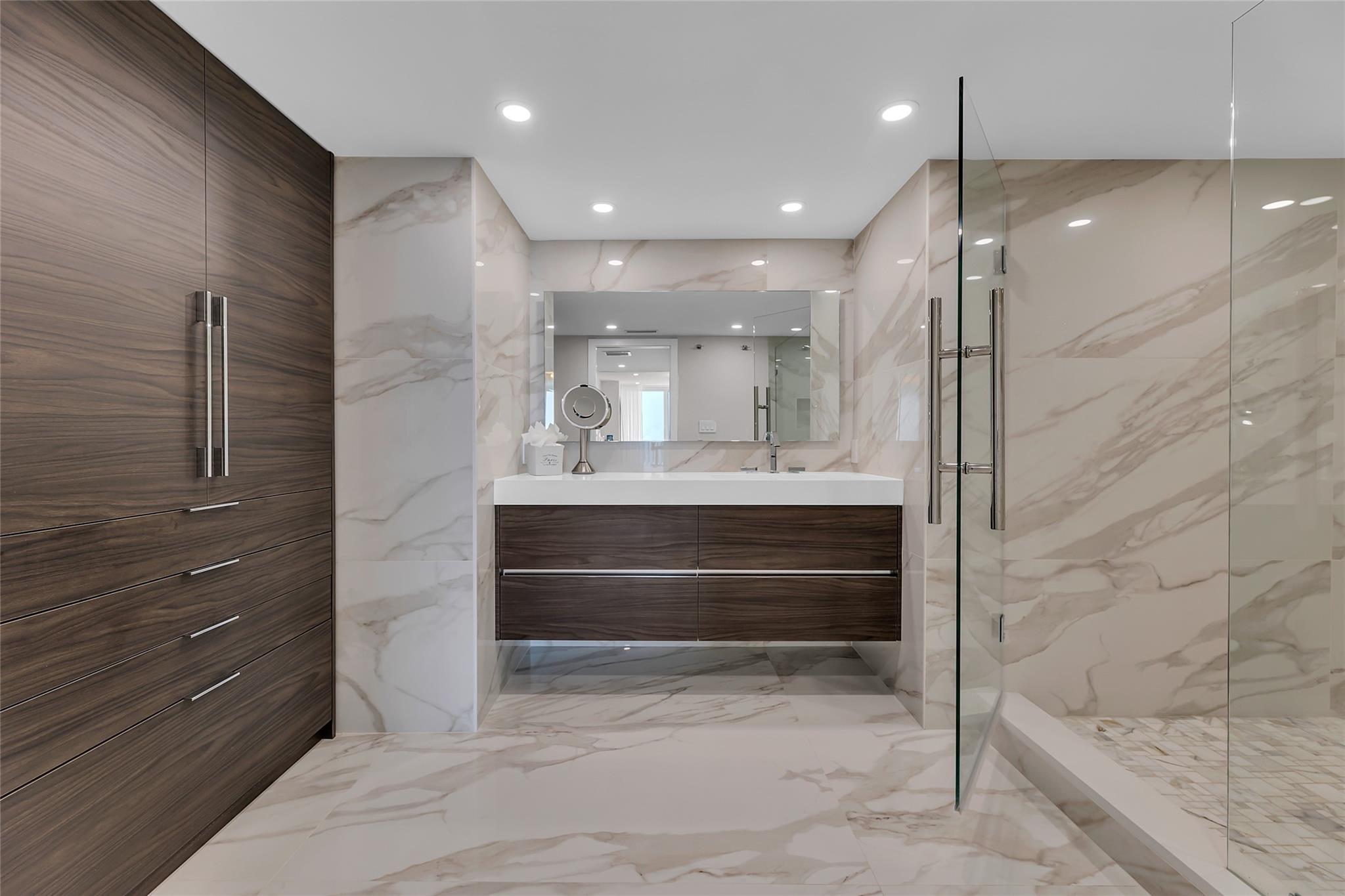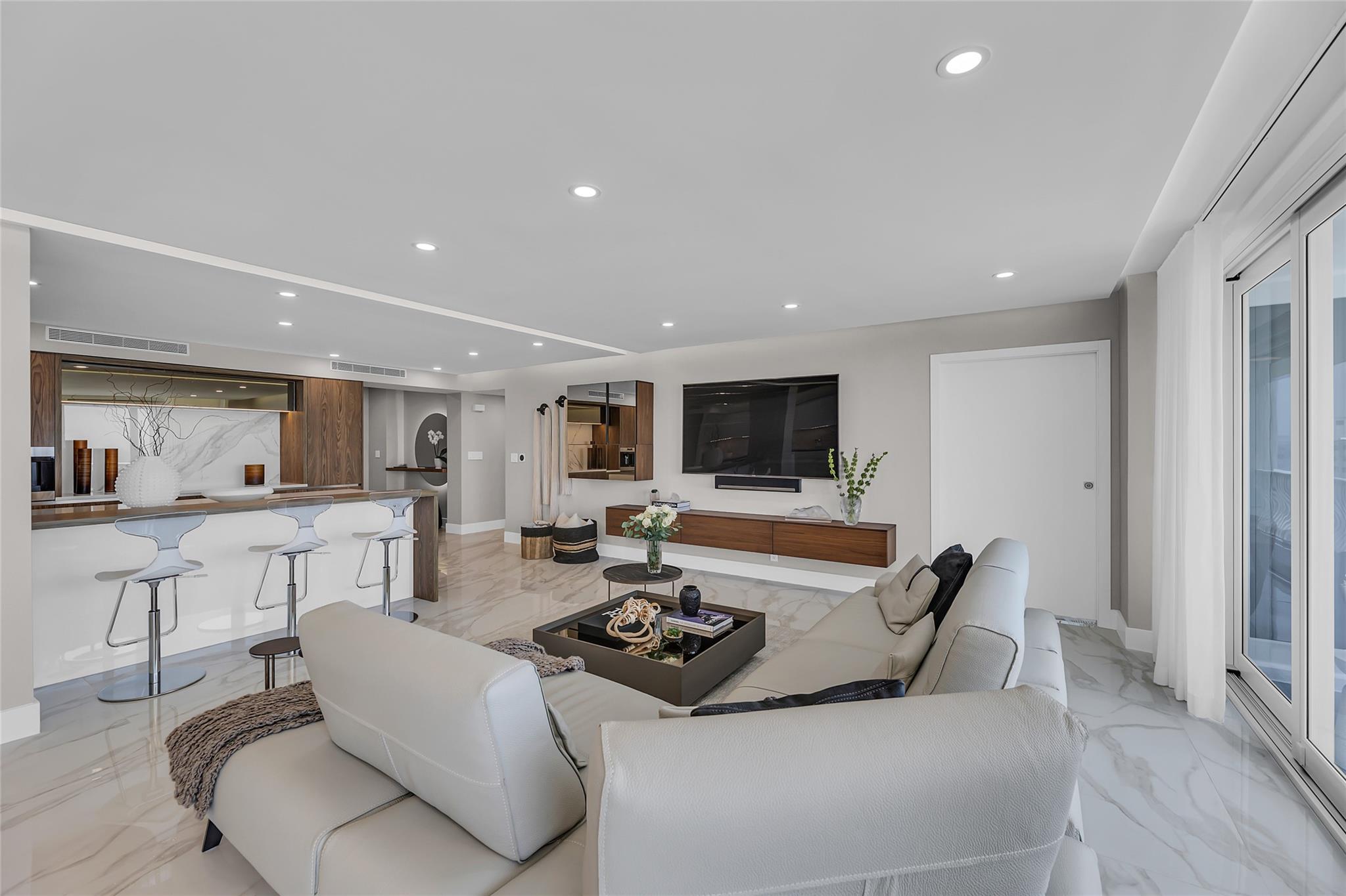 Newly Priced! Truly one of the most stunning remodeled units ever to be offered at the famed Point of Americas II. This spacious 2 Bed/2 Bath modern masterpiece boasts all the "must haves" for the discerning Buyer. A modern, spotless, sleek, white & bright abode that is a shining jewel box in the sky and the epitome of luxury living. The moment you enter the foyer you will be captivated & mesmerized by the attention to details on this complete to the stud wall renovation & not to mention the commanding jaw-dropping ocean & shoreline views that will take your breath away. Oversized imported porcelain tile flooring throughout, European styled open gourmet kitchen concept with top-of-the-line appliances, large spa inspired bathrooms, smart home technology & more. 2 garage spaces included.