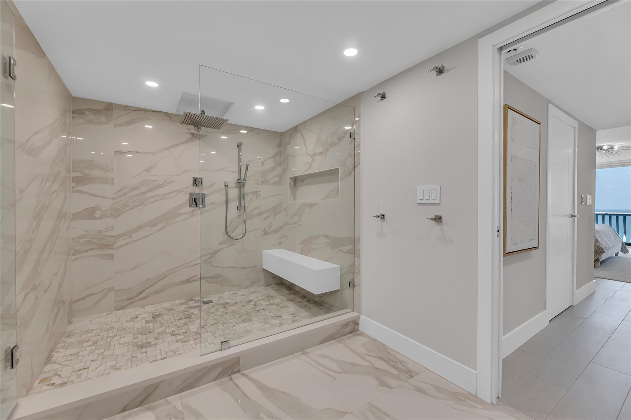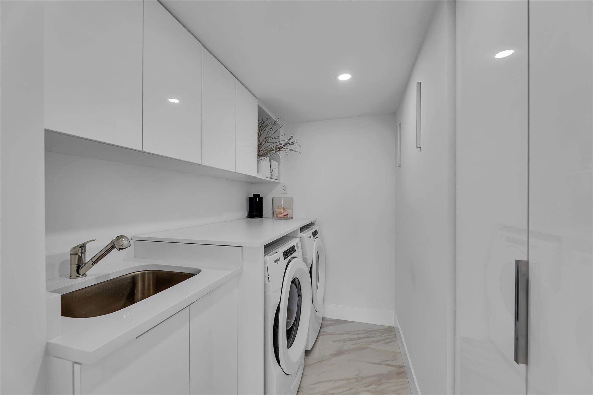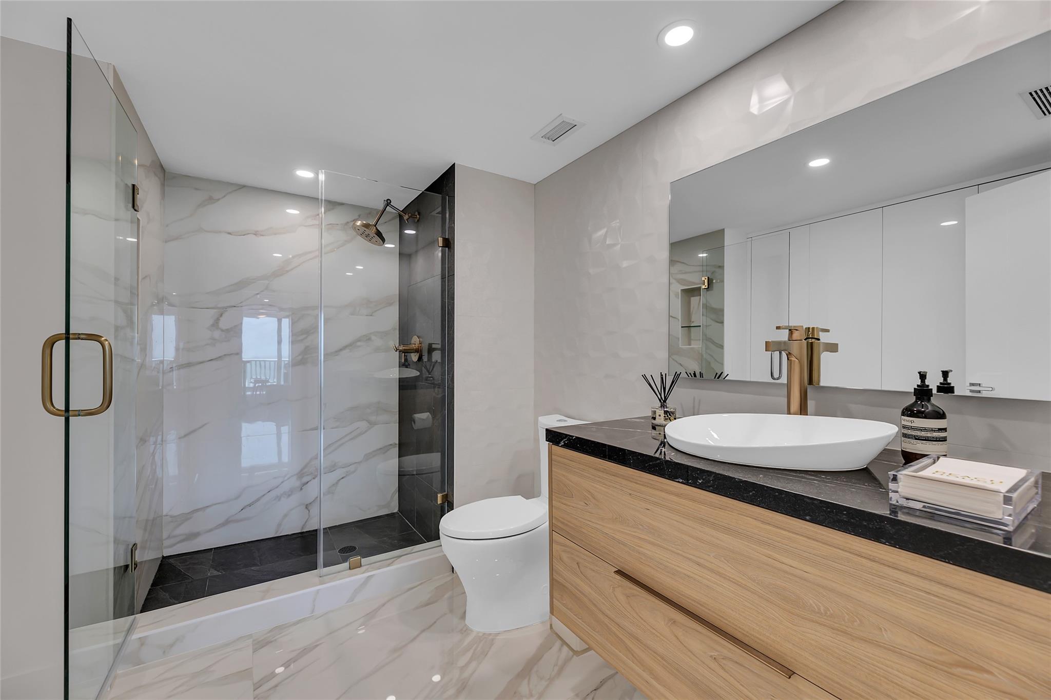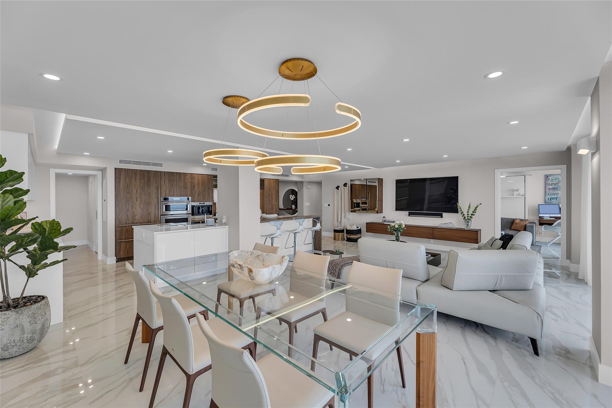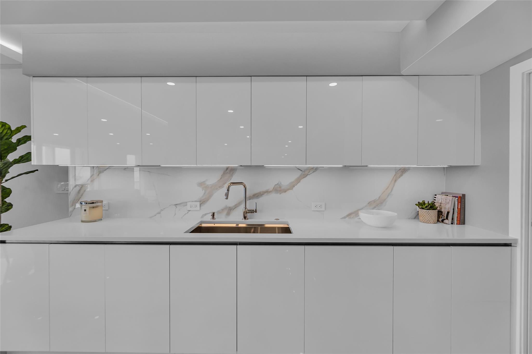 Newly Priced! Truly one of the most stunning remodeled units ever to be offered at the famed Point of Americas II. This spacious 2 Bed/2 Bath modern masterpiece boasts all the "must haves" for the discerning Buyer. A modern, spotless, sleek, white & bright abode that is a shining jewel box in the sky and the epitome of luxury living. The moment you enter the foyer you will be captivated & mesmerized by the attention to details on this complete to the stud wall renovation & not to mention the commanding jaw-dropping ocean & shoreline views that will take your breath away. Oversized imported porcelain tile flooring throughout, European styled open gourmet kitchen concept with top-of-the-line appliances, large spa inspired bathrooms, smart home technology & more. 2 garage spaces included.
