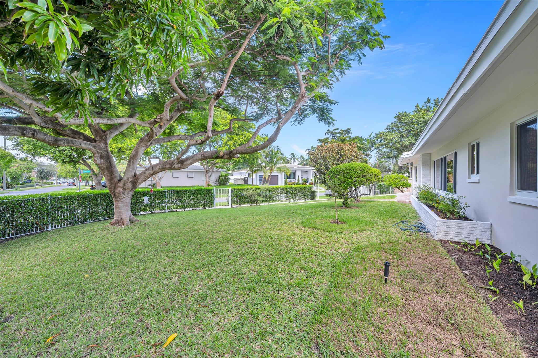 Located in the highly sought after Harbour Inlet neighborhood, this spacious 3-bedroom, 2-bathroom home sits on an oversized corner lot, less than a mile away from Fort Lauderdale's beaches and Jetties. Walk to the sand or take a two minute trip with your golf cart to relaxing seaside afternoons from your new home. The property is a 10-minute drive to both FLL Airport and Las Olas Boulevard's renowned shopping and dinning scene. The home's expansive lot offers quality outdoor living and entertainment, with room for a pool or an expansive garden. The interior of the home floods with sunlight during the day, featuring large impact windows and impact sliding glass doors that open to a breezy screened porch.