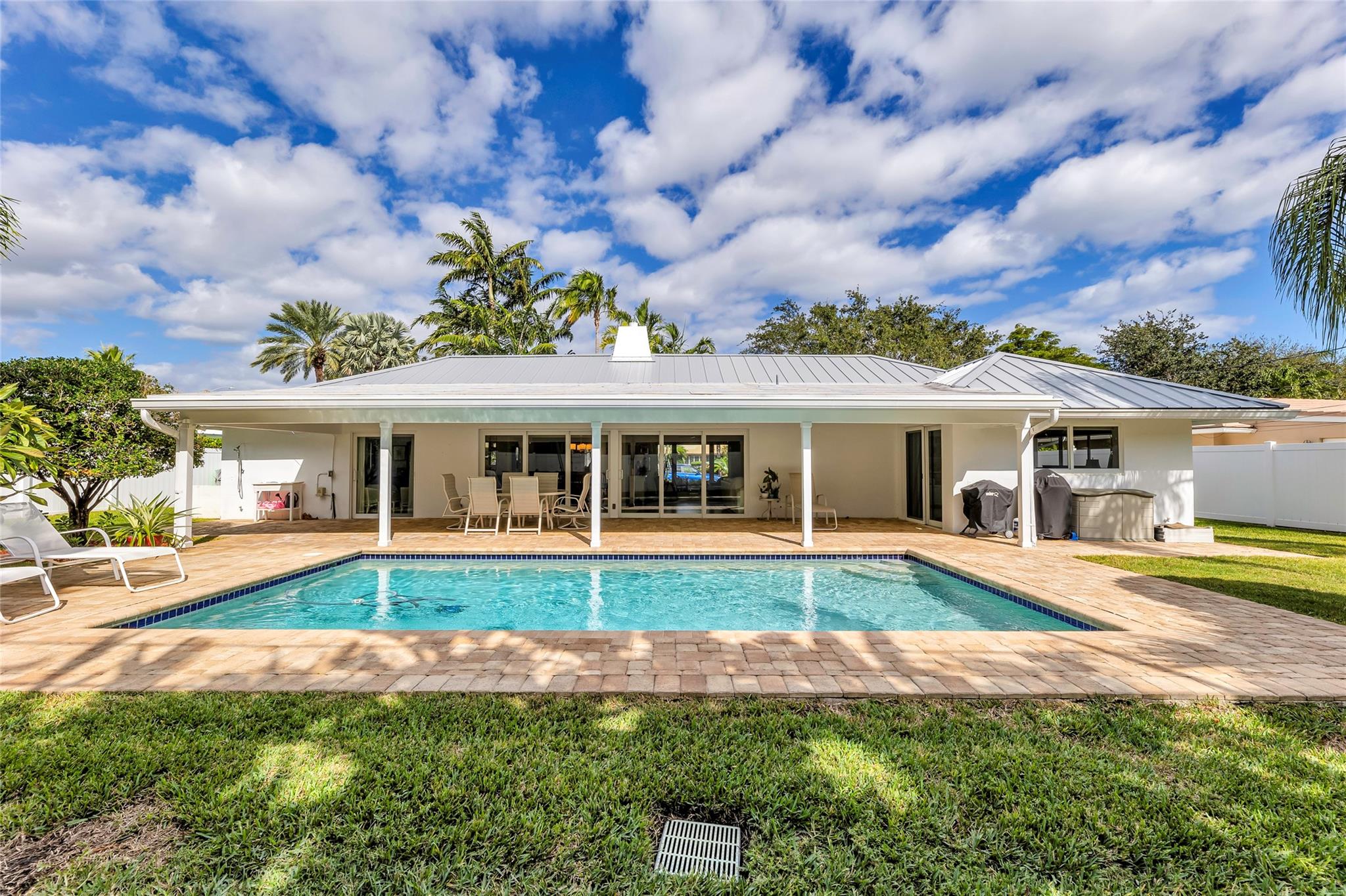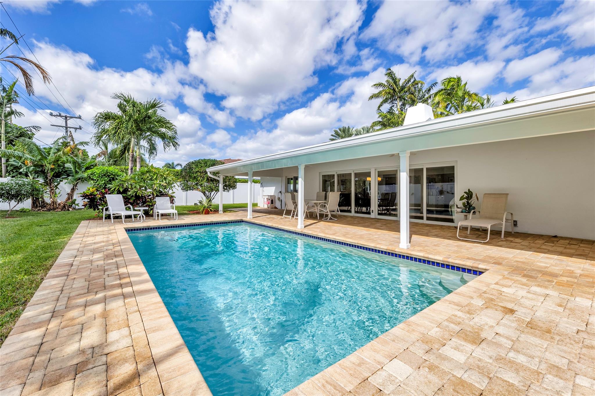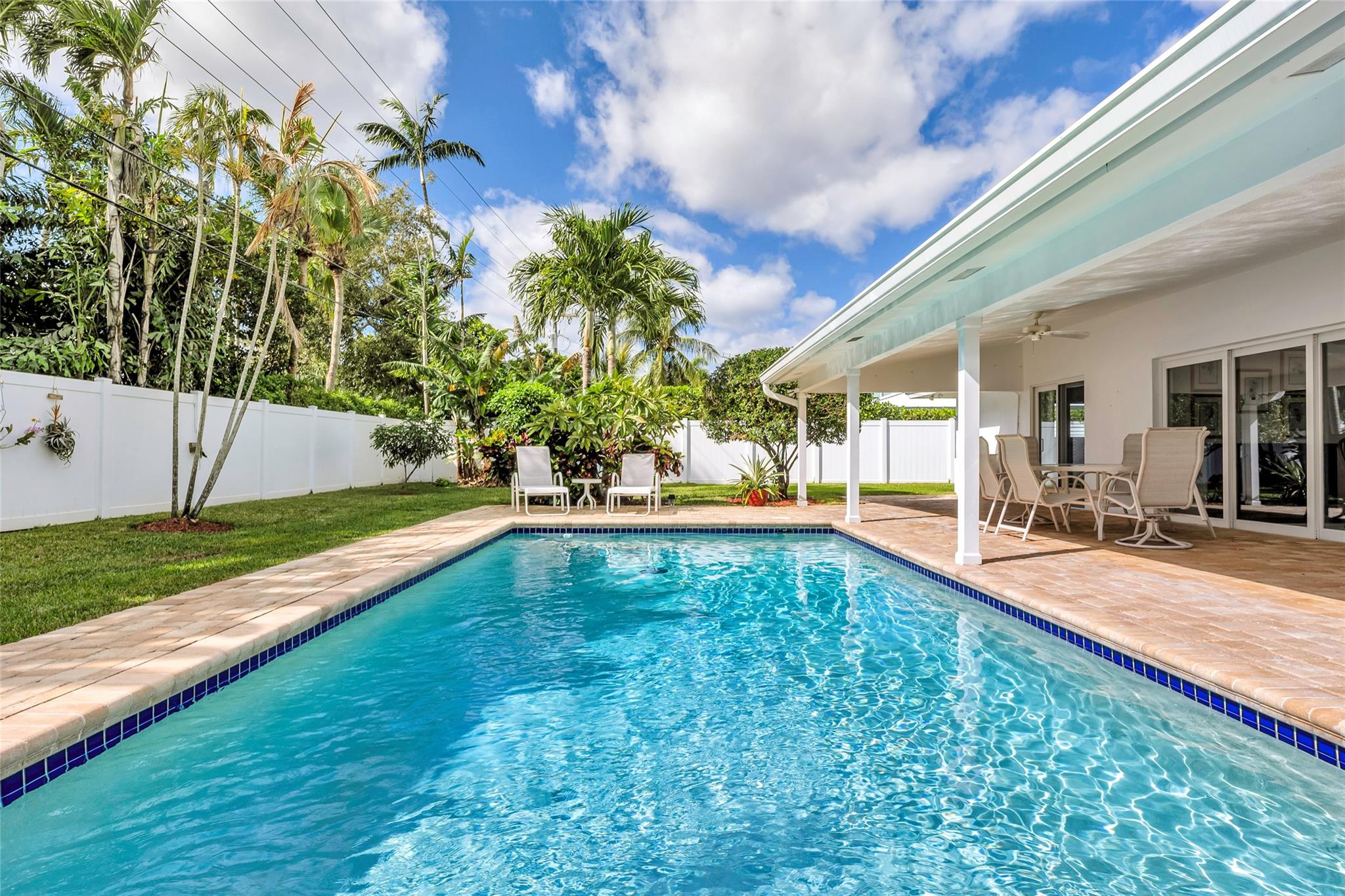 Perfectly located on a premier oversized lot on one of Coral Ridge Country Club's best streets, this island-style property boasts a totally optimized floor plan, abundant natural light, and huge bedrooms. Every inch of this home serves a purpose, making it feel and live large. The renovated gourmet kitchen features custom cabinetry, Pompeii quartz countertops, and new appliances - perfect for preparing exquisite meals in style. Enjoy your private outdoor oasis with heated saltwater pool, huge porch, lush landscaping, fruit trees, and oversized catering gate! Full impact windows & doors, 2016 metal roof, oversized 2-car garage with new mini-split A/C for your morning workout. Lifestyle & location close to beach, clubs, ICW and everything you love about Fort Lauderdale! Owner/agent. No sign.