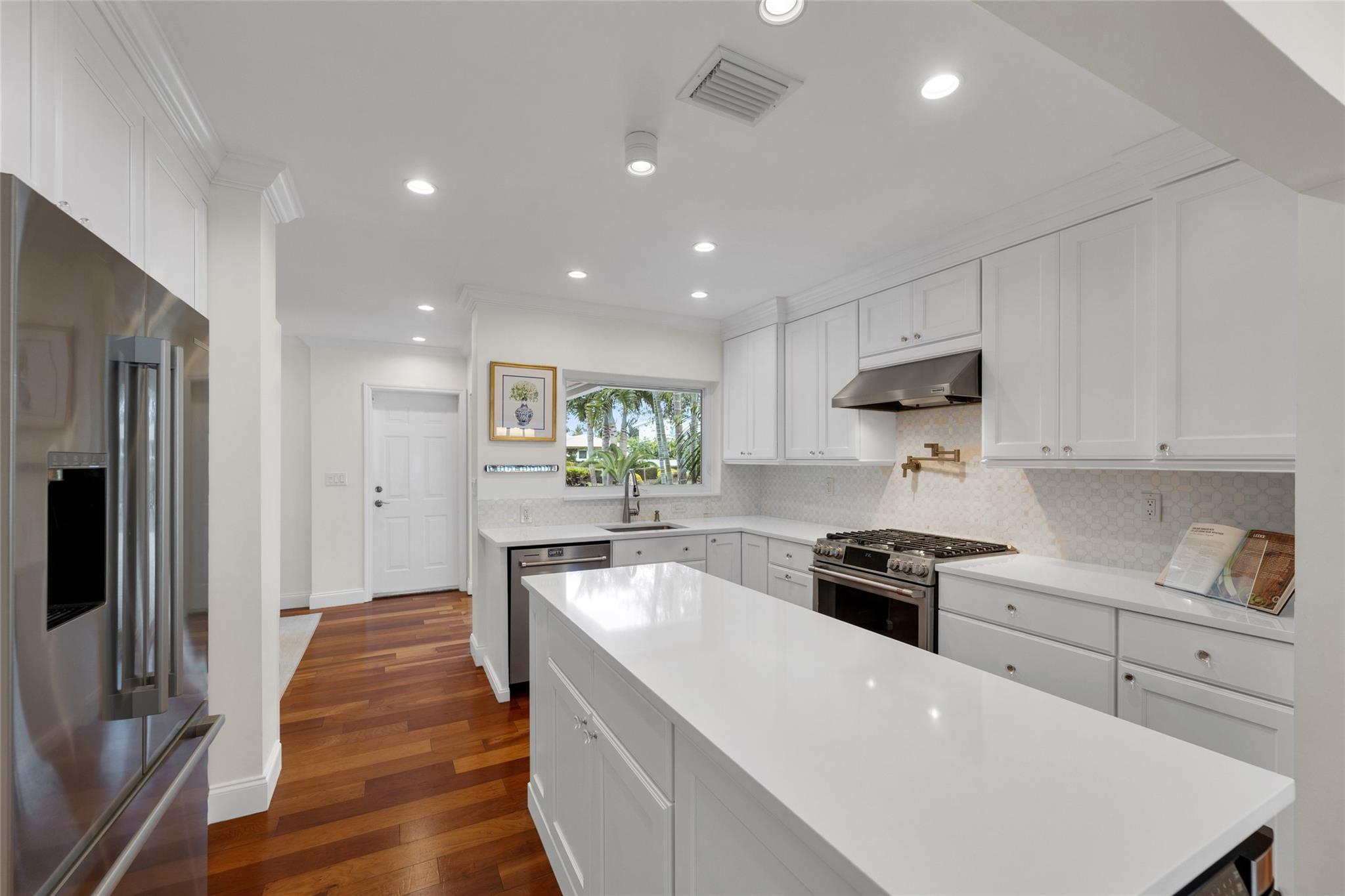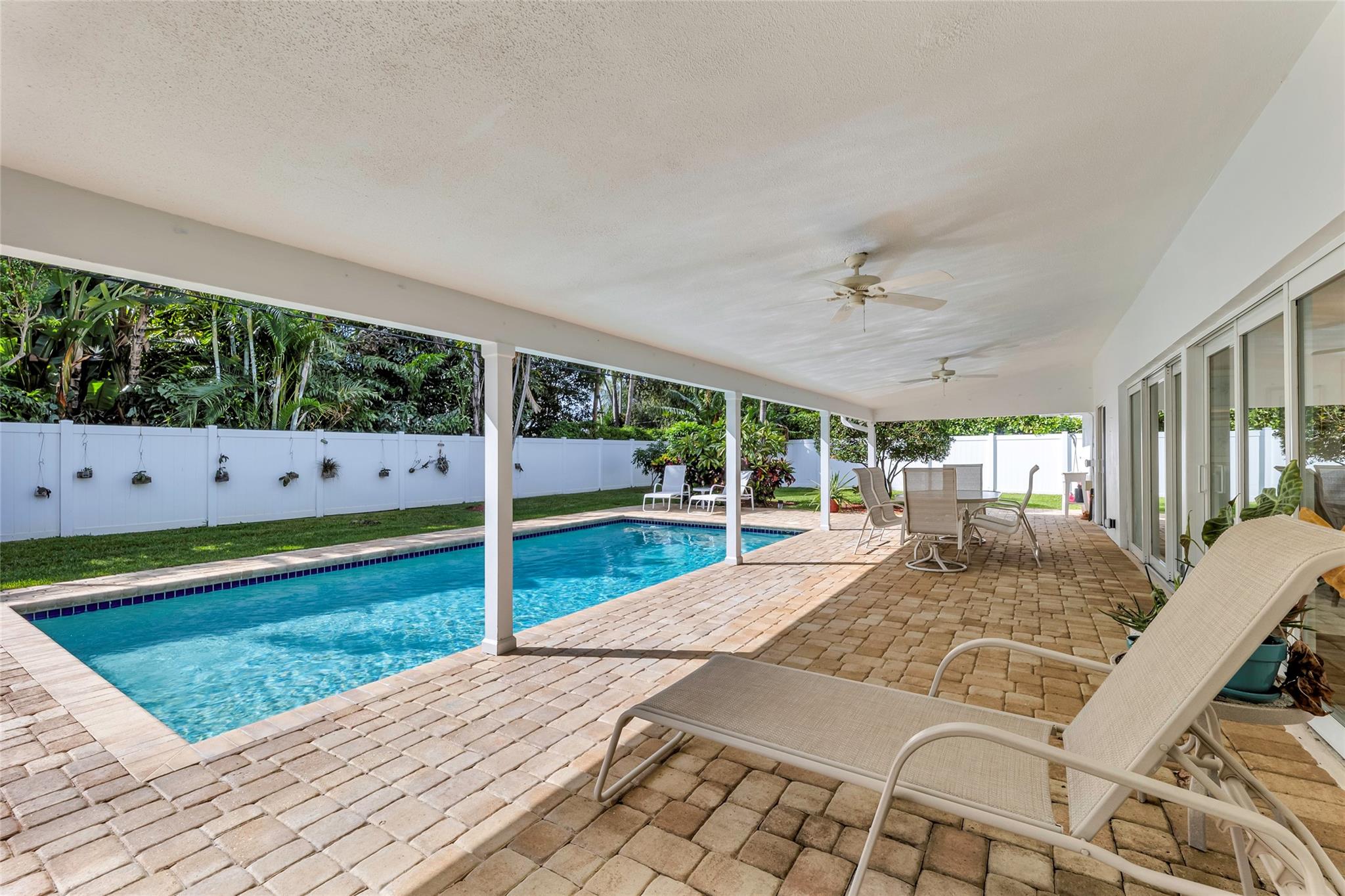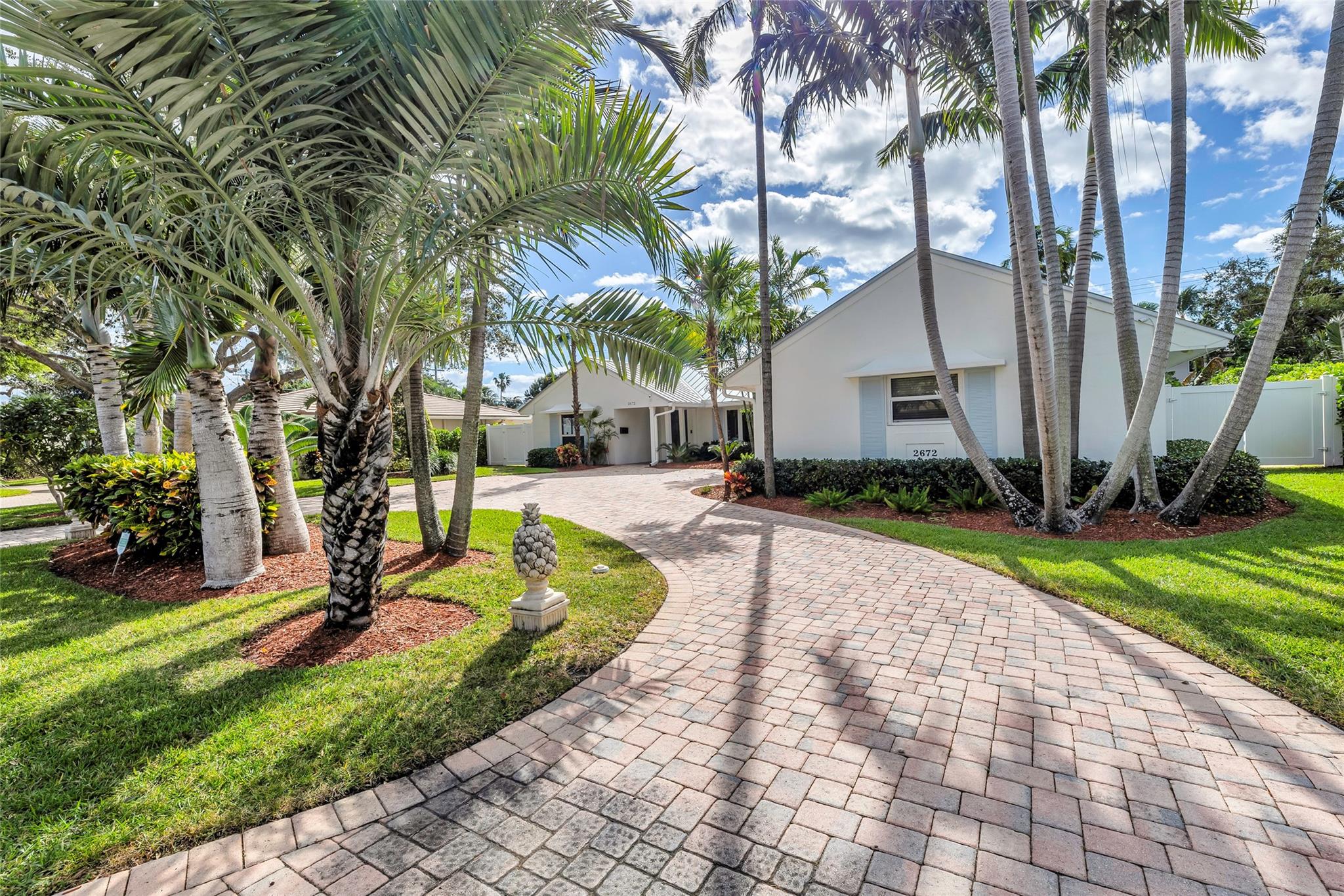 Perfectly located on a premier oversized lot on one of Coral Ridge Country Club's best streets, this island-style property boasts a totally optimized floor plan, abundant natural light, and huge bedrooms. Every inch of this home serves a purpose, making it feel and live large. The renovated gourmet kitchen features custom cabinetry, Pompeii quartz countertops, and new appliances - perfect for preparing exquisite meals in style. Enjoy your private outdoor oasis with heated saltwater pool, huge porch, lush landscaping, fruit trees, and oversized catering gate! Full impact windows & doors, 2016 metal roof, oversized 2-car garage with new mini-split A/C for your morning workout. Lifestyle & location close to beach, clubs, ICW and everything you love about Fort Lauderdale! Owner/agent. No sign.