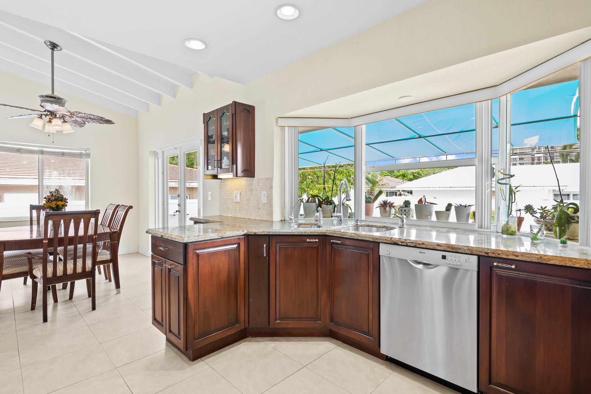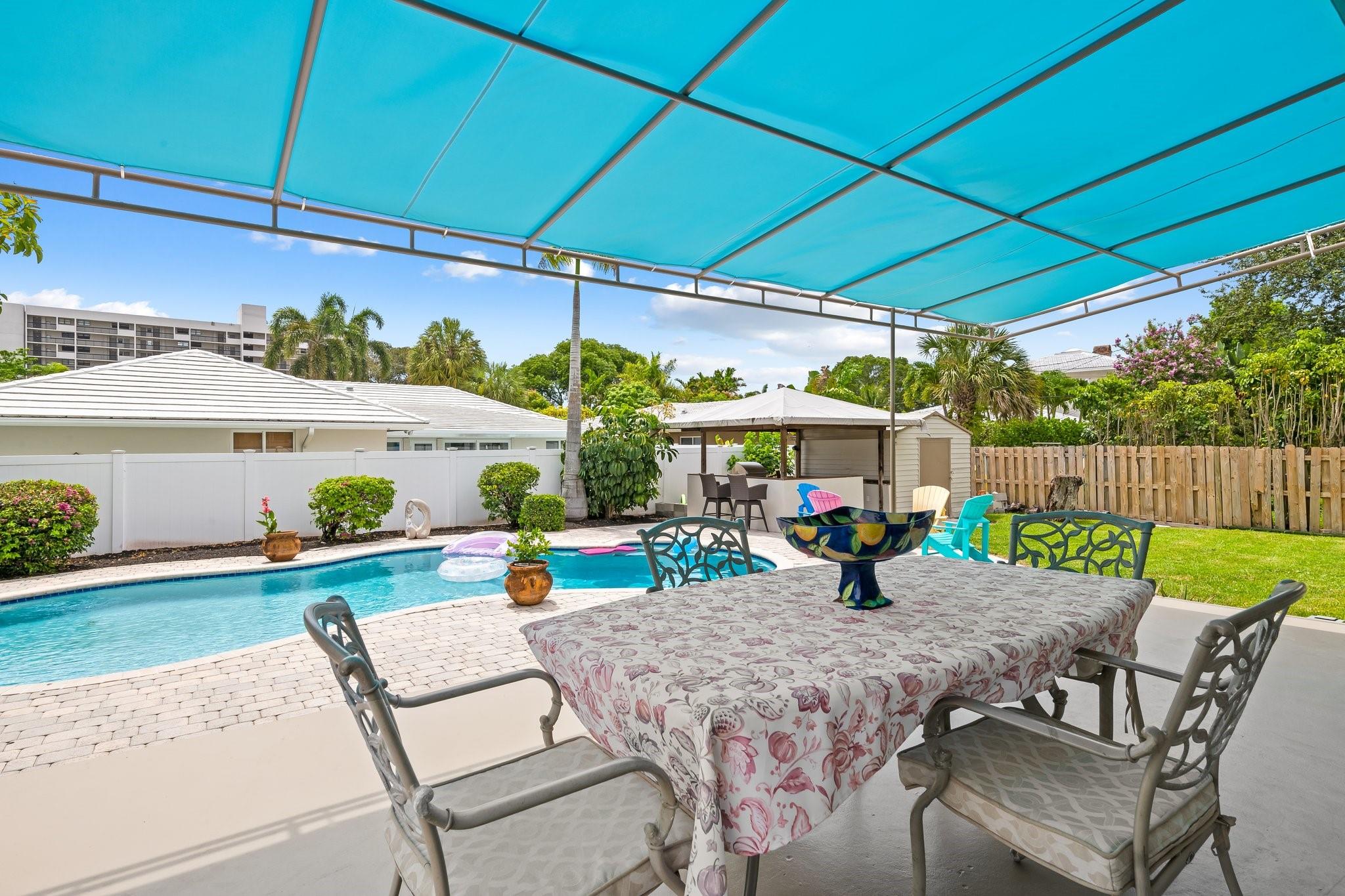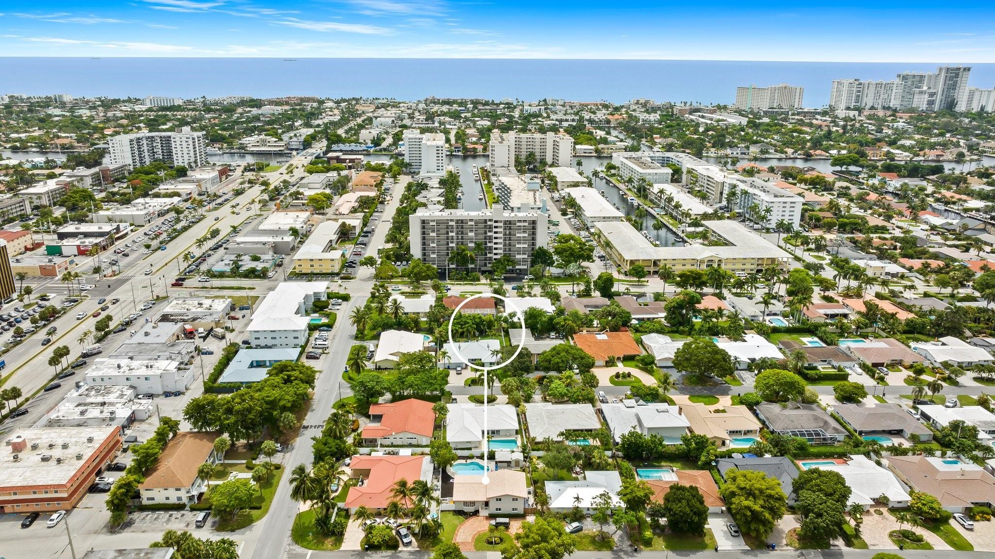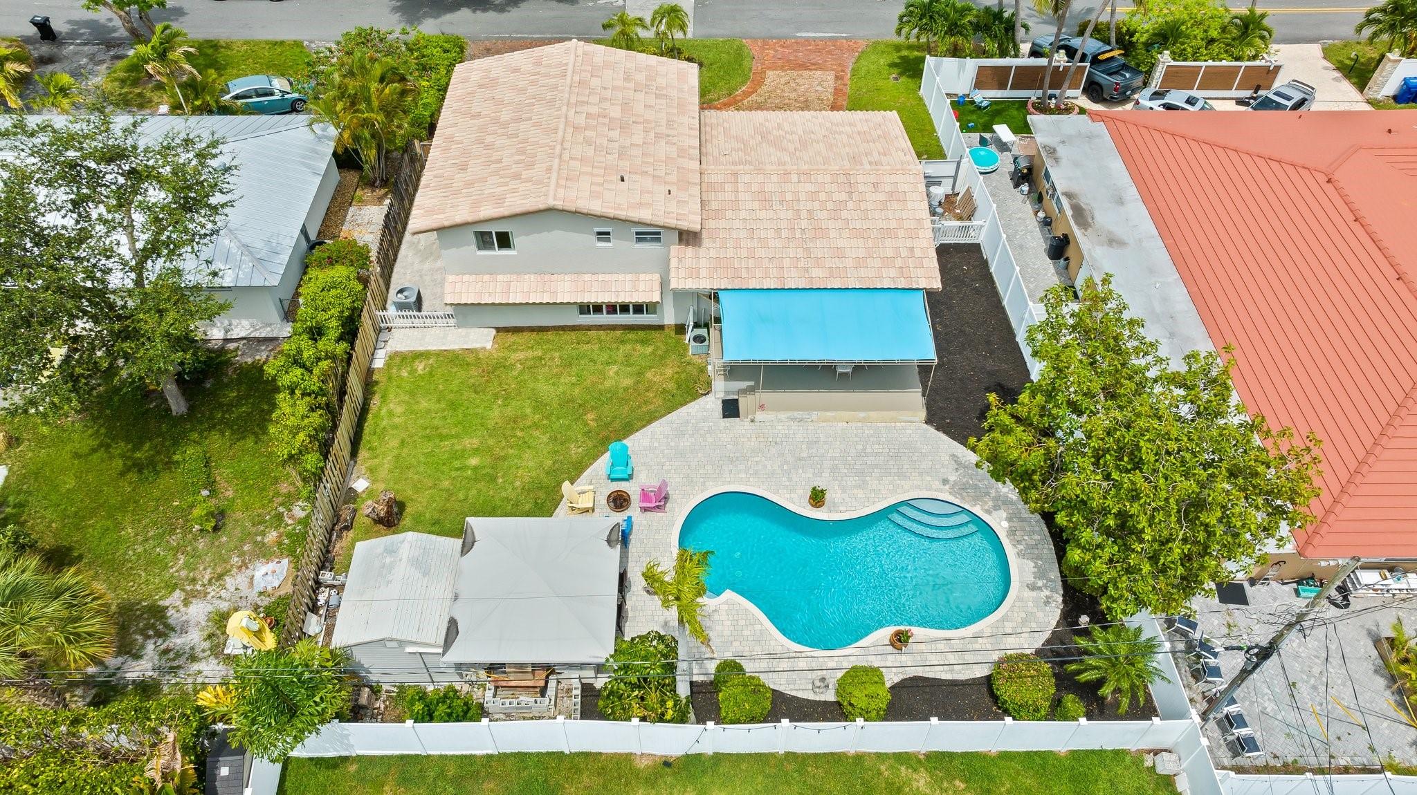 Welcome to your sanctuary in Coral Ridge Country Club Estates! 4 bedrooms, 3 bath tri-level home offers 2,240 sq ft of living space. The second level features a family area with vaulted, wood beam ceilings and a bay window offering an abundance of natural light. Kitchen is equipped with stainless steel appliances and granite countertops opens to an outdoor oasis with a pool. First level includes two bedrooms & shared bath, sitting area and laundry room. Third level boasts the primary suite with jetted tub and an additional bedroom. Enjoy a circular driveway, hurricane shutters, walking distance to Cardinal Gibbons High School, Christ Church, beaches and Lauderdale-by-the-Sea's dining and shopping.