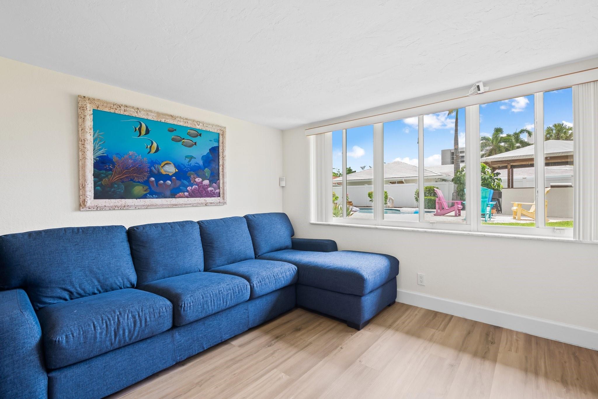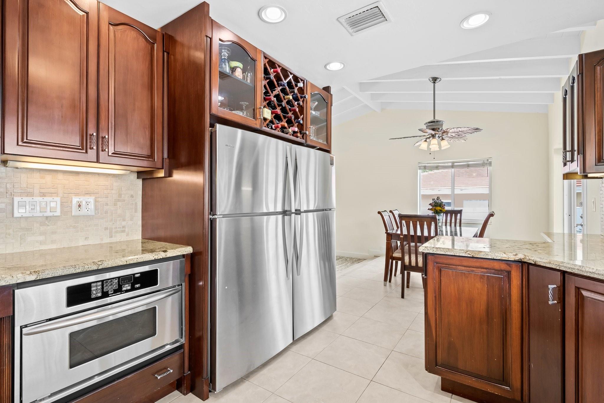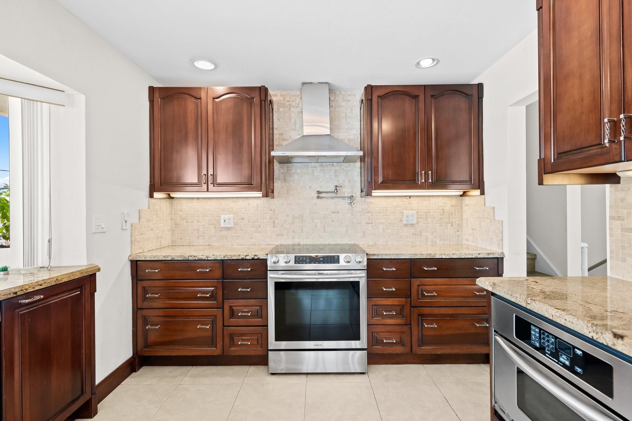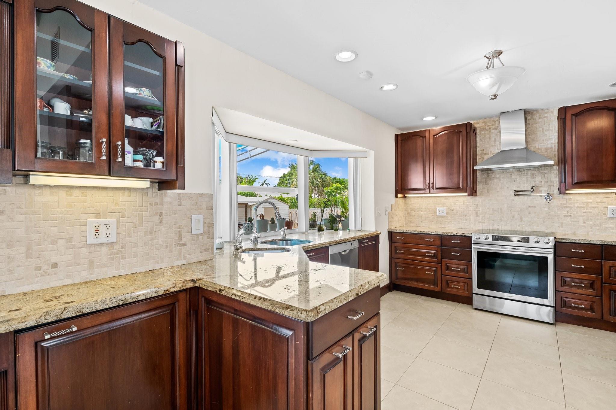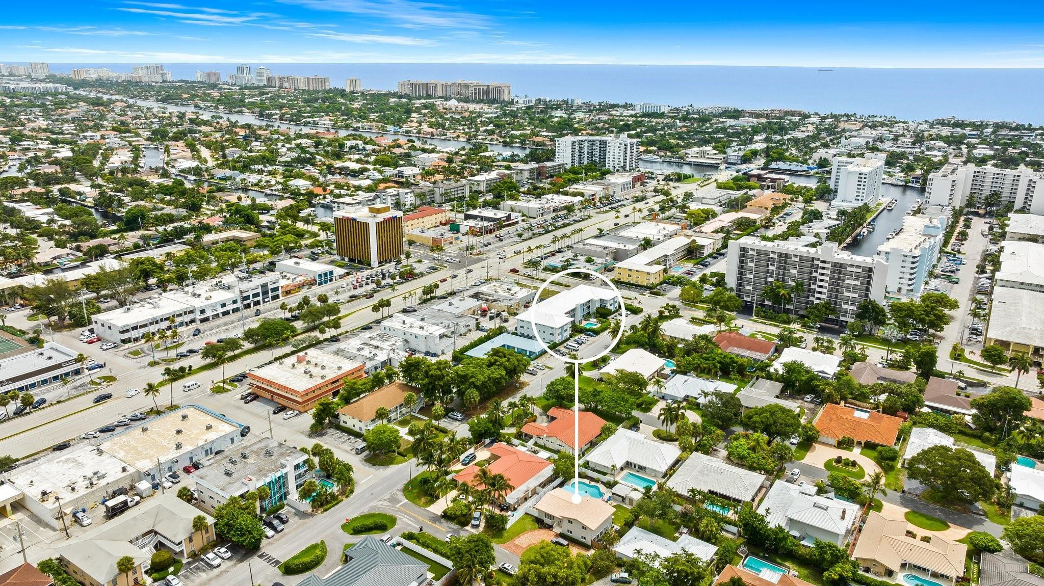 Welcome to your sanctuary in Coral Ridge Country Club Estates! 4 bedrooms, 3 bath tri-level home offers 2,240 sq ft of living space. The second level features a family area with vaulted, wood beam ceilings and a bay window offering an abundance of natural light. Kitchen is equipped with stainless steel appliances and granite countertops opens to an outdoor oasis with a pool. First level includes two bedrooms & shared bath, sitting area and laundry room. Third level boasts the primary suite with jetted tub and an additional bedroom. Enjoy a circular driveway, hurricane shutters, walking distance to Cardinal Gibbons High School, Christ Church, beaches and Lauderdale-by-the-Sea's dining and shopping.