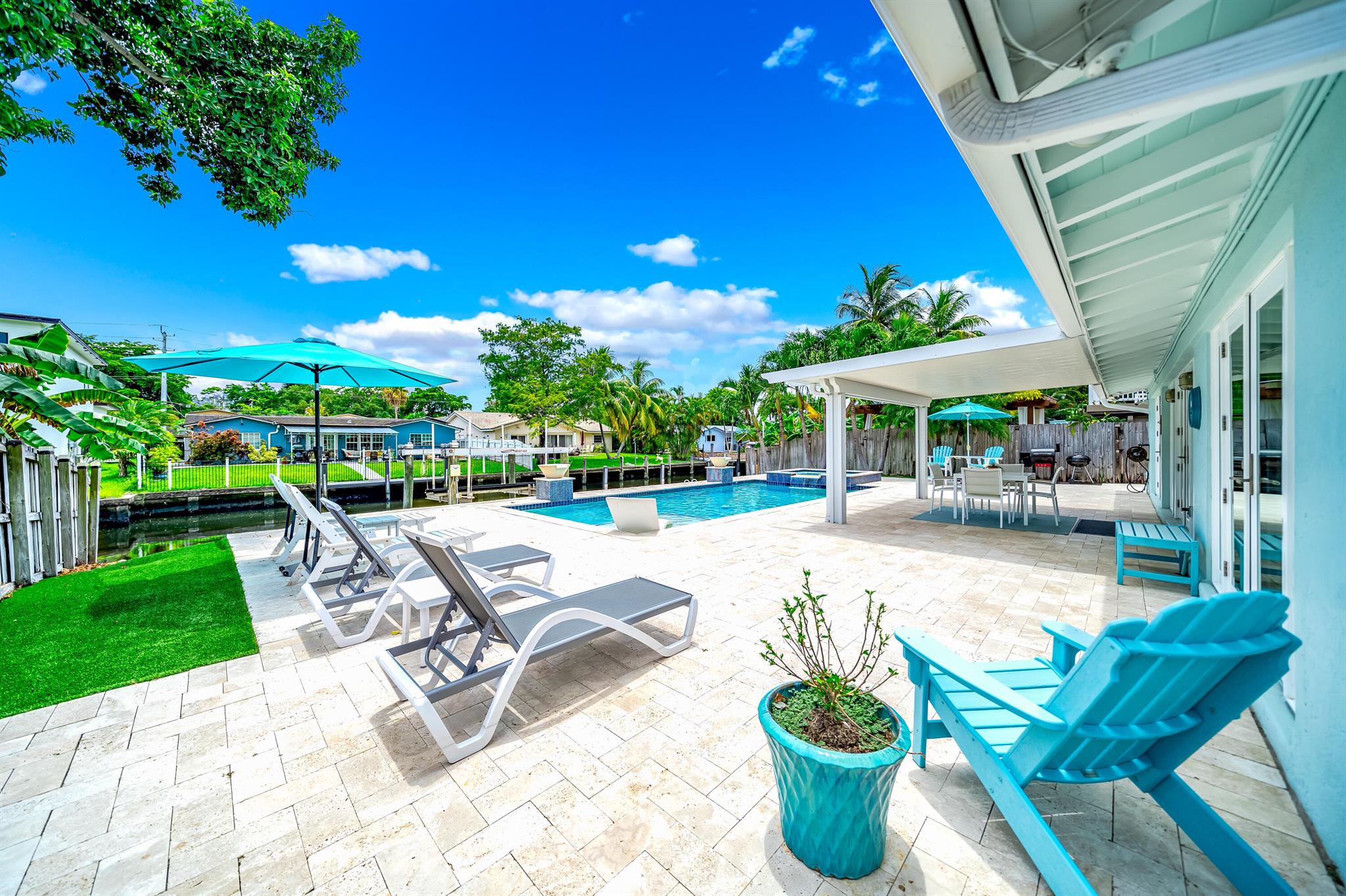 Experience waterfront luxury in Fort Lauderdale This exclusive property offers three bedrooms, two bathrooms, and a sophisticated living space, boasting with waterfront views. Dive into relaxation with a heated saltwater pool and enjoy 65 feet of canal frontage with a 13k lb boat lift. The modern kitchen features quartz countertops and stainless steel appliances. Revel in open beam ceilings, and natural light. Upgrades include renovated bathrooms and high-end finishes, impact windows, and a Generac generator. Home is also a current Income producing air bnb property! Don't miss this rare opportunity to own your waterfront oasis in Fort Lauderdale, minutes to downtown, Las Olas, and Beaches!