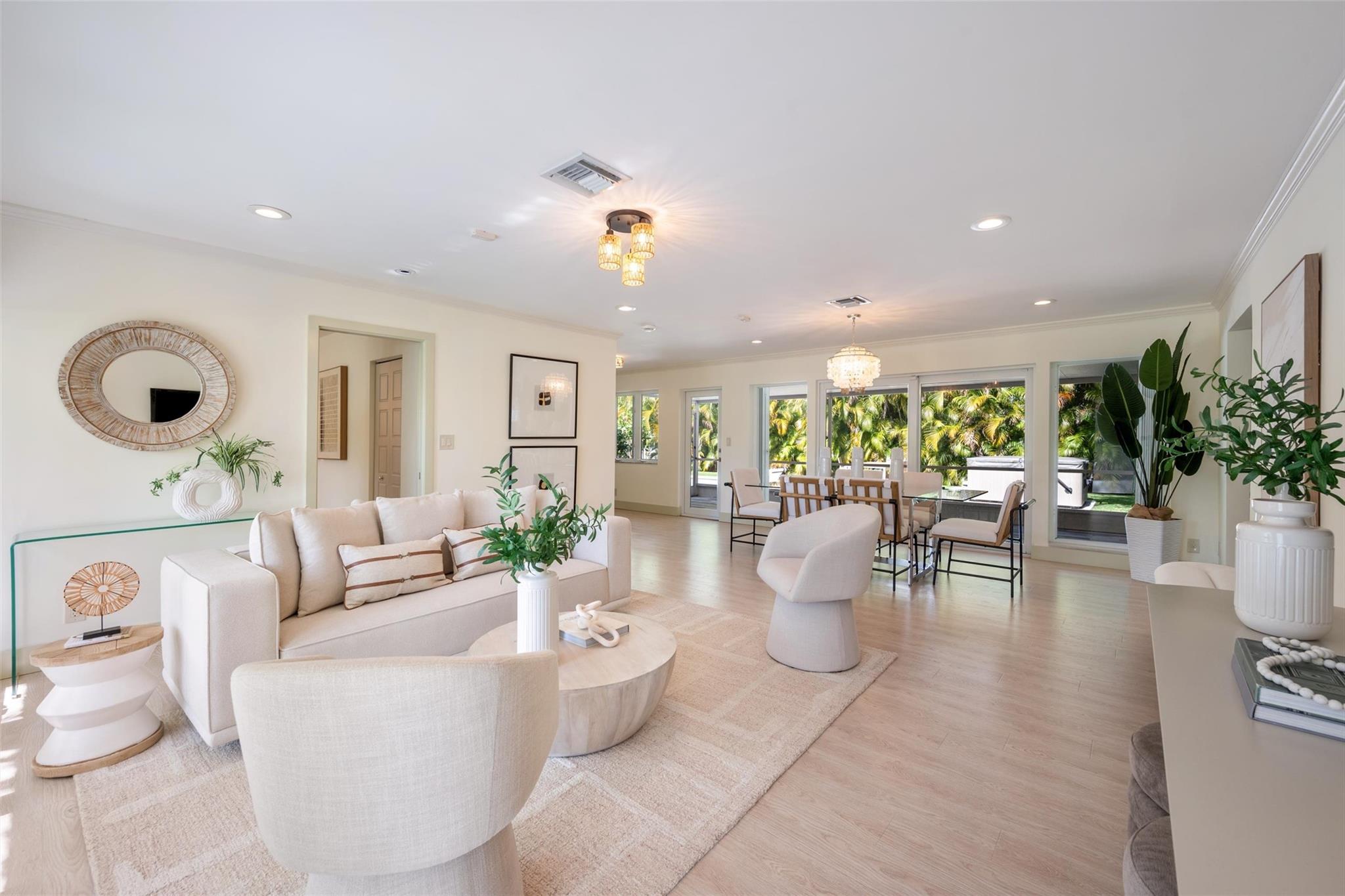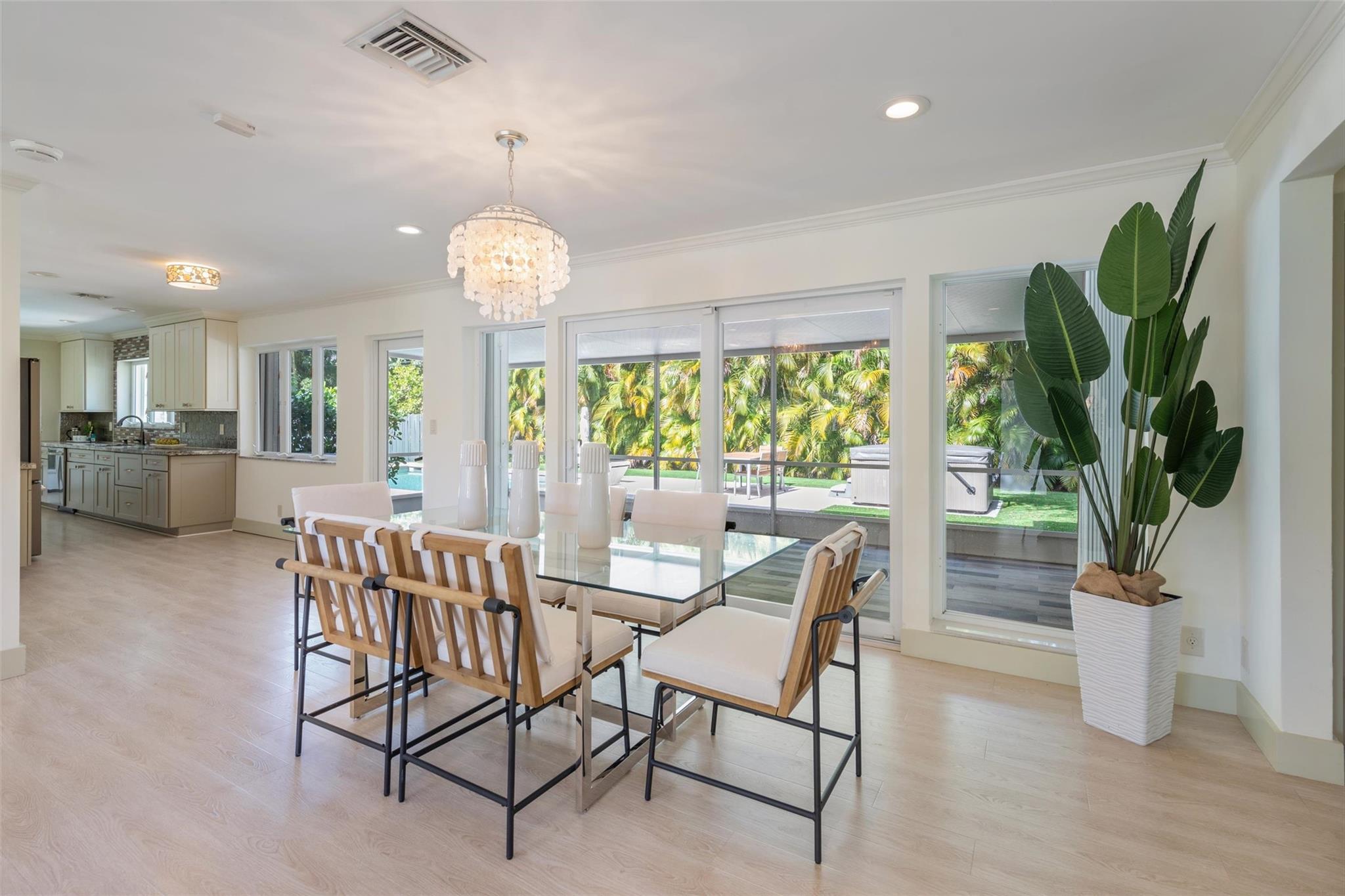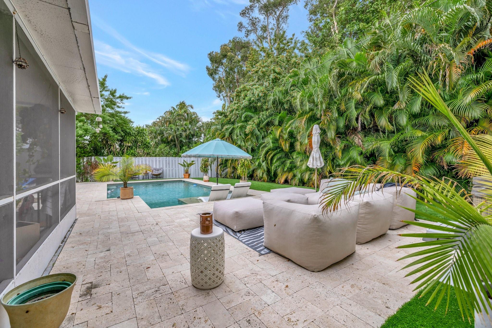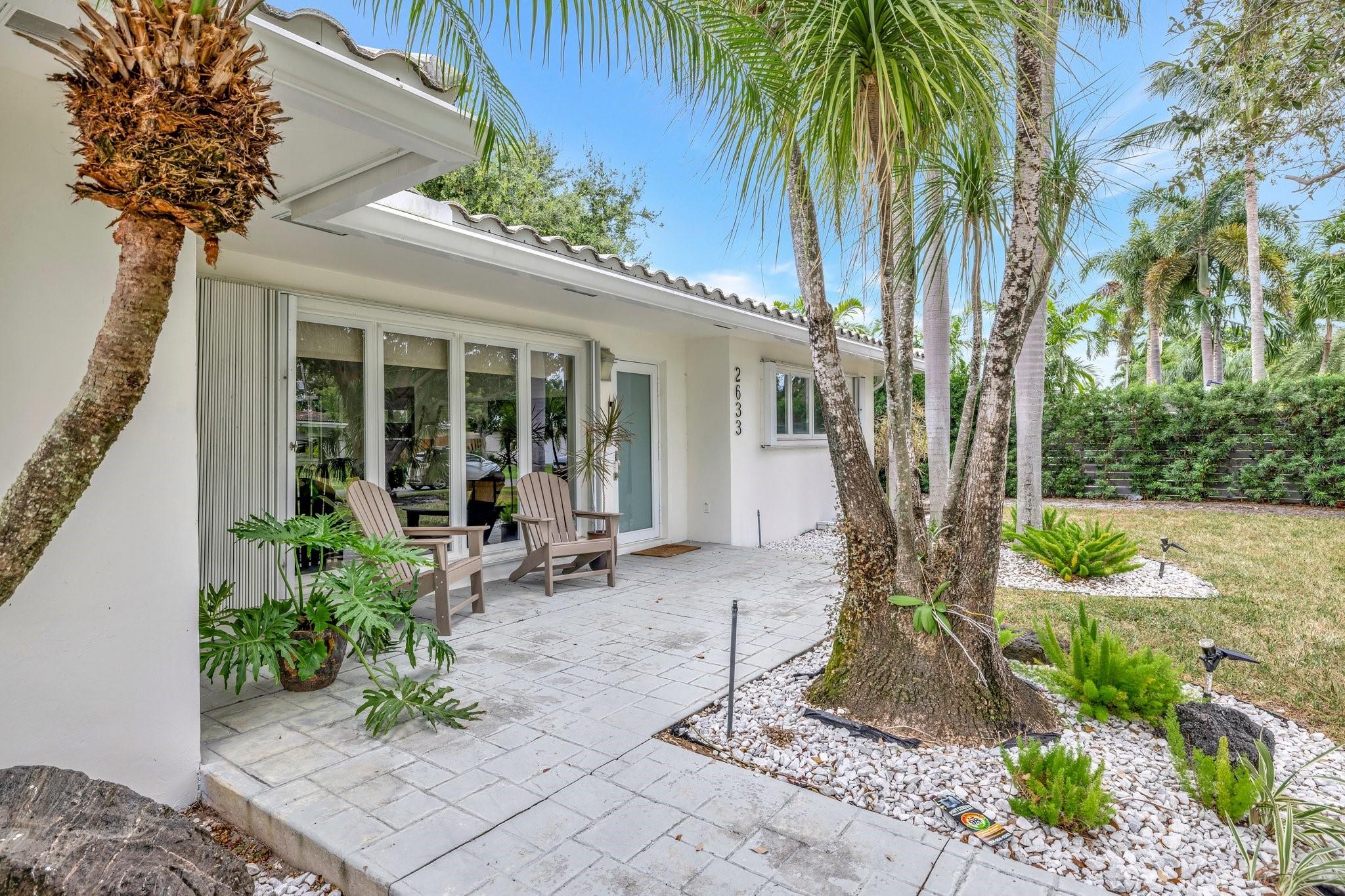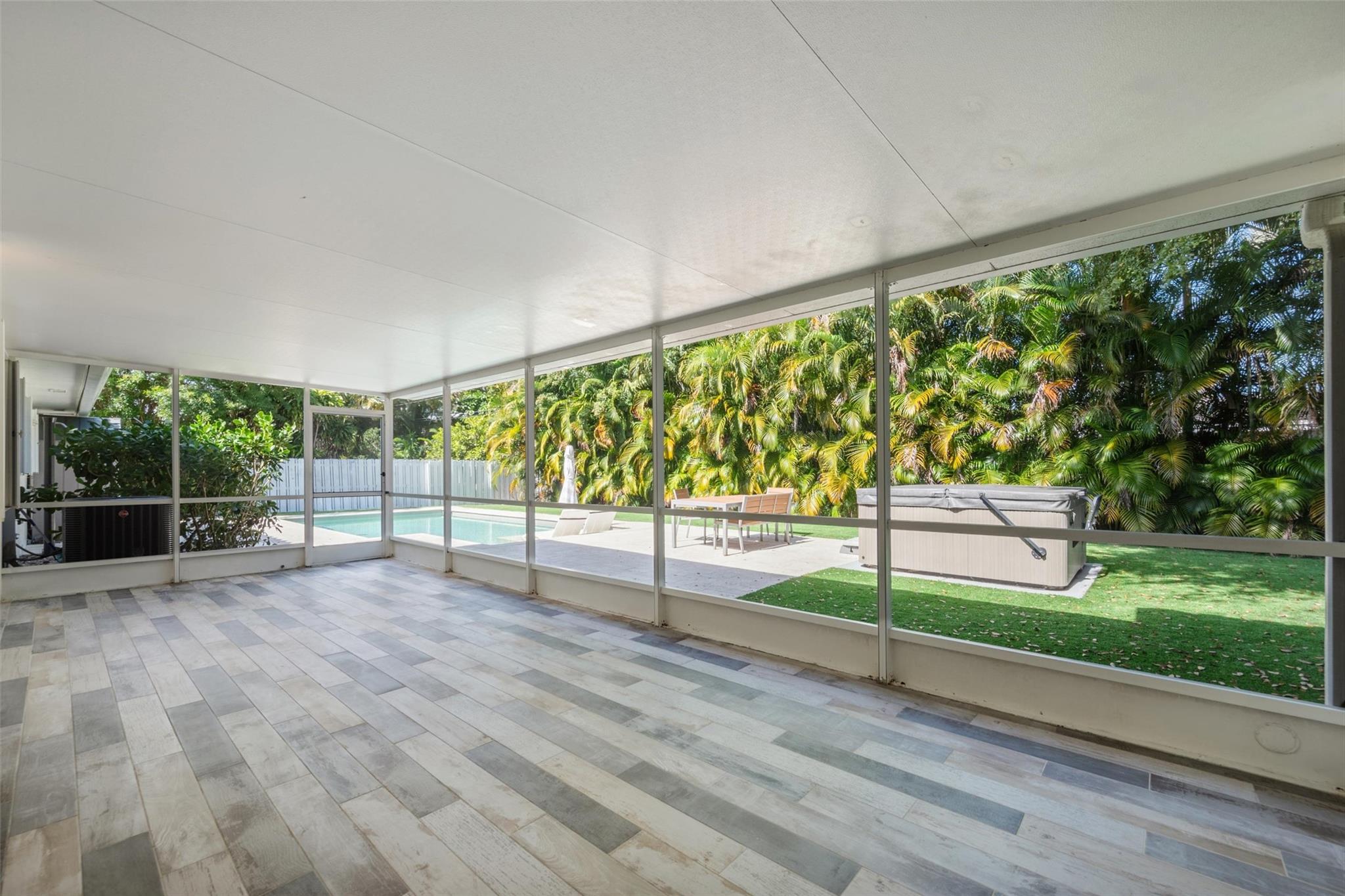 Located in Coral Ridge, this updated contemporary home in East Fort Lauderdale epitomizes the South Florida lifestyle. Just minutes from the beach, shopping, dining, fitness centers, and Bayview Elementary, it combines luxury and convenience. Lush tropical landscaping enhances the curb appeal and welcoming entry. New A/C, Inside, a spacious open floor plan with sliding glass doors seamlessly connects indoor and outdoor living spaces, perfect for entertaining. Relax in the screened lanai overlooking the saltwater pool, hot tub, patio, and garden. The gourmet kitchen offers ample counter space for any chef. The primary suite includes two walk-in closets and a luxurious bath, while the second and third bedrooms share a full bath.