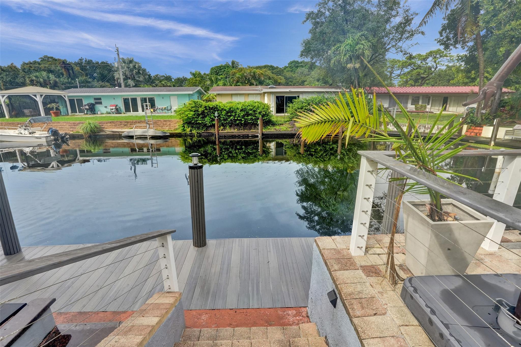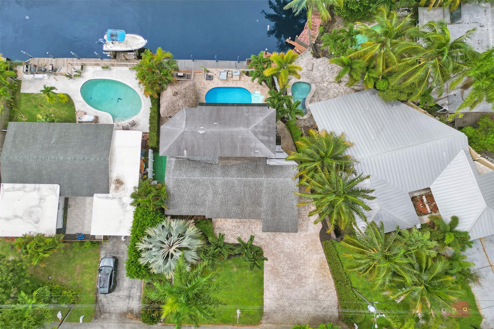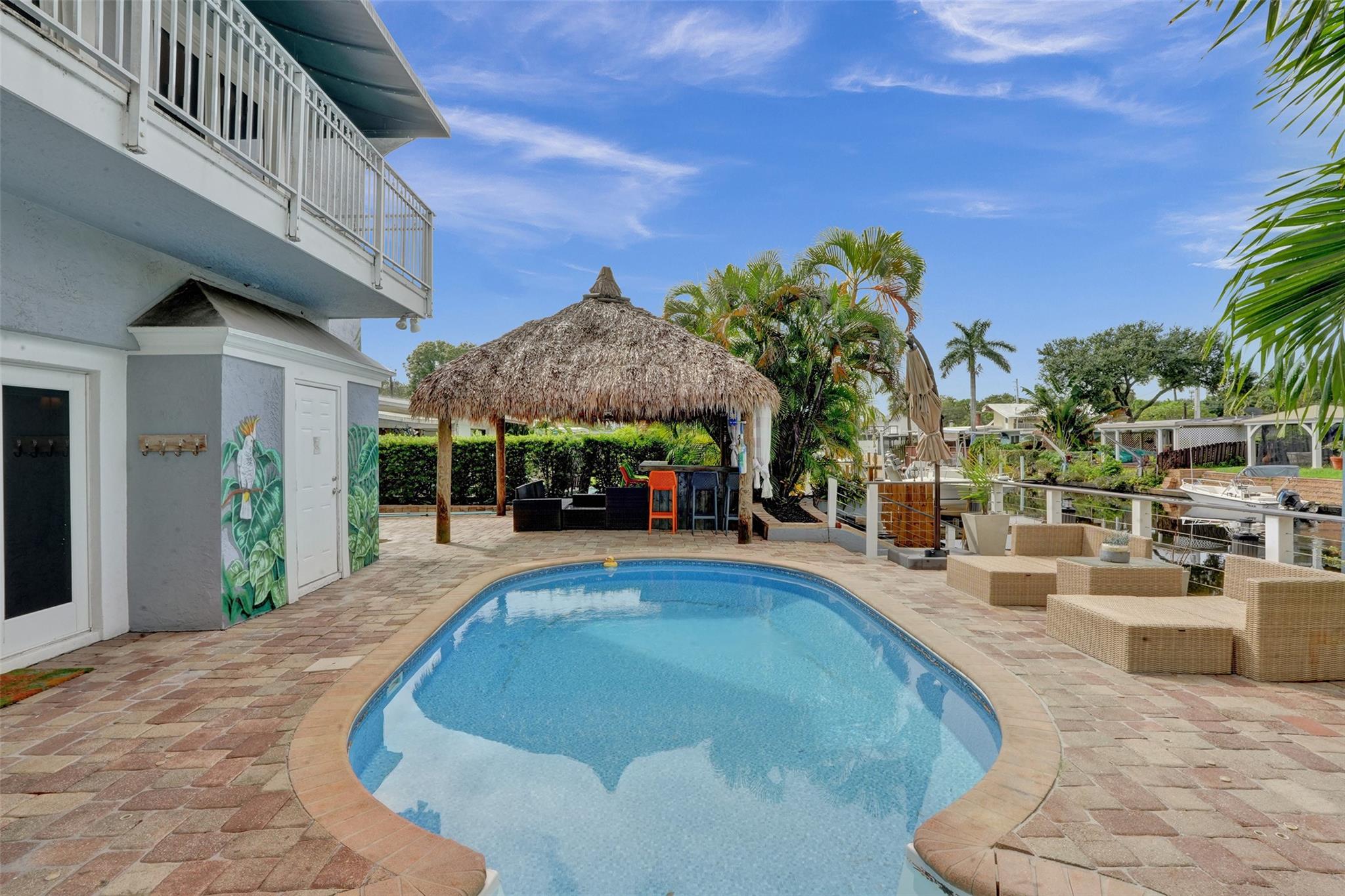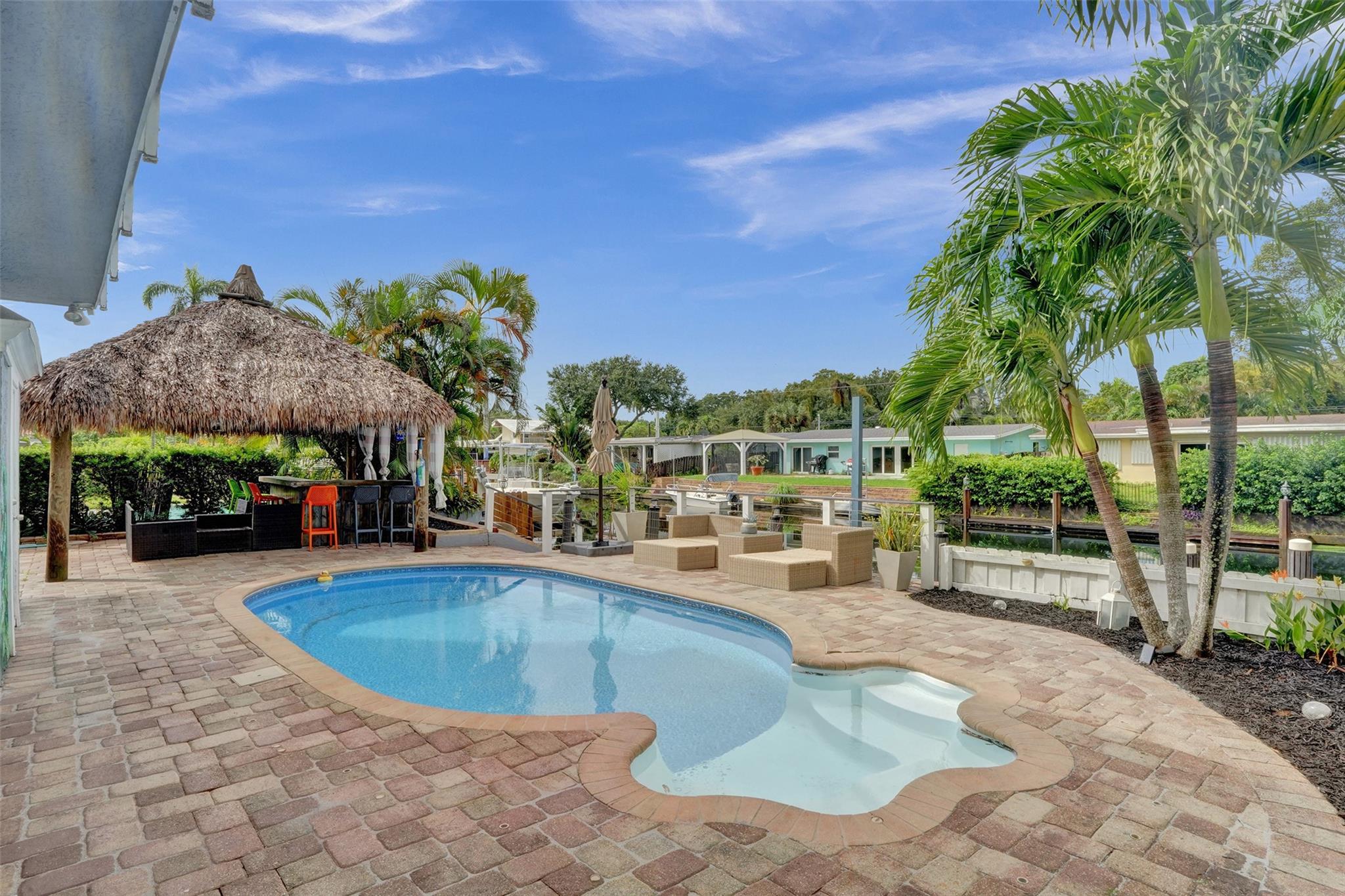 If you’re looking for the epitome of south Florida living…this is it! Beautifully updated in amazing beach vibes style, this 2-story waterfront home boasts 48’ of dock space & ocean access w/ no fixed bridges, a true boaters paradise! Perfect backyard for entertaining w/ redone saltwater pool, custom tiki hut w/ wet bar, outdoor shower & cabana bath! Open floor plan home w/ oversized kitchen & huge island/bar area! 2 spacious BRs downstairs, one of which could be separated into 4th BR. 2nd floor features primary suite w/ balcony overlooking pool & WF, spacious bath w/ rain shower, dual sinks & sep soaking tub! Impact glass thru/out, lots of storage space, large laundry room & so much more! Being sold turn-key, so a great home for investors or end users alike! A true must see!