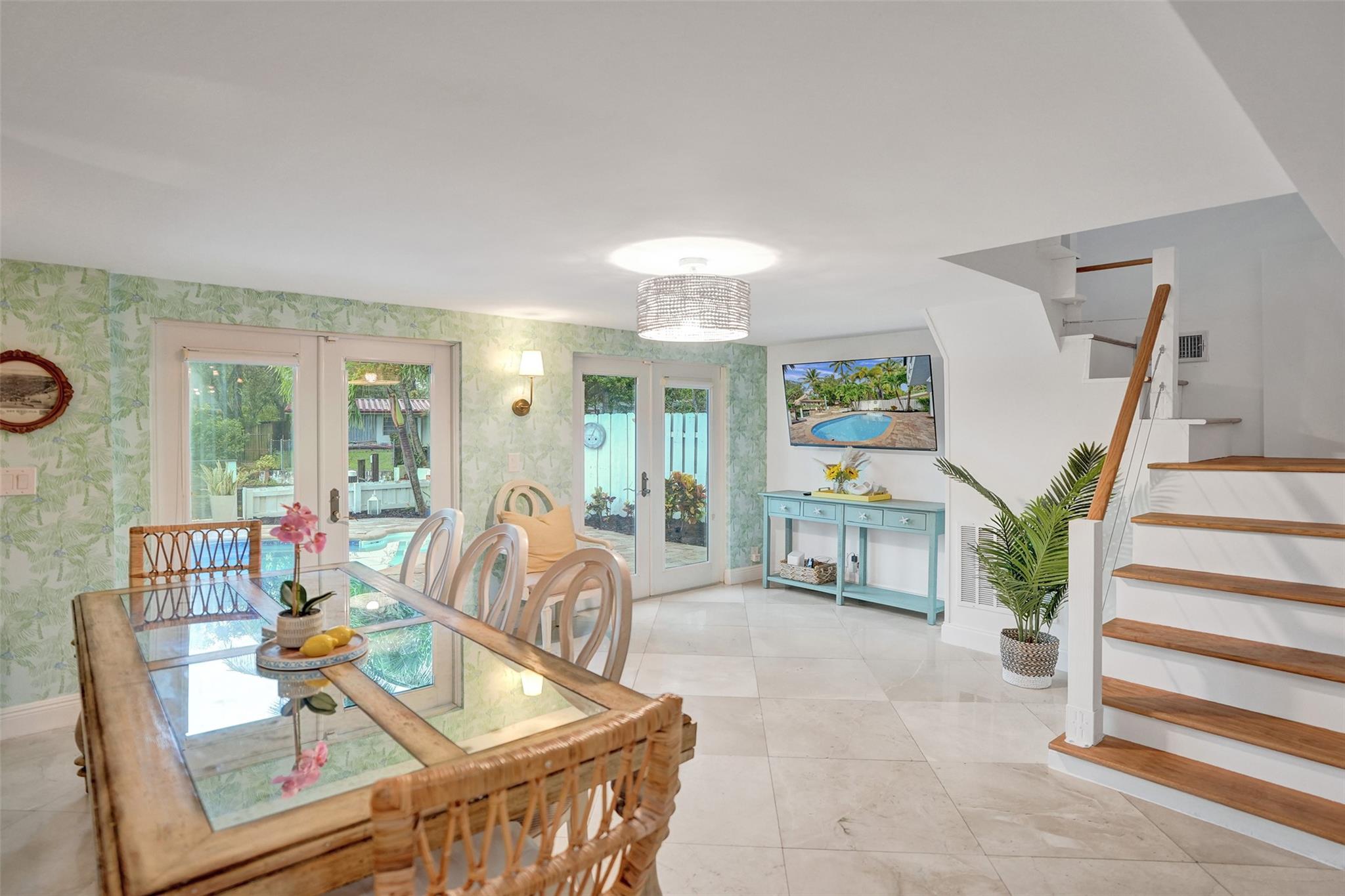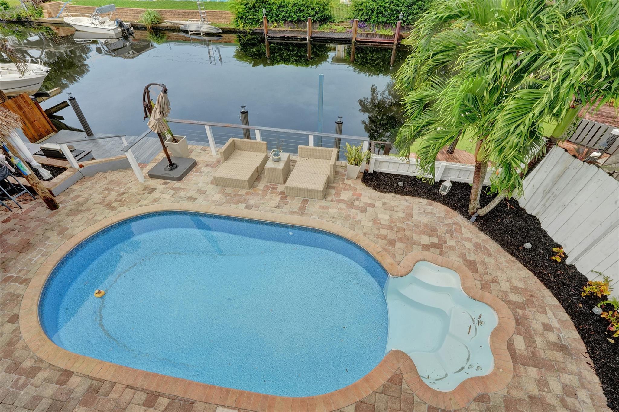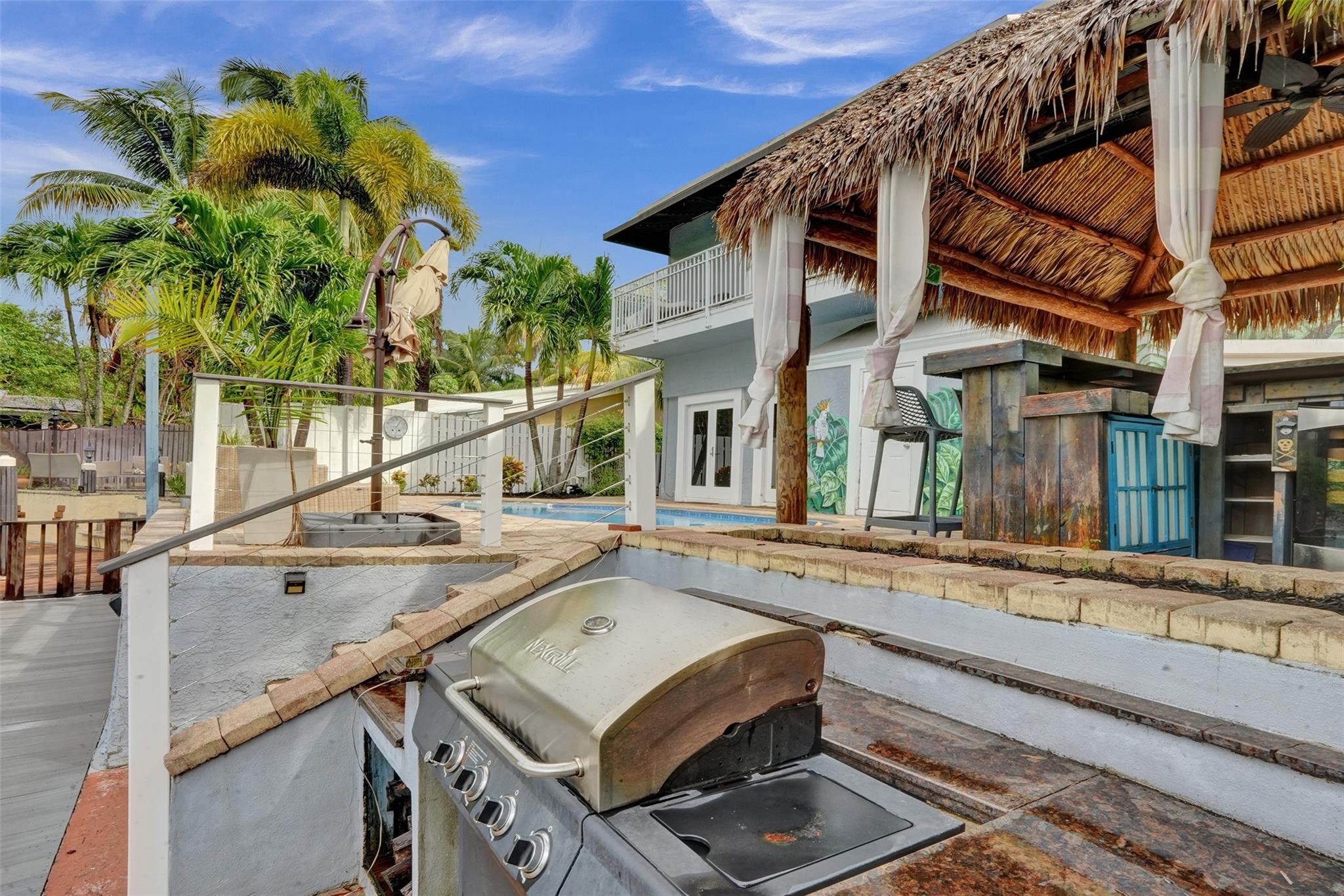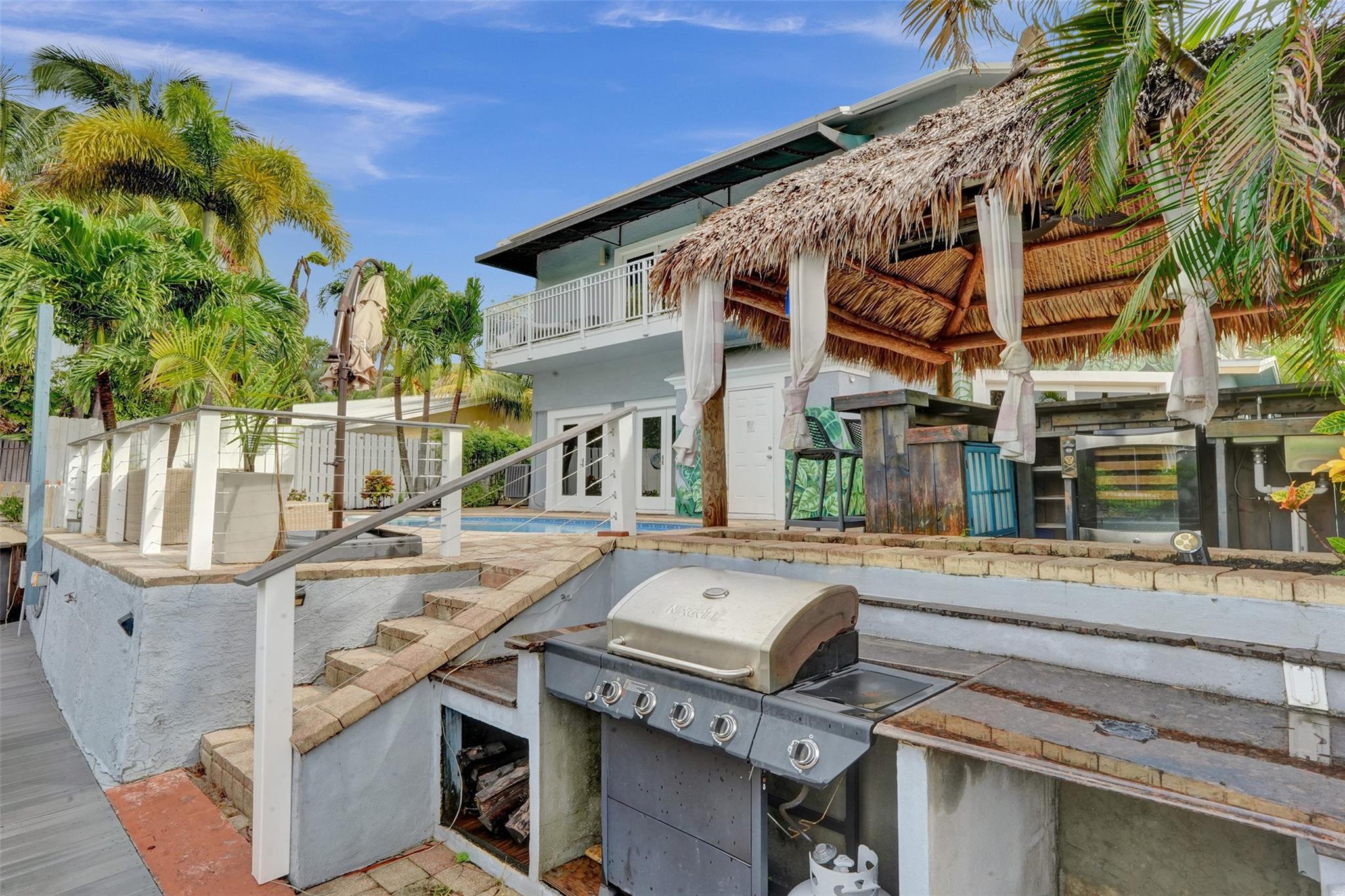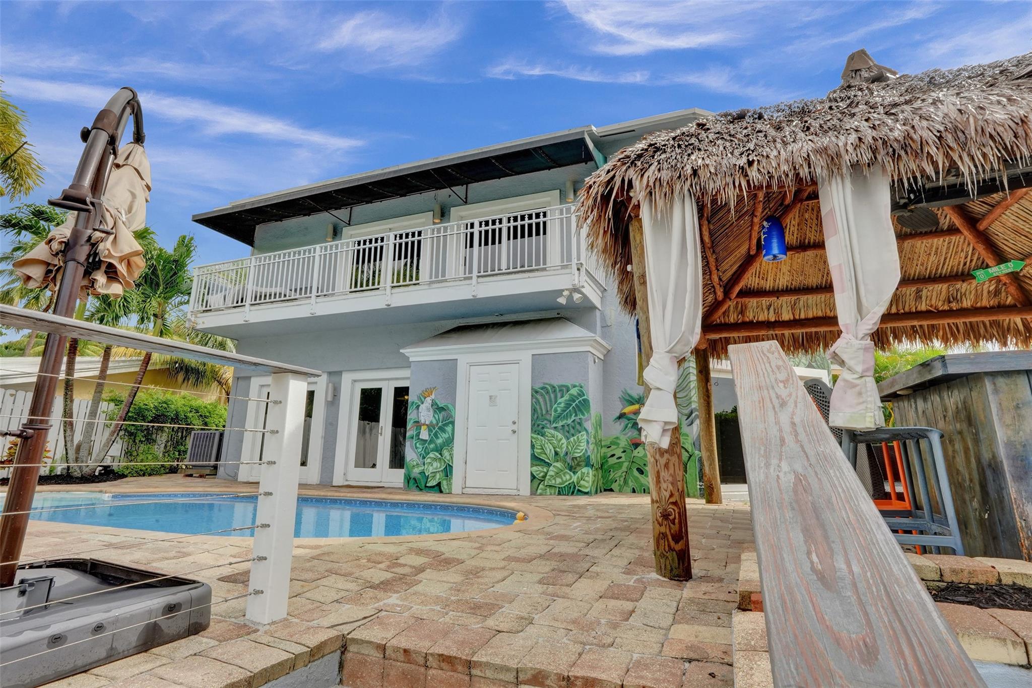 If you’re looking for the epitome of south Florida living…this is it! Beautifully updated in amazing beach vibes style, this 2-story waterfront home boasts 48’ of dock space & ocean access w/ no fixed bridges, a true boaters paradise! Perfect backyard for entertaining w/ redone saltwater pool, custom tiki hut w/ wet bar, outdoor shower & cabana bath! Open floor plan home w/ oversized kitchen & huge island/bar area! 2 spacious BRs downstairs, one of which could be separated into 4th BR. 2nd floor features primary suite w/ balcony overlooking pool & WF, spacious bath w/ rain shower, dual sinks & sep soaking tub! Impact glass thru/out, lots of storage space, large laundry room & so much more! Being sold turn-key, so a great home for investors or end users alike! A true must see!