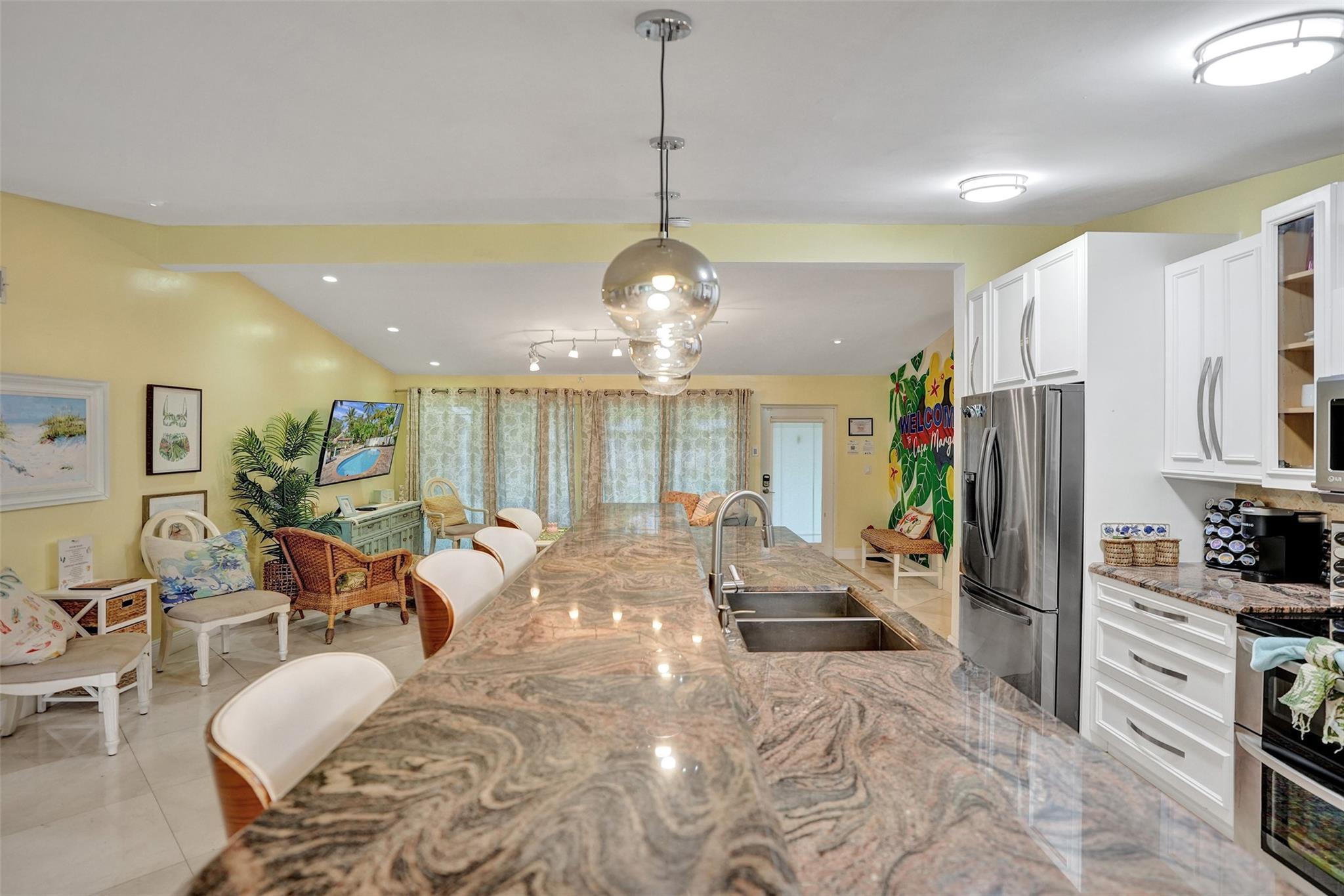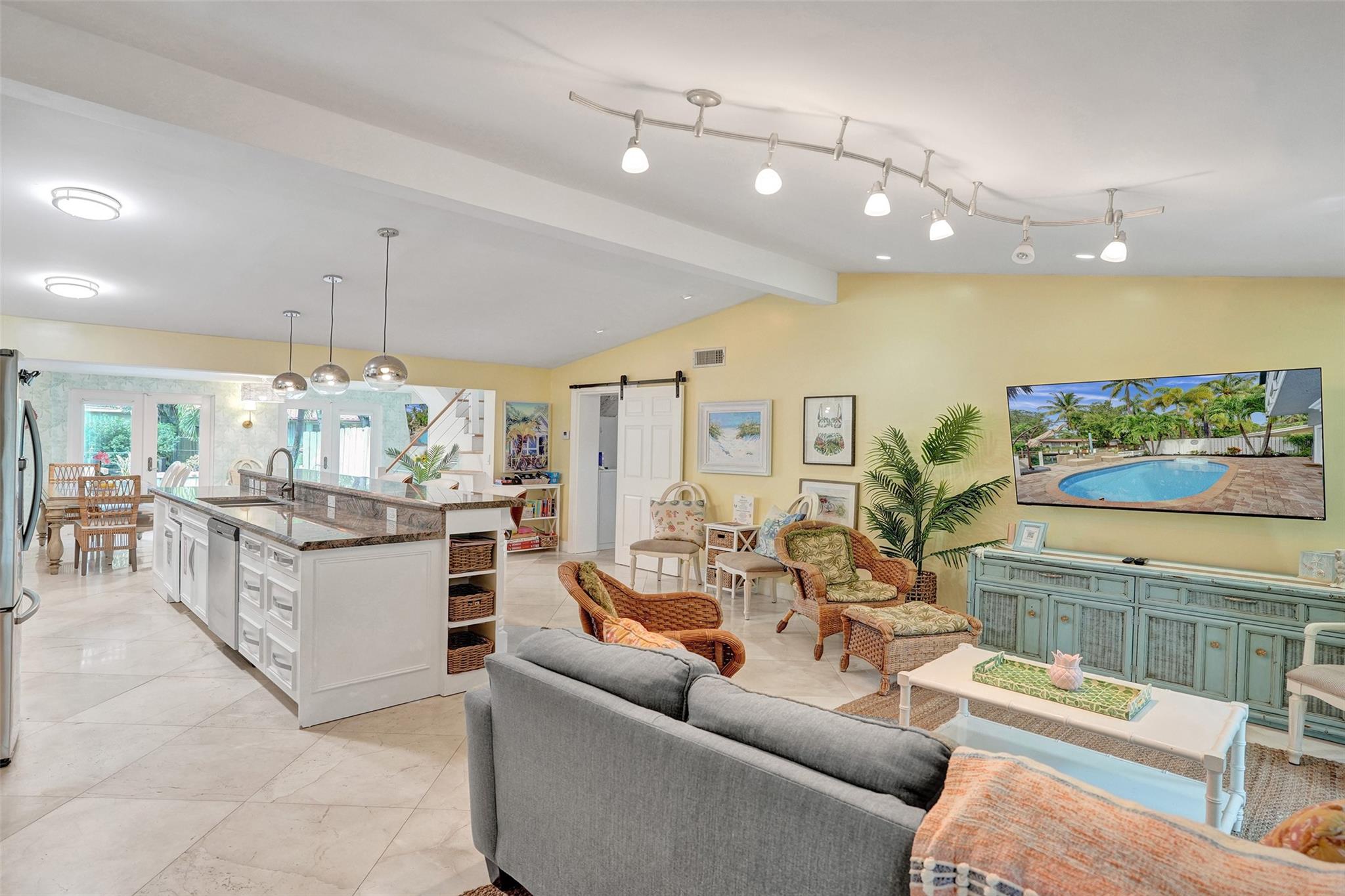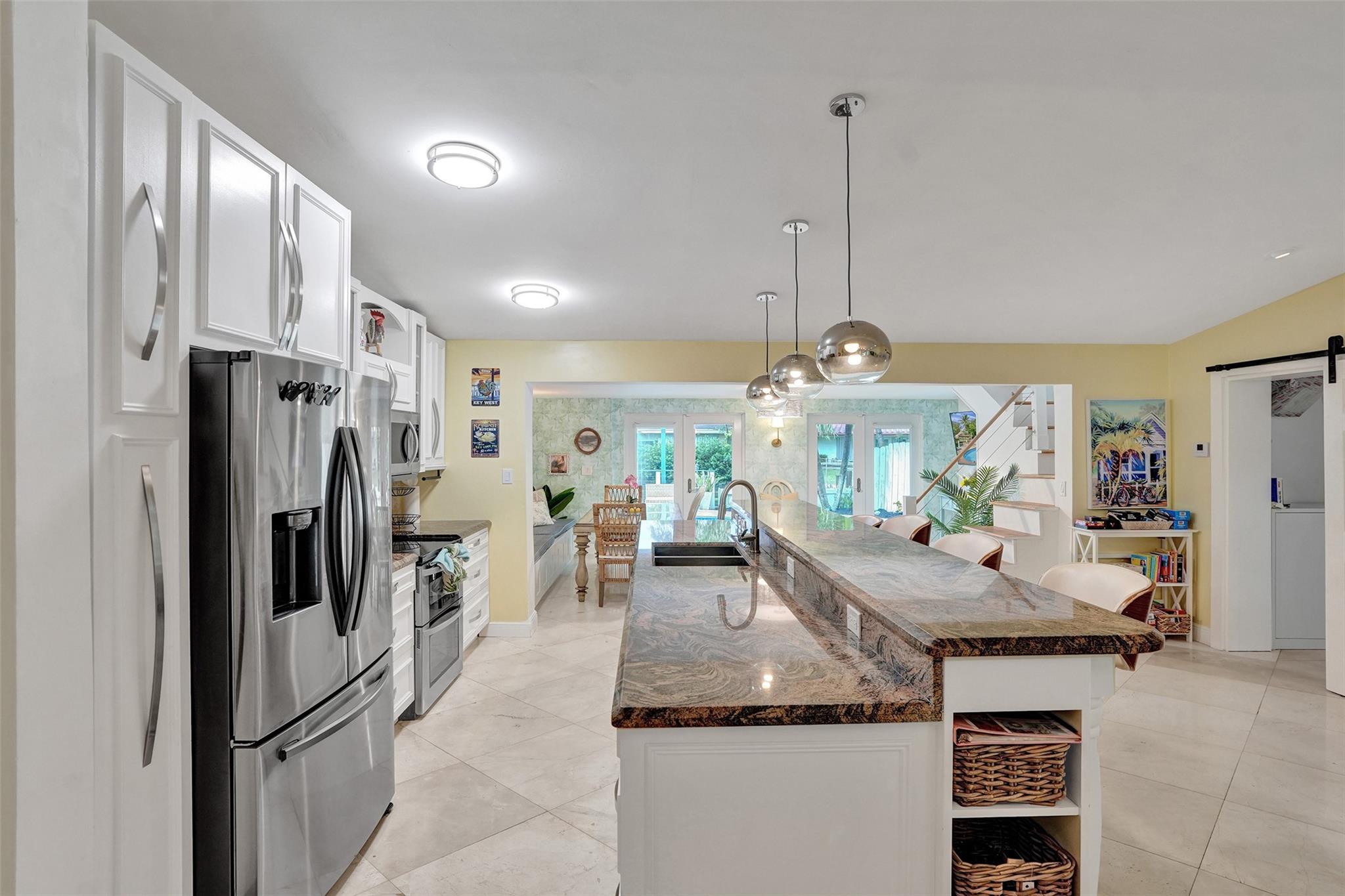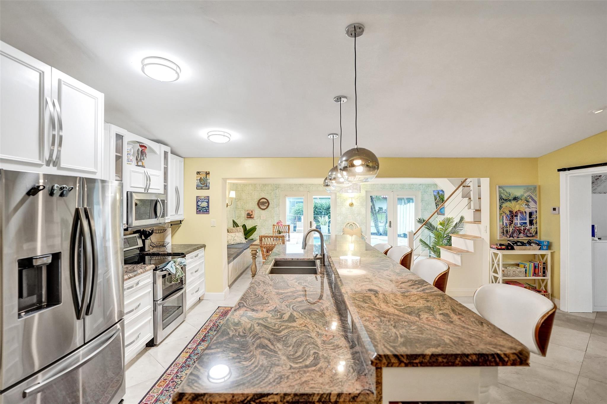 If you’re looking for the epitome of south Florida living…this is it! Beautifully updated in amazing beach vibes style, this 2-story waterfront home boasts 48’ of dock space & ocean access w/ no fixed bridges, a true boaters paradise! Perfect backyard for entertaining w/ redone saltwater pool, custom tiki hut w/ wet bar, outdoor shower & cabana bath! Open floor plan home w/ oversized kitchen & huge island/bar area! 2 spacious BRs downstairs, one of which could be separated into 4th BR. 2nd floor features primary suite w/ balcony overlooking pool & WF, spacious bath w/ rain shower, dual sinks & sep soaking tub! Impact glass thru/out, lots of storage space, large laundry room & so much more! Being sold turn-key, so a great home for investors or end users alike! A true must see!