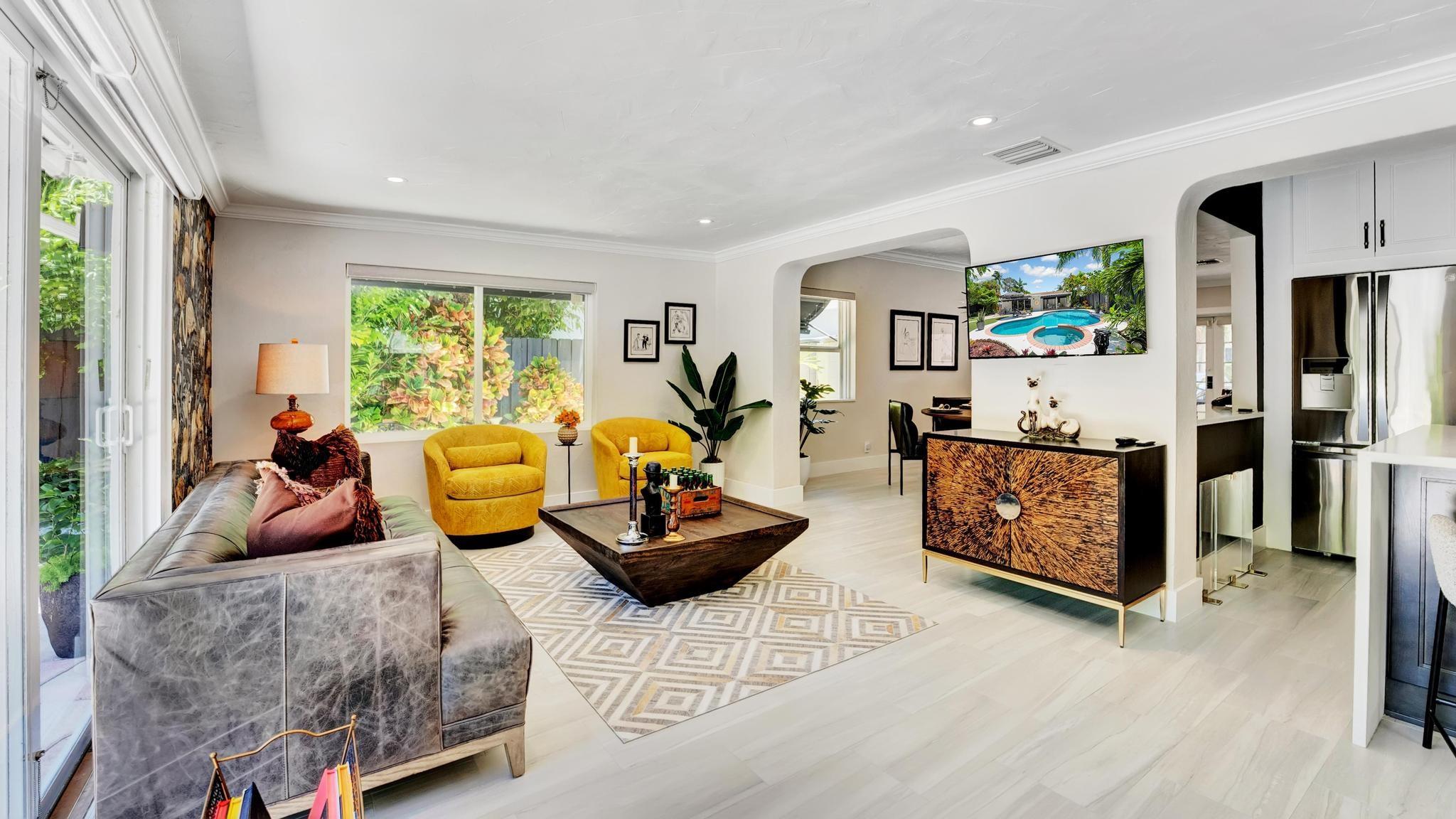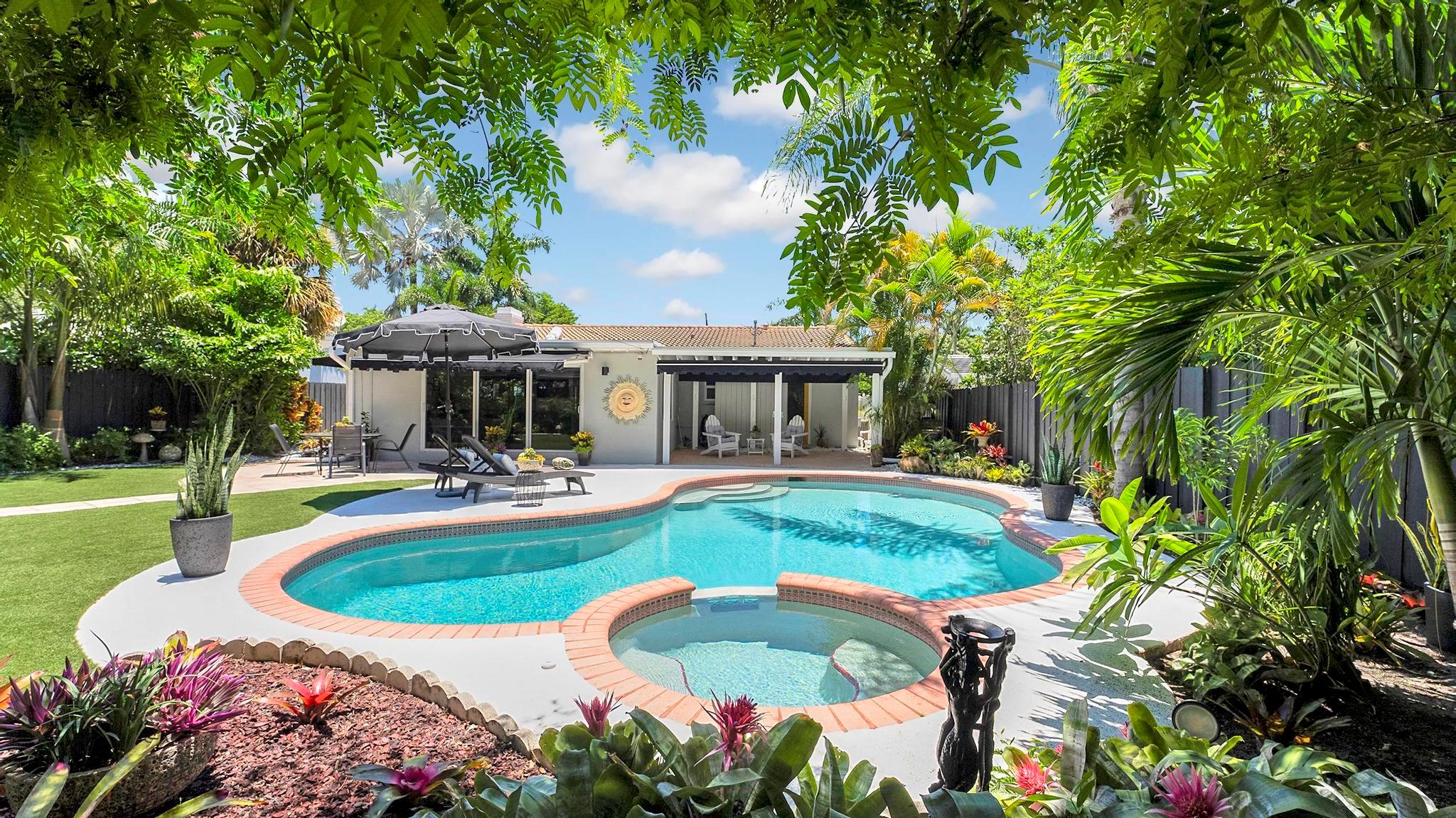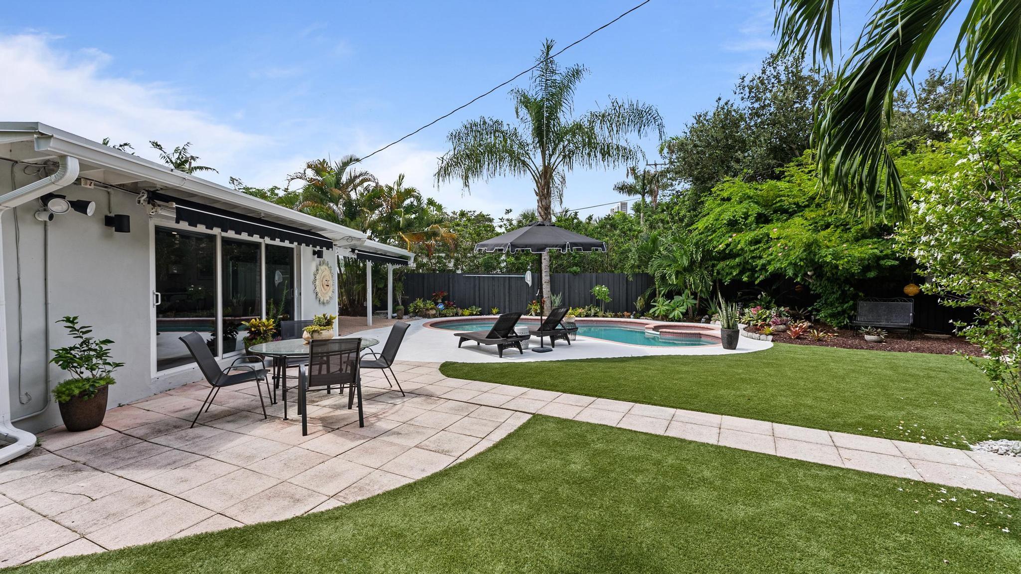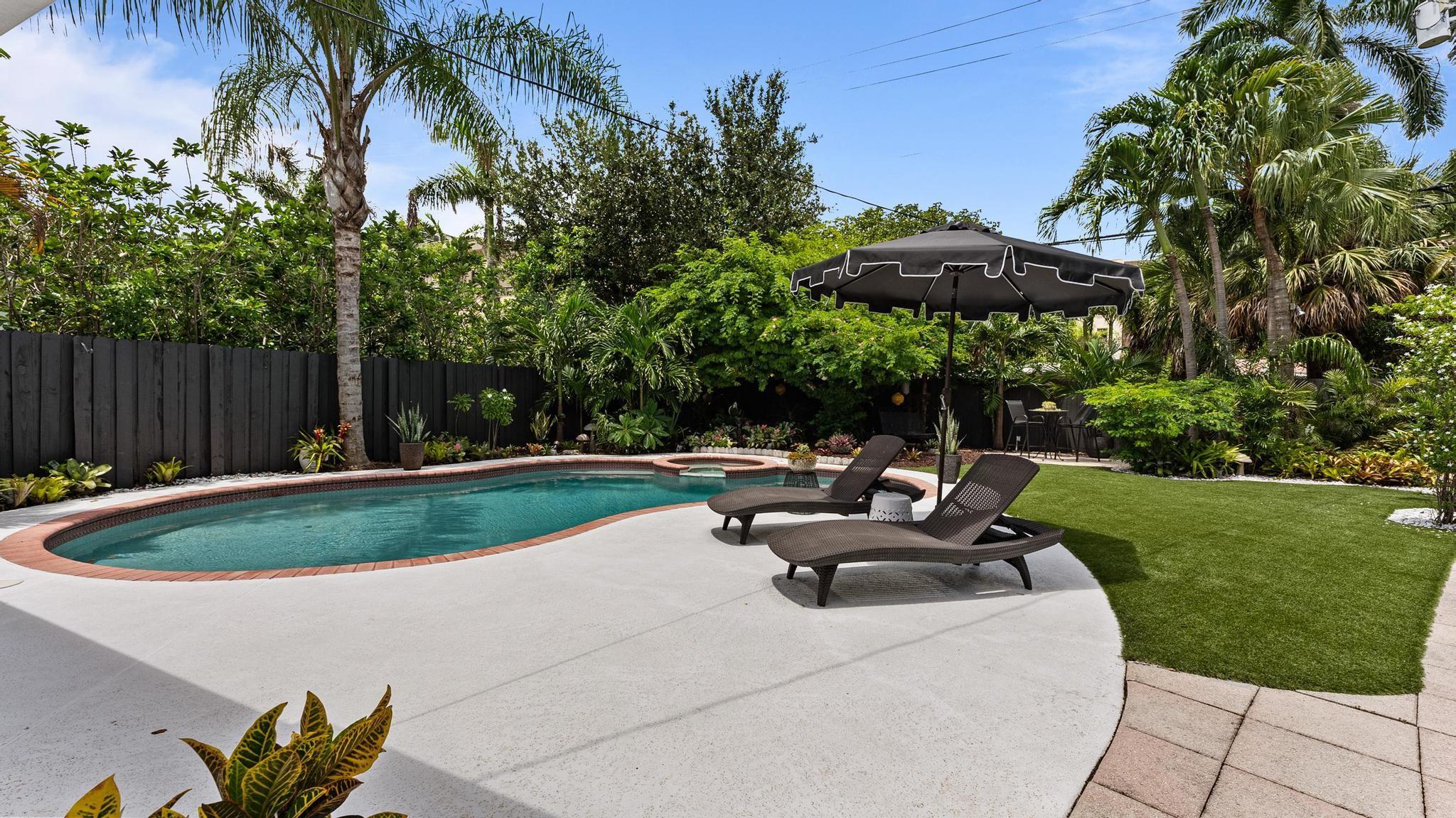 OMG Palm Springs meets Fort Lauderdale on one of the largest lots in Victoria Park, this home is cute as a button. 2/2 with a 1 car garage, new white quartz kitchen w/ waterfall, new dove gray porcelain tile floors thru out, new white guest bath, all impact windows & doors, whole house generator, astro turf rear yard w/ gorgeous landscaping, new hardscapes, salt water heated pool, new 16X13 rear beamed covered patio, 2 oversized rear re-trackable awnings, newer gutters, Sprinkler system on separate irrigation meter, waterfall, all new Designer light fixtures and recessed lighting, brand new motorized blinds throughout the house, new garage door motor, new pool motor & all pool valves, brand new AC, All new plumbing!!! This home is absolutely adorable.