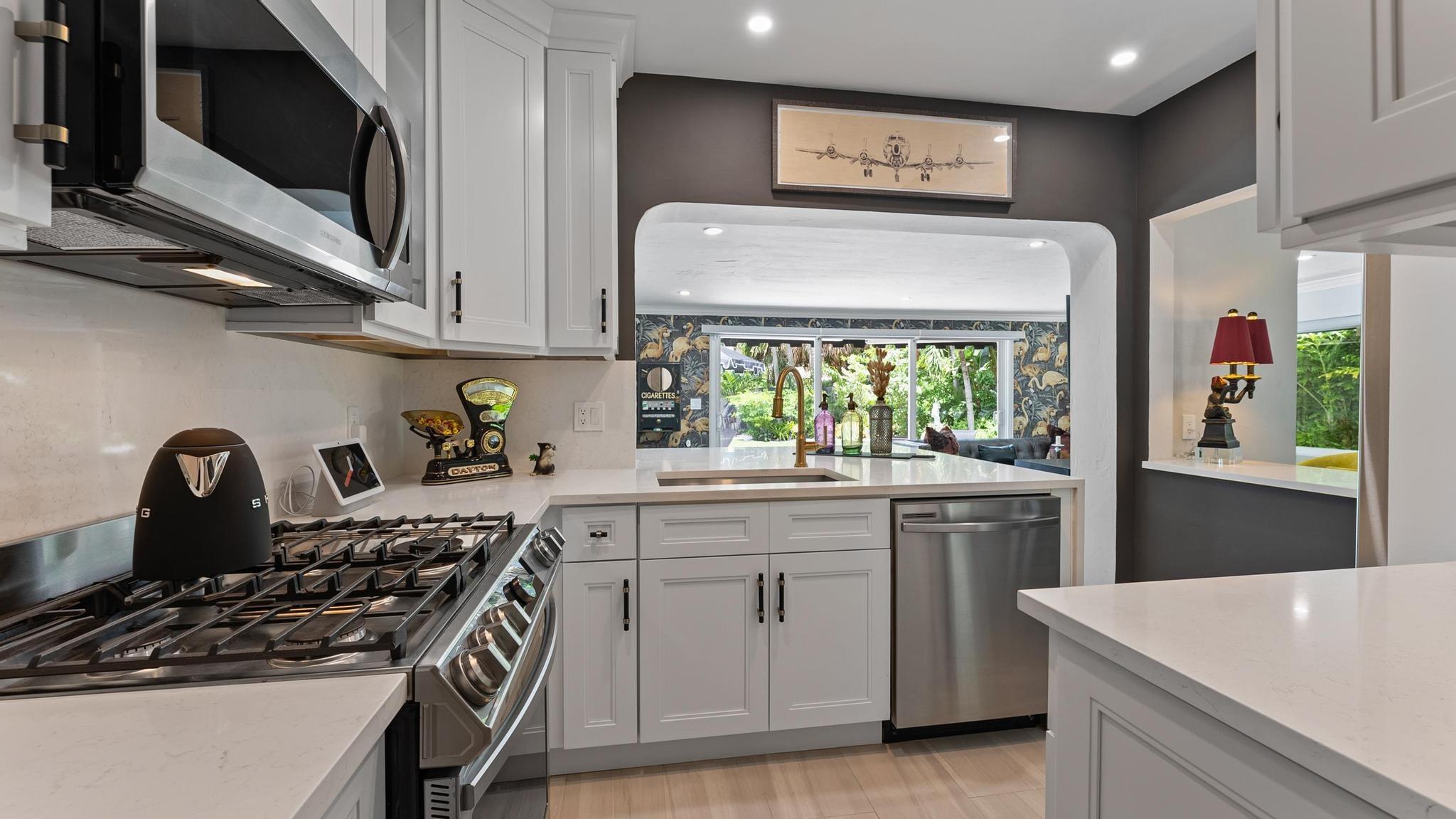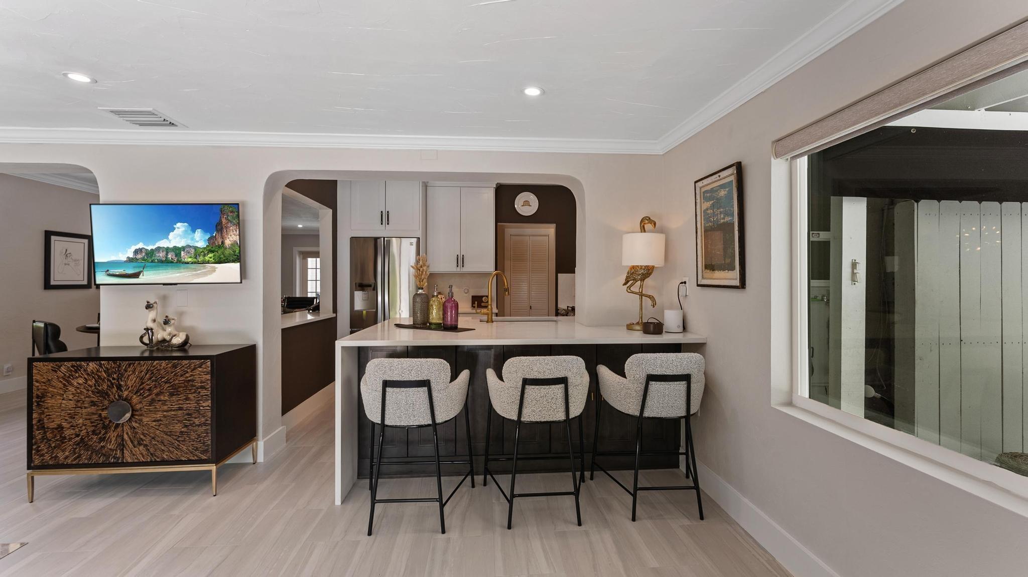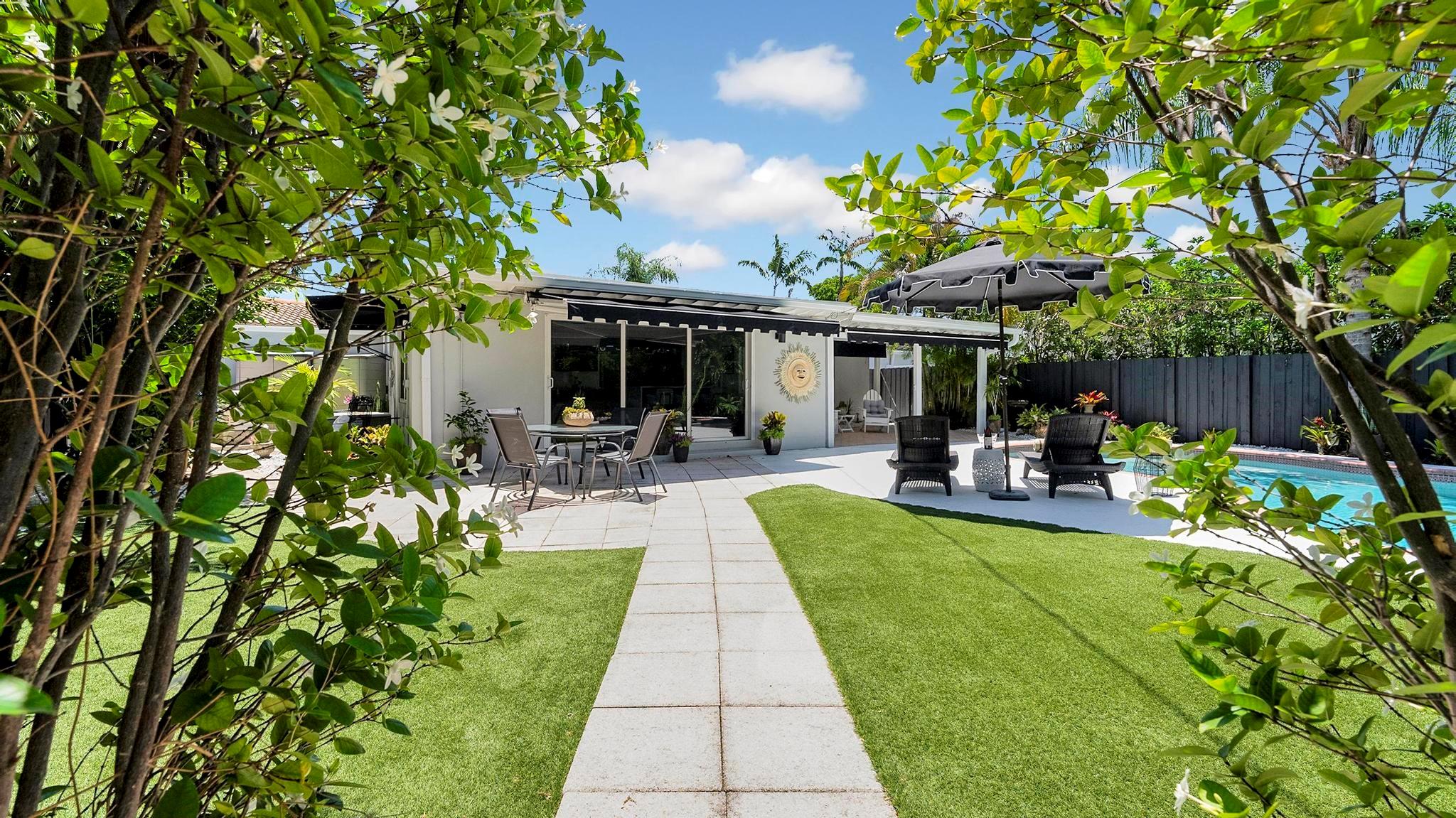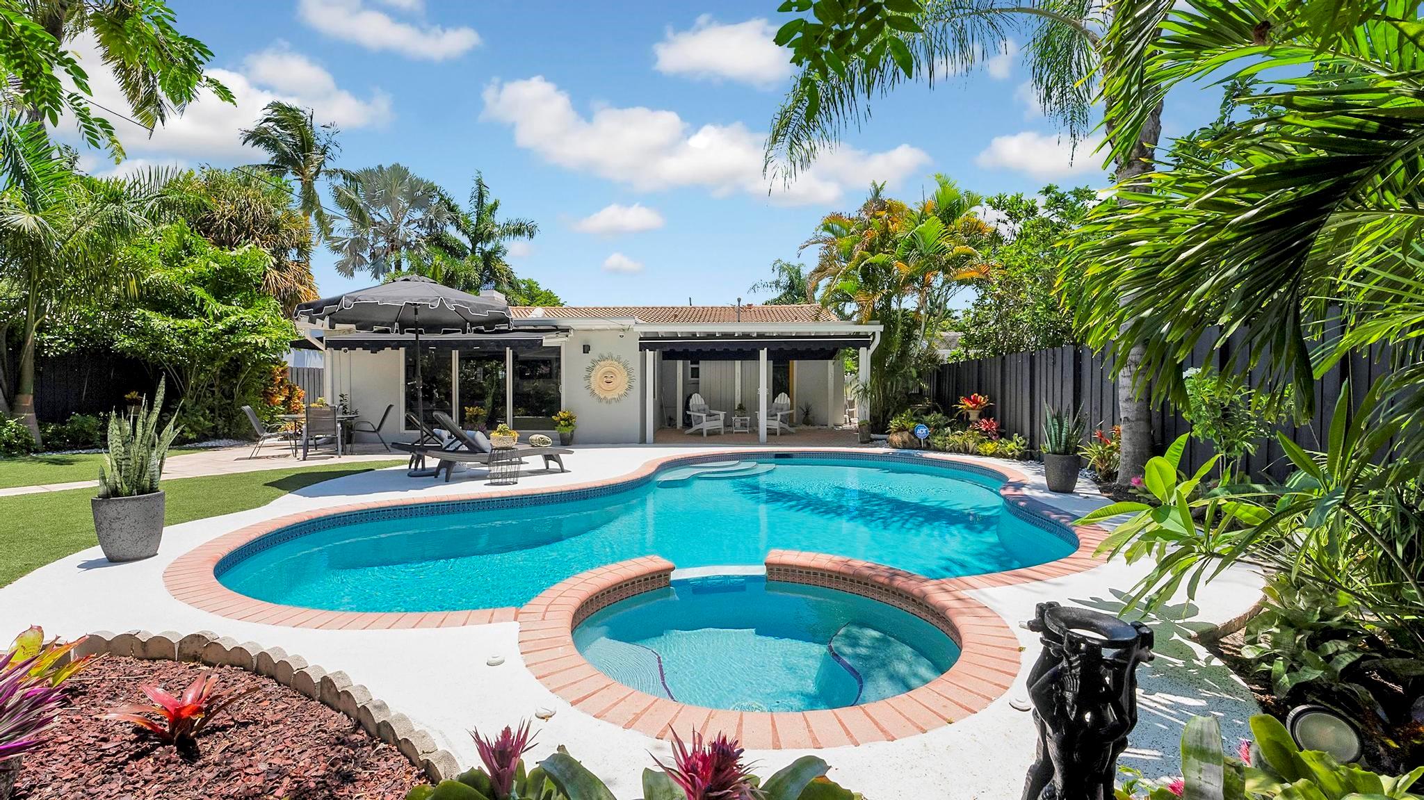 OMG Palm Springs meets Fort Lauderdale on one of the largest lots in Victoria Park, this home is cute as a button. 2/2 with a 1 car garage, new white quartz kitchen w/ waterfall, new dove gray porcelain tile floors thru out, new white guest bath, all impact windows & doors, whole house generator, astro turf rear yard w/ gorgeous landscaping, new hardscapes, salt water heated pool, new 16X13 rear beamed covered patio, 2 oversized rear re-trackable awnings, newer gutters, Sprinkler system on separate irrigation meter, waterfall, all new Designer light fixtures and recessed lighting, brand new motorized blinds throughout the house, new garage door motor, new pool motor & all pool valves, brand new AC, All new plumbing!!! This home is absolutely adorable.