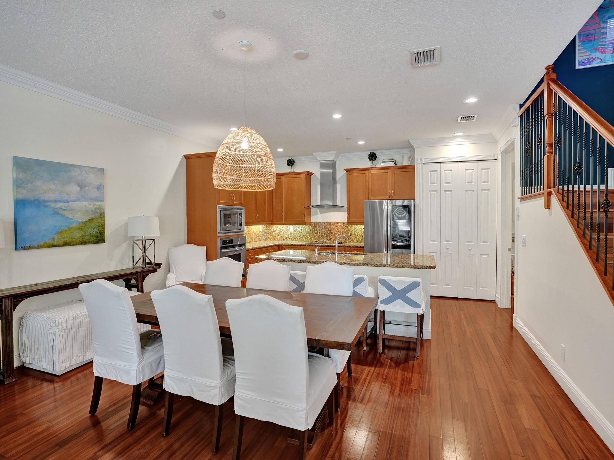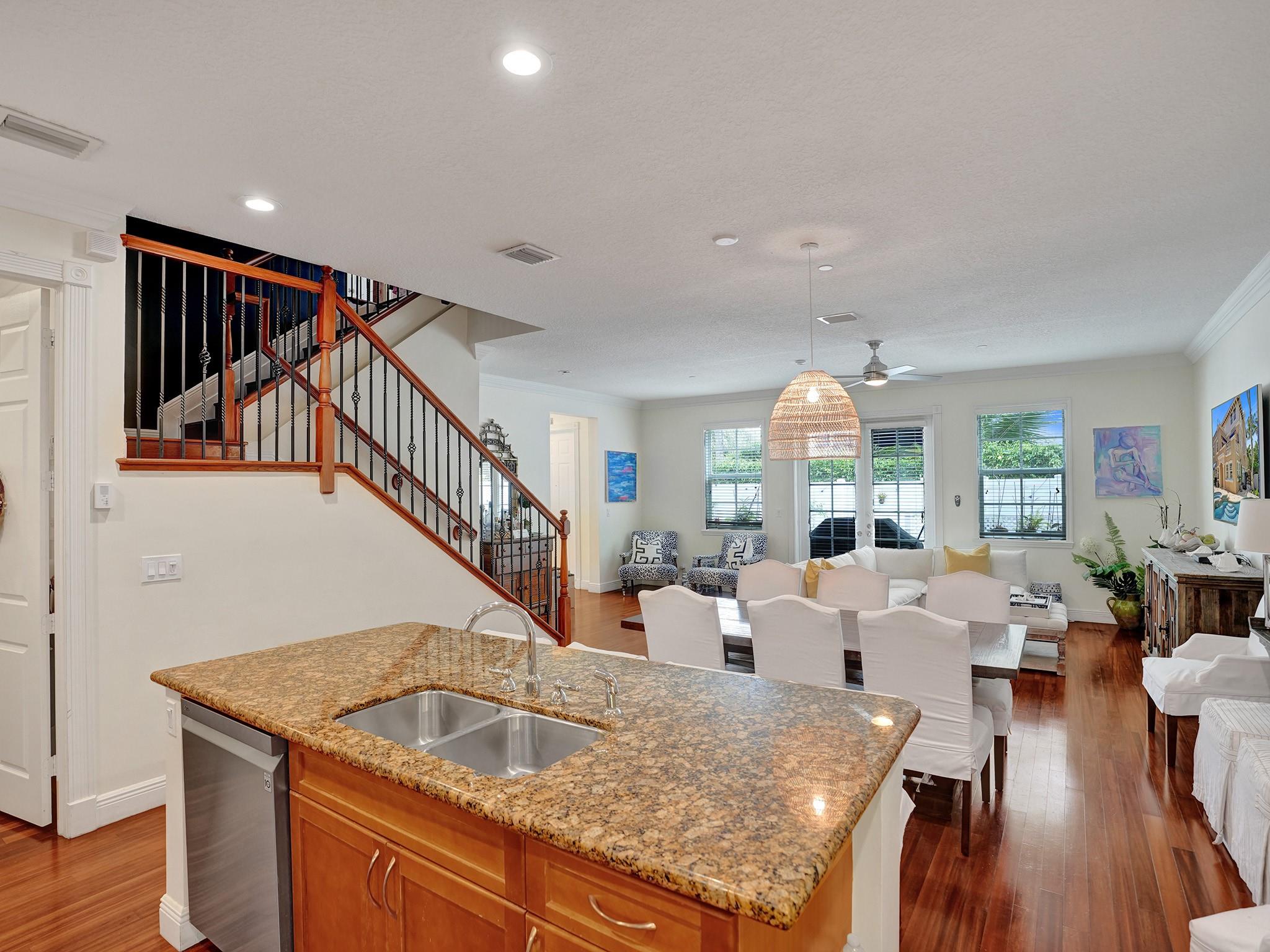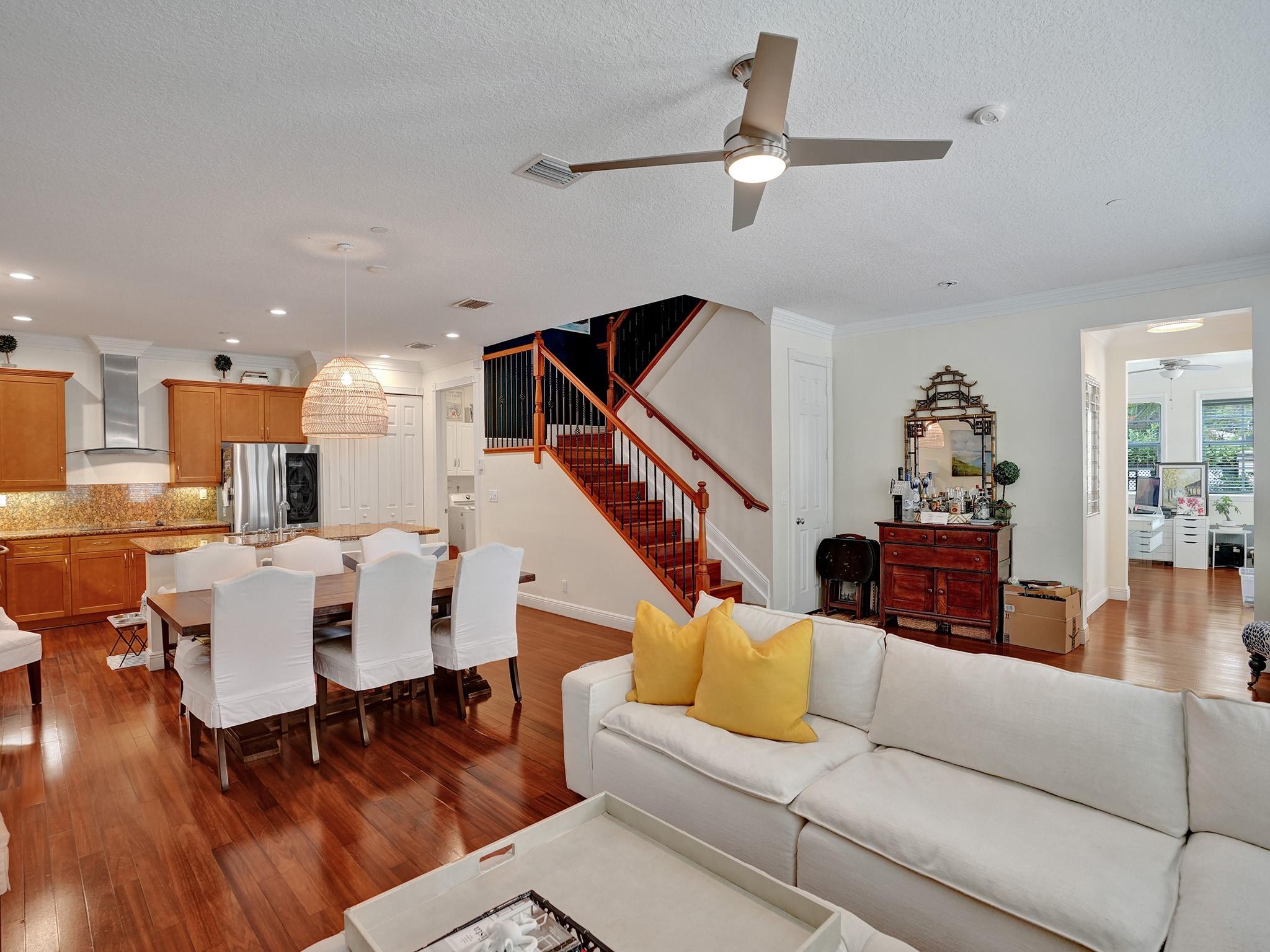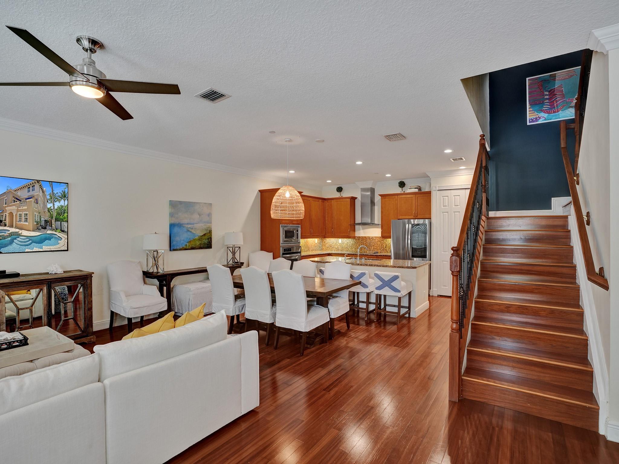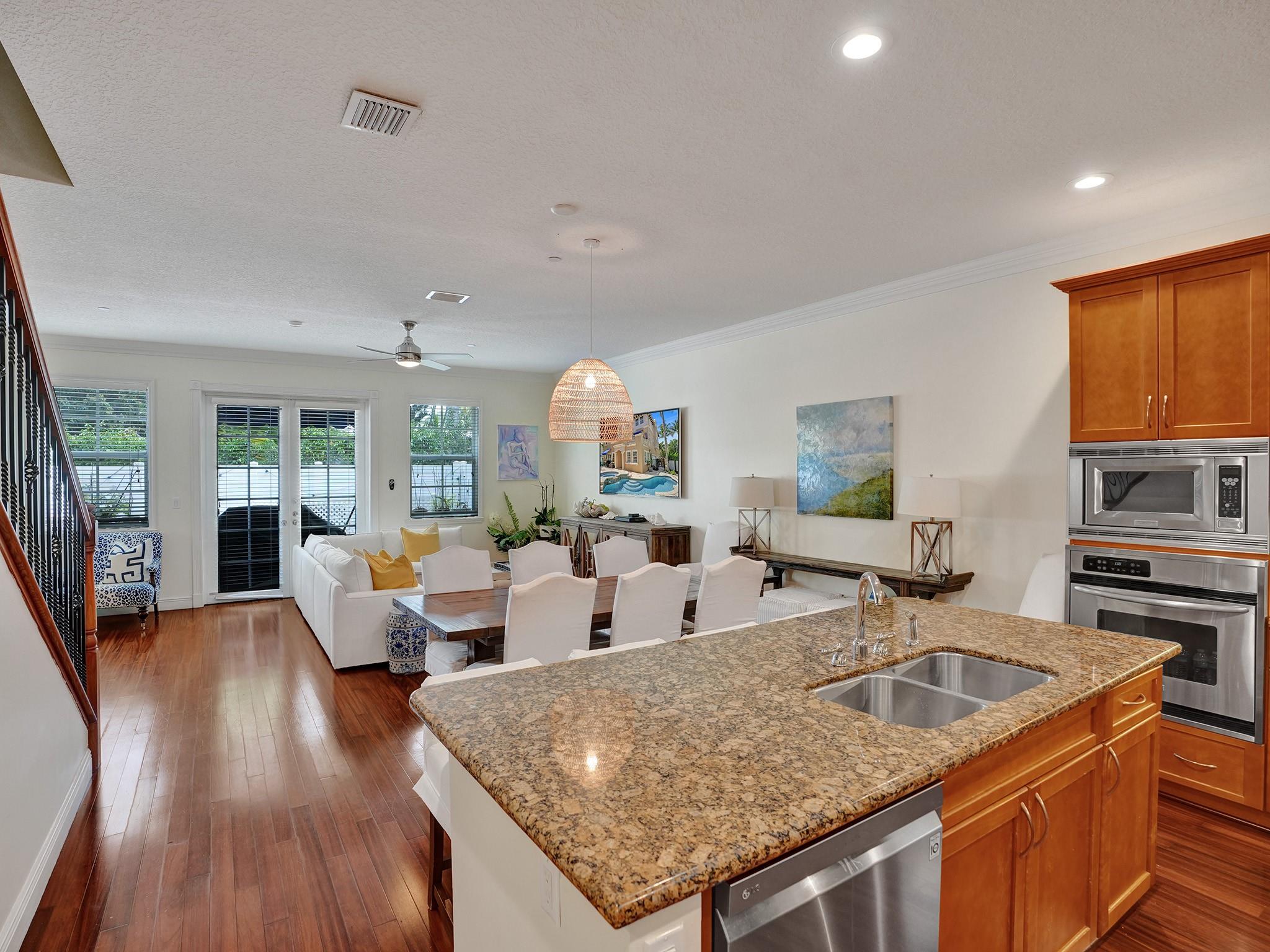Beautiful and serene CORNER UNIT Townhome with POOL nestled in CORAL RIDGE. Traditional 3-level layout spanning over 2600sq ft. Entrance features a secure atrium with a private pool, courtyard, and 2-car garage. Boasts a well-equipped gourmet kitchen, granite counters, stainless appliances, custom wood cabinets, spacious living area, and a versatile office/4th bedroom. Second level highlights a grand master suite with a jacuzzi tub, dual closets, open terrace, and a generous second bedroom with full bath. The third level offers a spacious family room, wet bar, additional bedroom, and a large terrace with breathtaking views. Prime location near The Galleria, Las Olas, beach, and top-rated schools.
