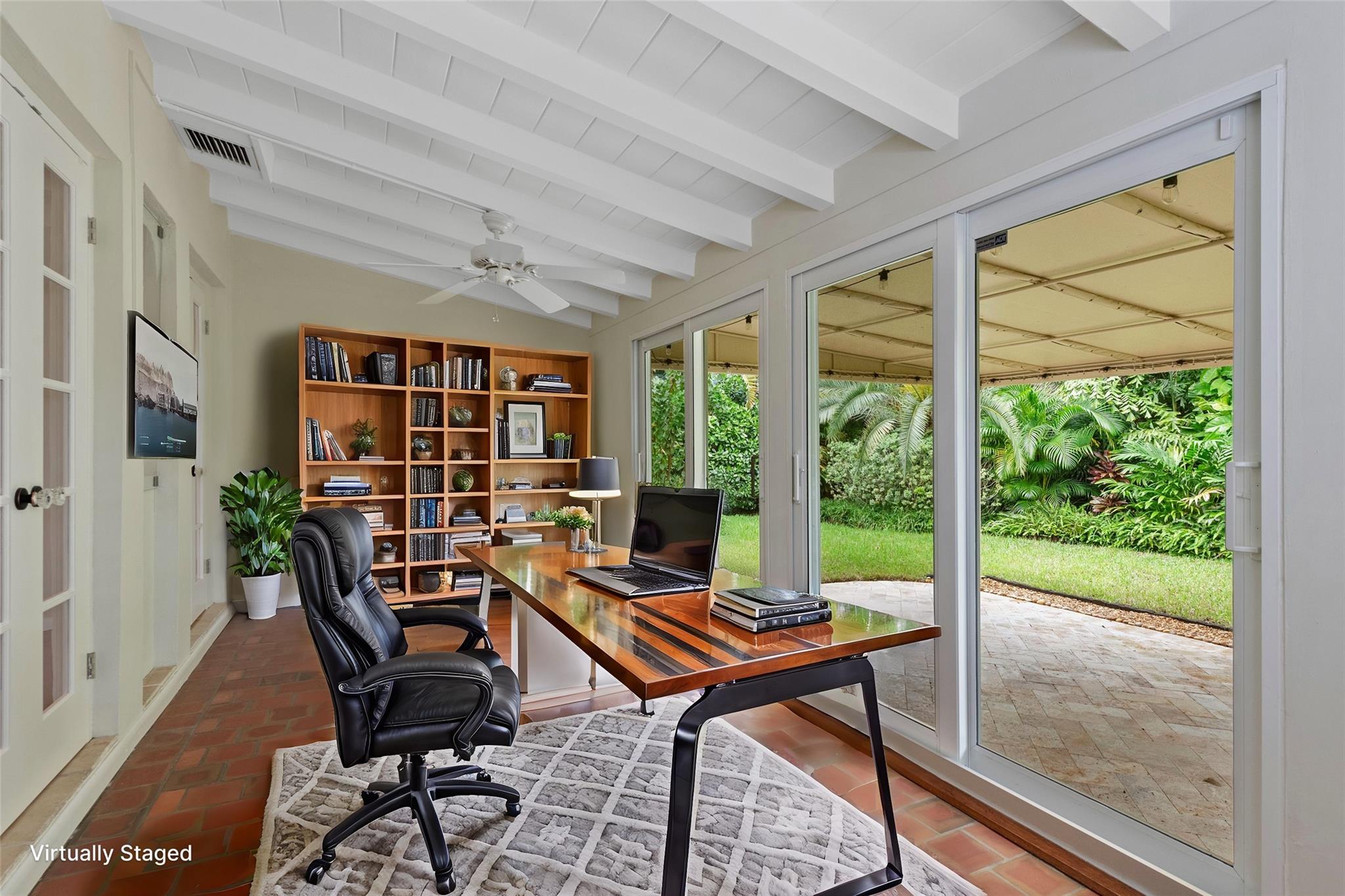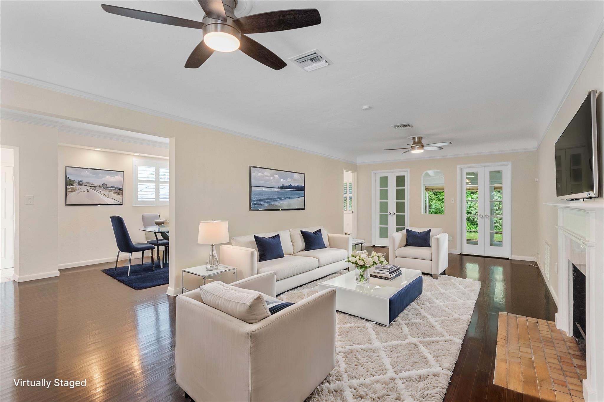 Discover charm and elegance in this 3-bedroom, 2-bath home (plus office/sunroom) in Victoria Park. Spanning 1,762 sqft, it features an Art Deco relief facade at the front entrance, refinished 1940s oak wood floors, and a working fireplace. Nestled on a tranquil, tree-lined street exclusively for single-family homes and not in a flood zone, this residence ensures privacy and serenity—meticulous upkeep and extensive remodeling throughout. Upgrades include a 2019 tile roof, PGT impact windows, a 2021 AC system, and a 2019 water heater. Plantation shutters enhance the refined interior. Outside, a lush tropical garden boasts over 10 palm species and a striking Pink Bombax tree at the front swale area. Schedule your private tour today and fall in love with all that this home has to offer!