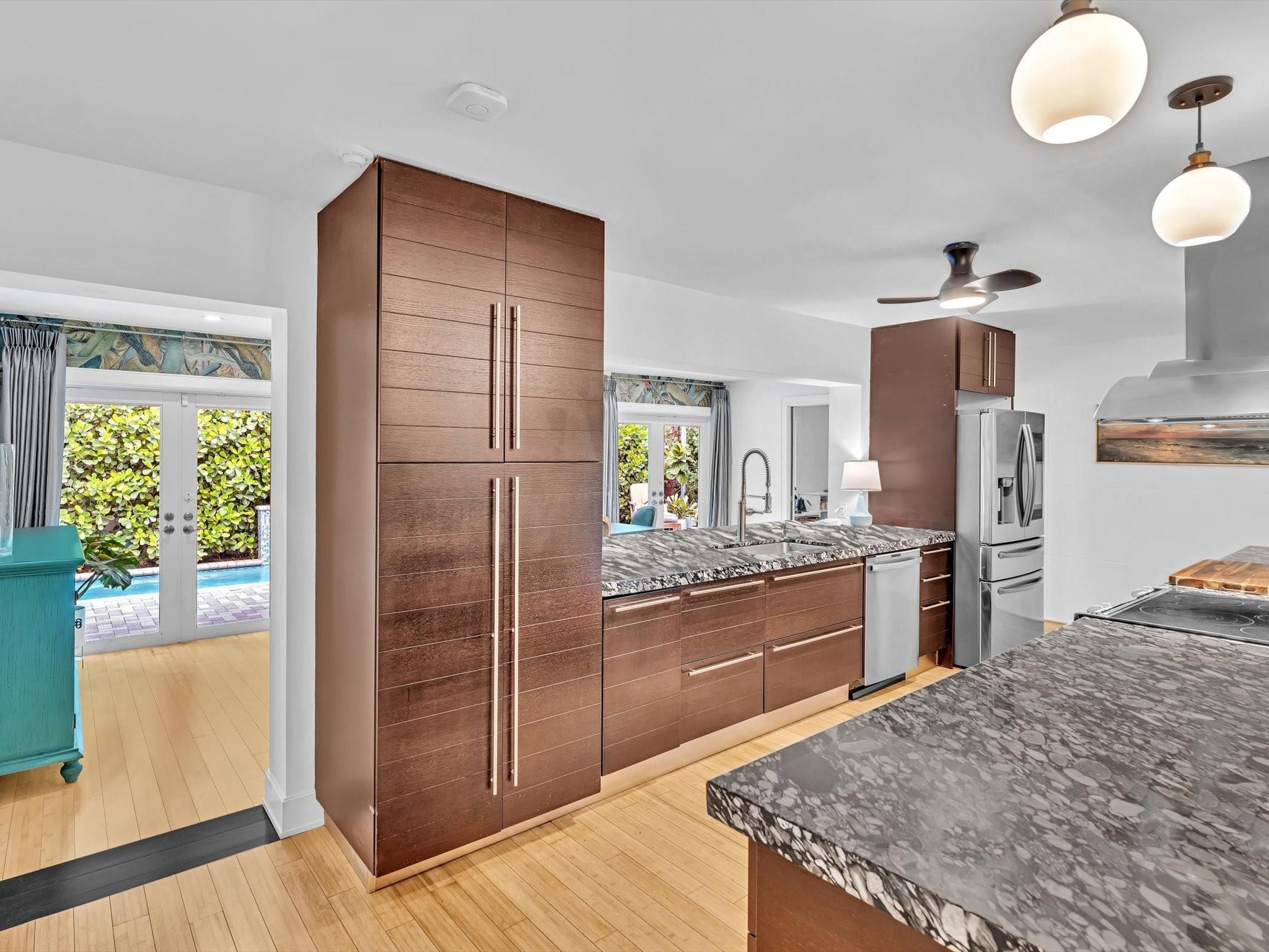 Discover a secluded tropical oasis in Fort Lauderdale’s coveted Riverland Woods. This Upgraded home, with a NEW 50-year metal roof, is perfect for entertaining with its serene astro turf yard, seating and dining areas, and heated lap pool with swim jets. The chef's kitchen flows into a patio designed for unforgettable gatherings, framed by canvas pergolas. Enjoy 2 expansive Master Bedrooms with French doors opening to the patio, plus 2 Guest rooms and Bonus Room. Features new oversized circular paver driveway, space for RV/boat, a mudroom/laundry with sink and extra fridge, 2 new A/C units, fresh paint, wood flooring, IMPACT WINDOWS. This SMART HOME offers the ultimate dream lifestyle.