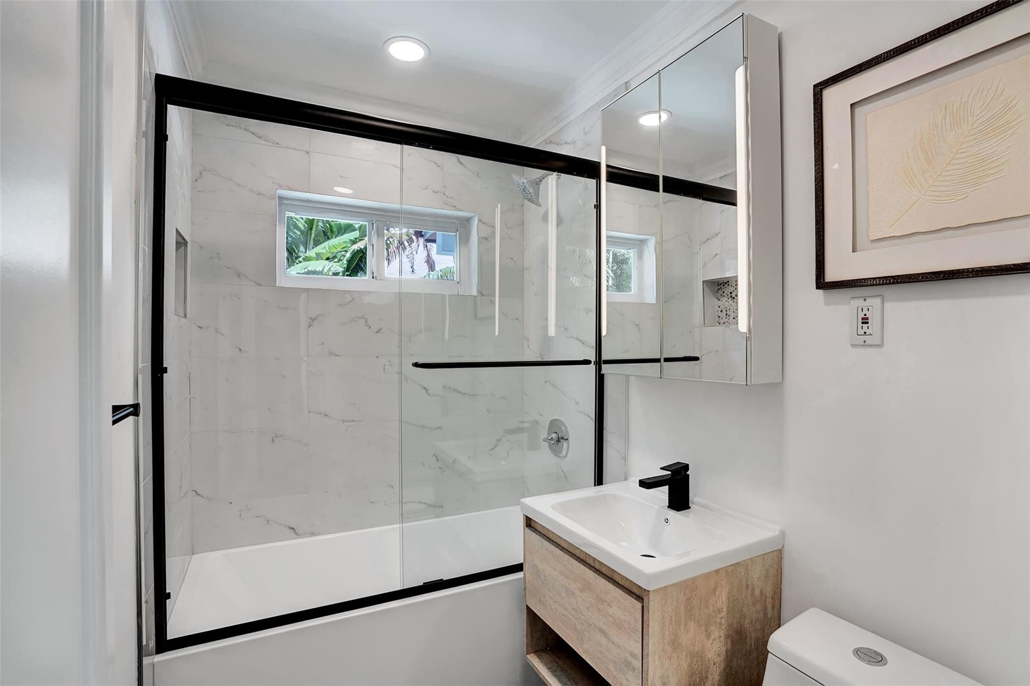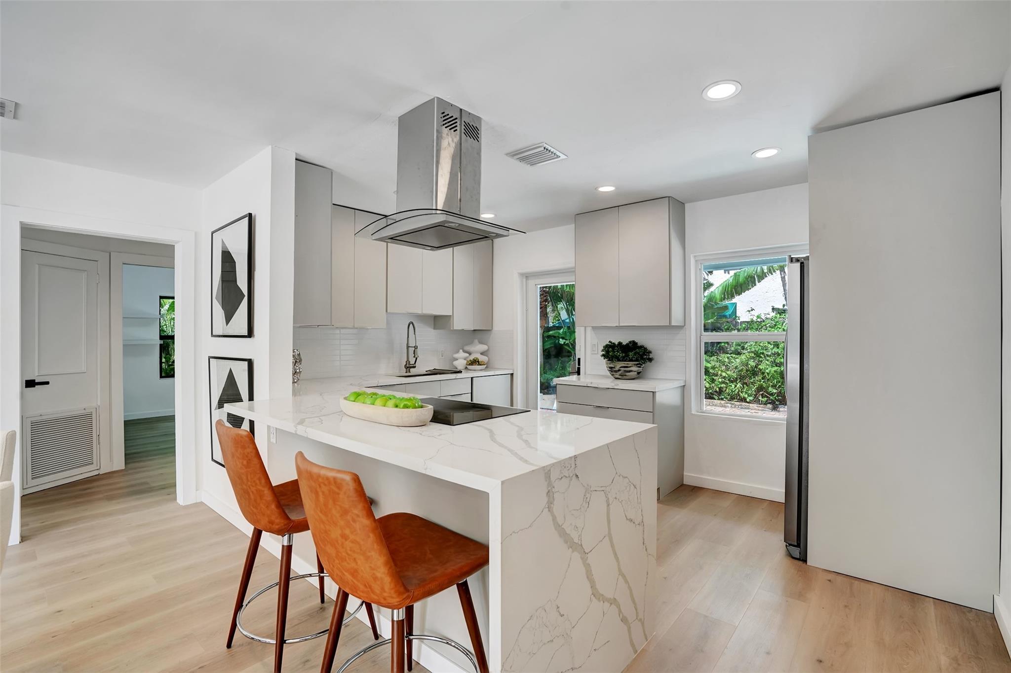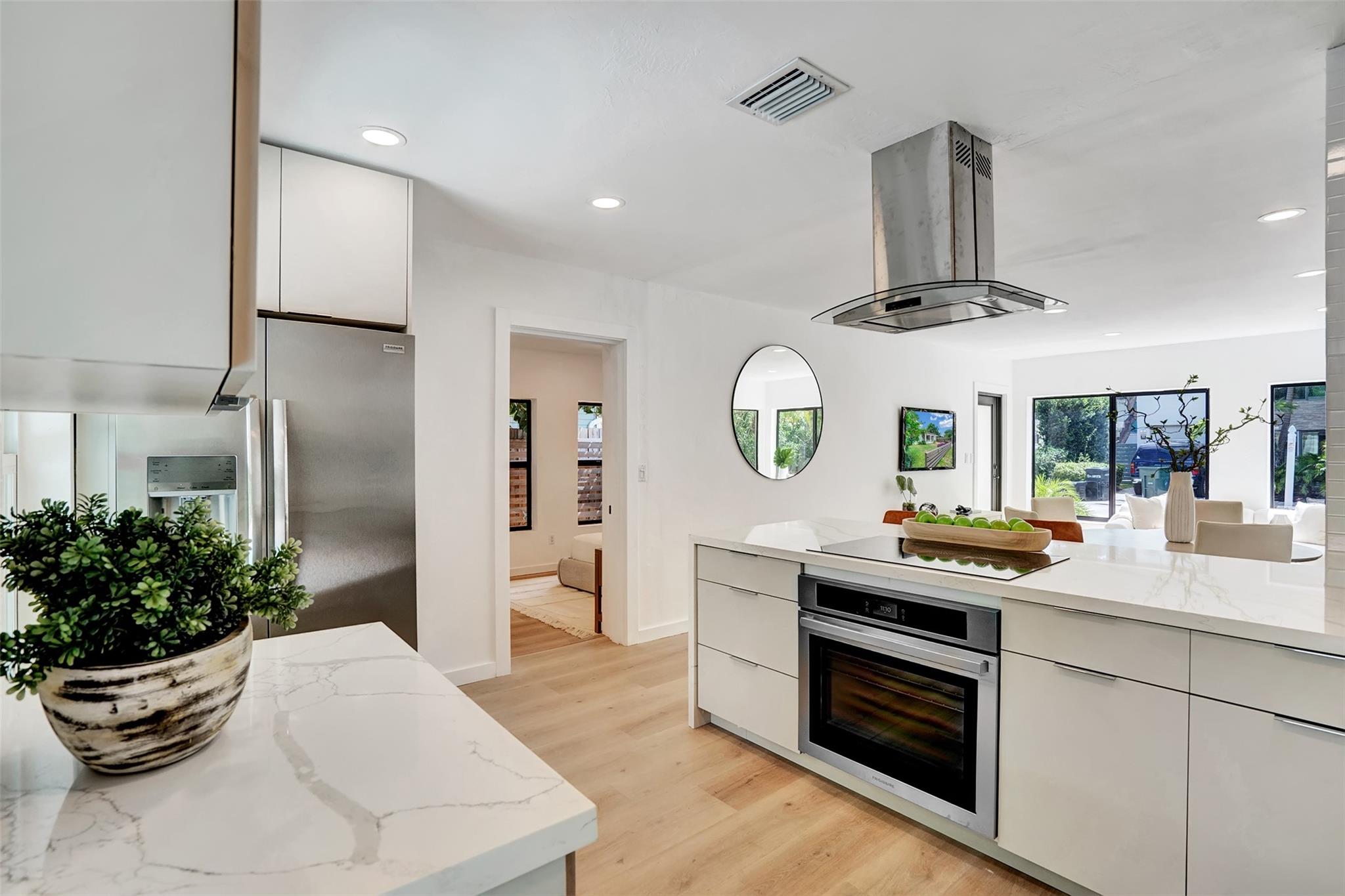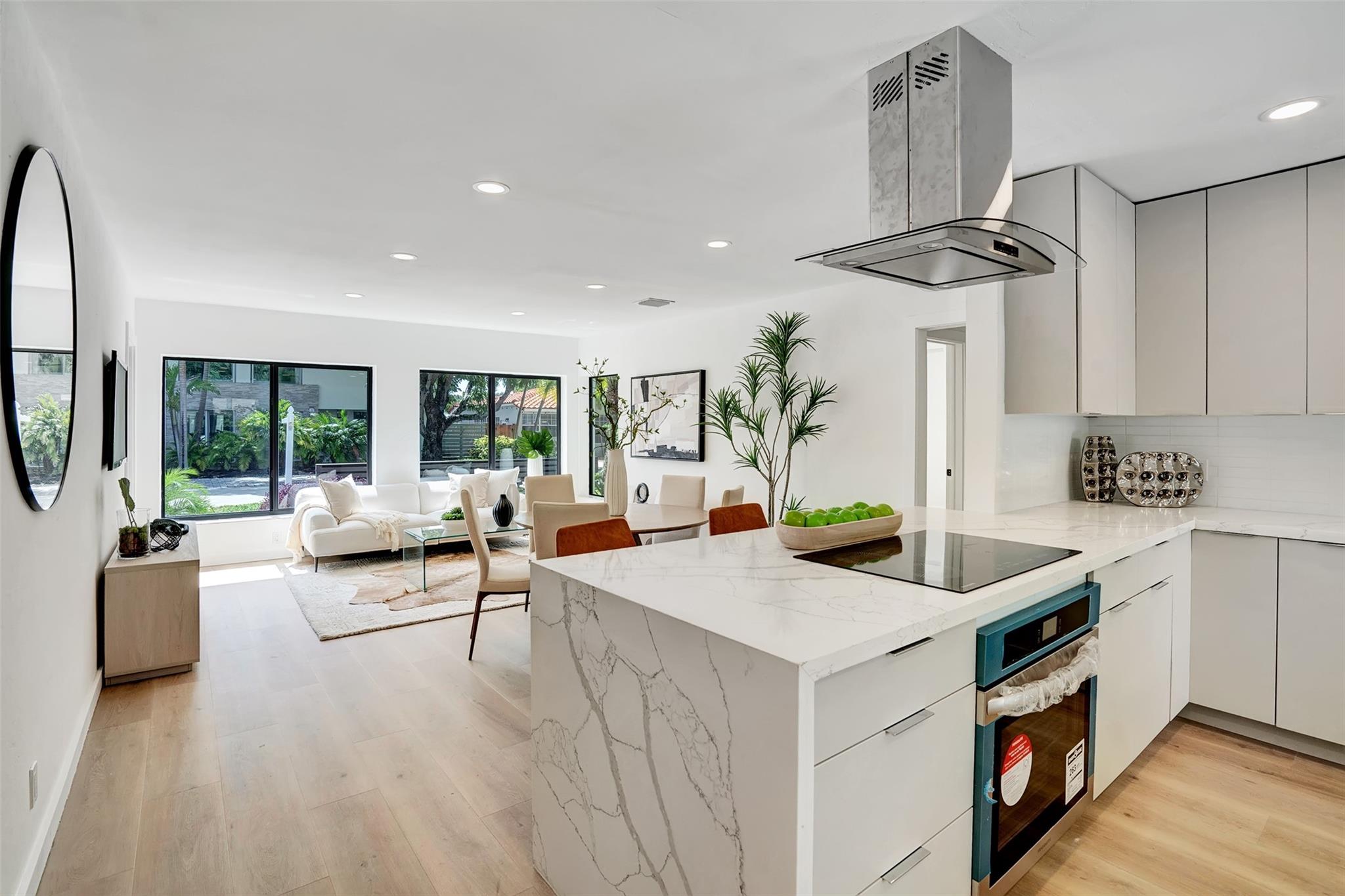 Nestled in Victoria Park, this newly renovated home offers luxury and sophistication. The 3-bedroom, 2-bathroom residence features an open floor plan blending modern living with timeless elegance. Sunlight floods the living area, highlighting premium finishes and a contemporary aesthetic. The gourmet kitchen boasts top-of-the-line stainless steel appliances, bespoke cabinetry, and a sleek quartz island. The master suite is a tranquil retreat with ample closet space. The outdoor area is a private sanctuary with landscaped gardens and a pristine swimming pool within a spacious patio. Impact windows, tankless hot water heater and many upgrades throughout. Located minutes from Fort Lauderdale Beach, this home offers easy access to premier dining, shopping, and entertainment.