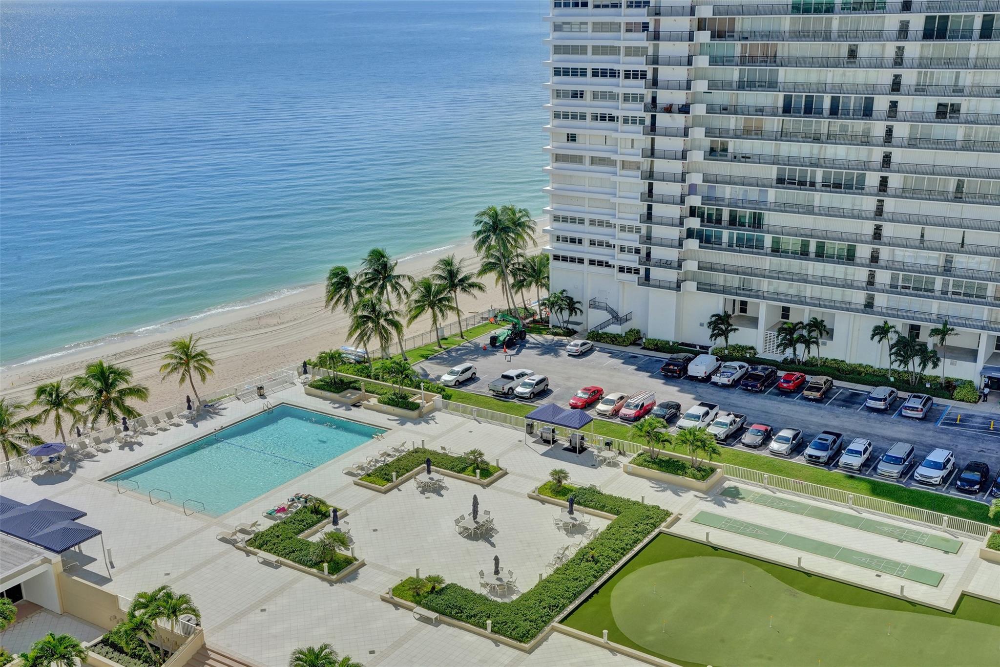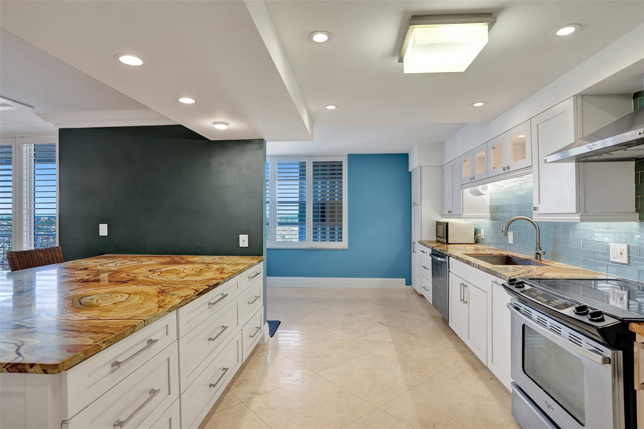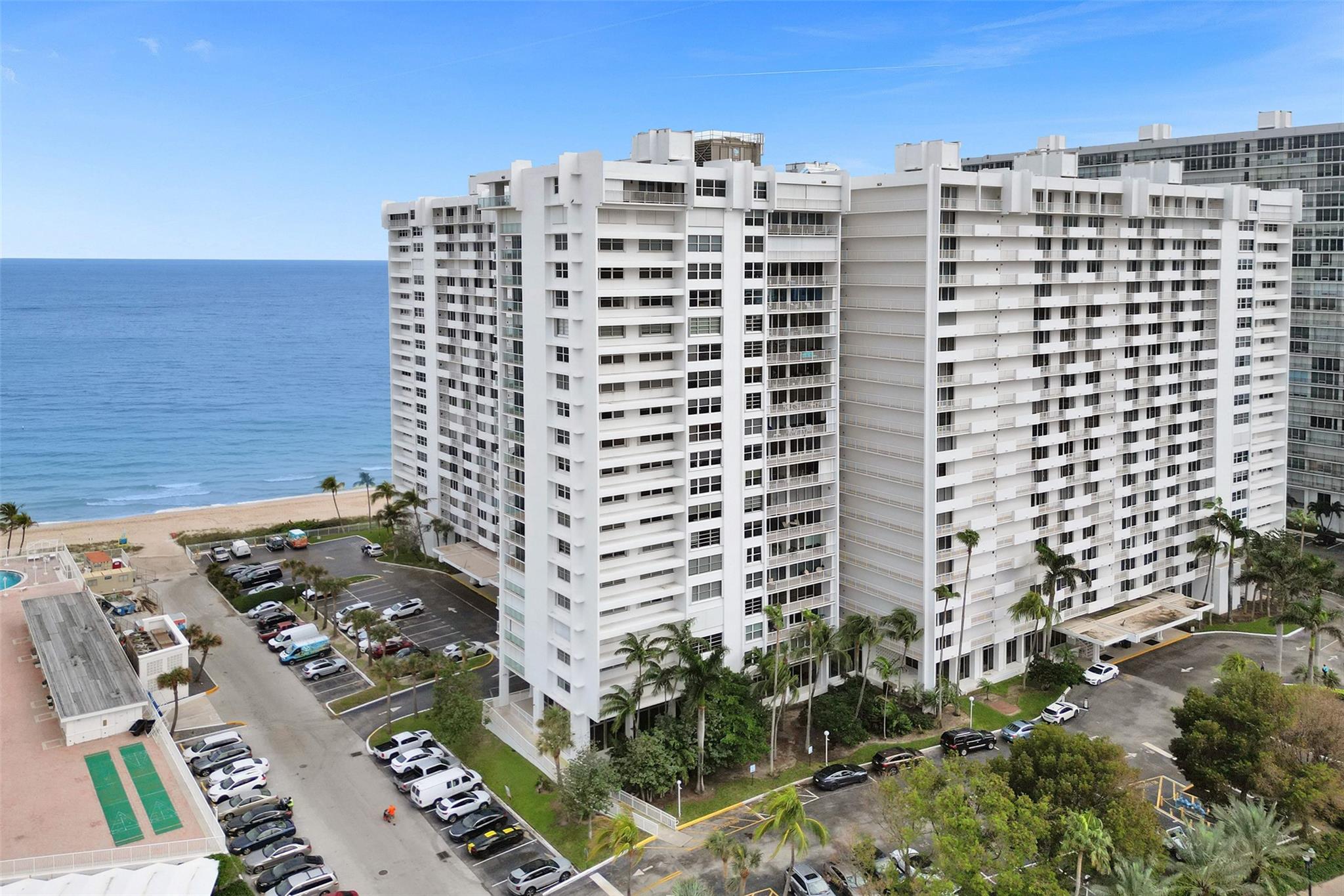 Discover Ft. Lauderdale beach luxury in this expansive 16th floor 2-bed, 2-bath condo, elegantly remodeled w/ marble floors thru/out! Floor-to-ceiling windows invite natural light & stunning views w/ 2 oversized balconies facing SE for ocean sunrises & west for dramatic city sunsets! Open kitchen boasts SS appl. upgraded counters & oversized bar, perfect for entertaining! Lg. primary BR w/ walk-in closet! Office nook offers convenience for remote work! Enjoy amenities incl. semi-private lobby elevator, full-time valet, covered parking & 24-hour fitness center! Relax by heated pool w/ BBQ grills, access private beach entrance & enjoy recreational options like putt-putt golf & shuffleboard! Located in the heart of Galt Ocean Mile & highly desirable Bayview School District!