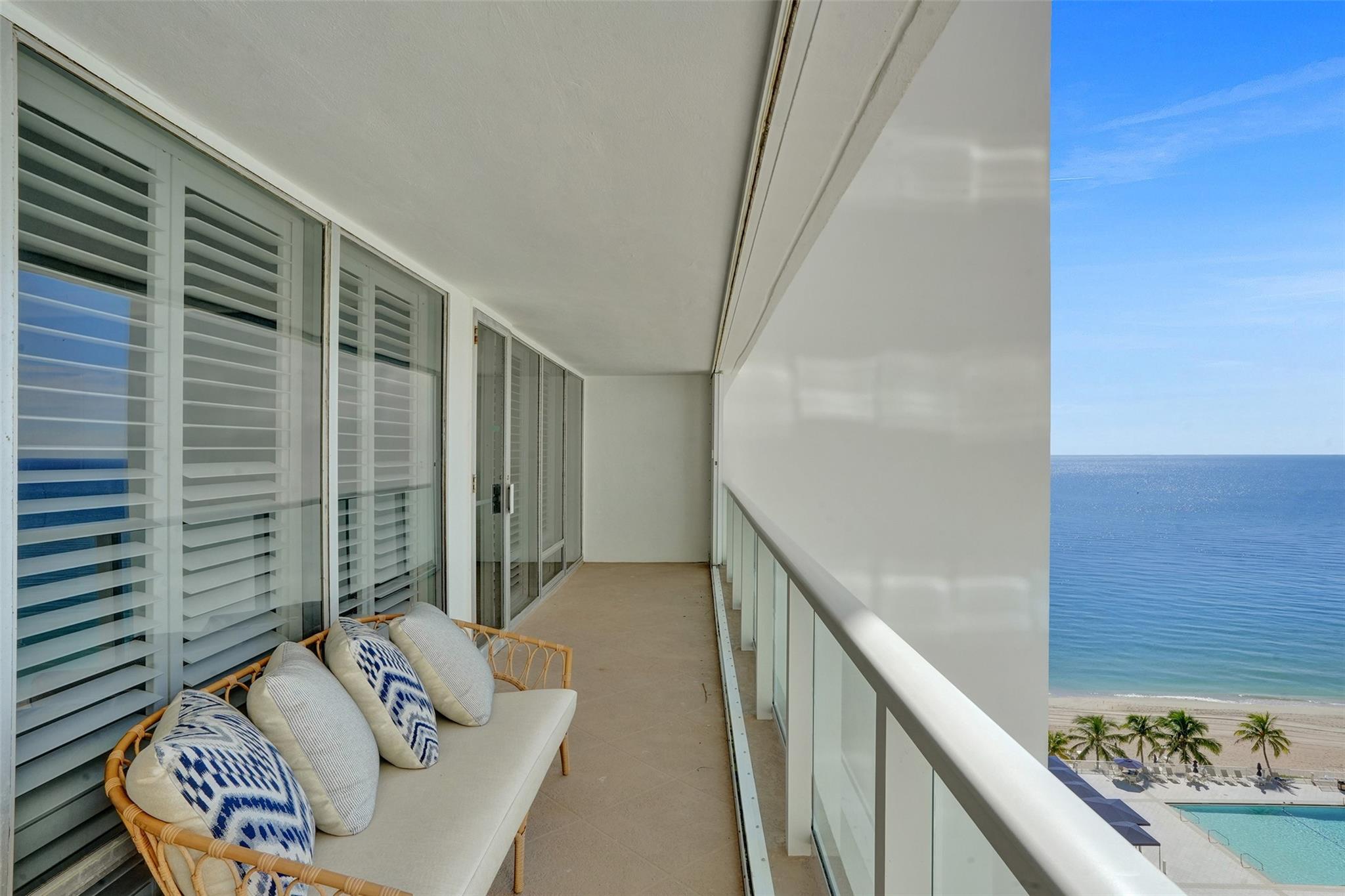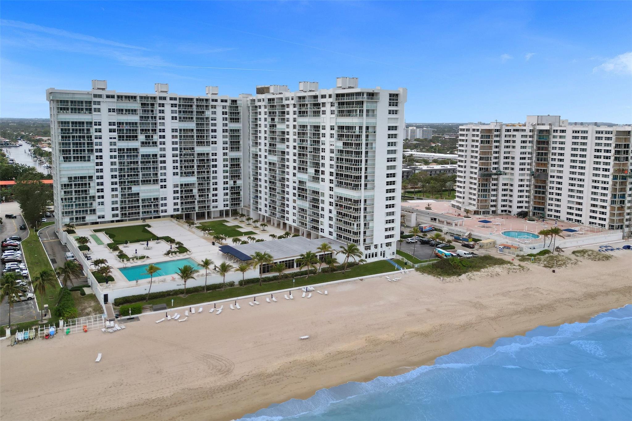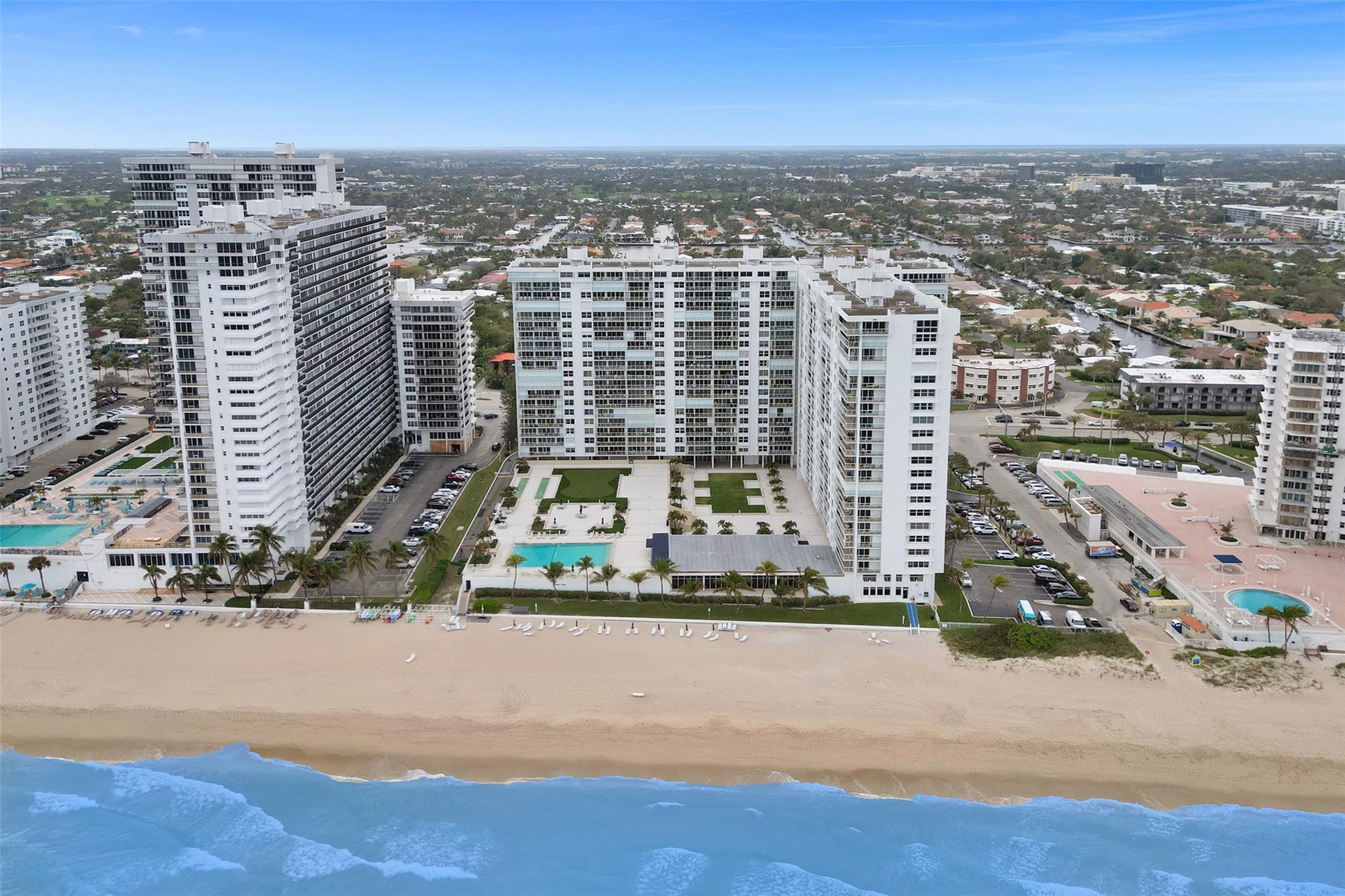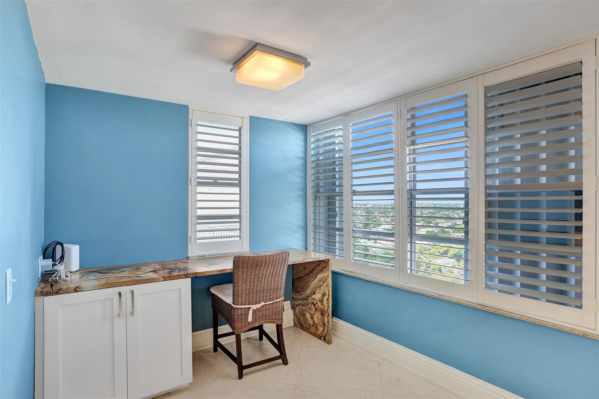 Discover Ft. Lauderdale beach luxury in this expansive 16th floor 2-bed, 2-bath condo, elegantly remodeled w/ marble floors thru/out! Floor-to-ceiling windows invite natural light & stunning views w/ 2 oversized balconies facing SE for ocean sunrises & west for dramatic city sunsets! Open kitchen boasts SS appl. upgraded counters & oversized bar, perfect for entertaining! Lg. primary BR w/ walk-in closet! Office nook offers convenience for remote work! Enjoy amenities incl. semi-private lobby elevator, full-time valet, covered parking & 24-hour fitness center! Relax by heated pool w/ BBQ grills, access private beach entrance & enjoy recreational options like putt-putt golf & shuffleboard! Located in the heart of Galt Ocean Mile & highly desirable Bayview School District!