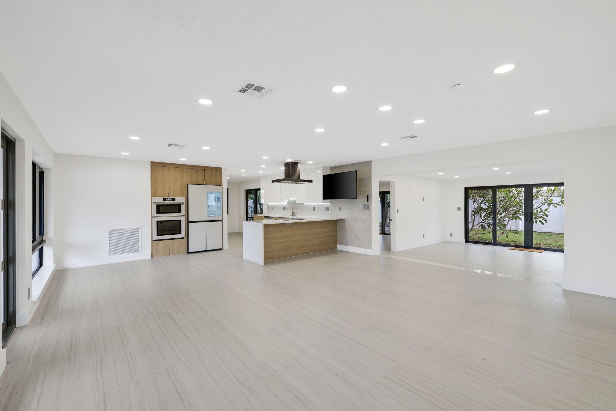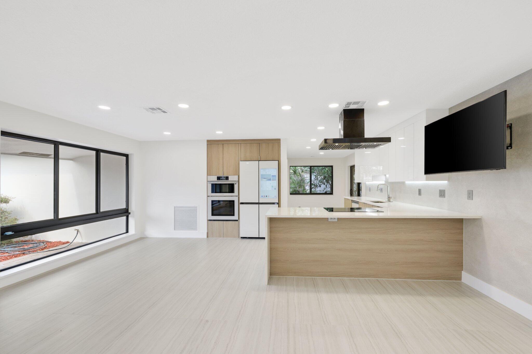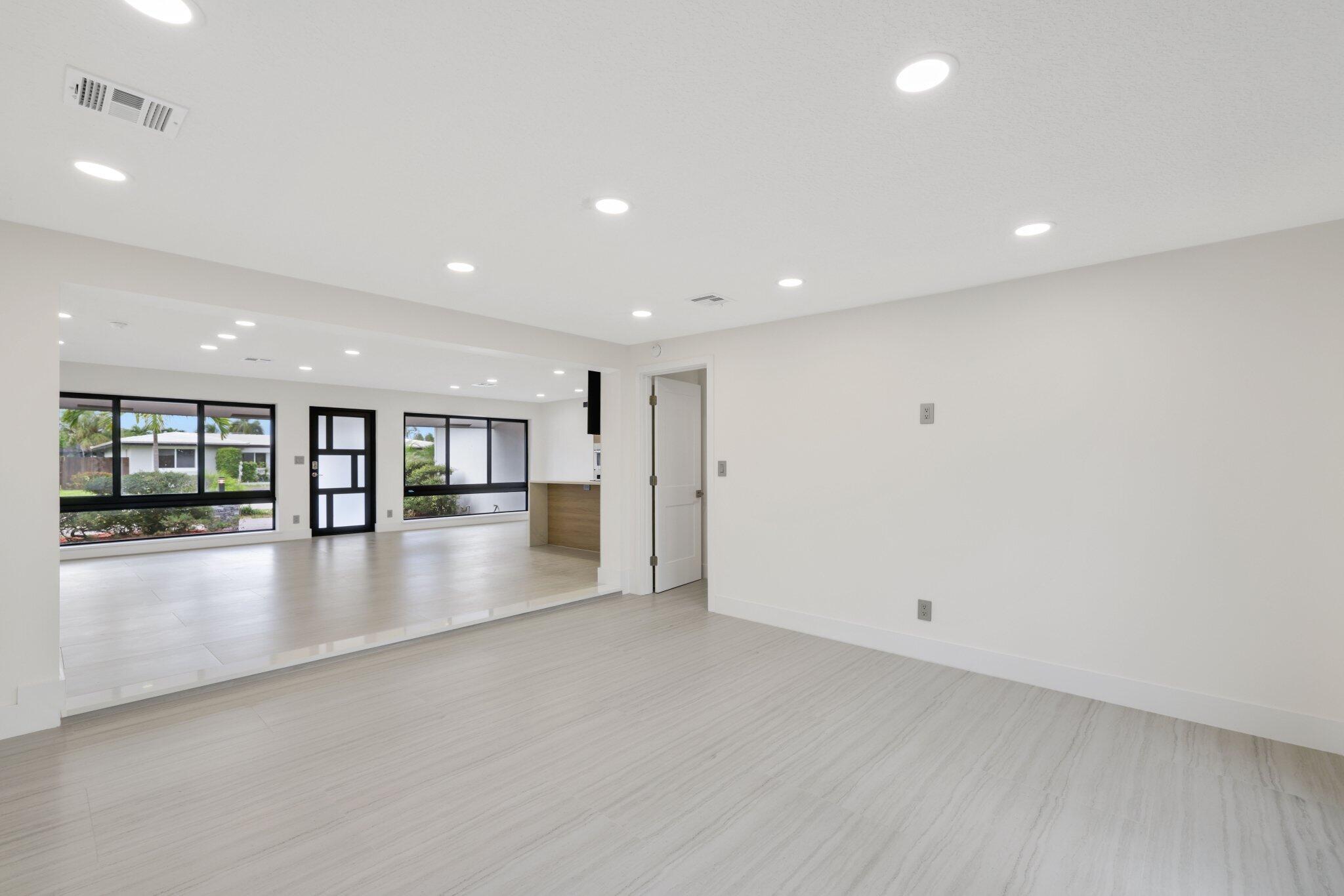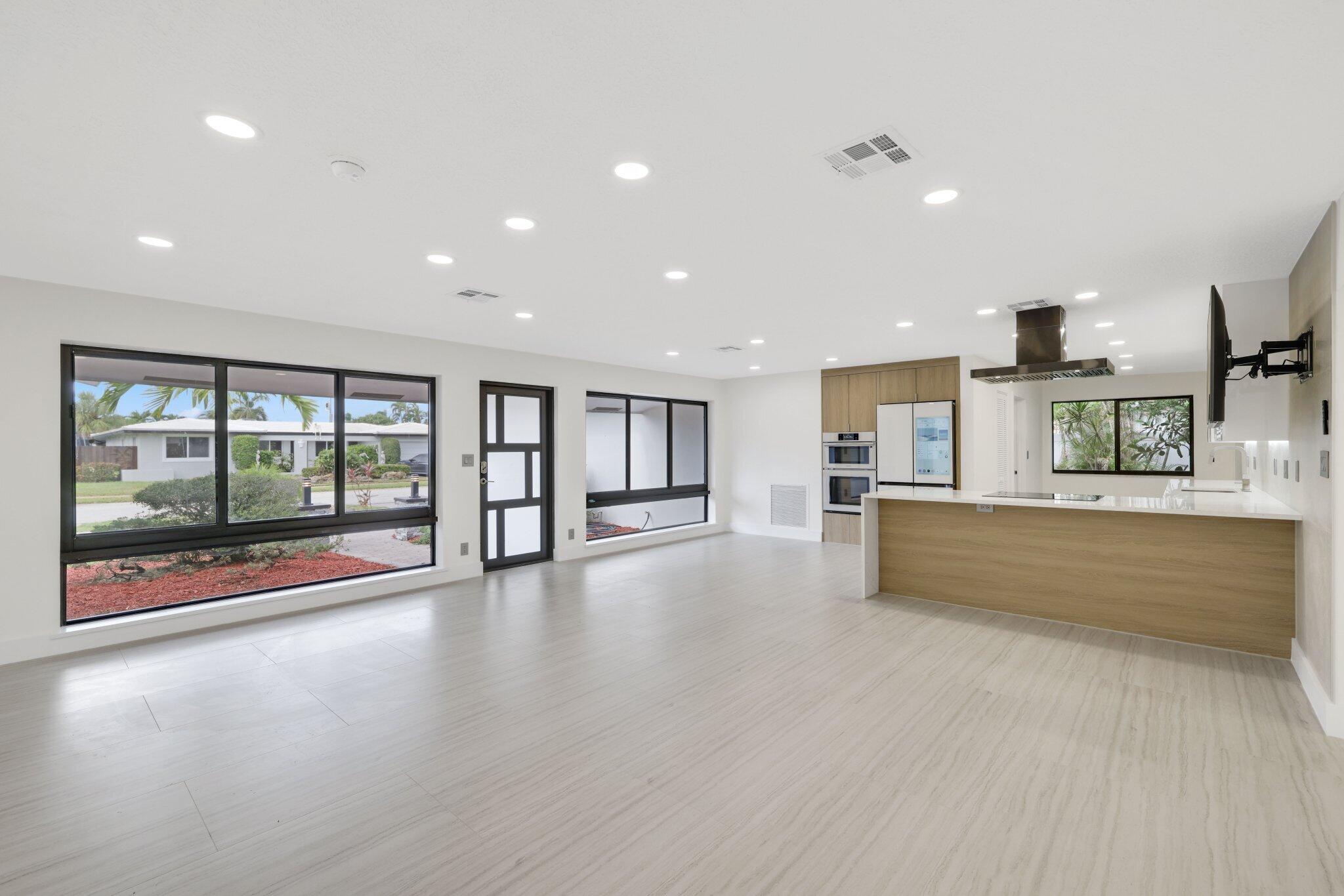 Introducing this spectacular, freshly renovated home in the renowned Imperial Point community. This spacious 4-bedroom, 2-bathroom residence has a total of 2,131 square feet and features a generous open floor plan, including formal living and dining rooms, a renovated eat-in kitchen, a Florida Room, a separate laundry room, and a full two-car garage. This renovation spared no expense, showcasing a large custom-designer kitchen with stunning quartz countertops and beautiful tile backsplash. The two-tone kitchen design is a significant upgrade from the standard common shaker style, featuring high-end Samsung white smart appliances, illuminated by custom LED lighting and underglow accents that truly highlight this property.