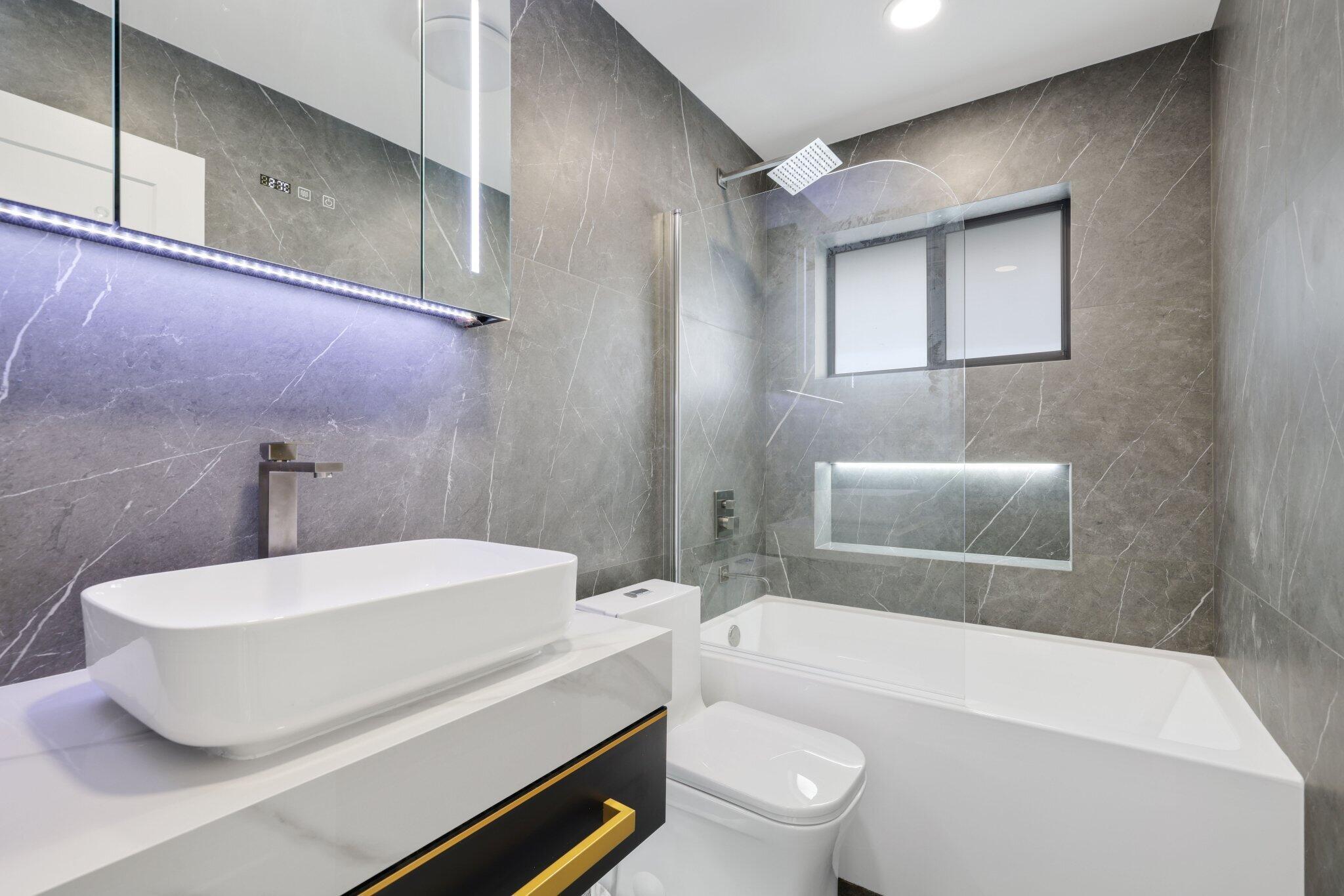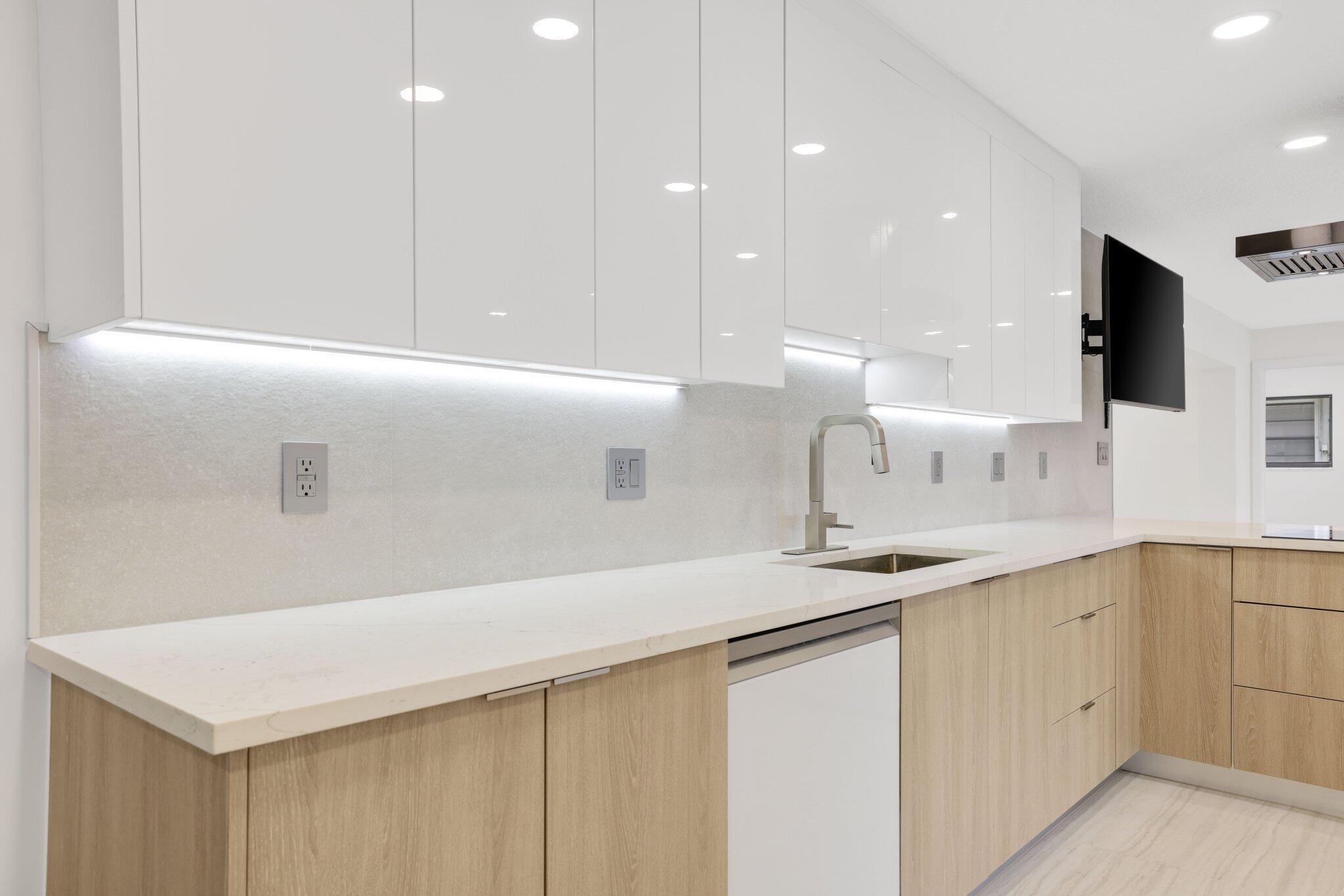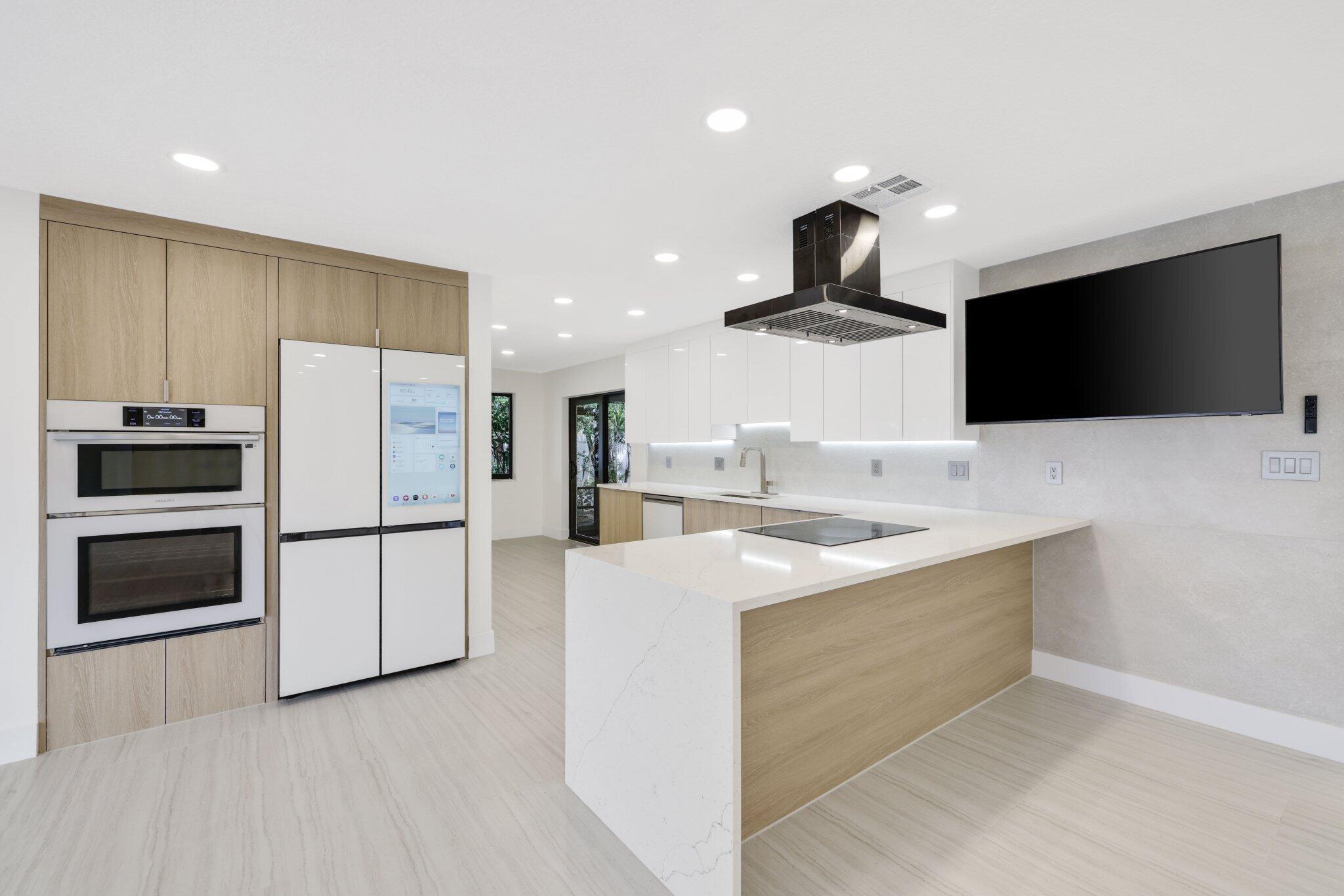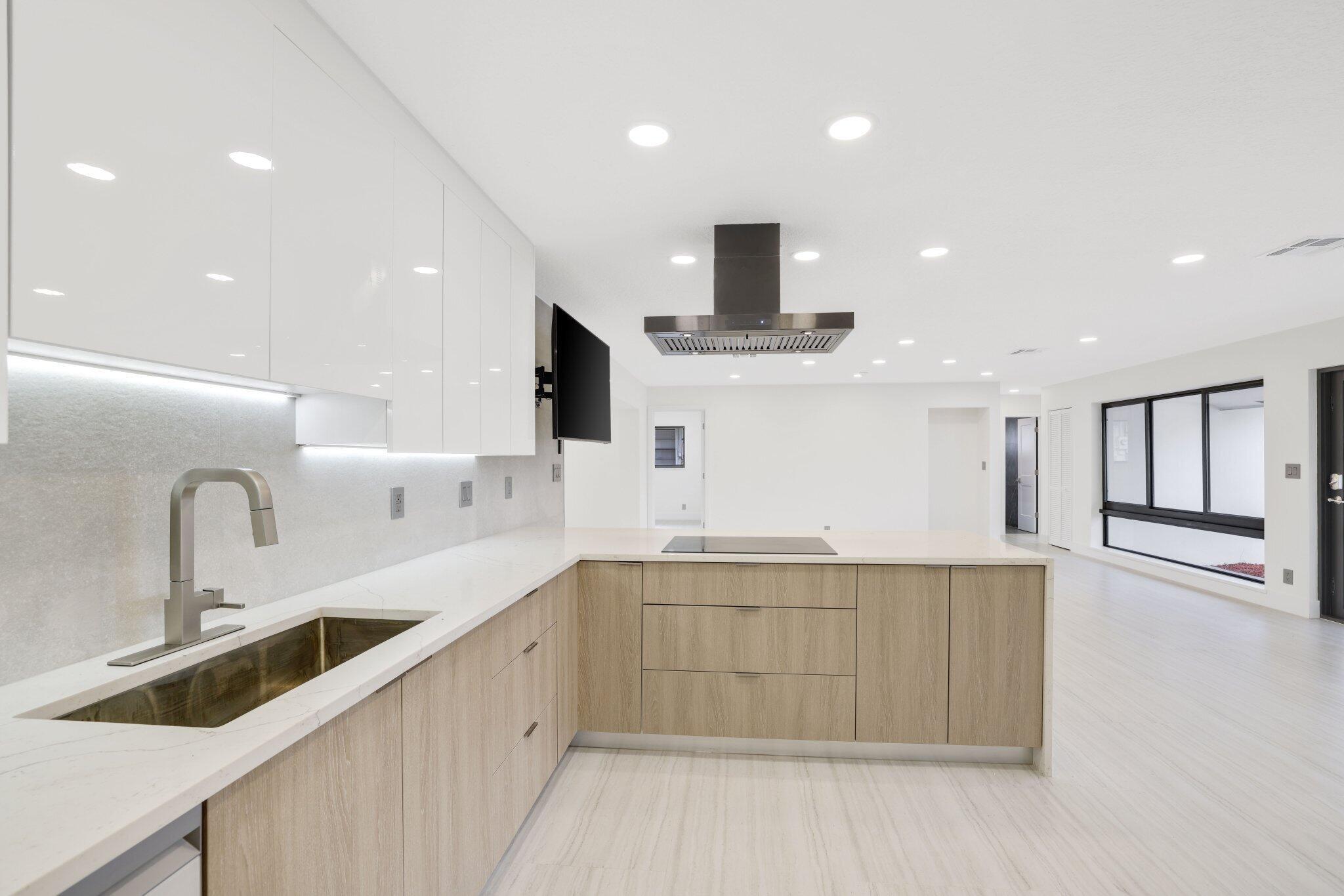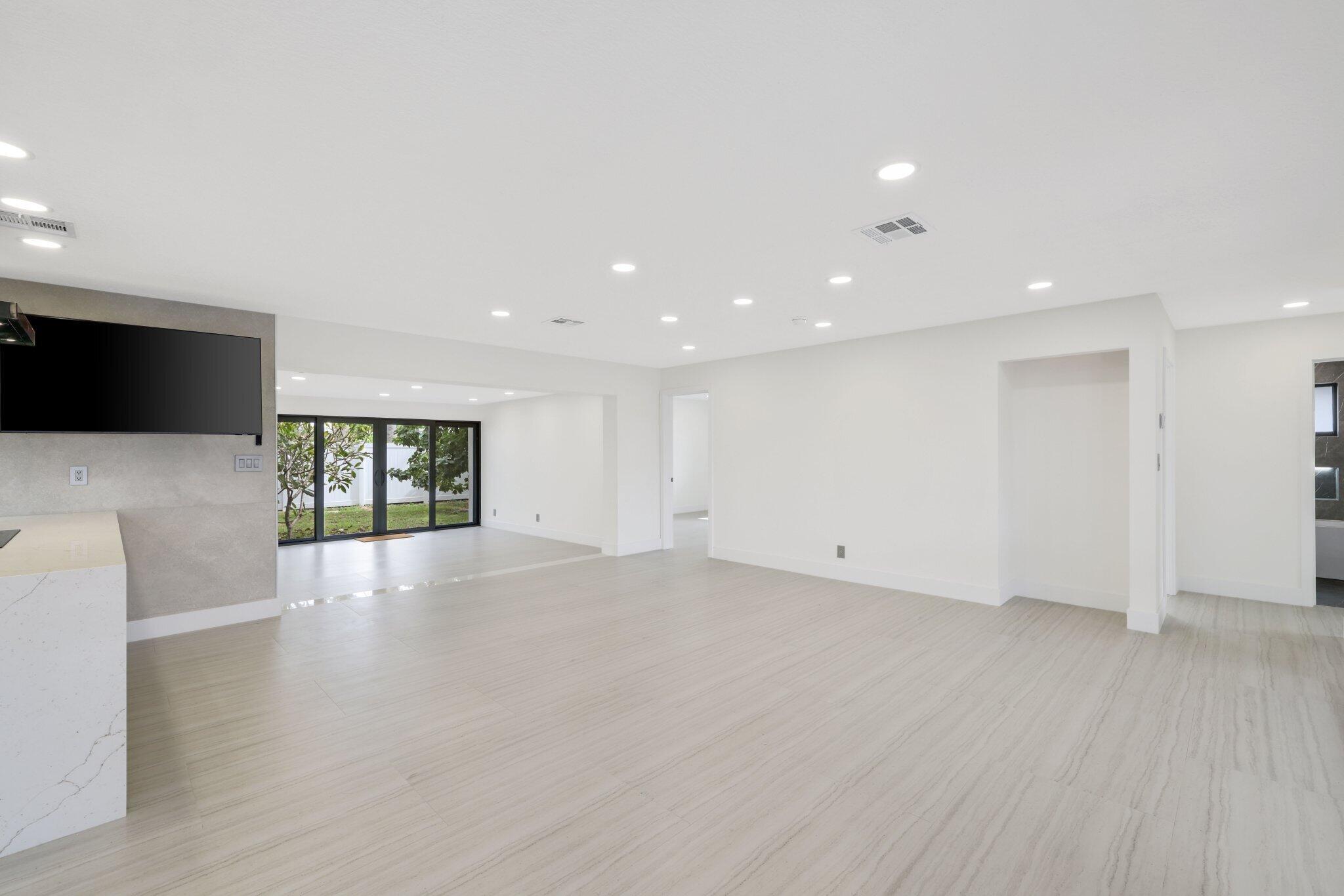 Introducing this spectacular, freshly renovated home in the renowned Imperial Point community. This spacious 4-bedroom, 2-bathroom residence has a total of 2,131 square feet and features a generous open floor plan, including formal living and dining rooms, a renovated eat-in kitchen, a Florida Room, a separate laundry room, and a full two-car garage. This renovation spared no expense, showcasing a large custom-designer kitchen with stunning quartz countertops and beautiful tile backsplash. The two-tone kitchen design is a significant upgrade from the standard common shaker style, featuring high-end Samsung white smart appliances, illuminated by custom LED lighting and underglow accents that truly highlight this property.