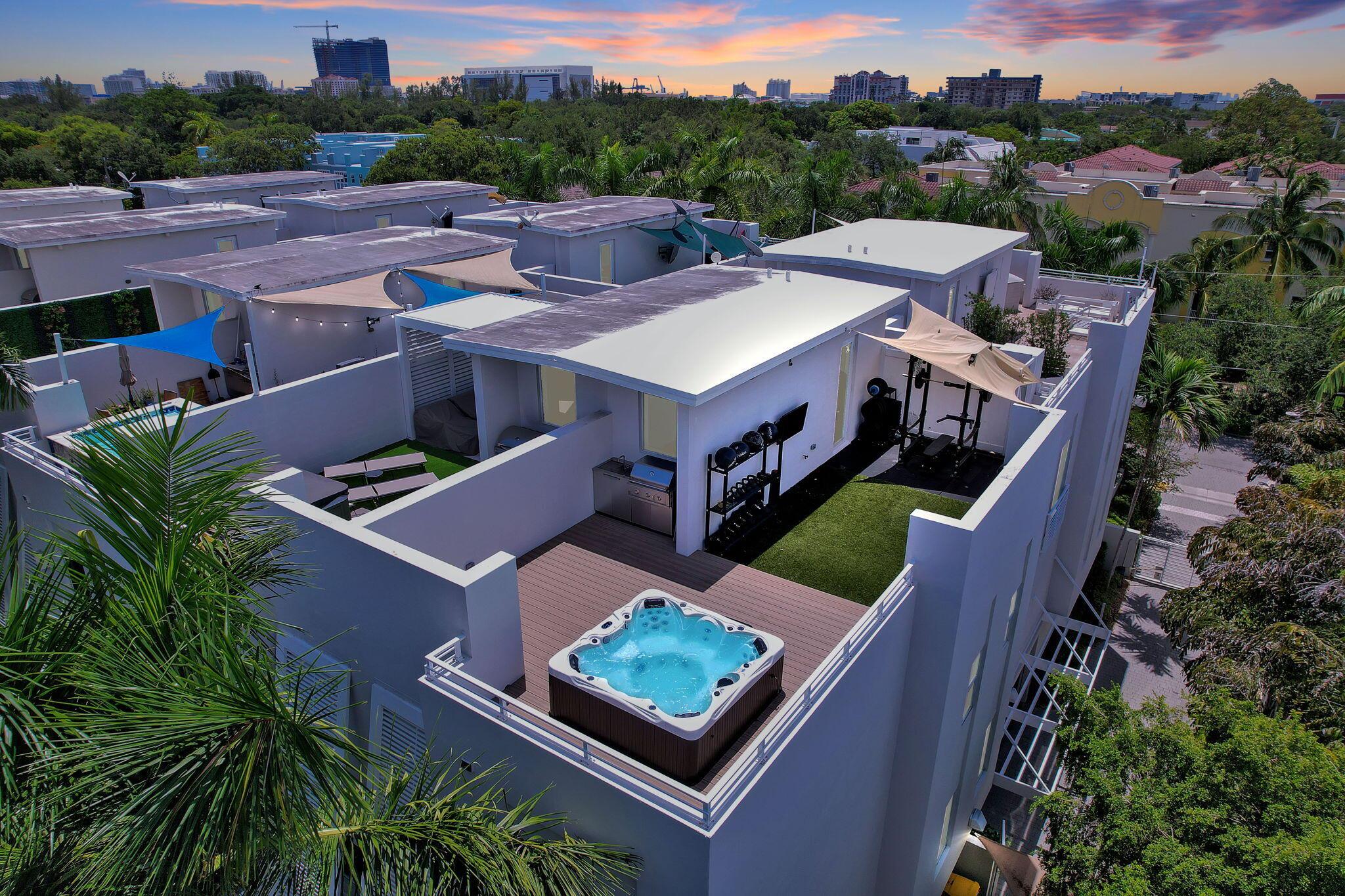 Luxury 3BD 3.5 BA fully renovated four-level townhome in downtown Ft. Lauderdale. Great open floor plan, this home is designed for both comfort and style. Top-of-the-line appliances, while the convenience of an elevator and surround sound enhance the living experience. The rooftop deck is a perfect place for entertaining, with a summer kitchen and spa. Each bedroom offers fully built-out closets for ample storage. Experience the seamless blend of modern design and practical living in this place you'll call home!