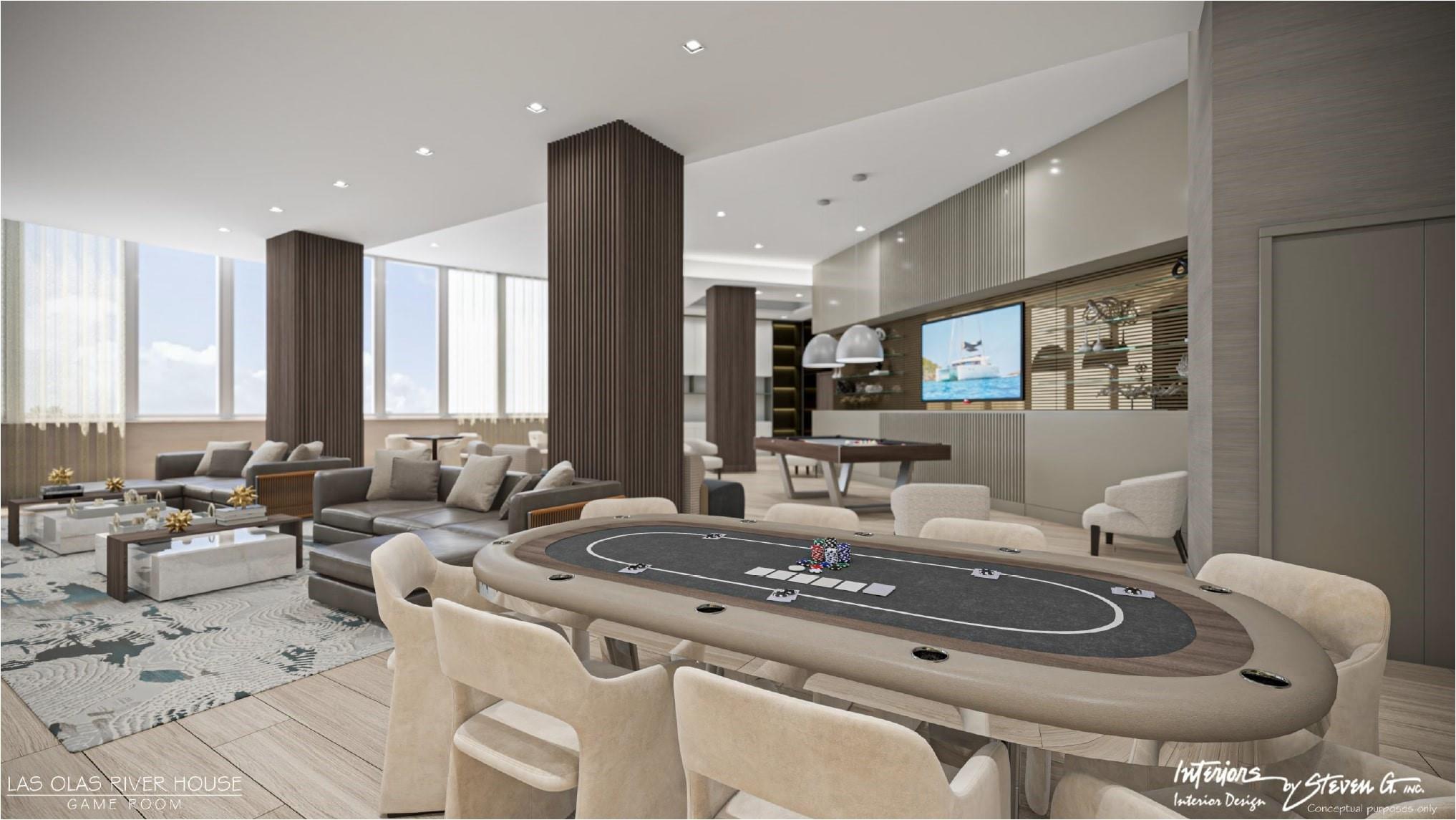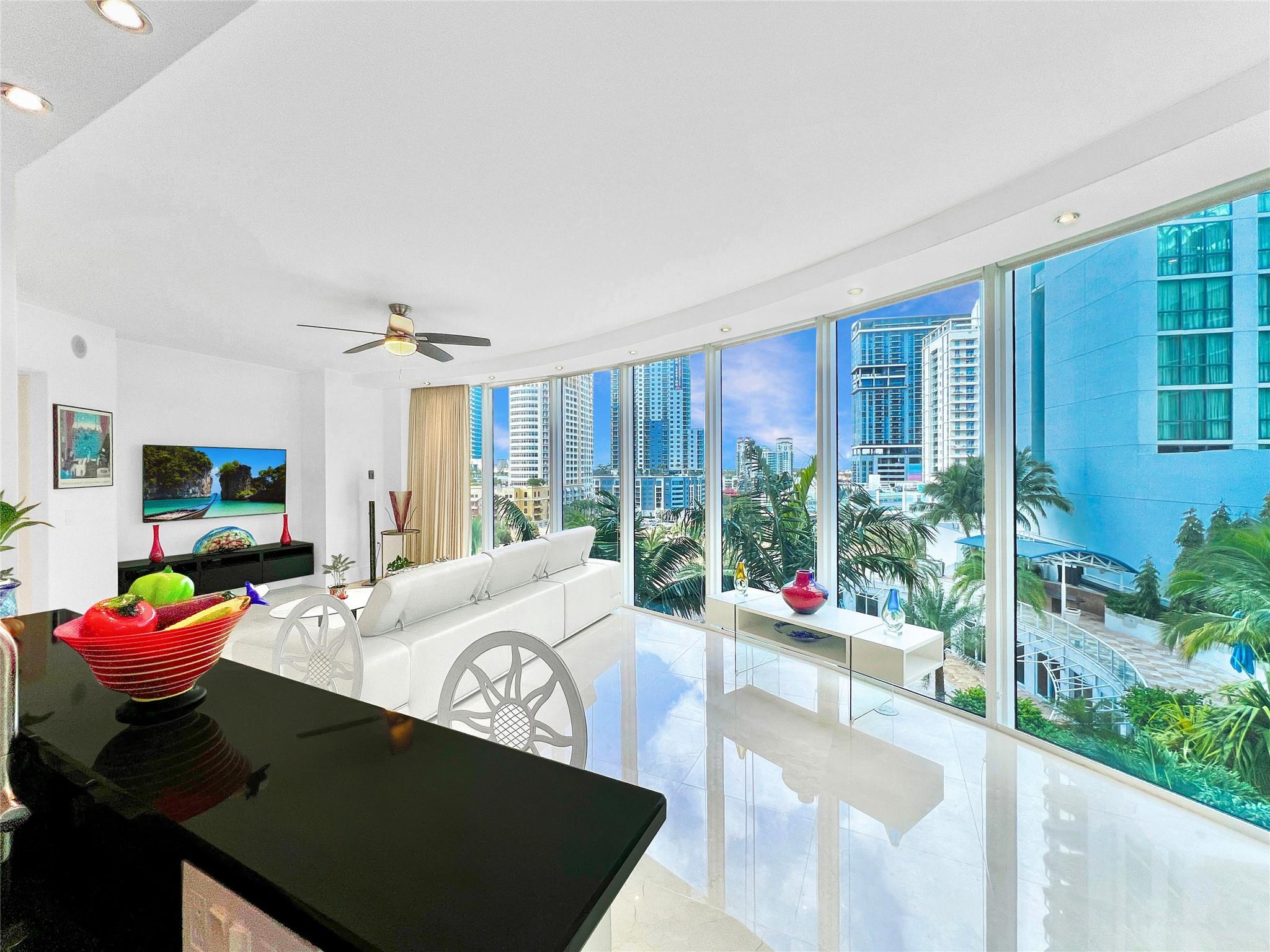 Stunning Pool View 2 br / 2.5 bath condo at Las Olas River House - The premier luxury high rise with 5 star resort style amenities in the heart of Downtown Fort Lauderdale. Move-in ready. Located next to Riverwalk, Las Olas Blvd & Huizenga Park. Walk downstairs to countless dining, shopping, entertainment options. Stunning Steven G interior designs. Monthly HOA $1,971.05 (2025) incl tv, internet, water, sewer, trash, parking, addl storage, resort style amenities: 24 hr concierge, security, front desk, receiving room w/ Amazon hub, expansive 60,000 sq ft pool deck with infinity resort style pool, cabanas, bbq grills, largest downtown condo spa & fitness center, jacuzzi, saunas, bike storage, social room, business center, putting green, piano room, concierge, art gallery, valet for guests.