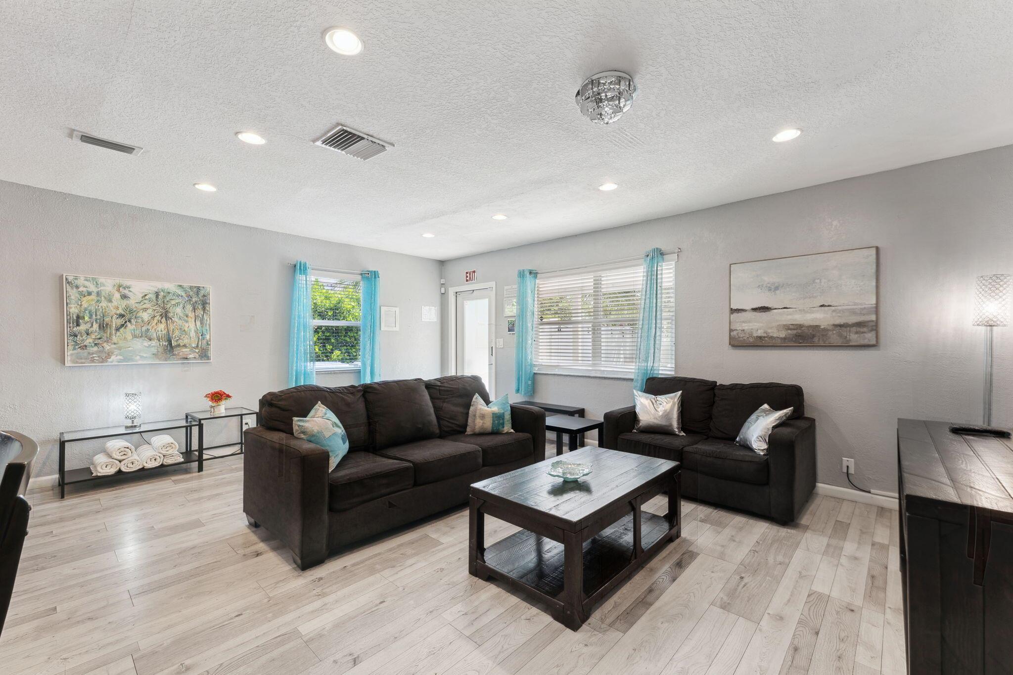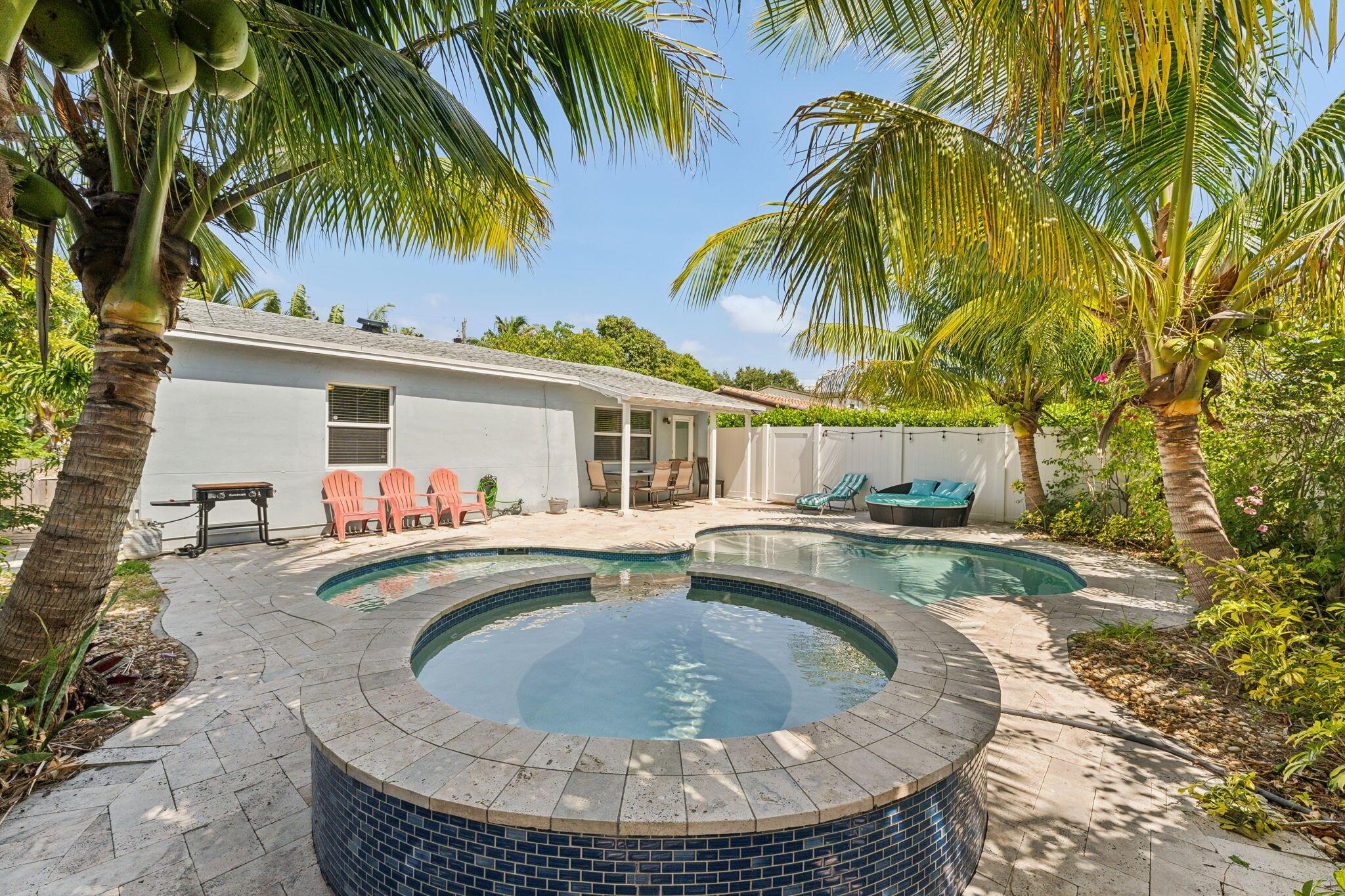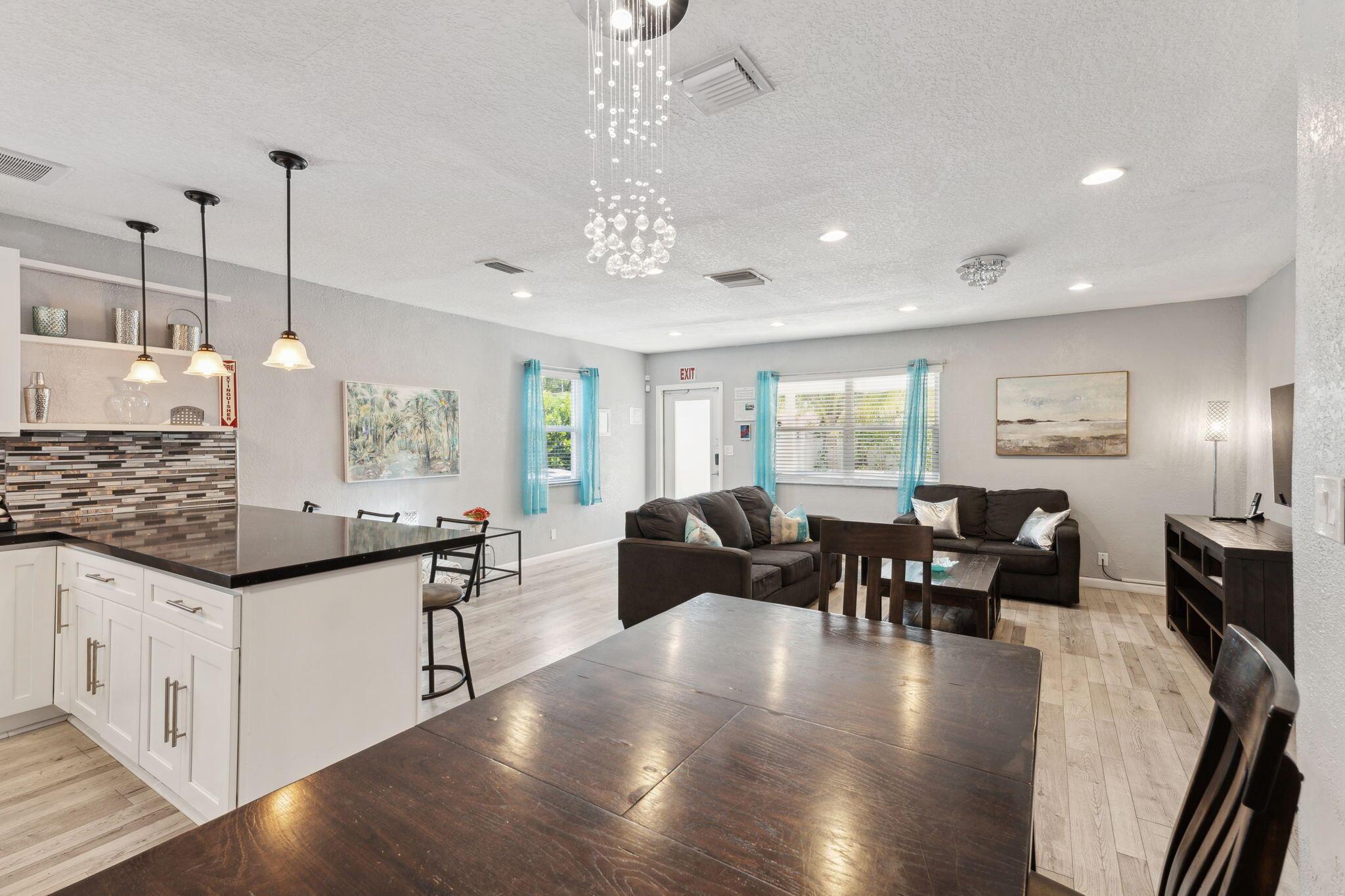 Incredible 2 for 1 deal on this 3bed/2bath property. This property has a unique layout with an Owner's Suite (1bd/1ba) with a kitchenette and its own backyard in the back and the main house (2bd/1ba) in the front with a true Smart Heated Pool setup. These two separate entrances give you the freedom to occupy one and rent the other or turn both into income producing units as this house is already AirBnb Ready. With newer roof, newer updated plumbing and newer central A/C, all major ticket items have already been taken care of. The house also features an open concept floor plan with laminate and tile flooring throughout, creating a modern living space with an in-kitchen that has a huge island to sit 3. With a quick 3 minute drive, this home is close to Wilton Downtown, and the Beach.
