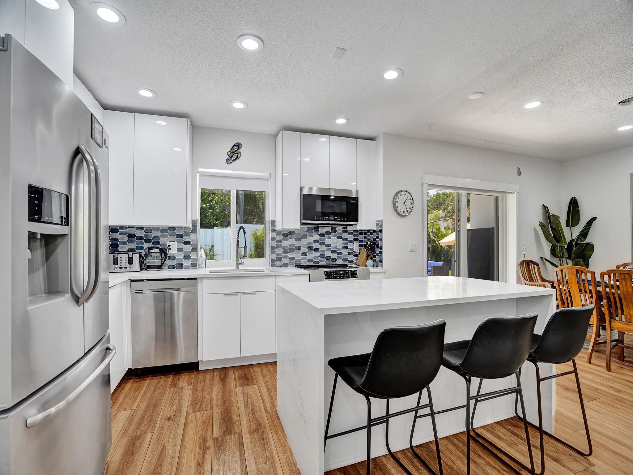 THIS BEAUTIFULLY UPDATED CORAL RIDGE ISLES HOME HAS IT ALL!! FILLED WITH NATURAL LIGHT, FEATURES INCLUDE A NEW OPEN EAT-IN KITCHEN WITH EUROPEAN FINISHES AND ISLAND WITH QUARTZ WATERFALL EDGE, SPLIT BEDROOM PLAN, SPA LIKE PRIMARY BATH WITH SOAKING TUB, NEWER FLOORING THROUGHOUT, A SPARKLING BLUE POOL THAT CAN BE SEEN FROM THE KITCHEN, DINING AREA, PRIMARY AND GUEST BEDROOMS AND IMPACT WINDOWS. FANTASTIC LOCATION, JUST MINUTES TO SHOPPING, BEACHES, I-95, HOSPITALS AND LOCATED IN AN EXCELLENT SCHOOL DISTRICT. THIS HOME IS IN MOVE-IN CONDITION!