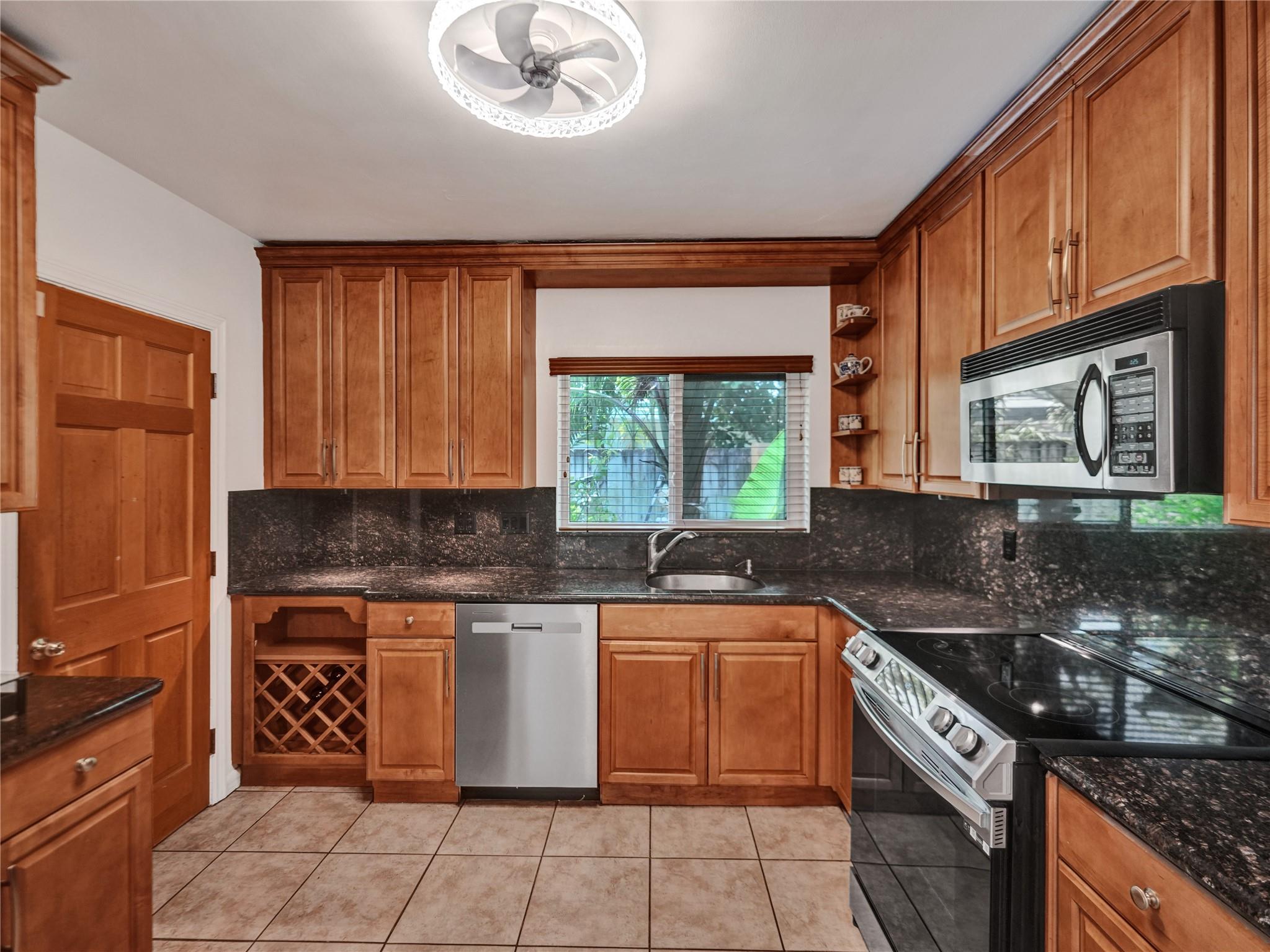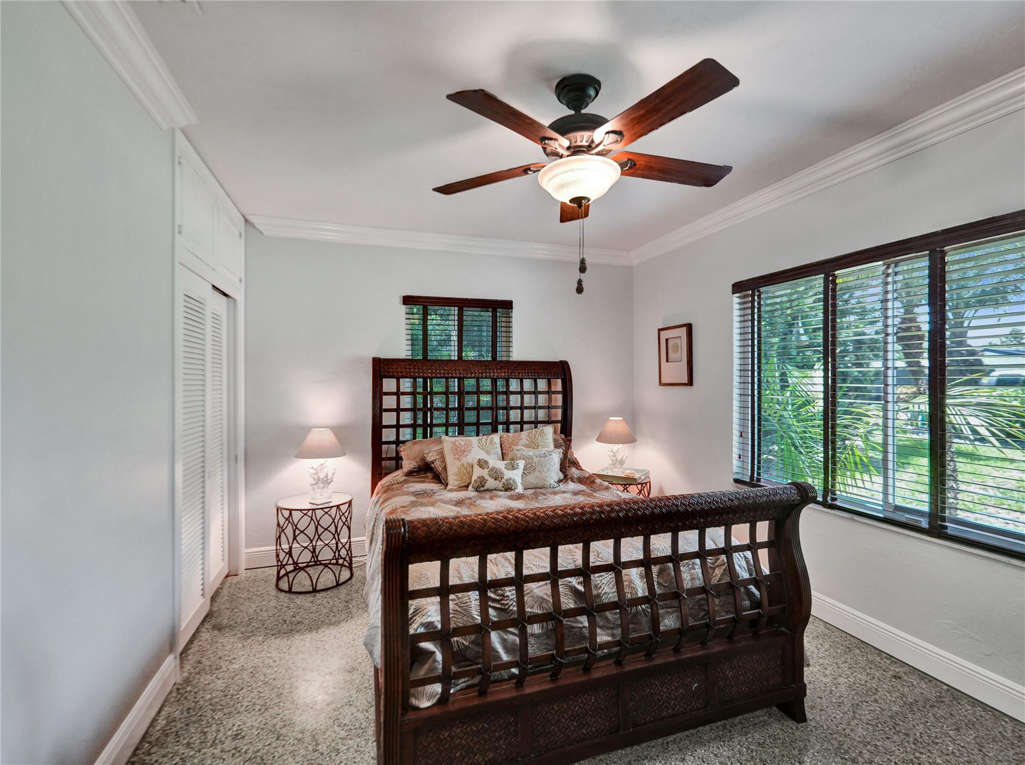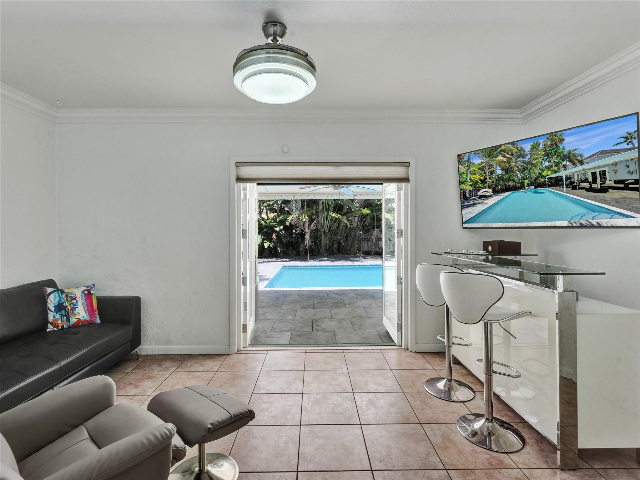 Nestled in the heart of highly sought-after Poinsettia Heights neighborhood, this beautifully updated home is a true gem. Formal living room features a romantic wood-burning fireplace, separate family/TV room, with French doors, opens to a completely private, resort-style pool area. This backyard oasis has been recently remodeled with exquisite Italian marble tile and boasts a sprawling 37-foot covered patio, ideal for entertaining. Newer impact glass windows and doors, updated kitchen with granite counters & maple cabinets. Tasteful tile flooring in living areas. Primary bedroom suite with an extra sitting area/dressing room and a recently updated ensuite bathroom. Pavered double driveway and a 1-car garage. Ideally located with fine restaurants, beach & shopping just minutes away.