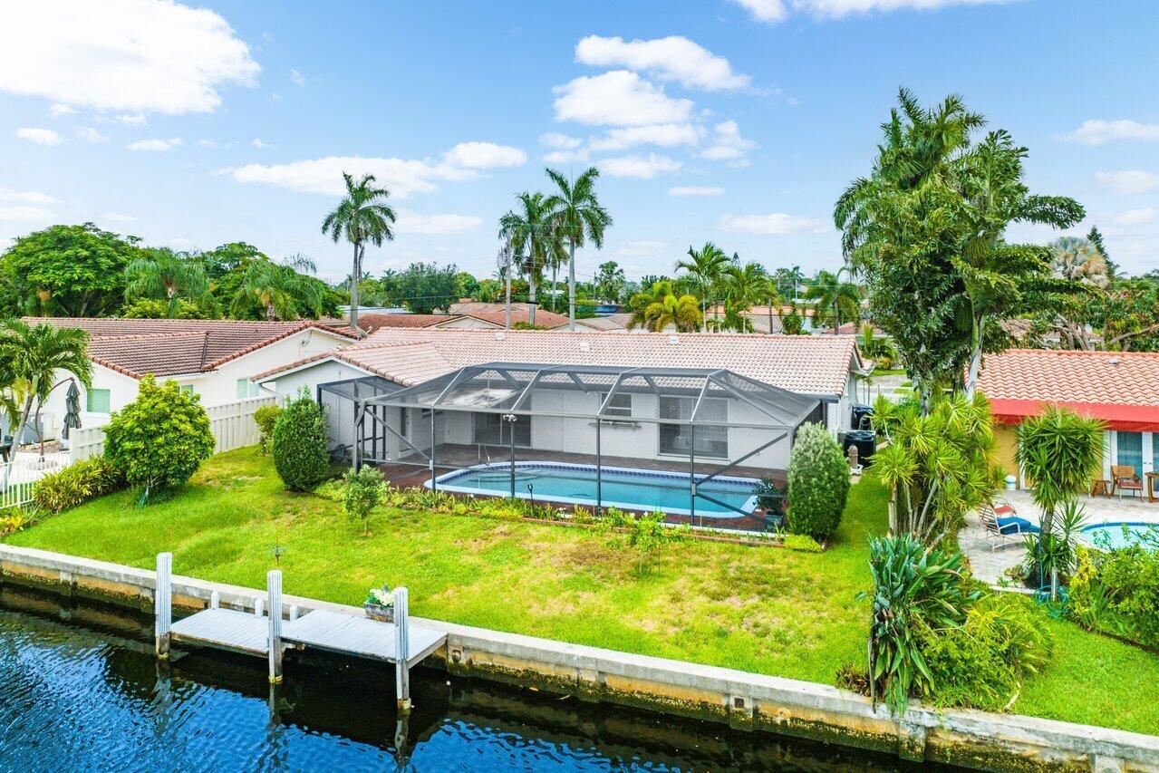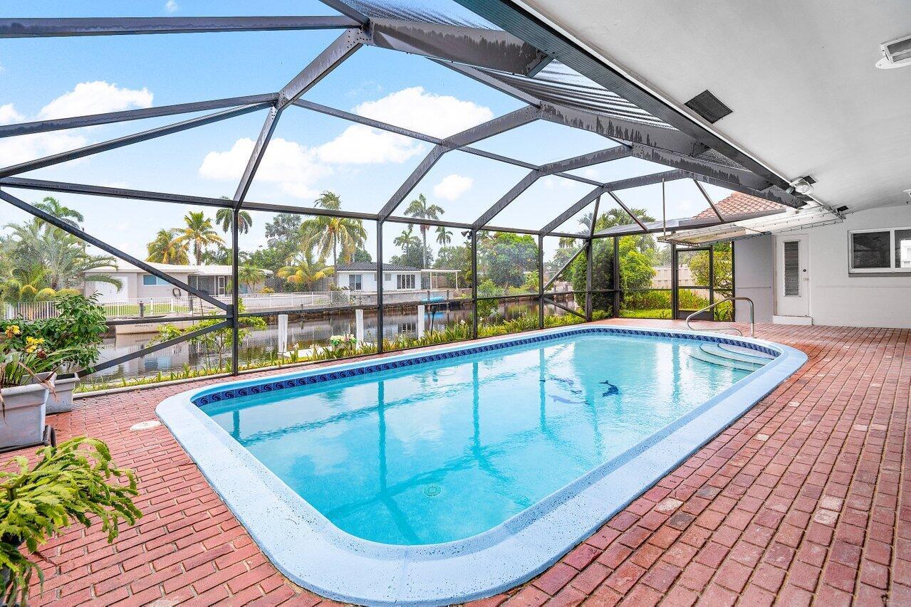 Amazing opportunity to live on the water in one of the most desirable locations of Fort Lauderdale! This 3 Bedroom / 2 Bath Single Story Home boasts 75' of Ocean Access / Waterfront property and a dock! Enjoy endless outdoor entertainment in your screened in patio Pool area while watching the boats drive by! Kitchen has solid wood custom cabinetry, granite counters and stainless steel appliances! Newly renovated Primary Bathroom! 8 Windows are ''Impact''. Circular driveway and 2 card garage!Coral Ridge Isles is centrally located with easy access to Shopping, Restaurants, Entertainment and more! Some Photos are Virtually Staged.